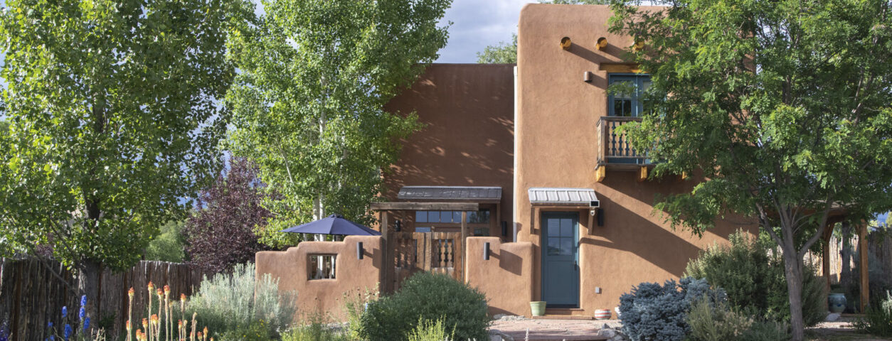 This remarkable adobe home, nestled in Taos’s historic district, offers...