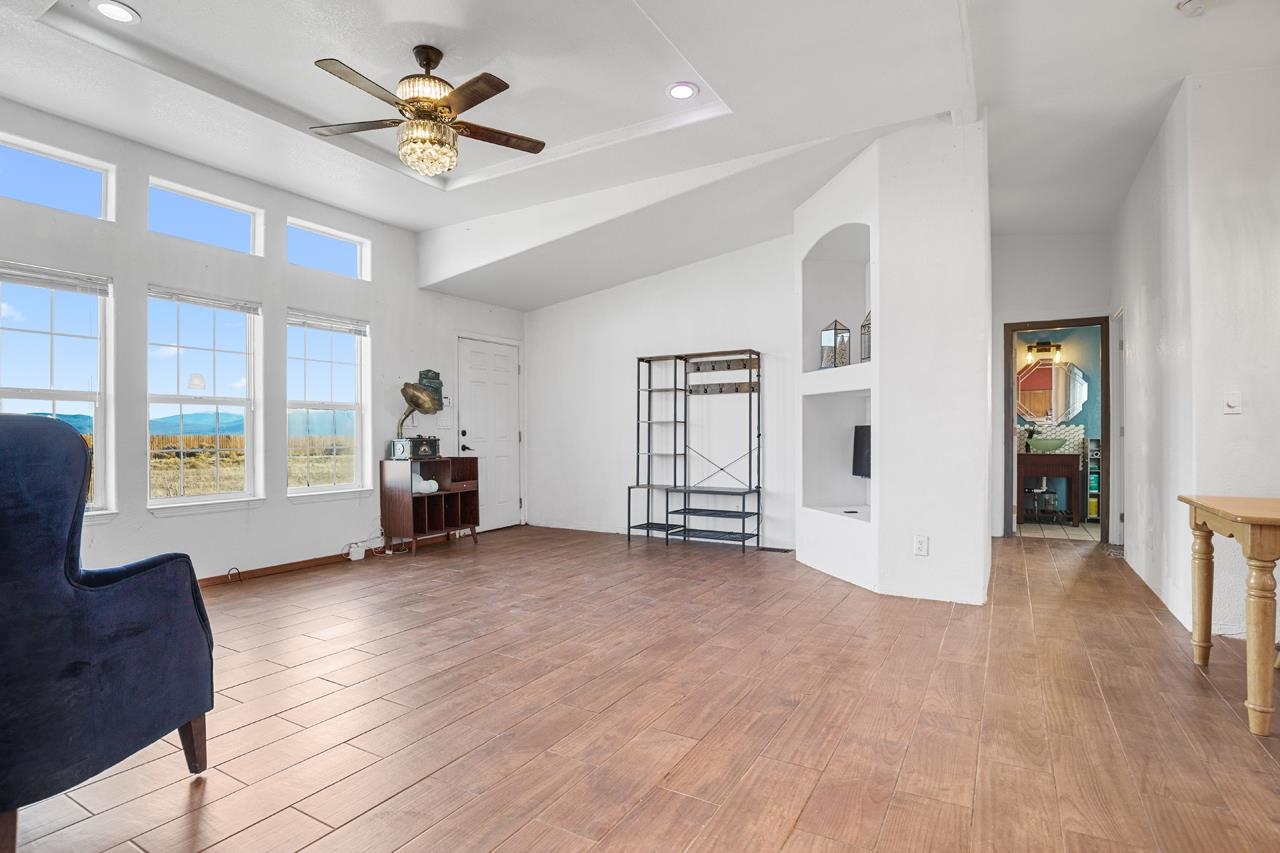 Welcome to this well-maintained 3-bedroom, 2-bath modular home with beautiful mountain and sunset views. The property is fully fenced and includes a large American Steel metal garage with space for up to four vehicles, making it ideal for storage, hobbies, or work needs. Inside, the home offers practical updates over the years, including newer lighting fixtures, tile flooring, air conditioning, and a comfortable bathroom setup with a jetted tub and walk-in shower. The kitchen features upgraded smart appliances, allowing easy control from your phone, supported by fiber-optic internet availability. An EV hook-up is also in place for added convenience. Outside, enjoy a covered gazebo for relaxing or entertaining, along with a fenced yard and planting beds ready for gardening. With easy move-in condition and scenic views, this home offers a comfortable and functional place to settle in and make your own.