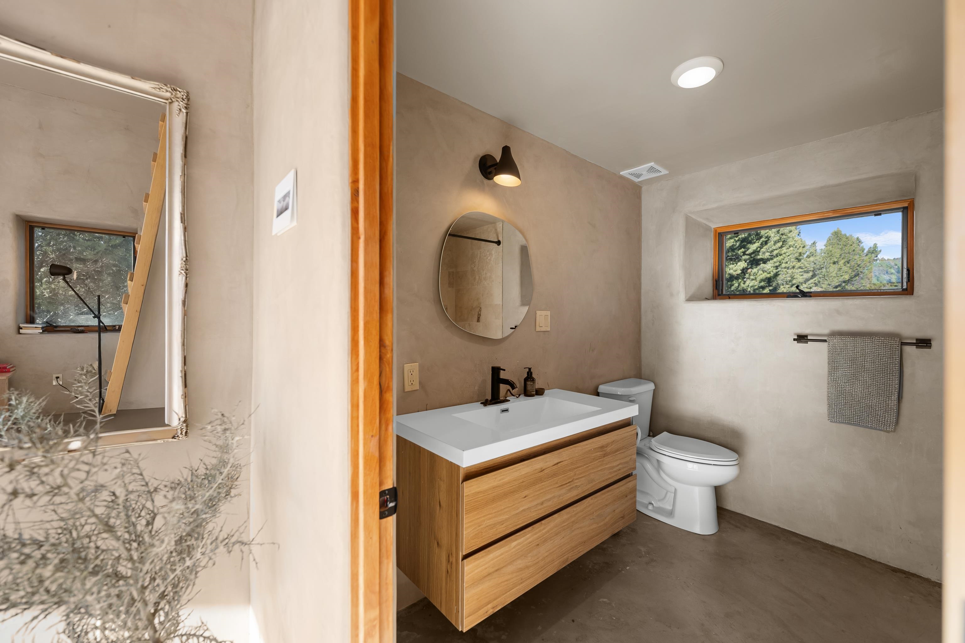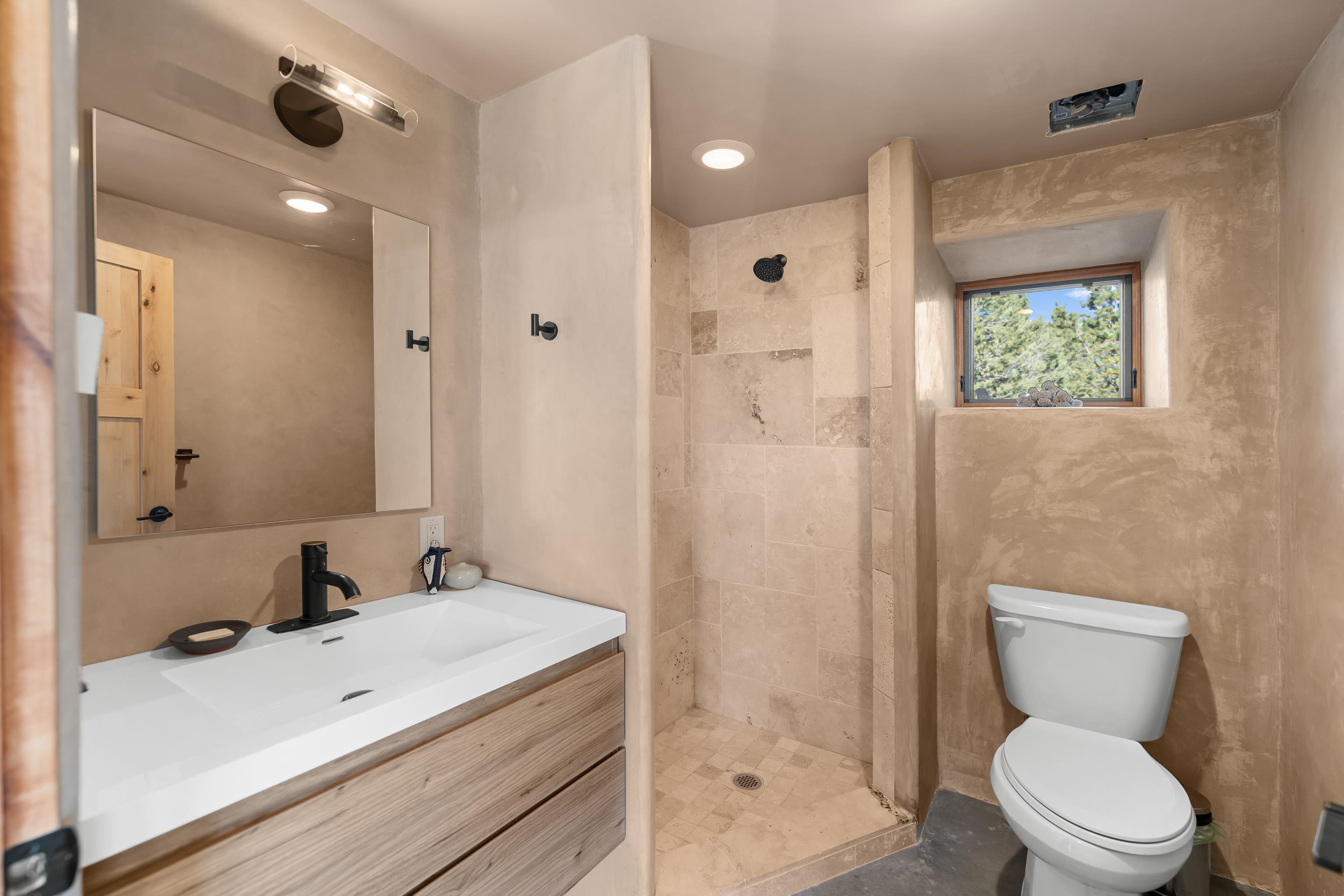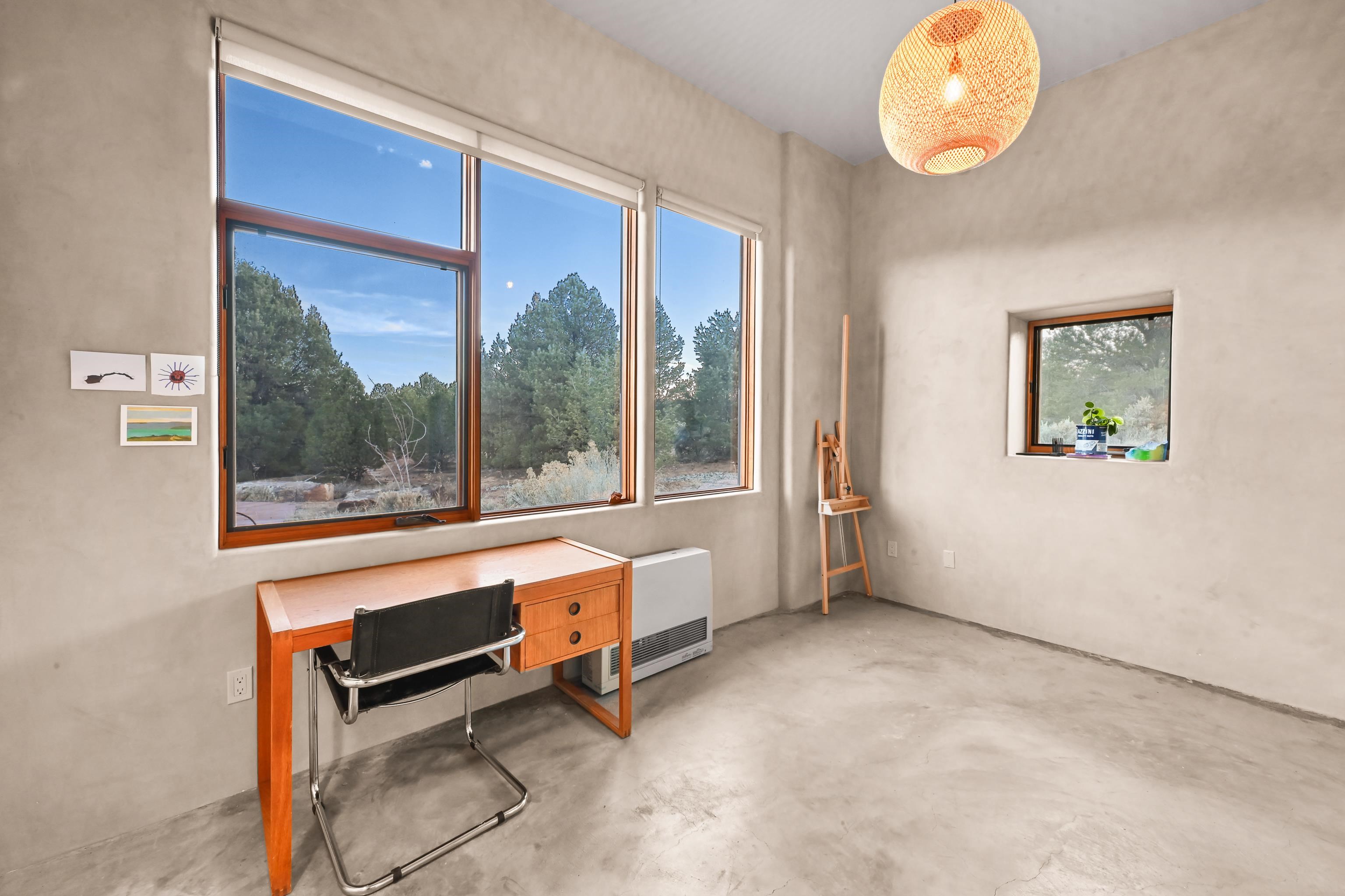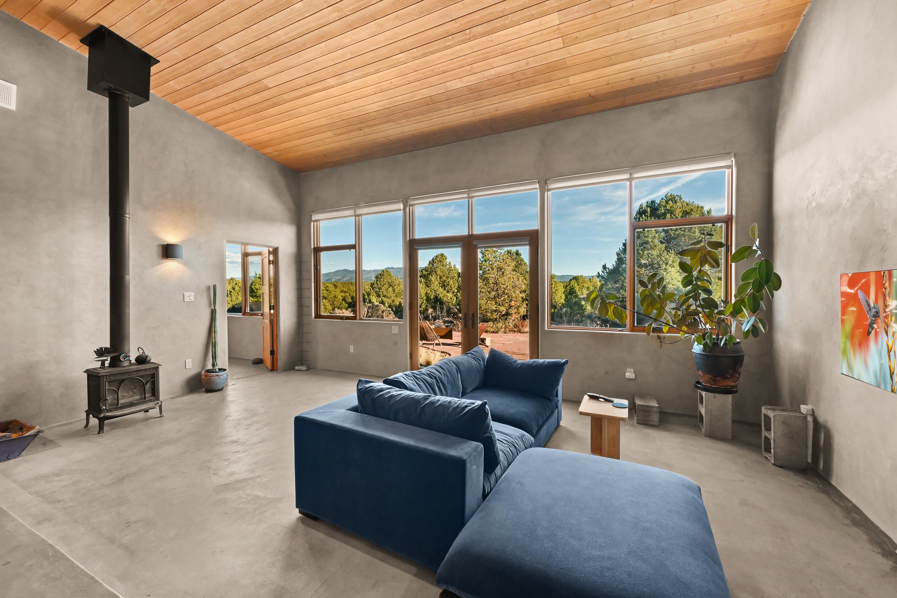 Set on 9 private acres just outside Carson, this thoughtfully crafted 2-bedroom, 2-bath home offers a rare balance of independence, comfort, and enduring quality—just 35 minutes from Taos. Built in 2013 with an emphasis on efficiency and longevity, the home pairs rammed earth and straw bale construction along the north wall with expansive south-facing windows that invite in natural light and passive solar warmth. The result is a space that feels grounded, quiet, and consistently comfortable year-round. The 1,500-square-foot interior is open and sun-filled, with a seamless flow between living, dining, and kitchen. Scandinavian-inspired solid wood cabinetry brings a clean, understated warmth, while French doors open to a beautifully crafted flagstone patio—an easy extension of daily living. Fully off-grid, the property is powered by a well-designed photovoltaic solar system with battery storage housed in a dedicated insulated room, offering reliable, modern functionality without compromise. A short walk along a gravel path leads to a separate sauna pavilion, where a wood-burning barrel sauna frames mountain views through a round picture window—an experience as much as an amenity. Gated access, wide-open skies, and a true sense of quiet define the setting. This is a home built with intention—where craftsmanship, efficiency, and a connection to the landscape come together in a way that’s increasingly hard to find.