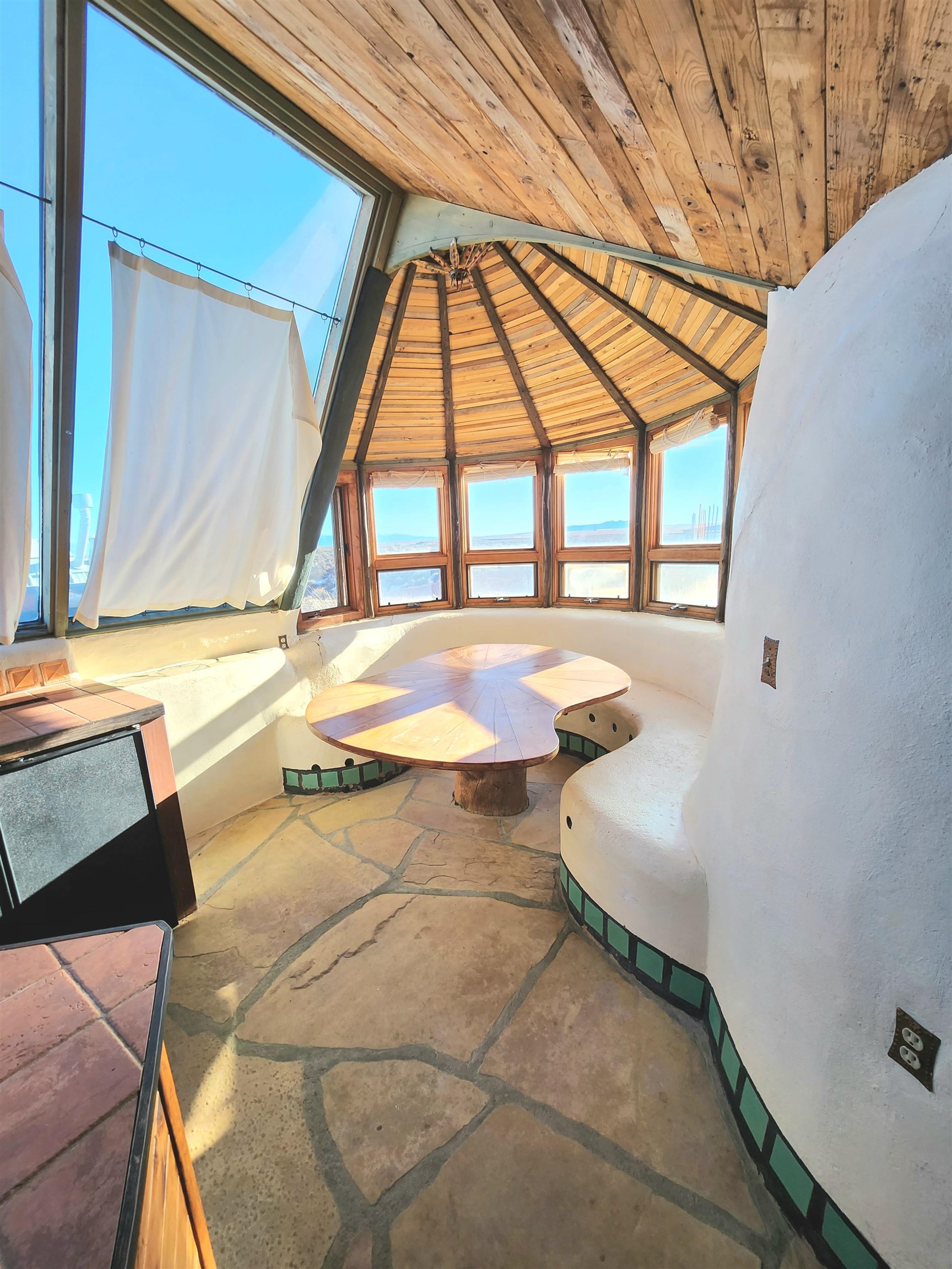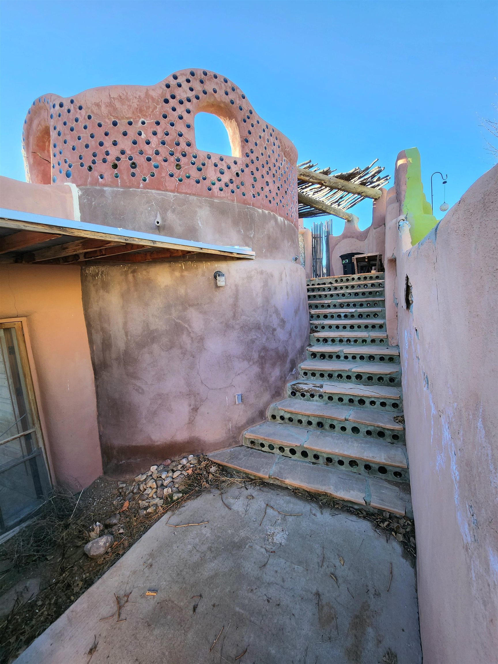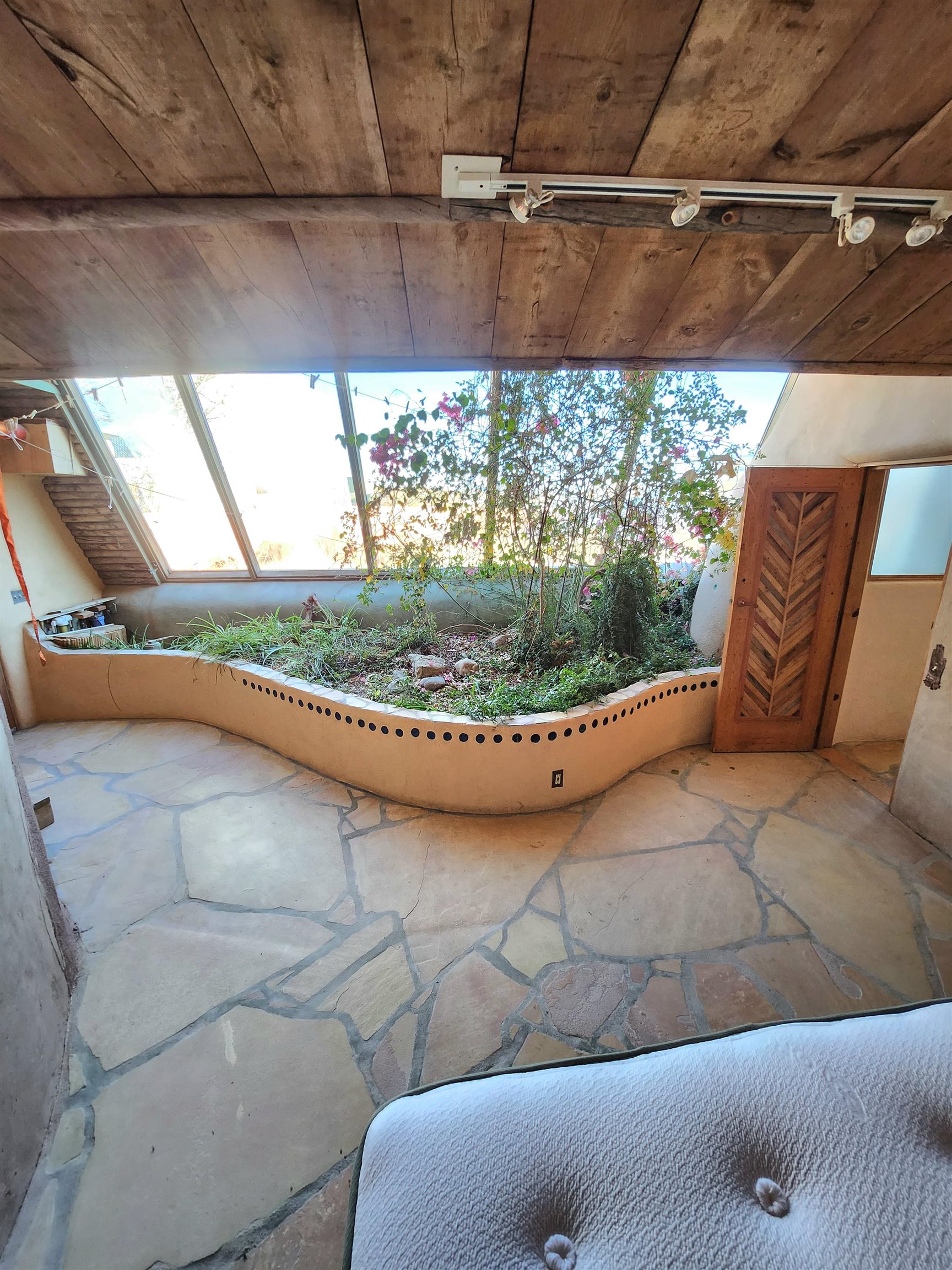 Experience a rare opportunity to own a one-of-a-kind Earthship residence, masterfully designed by world-renowned architect Mike Reynolds, the visionary behind this globally recognized style of sustainable architecture. Nestled within the exclusive Greater World Subdivision—protected by covenants ensuring the integrity of its unique community—this home represents the pinnacle of off-grid living with elegance and innovation. Constructed from recycled materials and designed for complete self-sufficiency, the residence features integrated indoor planters nourished by a sophisticated gray-water system, which cycles water from sinks and showers back into the landscape. Power is provided entirely by solar and wind energy, eliminating utility costs while offering true independence. The property also includes a detached ~150 sq. ft. studio, ideal for a private office, creative space, or guest retreat. Situated on 1.28 acres, there is ample room to create gardens or outdoor living spaces to complement the striking natural surroundings. This extraordinary property is more than a home—it’s a statement of design, sustainability, and lifestyle, offering a rare blend of architectural significance and modern comfort.