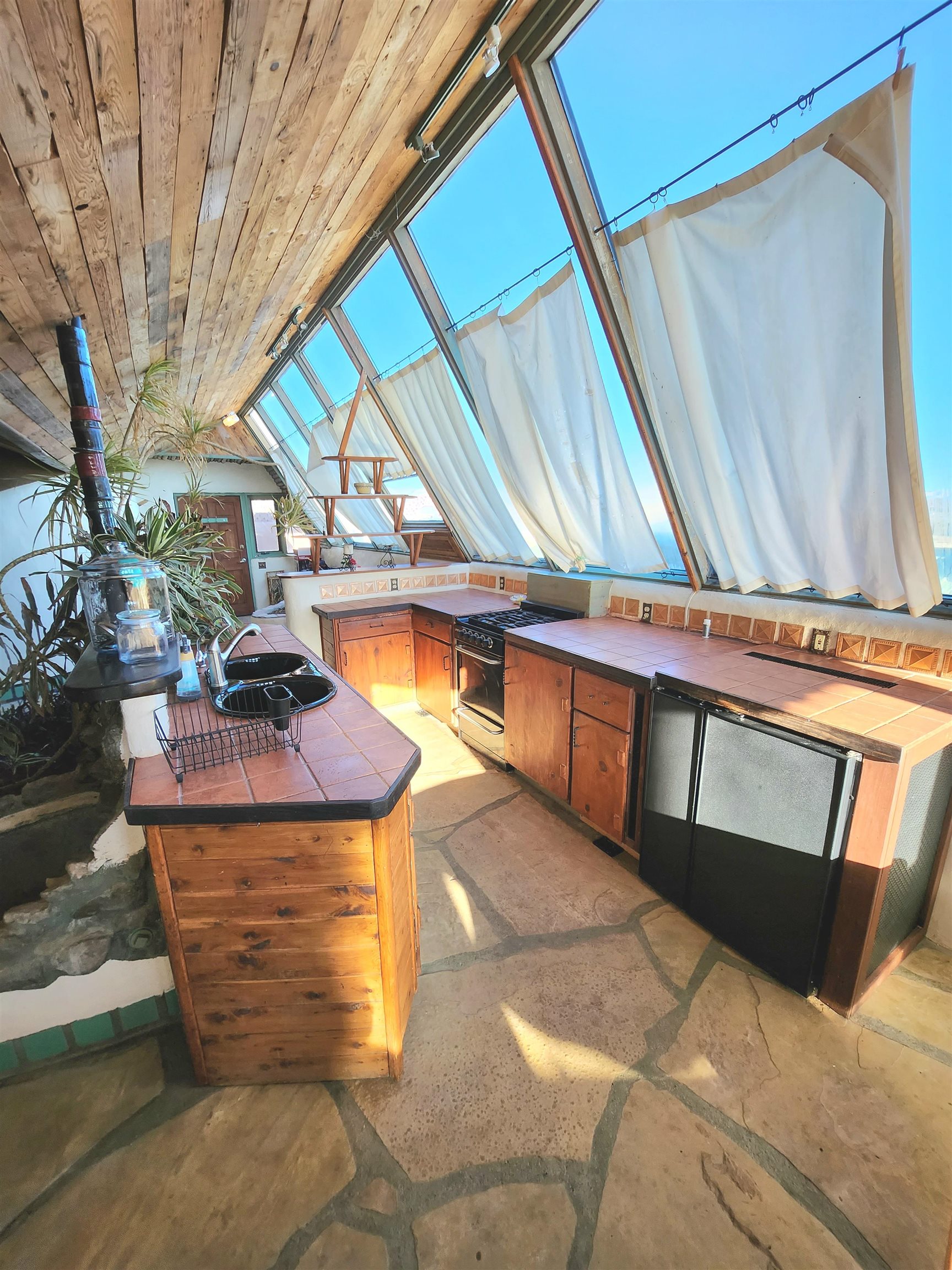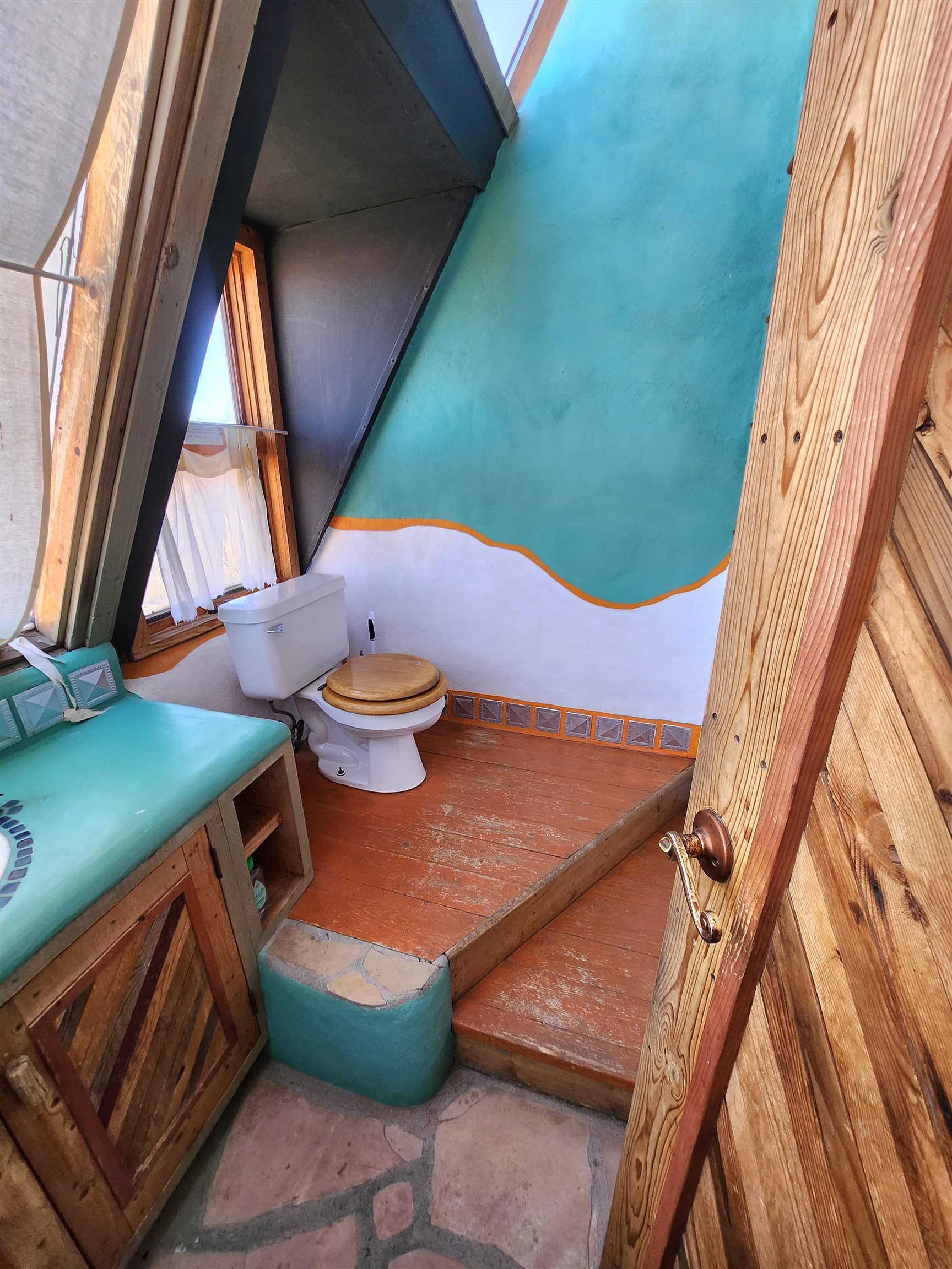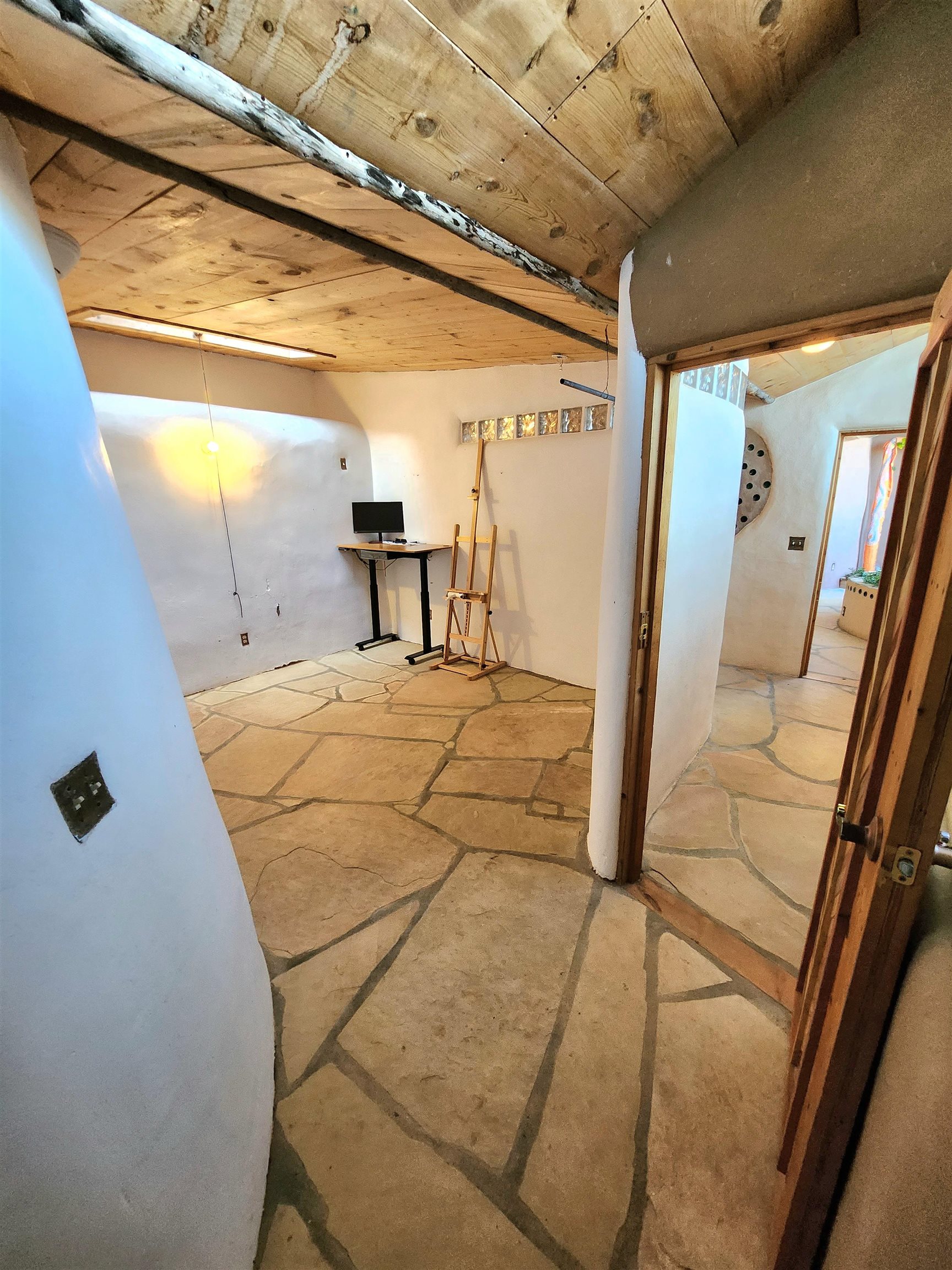 Experience a rare opportunity to own a one-of-a-kind Earthship residence, masterfully designed by world-renowned architect Mike Reynolds, the visionary behind this globally recognized style of sustainable architecture. Nestled within the exclusive Greater World Subdivision—protected by covenants ensuring the integrity of its unique community—this home represents the pinnacle of off-grid living with elegance and innovation. Constructed from recycled materials and designed for complete self-sufficiency, the residence features integrated indoor planters nourished by a sophisticated gray-water system, which cycles water from sinks and showers back into the landscape. Power is provided entirely by solar and wind energy, eliminating utility costs while offering true independence. The property also includes a detached ~150 sq. ft. studio, ideal for a private office, creative space, or guest retreat. Situated on 1.28 acres, there is ample room to create gardens or outdoor living spaces to complement the striking natural surroundings. This extraordinary property is more than a home—it’s a statement of design, sustainability, and lifestyle, offering a rare blend of architectural significance and modern comfort.