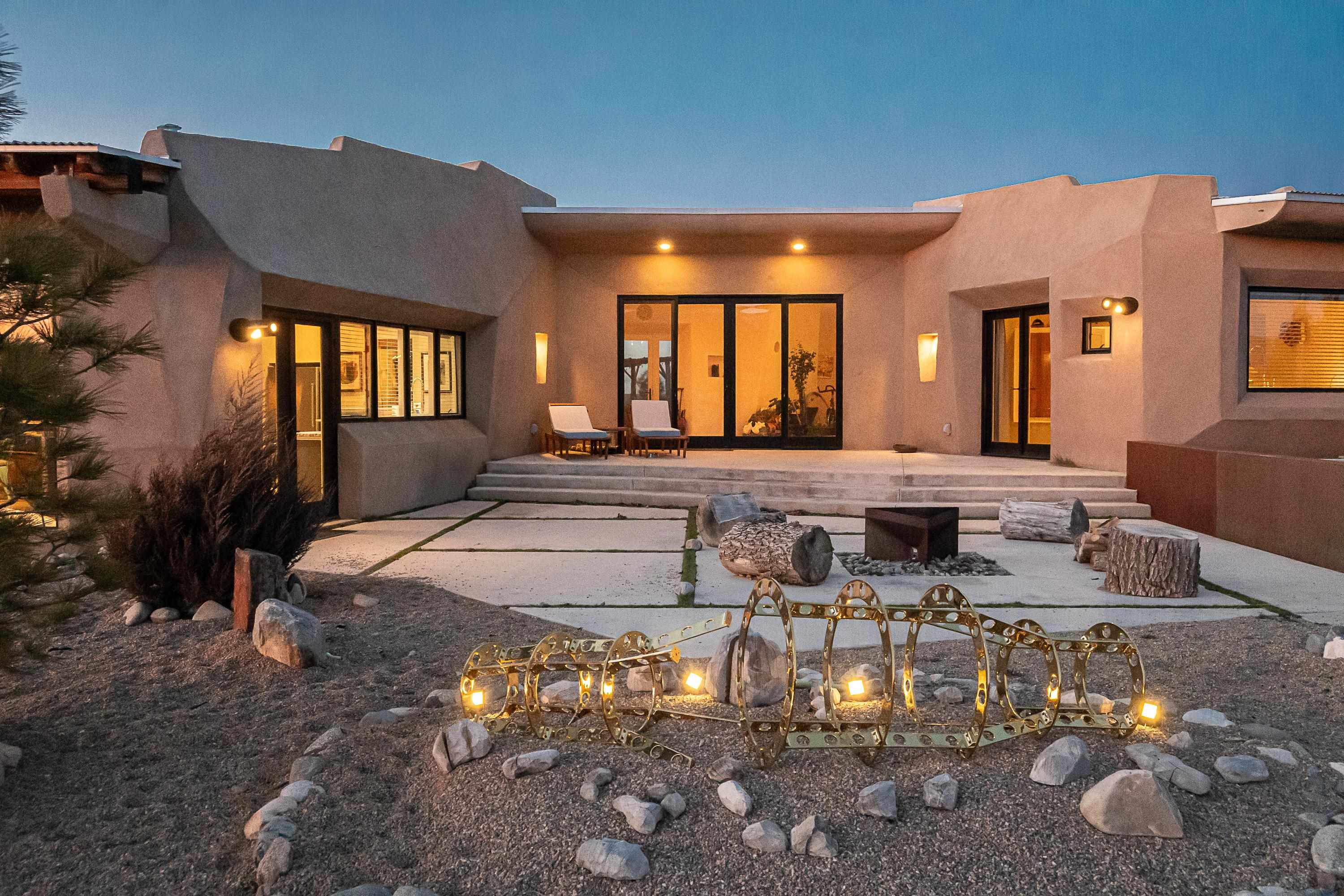 Live inside a work of art in this Artist's Dream Dwelling in Taos. Welcome to ATOMICA- a home unlike any other- where art, nature and architecture meet in perfect, unconventional harmony. Designed and built by internationally acclaimed visionary artist Allan Packer, this inspiring Taos retreat is anything but ordinary. The property consists of a house, a guesthouse, and a studio on 3 acres. Organic, offbeat and unconventional in the best possible way. Sculpted thick pumice walls and large windows incorporate and frame the stunning views into a magical, serene space imagined to inspire. The layout defies expectation- fluid and intuitive, built to honor light, shadow and the surrounding land. The main house consists of 2 suites radiating off a large great room made up of an impressive kitchen space and a cozy sunken living room anchored by a whimsical fireplace. Step right out onto the stunning back patio with a firepit, hot tub and jaw dropping views in every direction. The guesthouse is fully equipped with a kitchen and has an established history of rental income. Set atop a peaceful rise, tucked near the edge of the Rio Grande del Norte National Monument, you're just minutes from breathtaking hikes where bighorn sheep roam, epic mountain biking trails, and the quiet power of the river below. The home also overlooks the 16th hole of the Taos Country Club and golf course, blending wild nature with wide-open fairways. This is not just a home-it's a living, breathing work of art. It's a space for dreamers, makers and seekers. Whether you're an artist, writer, hardcore recreationalist or someone simply craving authenticity and soul in a sea of sameness, this home offers something rare: a chance to live in art, not just hang it on the wall. One-of-a-kind. Off the beaten path. Totally Taos. Serious inquiries only. Magic lives here.