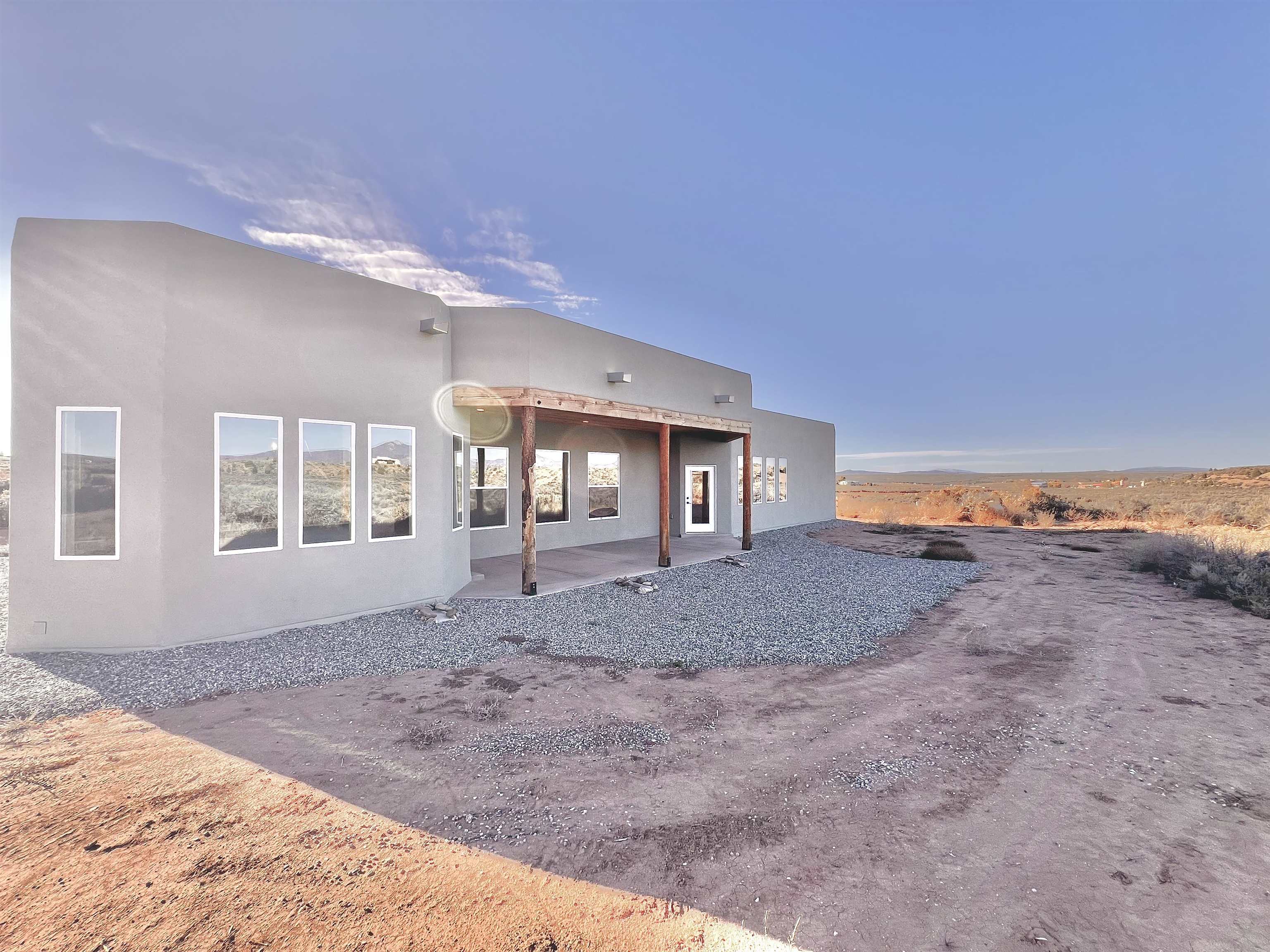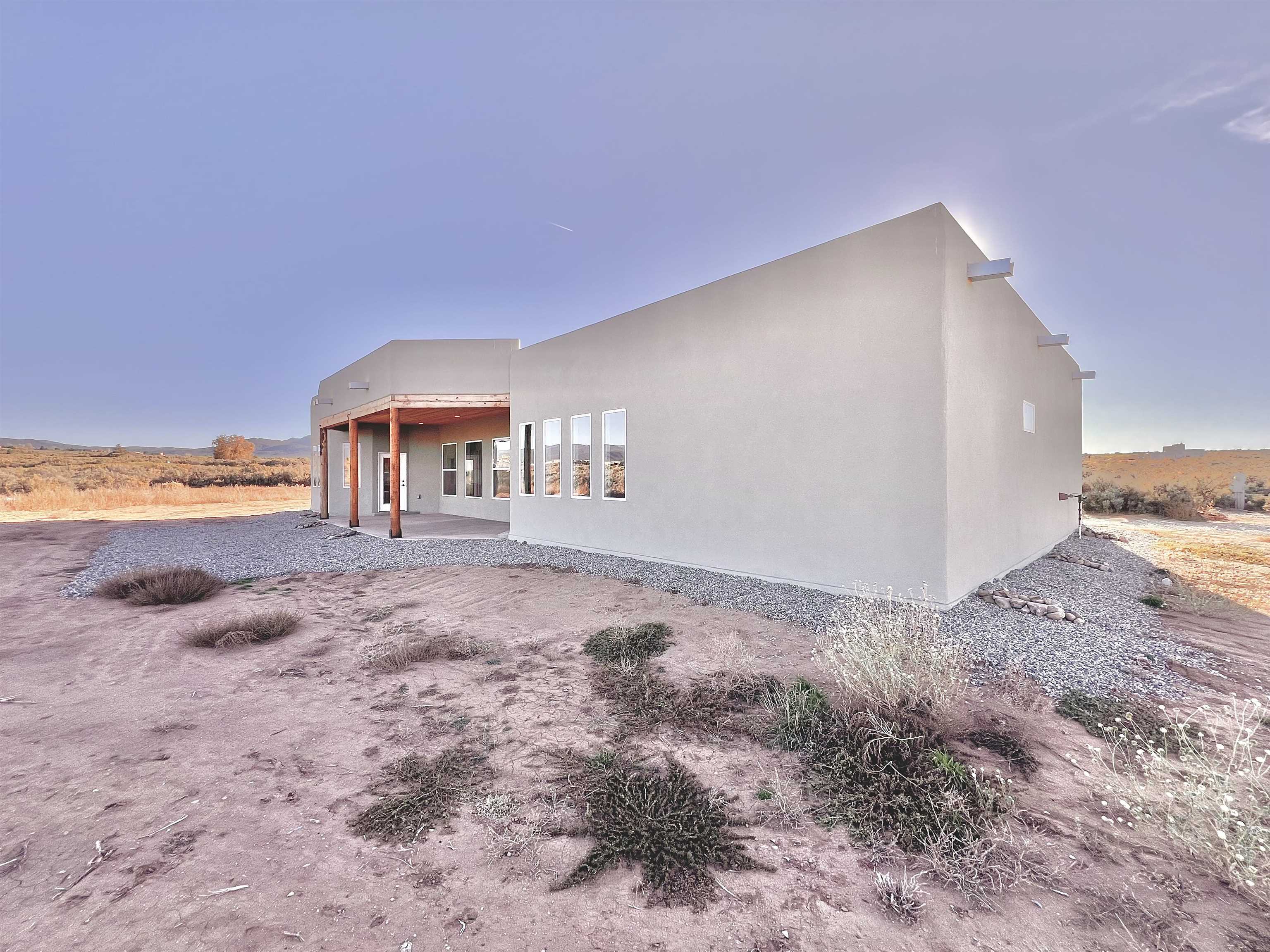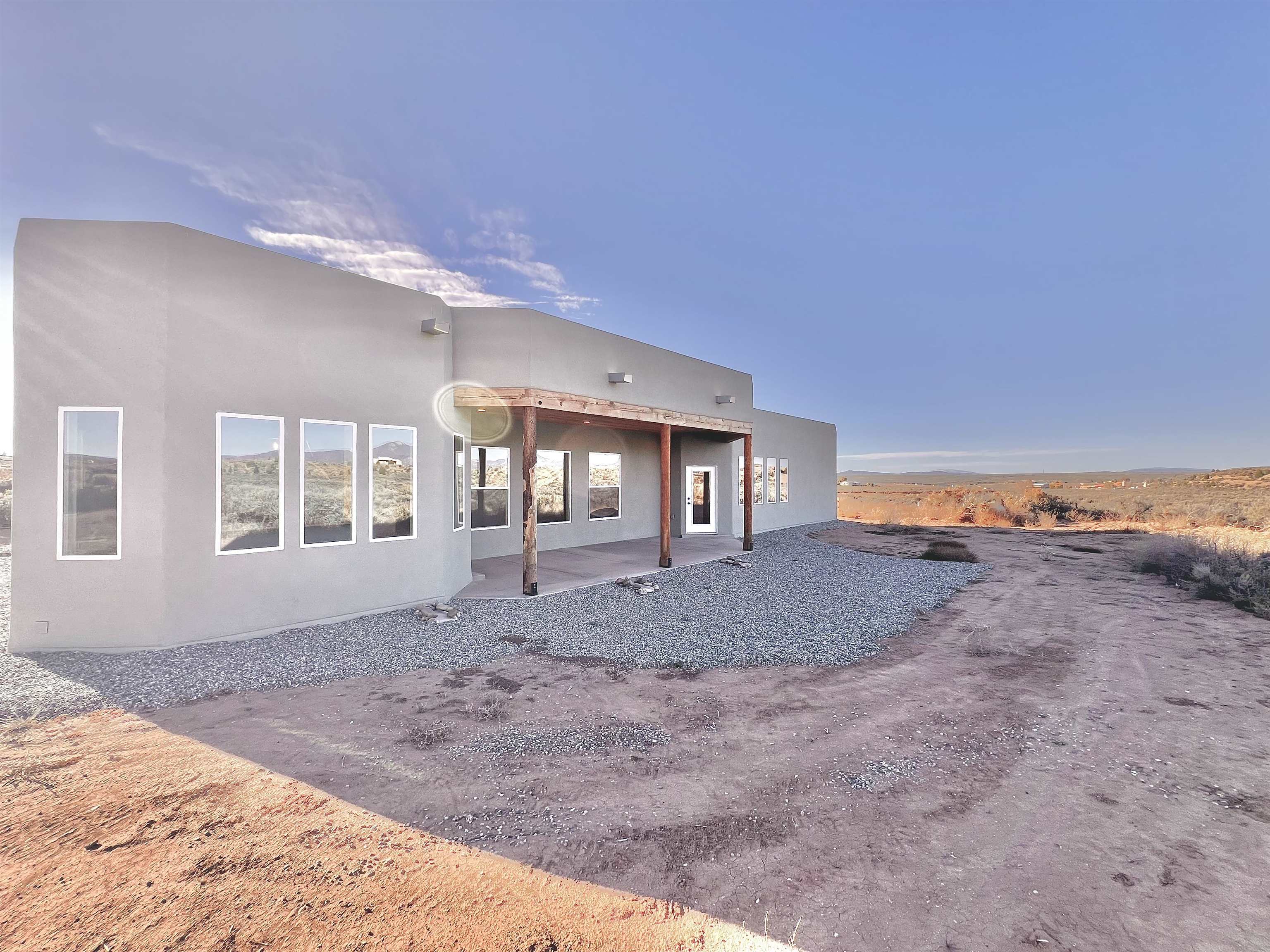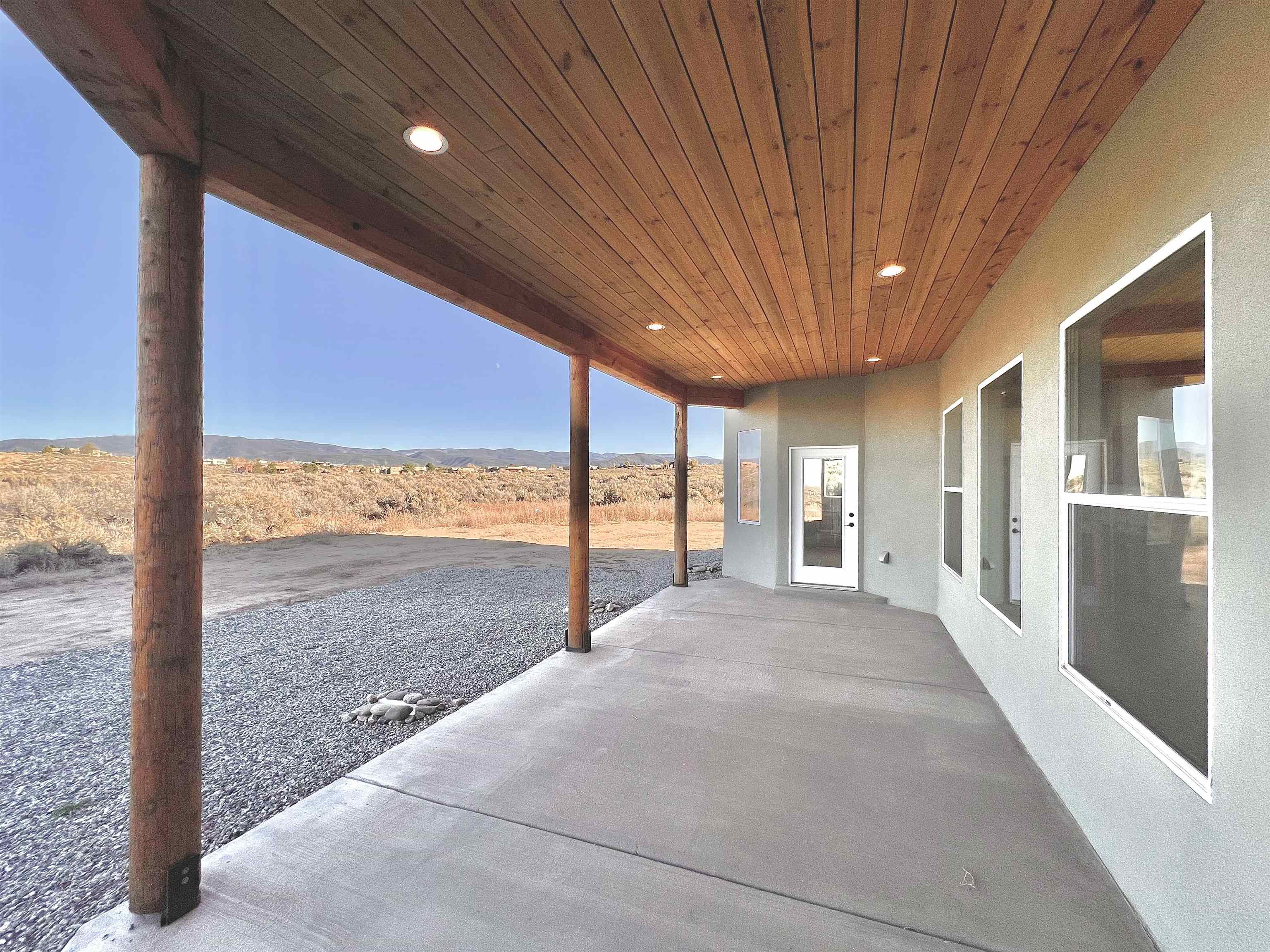 Discover a rare opportunity to enjoy golf-course living without the constraints of HOA dues or restrictive covenants. Positioned along the outskirts of the 3rd fairway at the renowned Taos Country Club Golf Course, this newly built custom residence captures the essence of upscale desert living—serene, sophisticated, and surrounded by breathtaking natural beauty. Set on 1.27 expansive acres, the home offers unobstructed panoramic views of the Sangre de Cristo Mountains, the dramatic Taos Valley, and the rugged Rio Pueblo Gorge. Outdoor enthusiasts will appreciate immediate access to world-class hiking, biking, and the nearby UNM Taos Klauer Campus—all while enjoying the ease of a quick southbound drive toward Santa Fe. Crafted in an elegant pueblo-inspired architectural style, the home showcases impeccable workmanship and timeless Southwestern design. Inside, 2,430 square feet of refined living space features hand-laid tile floors, tongue-and-groove and beam ceilings, Diamond Finish plaster walls, and select-pine custom cabinetry. High ceilings and strategically placed windows flood the interior with natural light, capturing sunrise, sunset, and mountain vistas from multiple rooms. The gourmet kitchen serves as the heart of the home, appointed with granite countertops, a high-tech gas range with built-in air-fryer, and large picture windows framing unforgettable views. The living room is equally inviting, anchored by a beautifully designed fireplace that adds warmth and ambiance to the space. With four bedrooms and two and a half baths, the home thoughtfully balances luxury with functionality. The primary suite features privacy and comfort, while the additional bedrooms, elegantly carpeted, provide versatility for family or guests. The residence is engineered for year-round comfort with central heating, refrigerated air, a TPO roof with attic insulation, and a tankless water heater for efficiency. Modern convenience continues with smart-home technology that allows remote control of the garage doors, climate systems, and water heater. An oversized two-car garage with an insulated 8’ x 16’ door ensures vehicles and gear are protected from the elements, completing this exceptional property. Experience luxury, privacy, and panoramic beauty—without compromise. Schedule your private viewing and discover a home that stands apart in one of Taos’s most coveted settings.