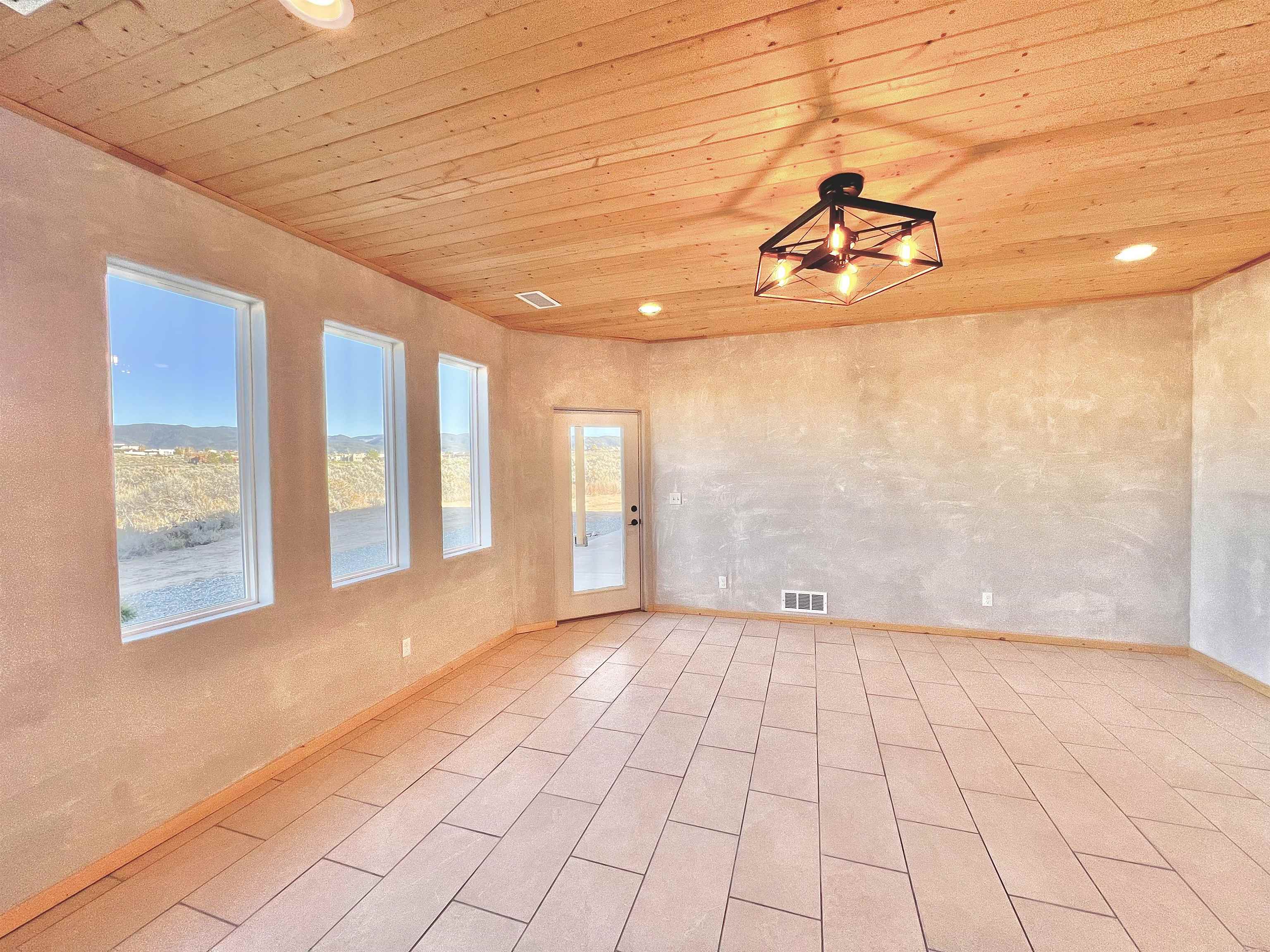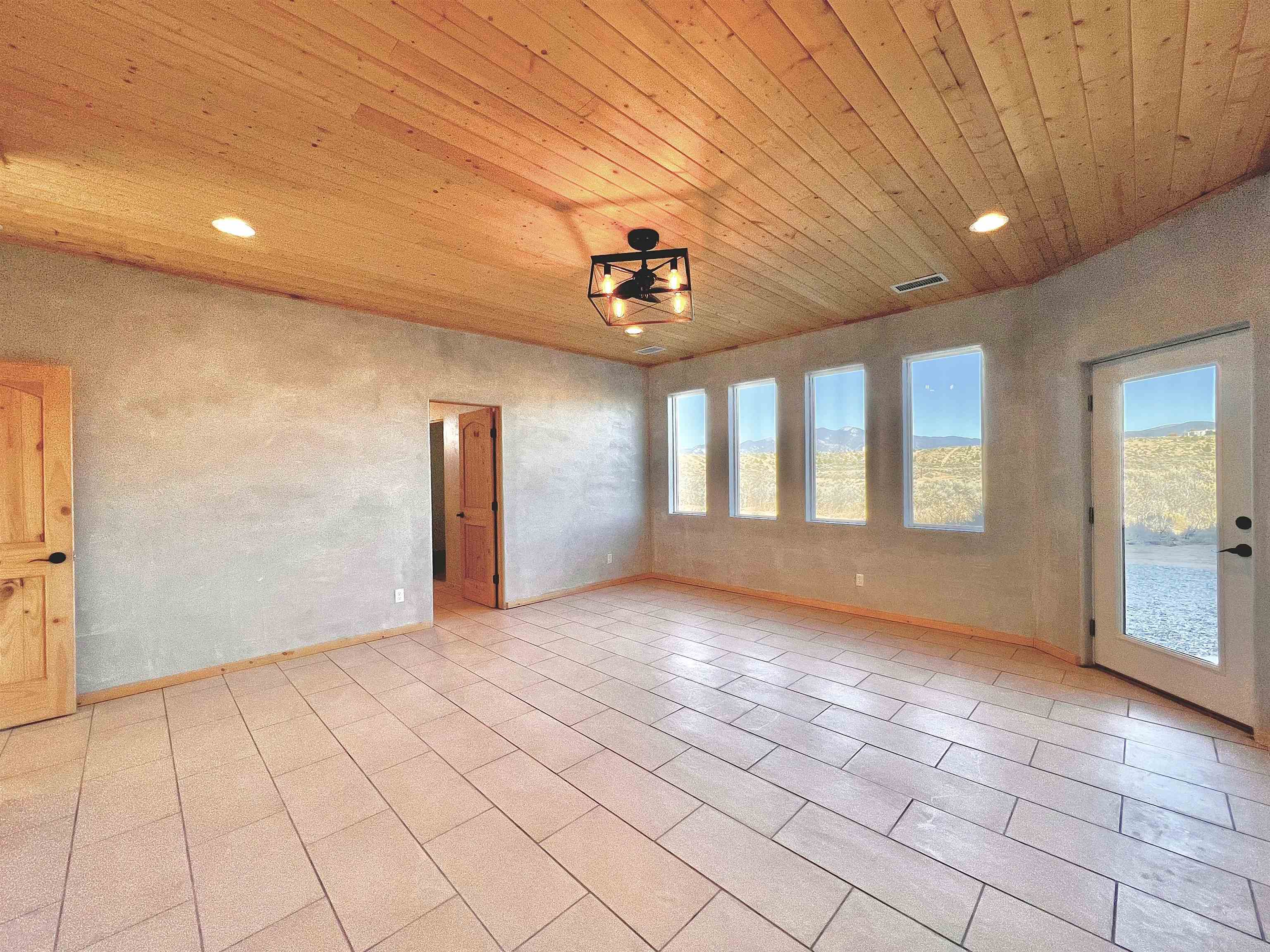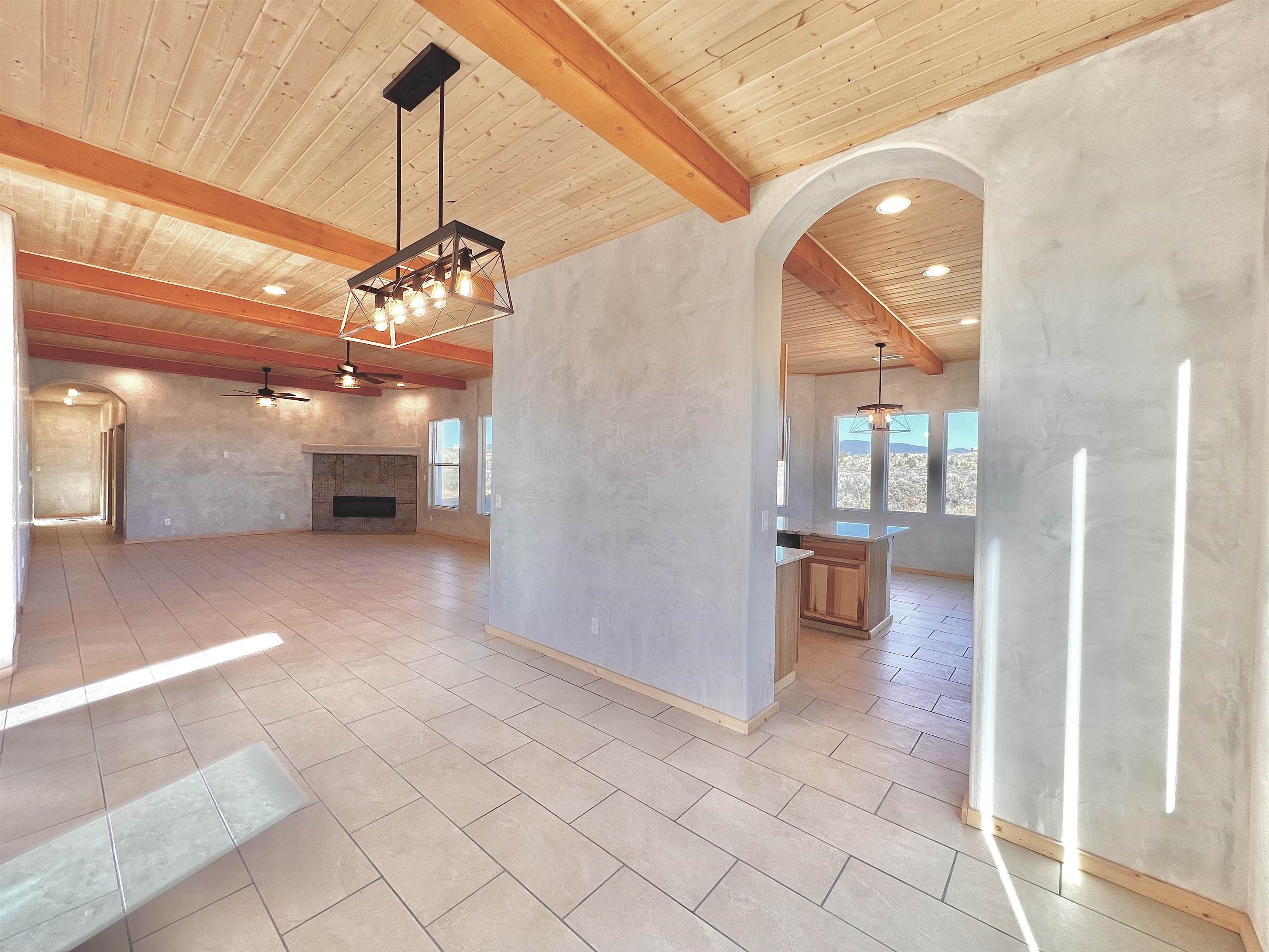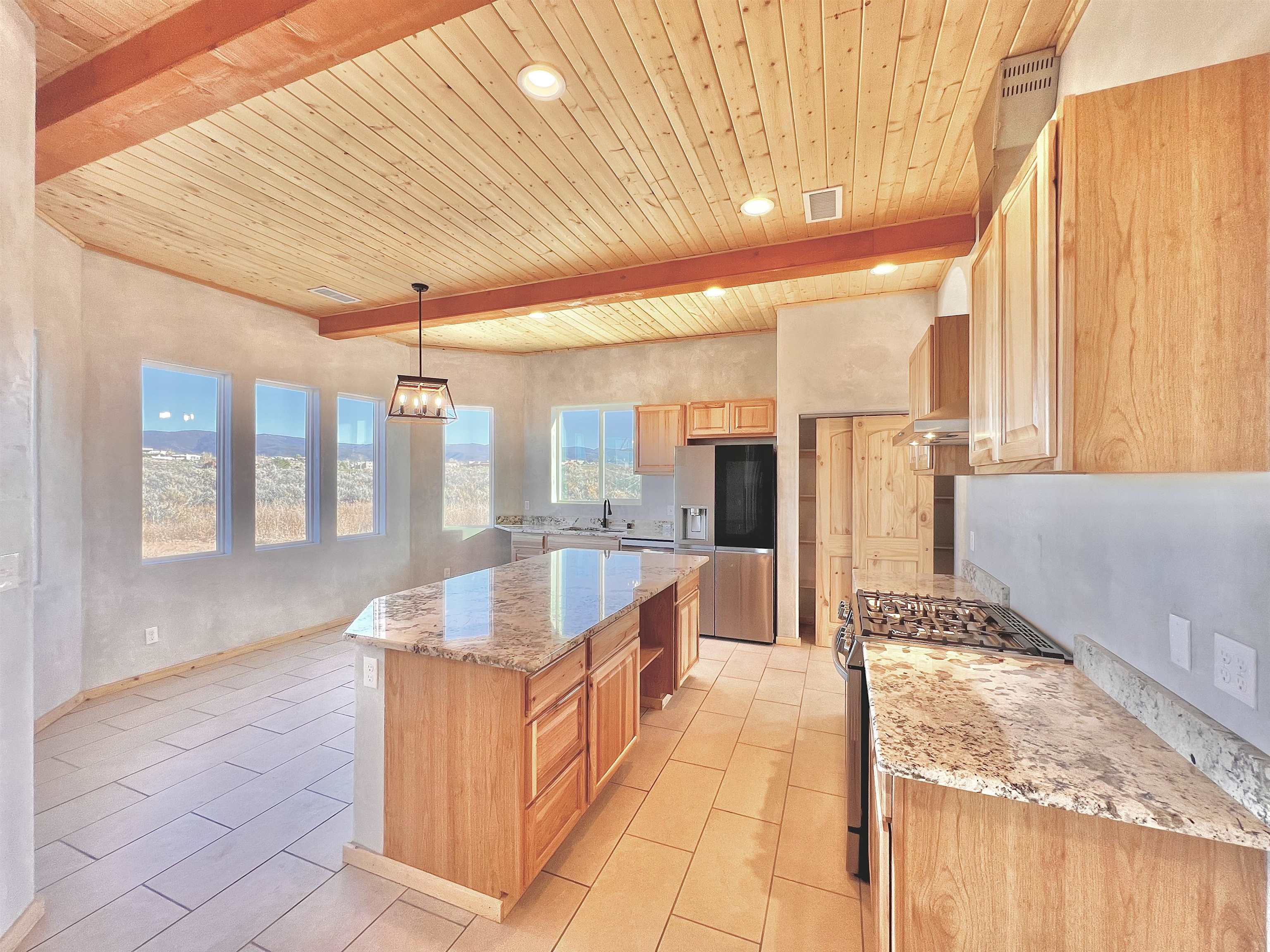 Discover a rare opportunity to enjoy golf-course living without the constraints of HOA dues or restrictive covenants. Positioned along the outskirts of the 3rd fairway at the renowned Taos Country Club Golf Course, this newly built custom residence captures the essence of upscale desert living—serene, sophisticated, and surrounded by breathtaking natural beauty. Set on 1.27 expansive acres, the home offers unobstructed panoramic views of the Sangre de Cristo Mountains, the dramatic Taos Valley, and the rugged Rio Pueblo Gorge. Outdoor enthusiasts will appreciate immediate access to world-class hiking, biking, and the nearby UNM Taos Klauer Campus—all while enjoying the ease of a quick southbound drive toward Santa Fe. Crafted in an elegant pueblo-inspired architectural style, the home showcases impeccable workmanship and timeless Southwestern design. Inside, 2,430 square feet of refined living space features hand-laid tile floors, tongue-and-groove and beam ceilings, Diamond Finish plaster walls, and select-pine custom cabinetry. High ceilings and strategically placed windows flood the interior with natural light, capturing sunrise, sunset, and mountain vistas from multiple rooms. The gourmet kitchen serves as the heart of the home, appointed with granite countertops, a high-tech gas range with built-in air-fryer, and large picture windows framing unforgettable views. The living room is equally inviting, anchored by a beautifully designed fireplace that adds warmth and ambiance to the space. With four bedrooms and two and a half baths, the home thoughtfully balances luxury with functionality. The primary suite features privacy and comfort, while the additional bedrooms, elegantly carpeted, provide versatility for family or guests. The residence is engineered for year-round comfort with central heating, refrigerated air, a TPO roof with attic insulation, and a tankless water heater for efficiency. Modern convenience continues with smart-home technology that allows remote control of the garage doors, climate systems, and water heater. An oversized two-car garage with an insulated 8’ x 16’ door ensures vehicles and gear are protected from the elements, completing this exceptional property. Experience luxury, privacy, and panoramic beauty—without compromise. Schedule your private viewing and discover a home that stands apart in one of Taos’s most coveted settings.