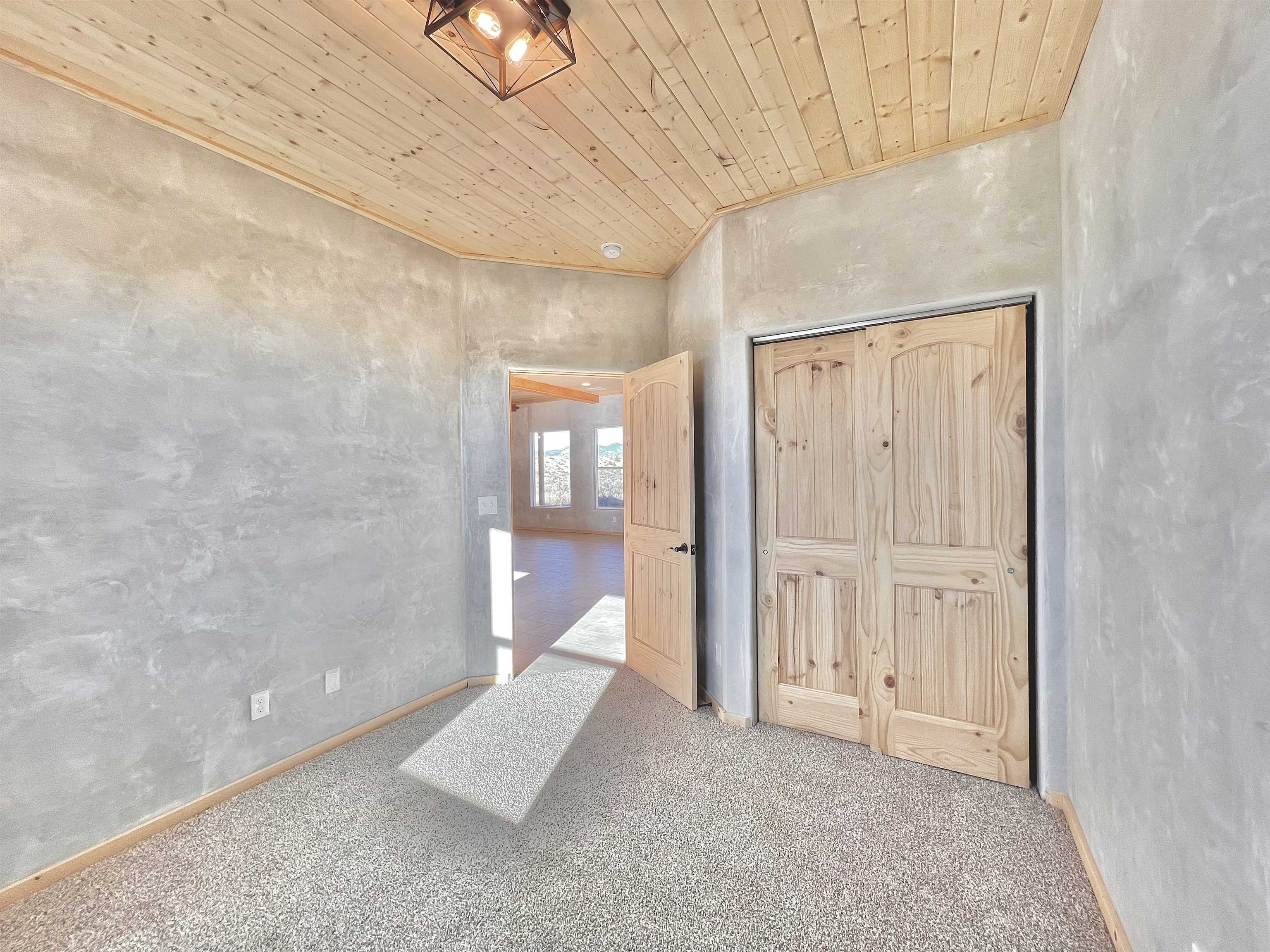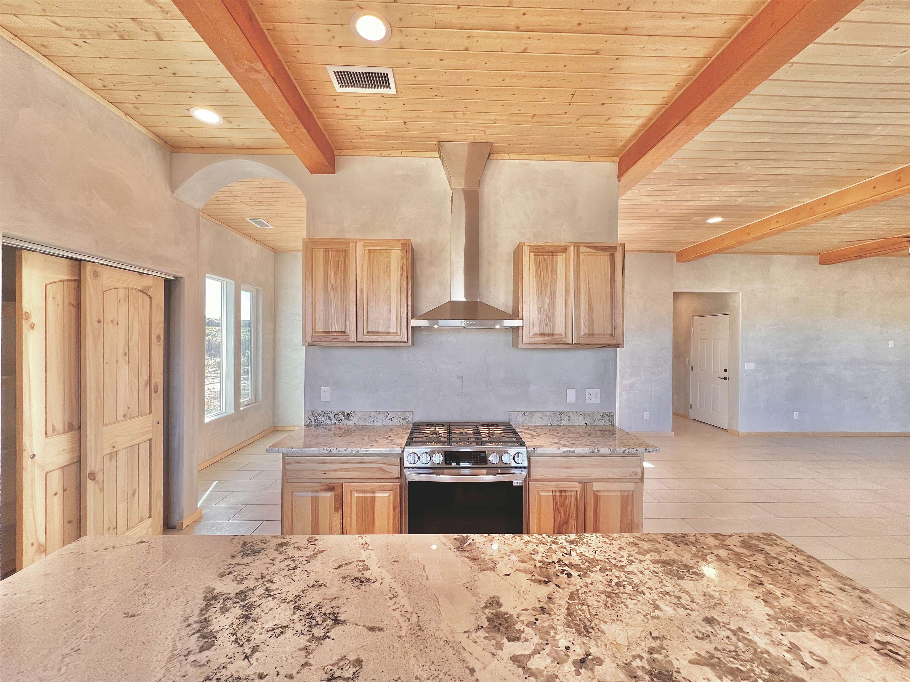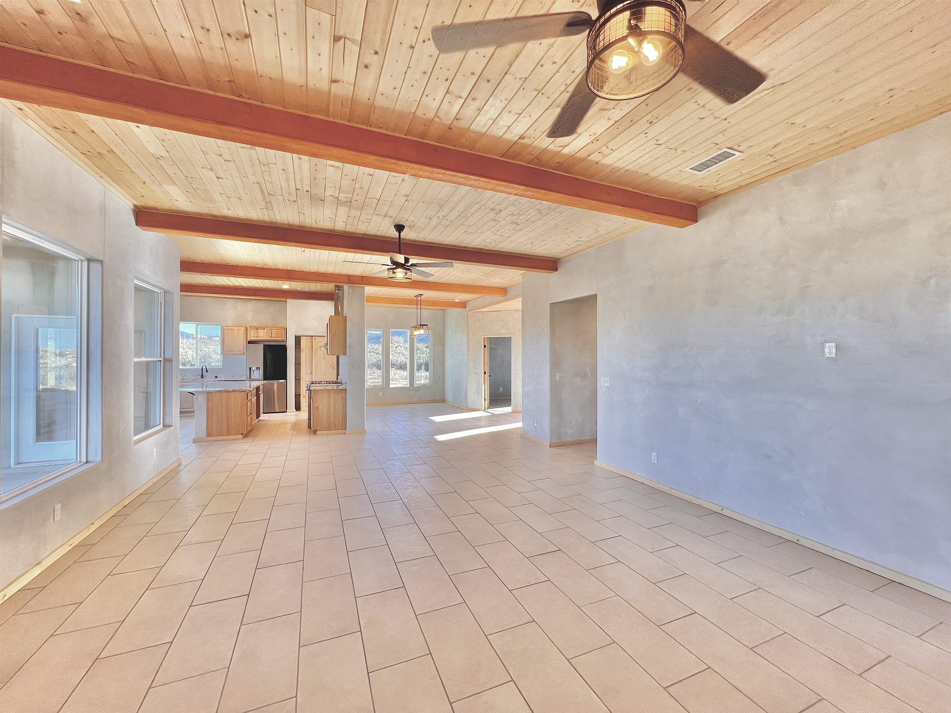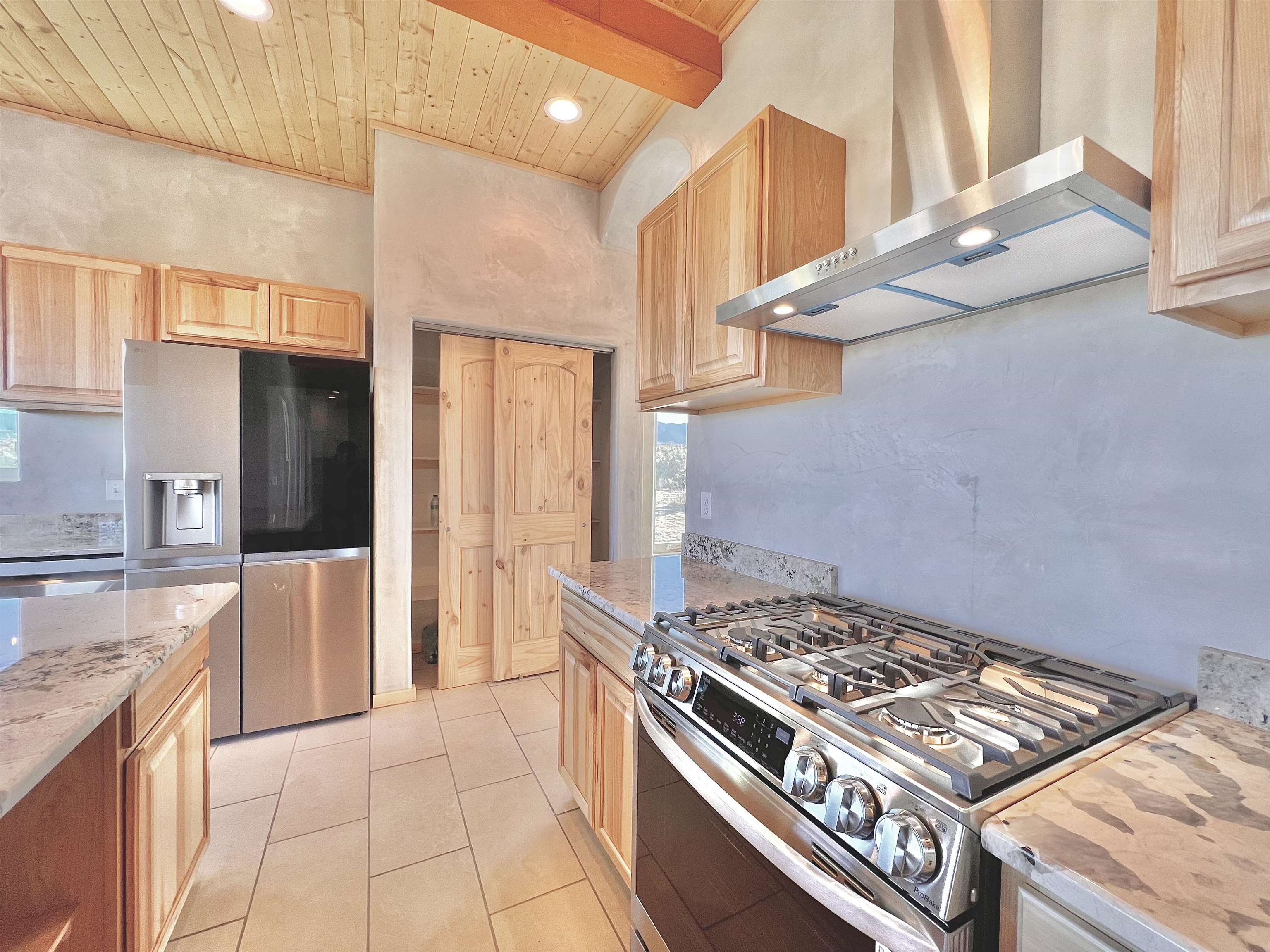 Discover a rare opportunity to enjoy golf-course living without the constraints of HOA dues or restrictive covenants. Positioned along the outskirts of the 3rd fairway at the renowned Taos Country Club Golf Course, this newly built custom residence captures the essence of upscale desert living—serene, sophisticated, and surrounded by breathtaking natural beauty. Set on 1.27 expansive acres, the home offers unobstructed panoramic views of the Sangre de Cristo Mountains, the dramatic Taos Valley, and the rugged Rio Pueblo Gorge. Outdoor enthusiasts will appreciate immediate access to world-class hiking, biking, and the nearby UNM Taos Klauer Campus—all while enjoying the ease of a quick southbound drive toward Santa Fe. Crafted in an elegant pueblo-inspired architectural style, the home showcases impeccable workmanship and timeless Southwestern design. Inside, 2,430 square feet of refined living space features hand-laid tile floors, tongue-and-groove and beam ceilings, Diamond Finish plaster walls, and select-pine custom cabinetry. High ceilings and strategically placed windows flood the interior with natural light, capturing sunrise, sunset, and mountain vistas from multiple rooms. The gourmet kitchen serves as the heart of the home, appointed with granite countertops, a high-tech gas range with built-in air-fryer, and large picture windows framing unforgettable views. The living room is equally inviting, anchored by a beautifully designed fireplace that adds warmth and ambiance to the space. With four bedrooms and two and a half baths, the home thoughtfully balances luxury with functionality. The primary suite features privacy and comfort, while the additional bedrooms, elegantly carpeted, provide versatility for family or guests. The residence is engineered for year-round comfort with central heating, refrigerated air, a TPO roof with attic insulation, and a tankless water heater for efficiency. Modern convenience continues with smart-home technology that allows remote control of the garage doors, climate systems, and water heater. An oversized two-car garage with an insulated 8’ x 16’ door ensures vehicles and gear are protected from the elements, completing this exceptional property. Experience luxury, privacy, and panoramic beauty—without compromise. Schedule your private viewing and discover a home that stands apart in one of Taos’s most coveted settings.