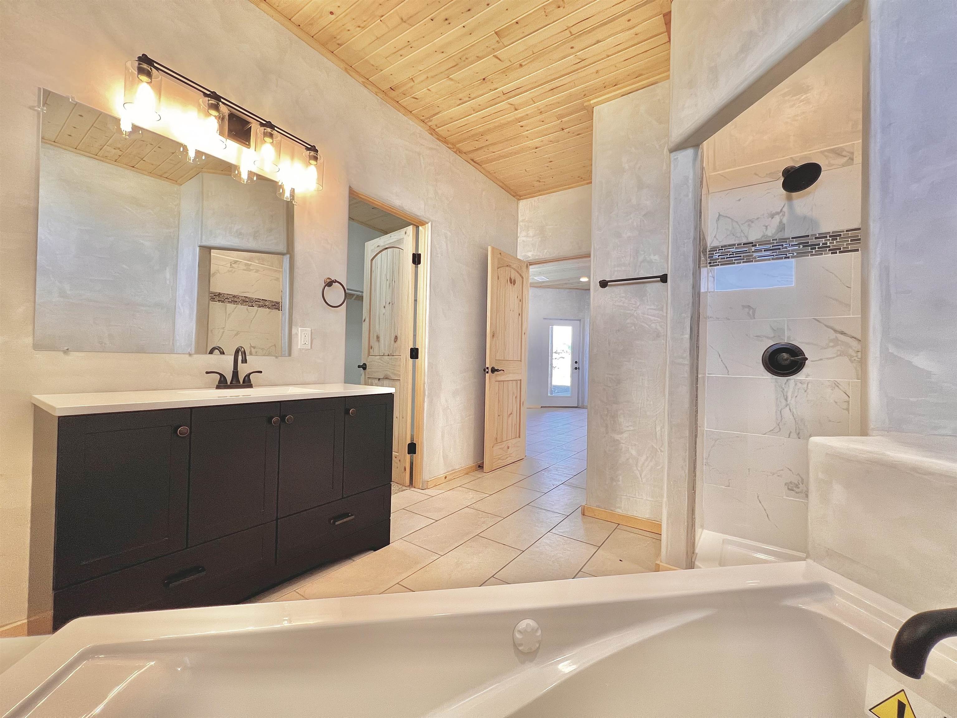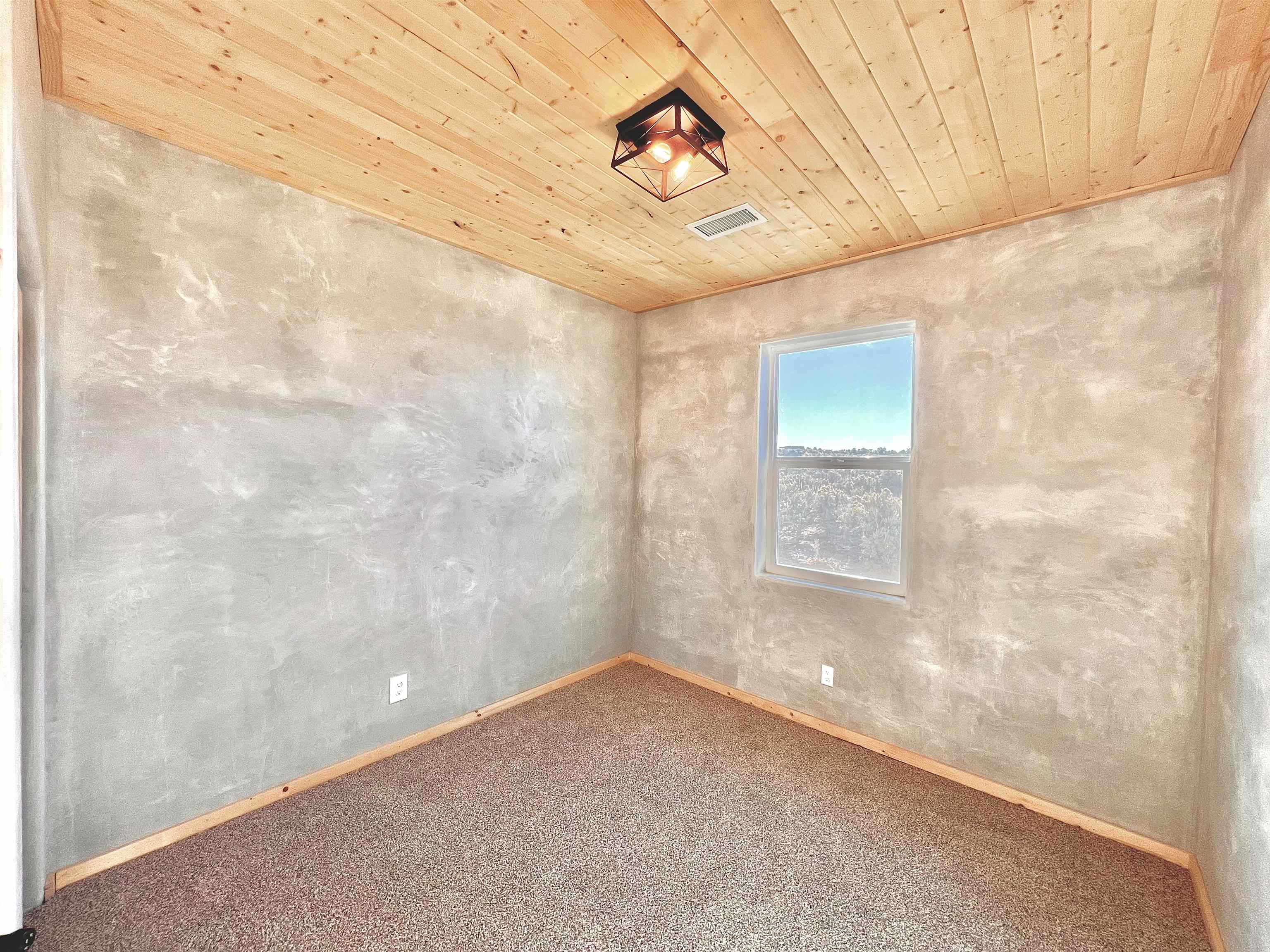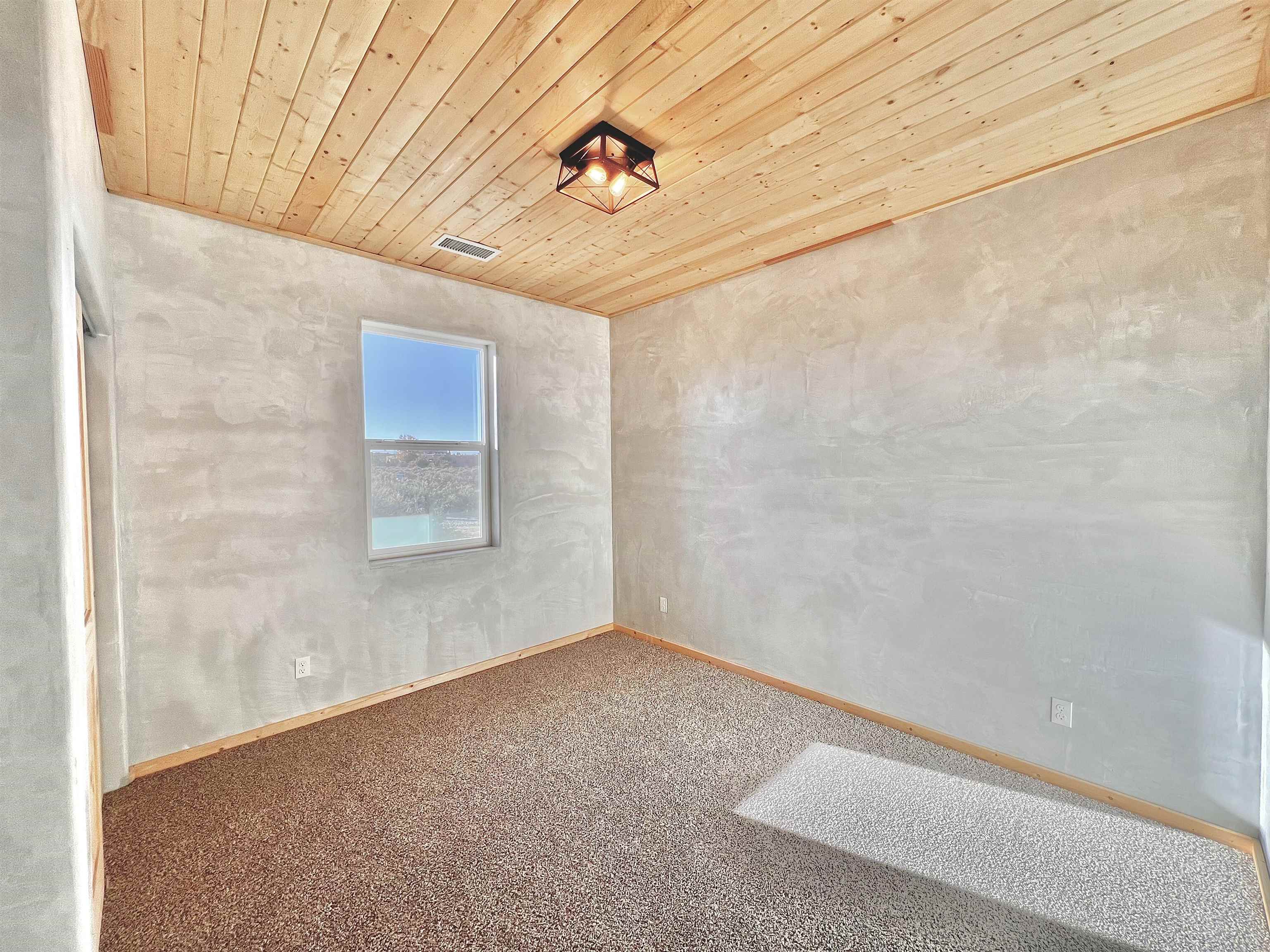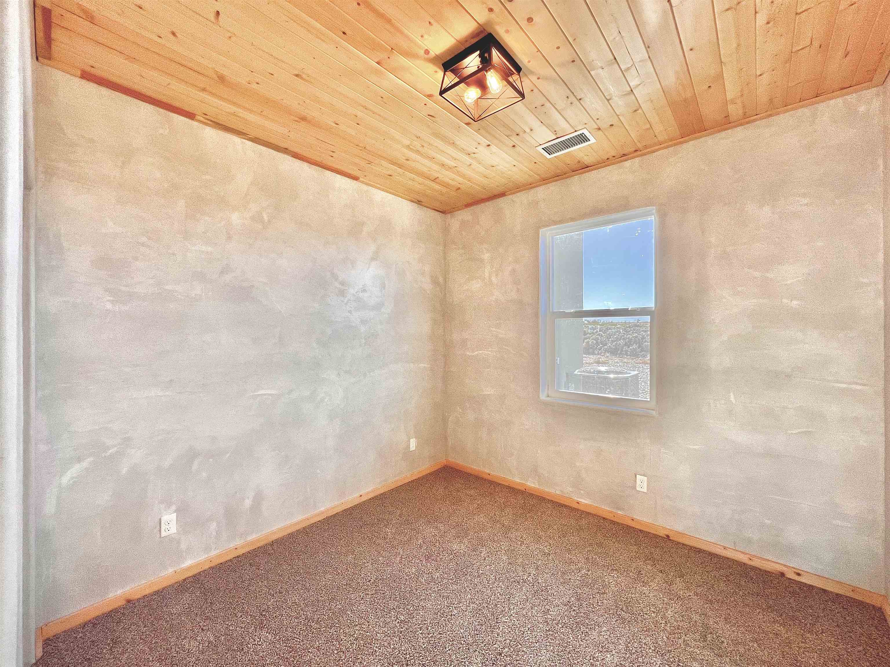 Discover a rare opportunity to enjoy golf-course living without the constraints of HOA dues or restrictive covenants. Positioned along the outskirts of the 3rd fairway at the renowned Taos Country Club Golf Course, this newly built custom residence captures the essence of upscale desert living—serene, sophisticated, and surrounded by breathtaking natural beauty. Set on 1.27 expansive acres, the home offers unobstructed panoramic views of the Sangre de Cristo Mountains, the dramatic Taos Valley, and the rugged Rio Pueblo Gorge. Outdoor enthusiasts will appreciate immediate access to world-class hiking, biking, and the nearby UNM Taos Klauer Campus—all while enjoying the ease of a quick southbound drive toward Santa Fe. Crafted in an elegant pueblo-inspired architectural style, the home showcases impeccable workmanship and timeless Southwestern design. Inside, 2,430 square feet of refined living space features hand-laid tile floors, tongue-and-groove and beam ceilings, Diamond Finish plaster walls, and select-pine custom cabinetry. High ceilings and strategically placed windows flood the interior with natural light, capturing sunrise, sunset, and mountain vistas from multiple rooms. The gourmet kitchen serves as the heart of the home, appointed with granite countertops, a high-tech gas range with built-in air-fryer, and large picture windows framing unforgettable views. The living room is equally inviting, anchored by a beautifully designed fireplace that adds warmth and ambiance to the space. With four bedrooms and two and a half baths, the home thoughtfully balances luxury with functionality. The primary suite features privacy and comfort, while the additional bedrooms, elegantly carpeted, provide versatility for family or guests. The residence is engineered for year-round comfort with central heating, refrigerated air, a TPO roof with attic insulation, and a tankless water heater for efficiency. Modern convenience continues with smart-home technology that allows remote control of the garage doors, climate systems, and water heater. An oversized two-car garage with an insulated 8’ x 16’ door ensures vehicles and gear are protected from the elements, completing this exceptional property. Experience luxury, privacy, and panoramic beauty—without compromise. Schedule your private viewing and discover a home that stands apart in one of Taos’s most coveted settings.