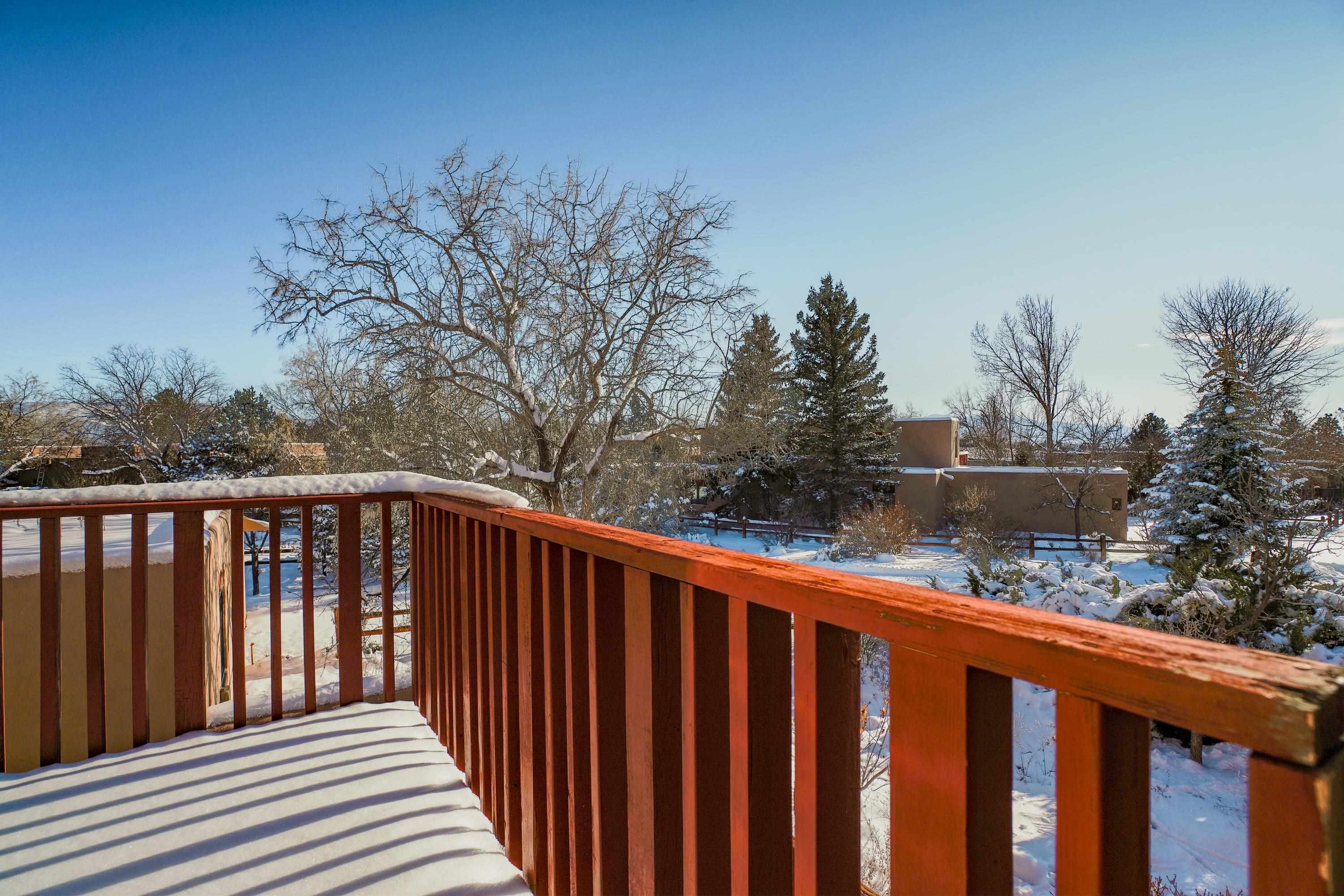 This Antoine Predock designed 2 story, 3 bed/2.5 bath, 1997 sq ft condo with a heated 1 car garage is located in the quiet cul-de-sac of Comanche Court. Part of the Quail Ridge Resort this bright and view-filled home comes with access to the Quail Ridge tennis courts and pool. Extensive renovations to the condo include, hard wood and tile floors, a new lighting package, new stainless appliances and an updated Main Bath. You enter the property through a large walled private courtyard with a 220 v Hot tub that conveys. There are decks facing east and south that give you views of Taos Mountain during both sunrise and sunset. Spacious, secluded and modernized, this condo with its own sauna and reasonable HOA fees could easily be your home or an easy-living vacation pad. Come see why folks love the northside of Taos - and the proximity to superb hiking, biking, skiing or fly fishing - located just 15 min from Taos Ski Valley, the Rio Grande at the John Dunn Bridge or from the center of Taos and the shops and museums and art that you love so well.