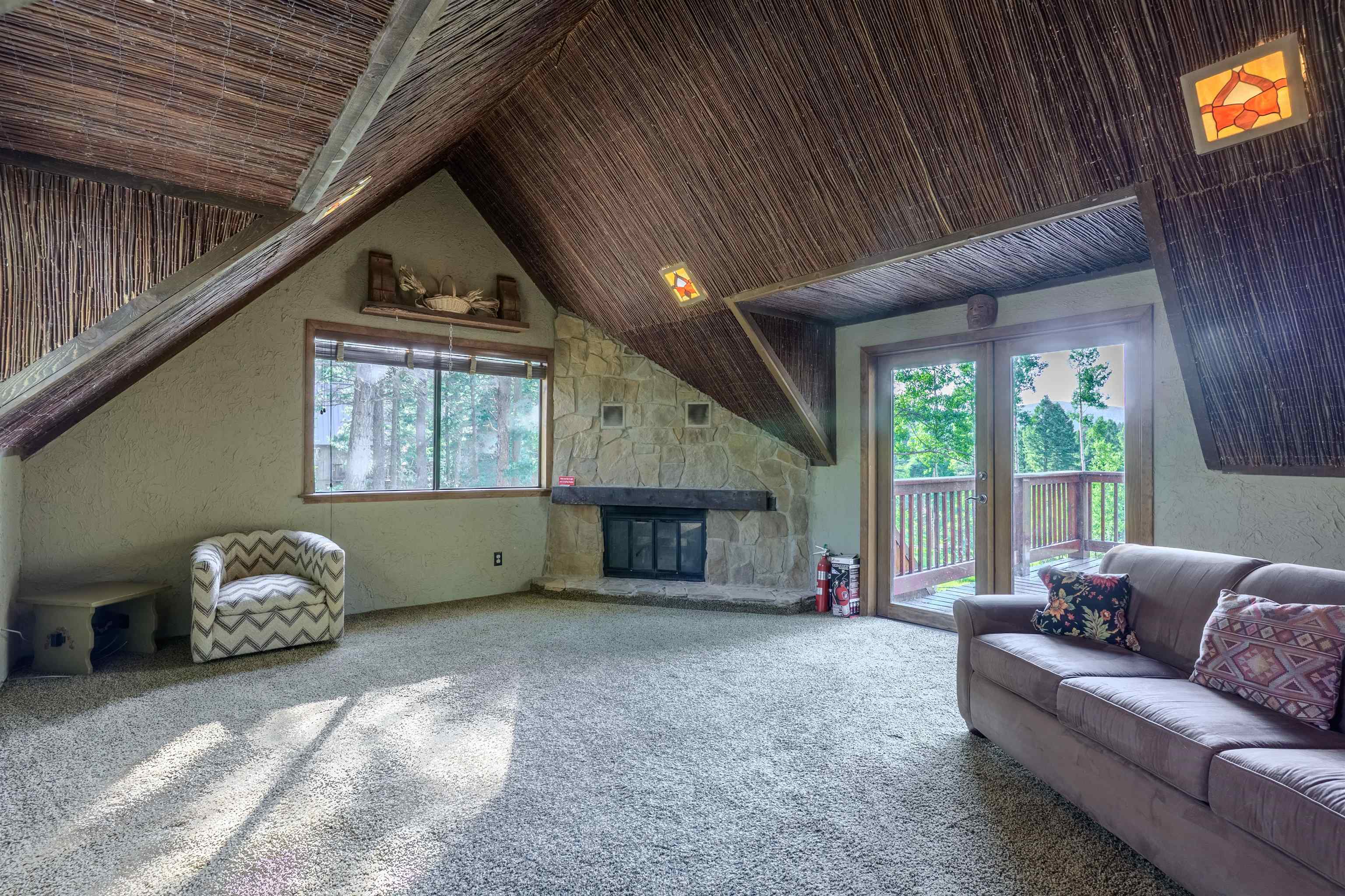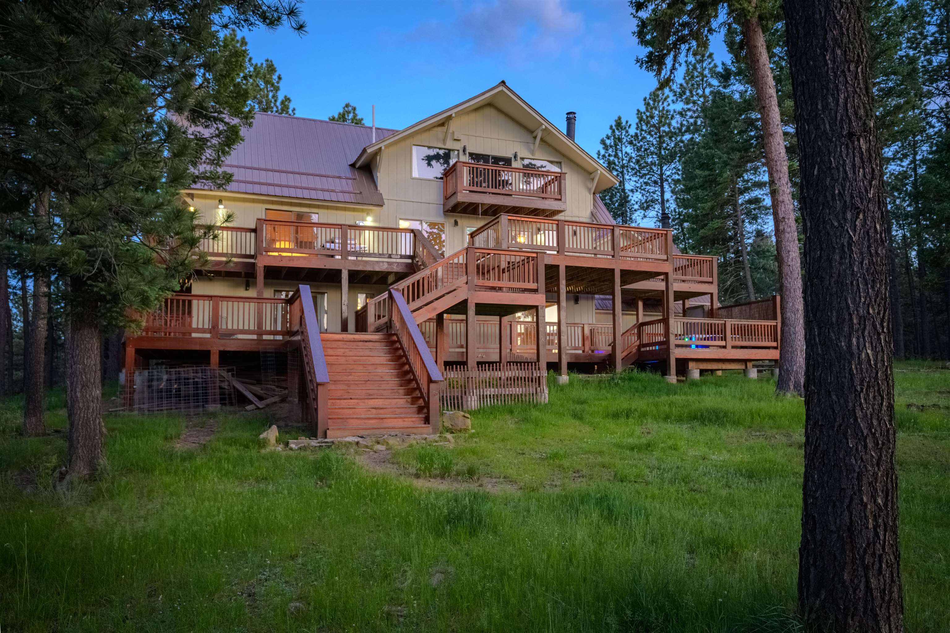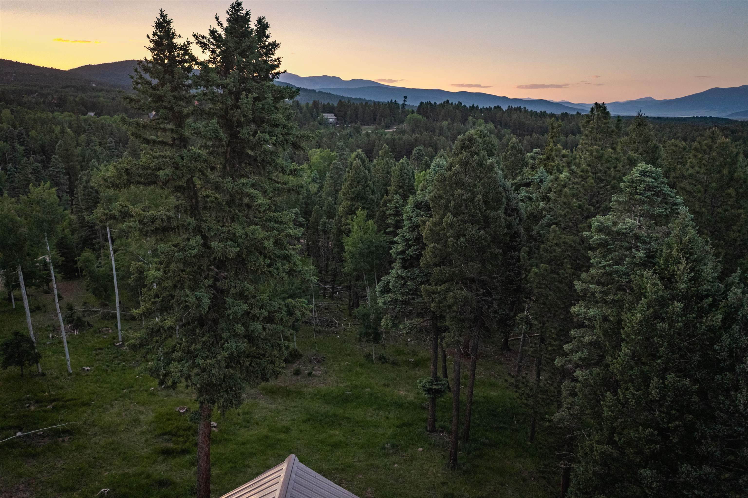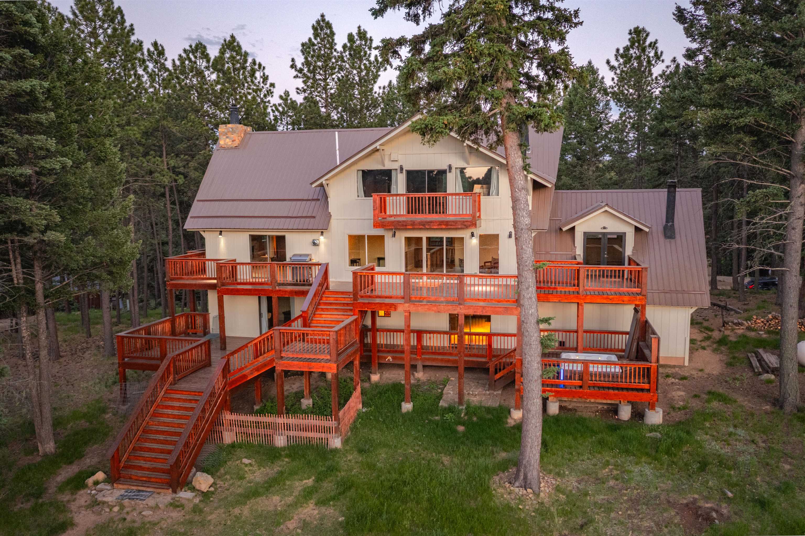 Magic in the Angel Fire Forest ~ This extraordinary Angel Fire home, originally designed and built for the renowned Western artist Gary Niblett, offers a rare chance to own a piece of local history, blending artistic vision with true mountain living. From its warm, south-facing exposure, the home captures beautiful views of Wheeler Peak inviting the majesty of the outdoors inside through massive walls of glass and vibrant stained glass windows. The interior boasts features like red willow ceilings and wall coverings, adding a rustic elegance to its four distinct living areas, three of which feature natural rock fireplaces perfect for cozy evenings. The seamless flow to the outdoors is achieved through nine doors leading to an elaborate, three-level redwood deck, ideal for entertaining or simply soaking in the serene mountain air. The lower deck even includes a private hot tub with peaceful forest views. Situated on a quiet street, this historic gem is just a stone's throw from the Angel Fire Country Club, golf course, and Monte Verde Lake, and slopes are all around the corner, making this home a perfect base for year-round adventures. This isn't just a house; it's a piece of history that awaits it's next lucky owner.