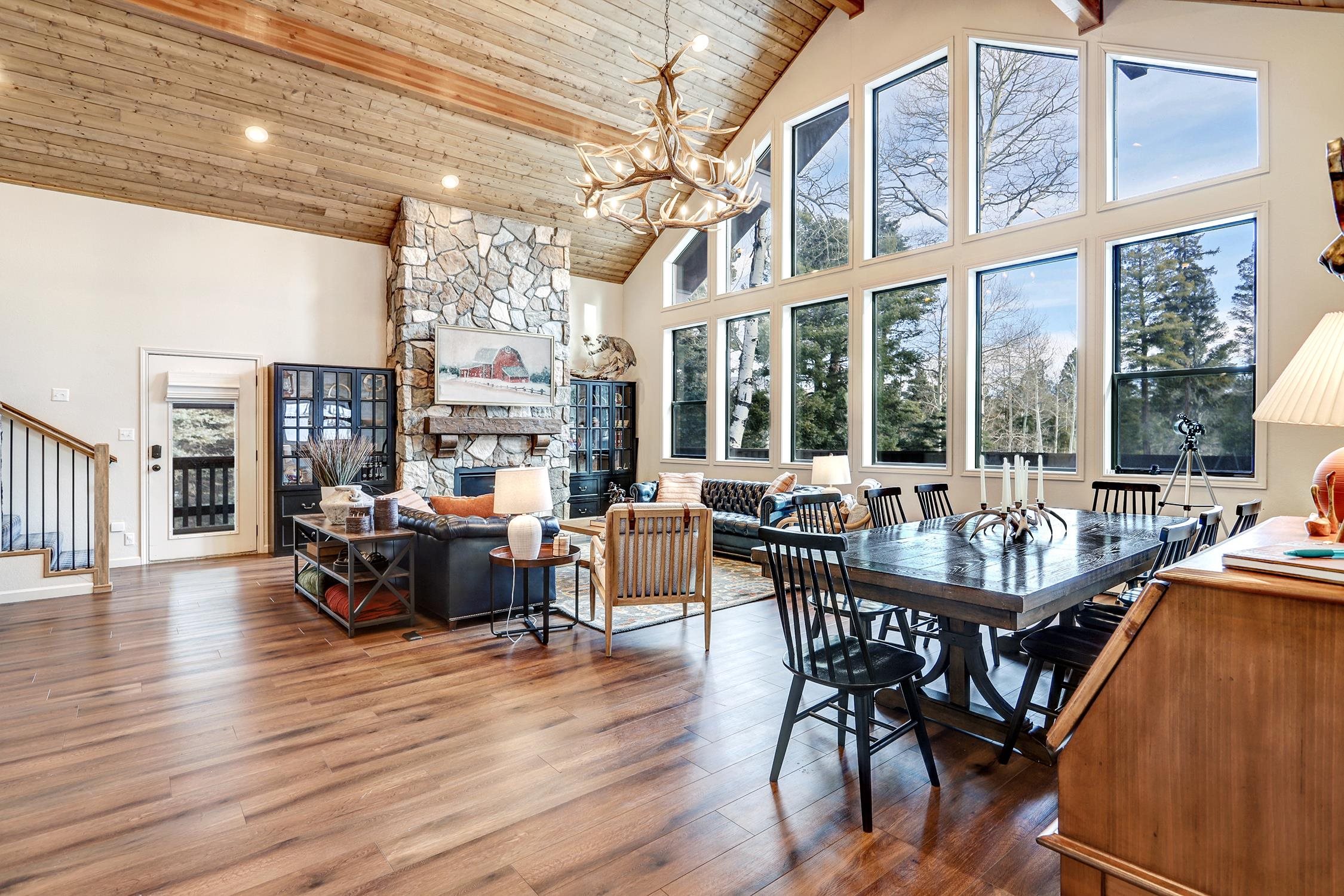 A wall of windows lets all the light in on this beautiful mountain home that has room enough for the entire family plus a few friends. The open concept kitchen, living and dining area creates an inviting atmosphere whether you're all gathering for dinner apres ski or snuggling up by the fireplace with a good book. You'll appreciate that in the last year new floors have been added, the fireplace reimagined and the kitchen opened up to improve the flow. This tastefully decorated home also offers privacy with two bedrooms and a bath on the lower level, two bedrooms and a bath on the main level and a primary suite set apart on the upper level. Just minutes to Monte Verde Lake, the Country Club and Ski Basin, this home is just waiting for you!