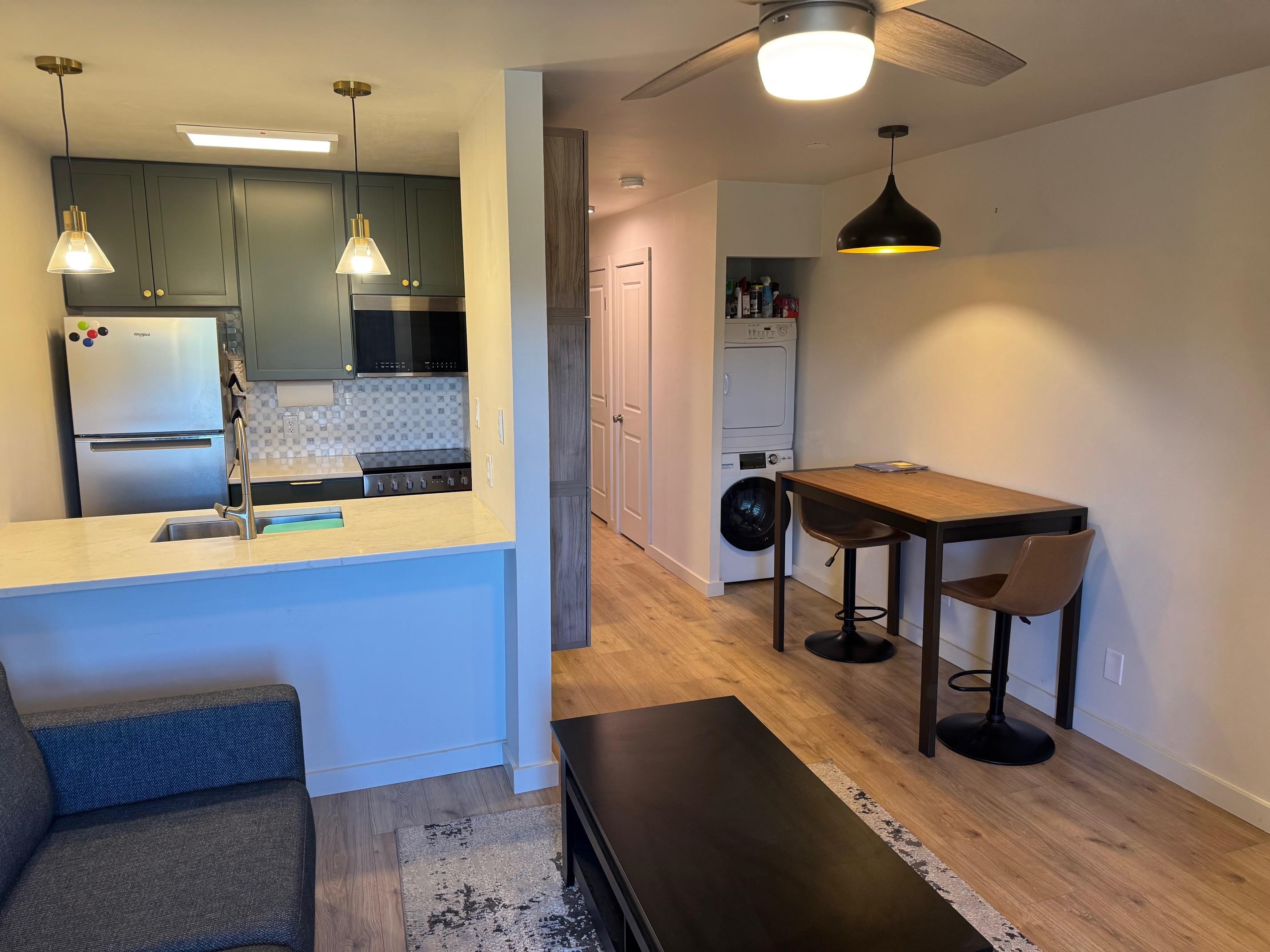 This charming totally remodeled 1 bedroom one bath unit is just 3 blocks from the Angel Fire Resort ski and mountain bike park, and just a block from the village core. You can literally walk to get anywhere you want. Perfect for a single or couple and those wanting a smaller, affordable rental investment unit that can sleep 4. Granite counter tops, new appliances, washer/dryer, tile shower and easy maintenance flooring. New gas log fireplace too! Comes completely furnished and ready for move in!