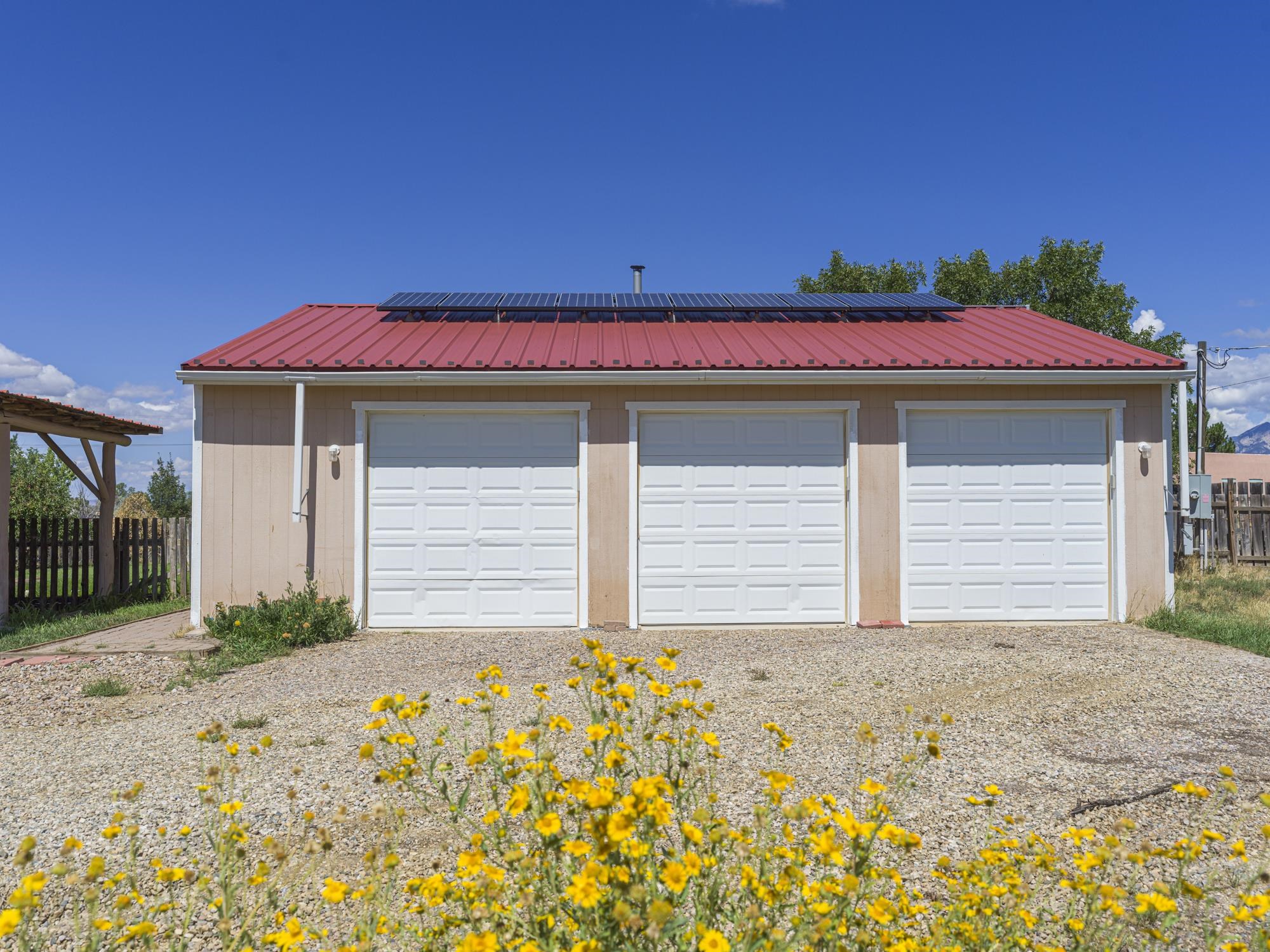 1,860 SQ FT | 3 BEDS | 2 BATHS | 1 LUSH ACRE Discover exceptional value and a legacy of self-sufficiency. Nestled in an established Taos neighborhood, this beautifully maintained 1,860-square-foot home sits on a sprawling one-acre lot. This bright and cheery residence is designed for the modern family, featuring a dedicated family room, a private office, and a finished 3-car garage. Sustainability is at the heart of this property, with solar panels that bank energy with Kit Carson to ensure remarkably low utility costs. While the home enjoys affordable community water and natural gas, a private well provides the freedom to irrigate your private orchard of apple, peach, pear, and cherry trees. The interior is filled with light and versatility. A light-filled family room offers extra storage, while a bonus room with its own entrance provides a perfect music studio, home business hub, or gym. Car enthusiasts and hobbyists will love the finished 3-car garage, complete with a wood-burning stove and ample workspace. The fully fenced yard creates a safe, private haven for children and pets to roam. Perfectly sized for hosting guests or raising a growing family, this Taos gem offers a rare combination of space, privacy, and long-term economic peace of mind.