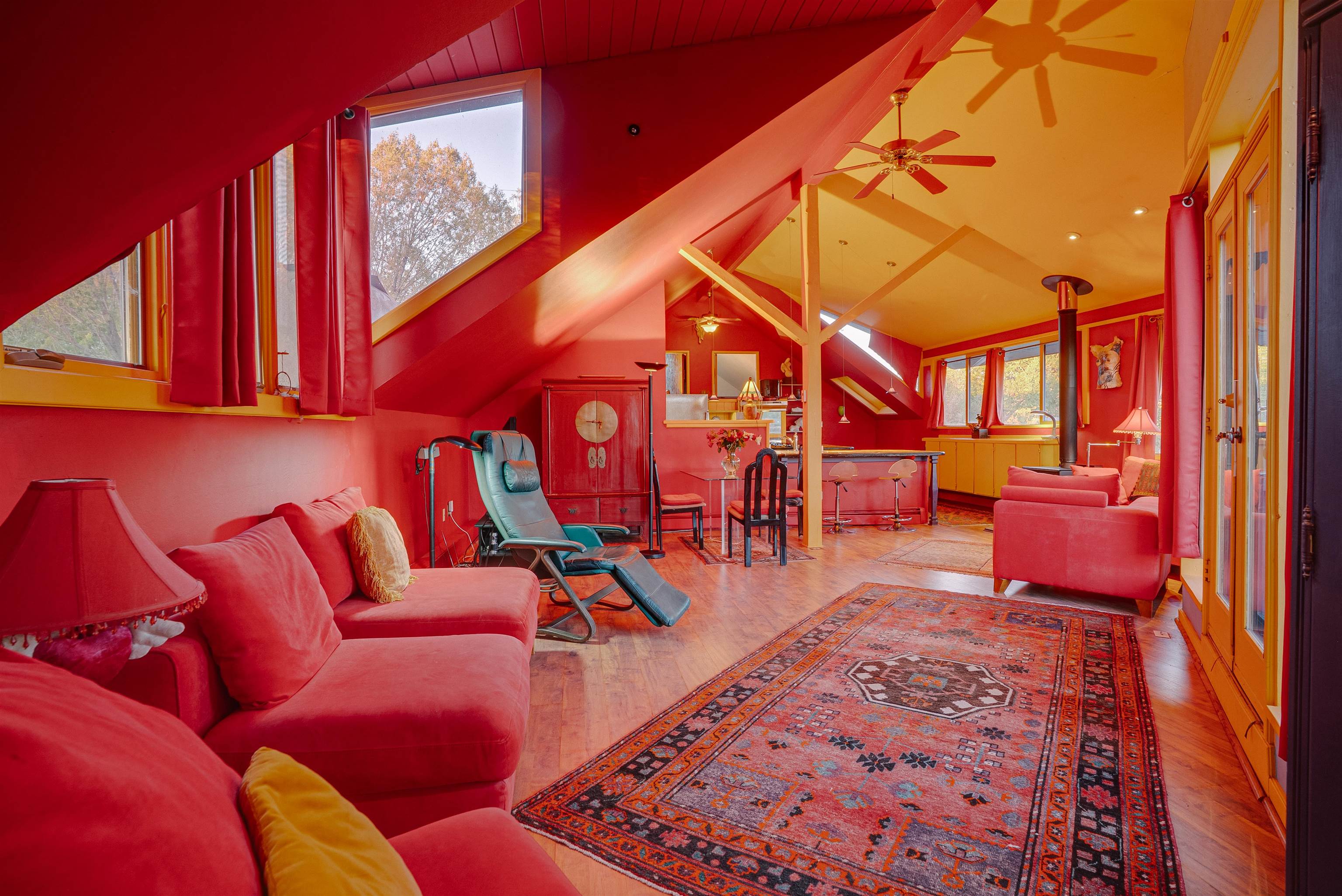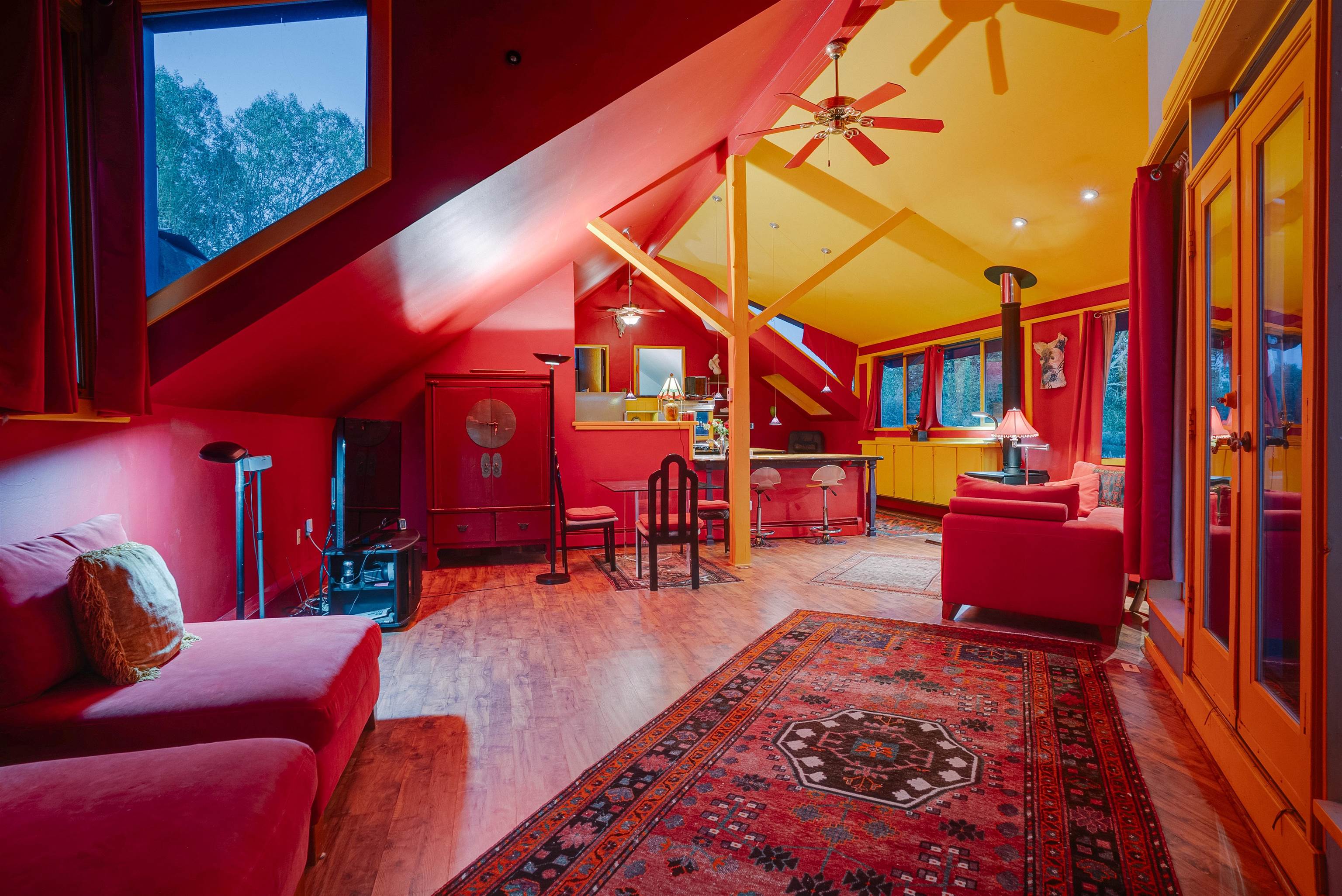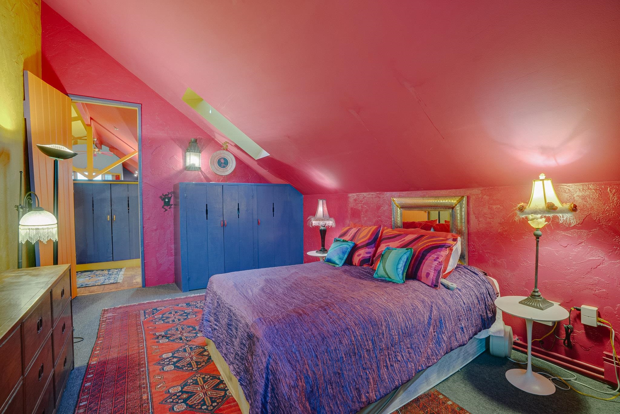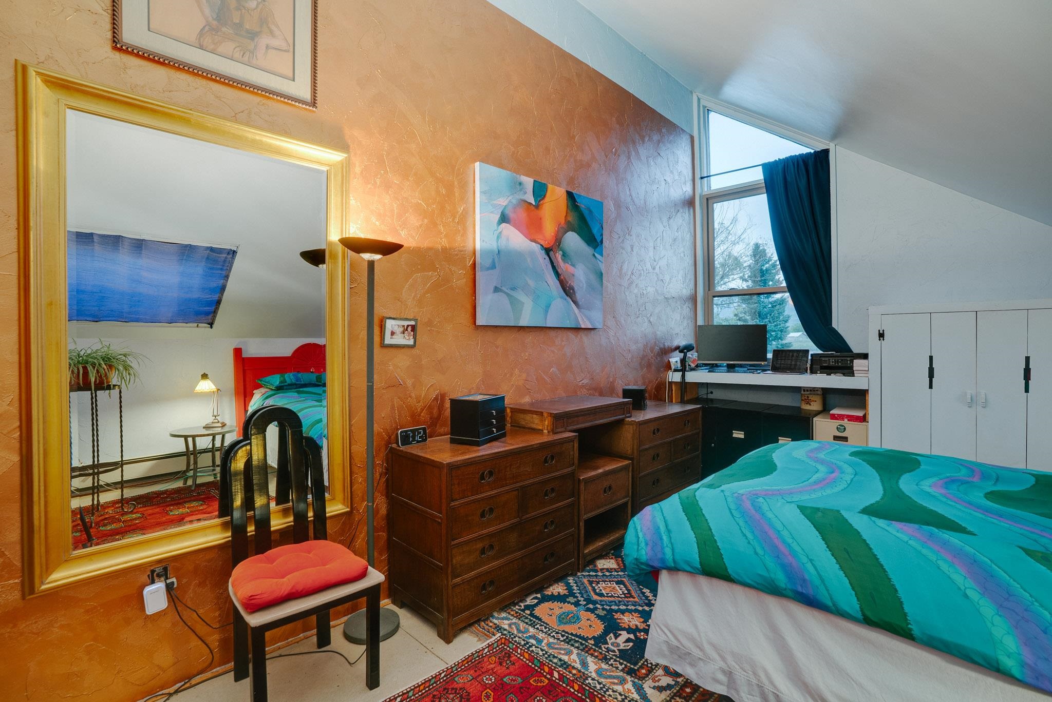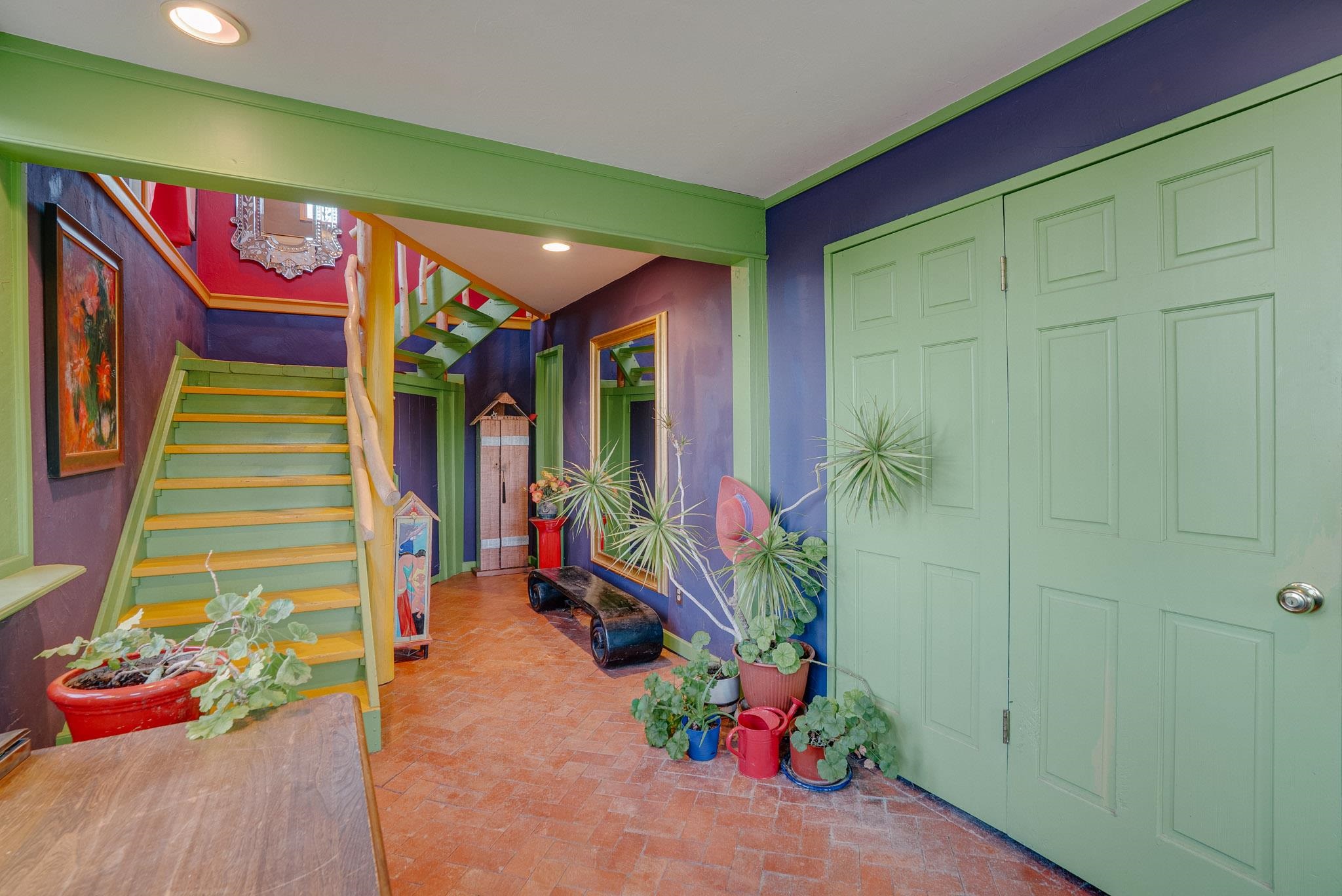 Drenched in vibrant color and situated on two acres of irrigated land in an enormously desirable location, this property, with wonderful views of both Taos Mountain and the Sangre de Cristos, invites you to bring along your imagination because 1016 La Cienega has a lot to offer its next owner. Four bedrooms/3 baths, a 4 car garage/studio space, storage, mini split, carport and more! La Cienega is one of those roads that is close to town and yet feels like it's a world away. This is a neighborhood in the true sense of the word. People watch out for one another here and yet it is quiet, private and rural with Pueblo Land on two sides. The main living space is a celebration of festive color that echos the artistic spirit of Taos. An open living room and kitchen feature vividly colored tile and very high ceilings- feeling warm and alive. In the main space there are two bedrooms and one full bath and there is also a double door that connects to an additional bedroom and bathroom on the ground level. This design offers perfect flow for entertaining- leading out to a fabulous deck to watch sunset. Then, there is an adorable one bedroom/one bath space. With convenient interior and exterior doors throughout, there are many opportunities for flex use for these spaces. Another door leads to a laundry room that could also be an office/studio/gym/yoga. In addition to all these interesting living spaces, there is a 4 car garage with electricity, additional storage area and a shed. Bring your vision, artistry and originality to this wonderful property. Call today for your private showing.