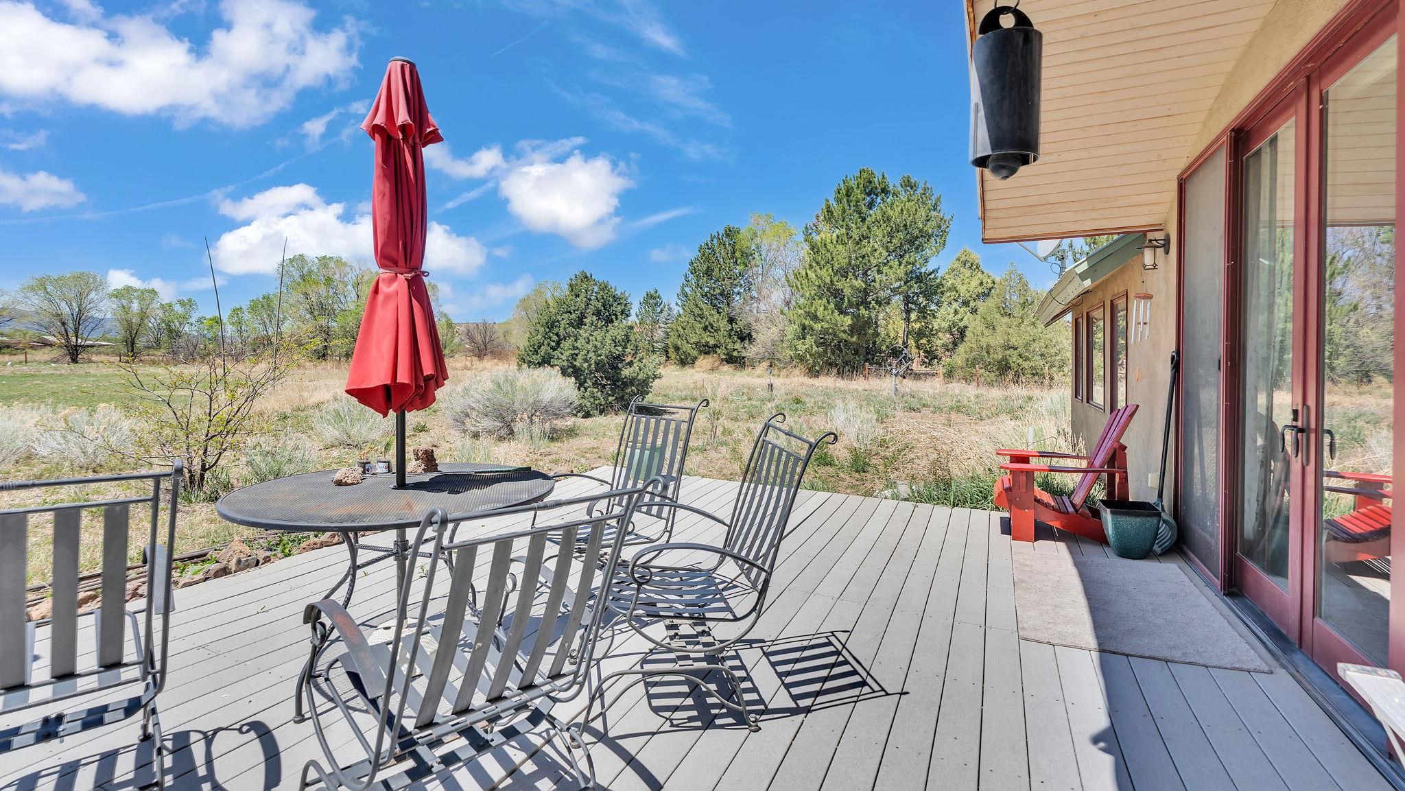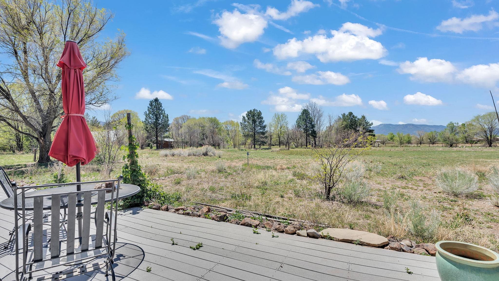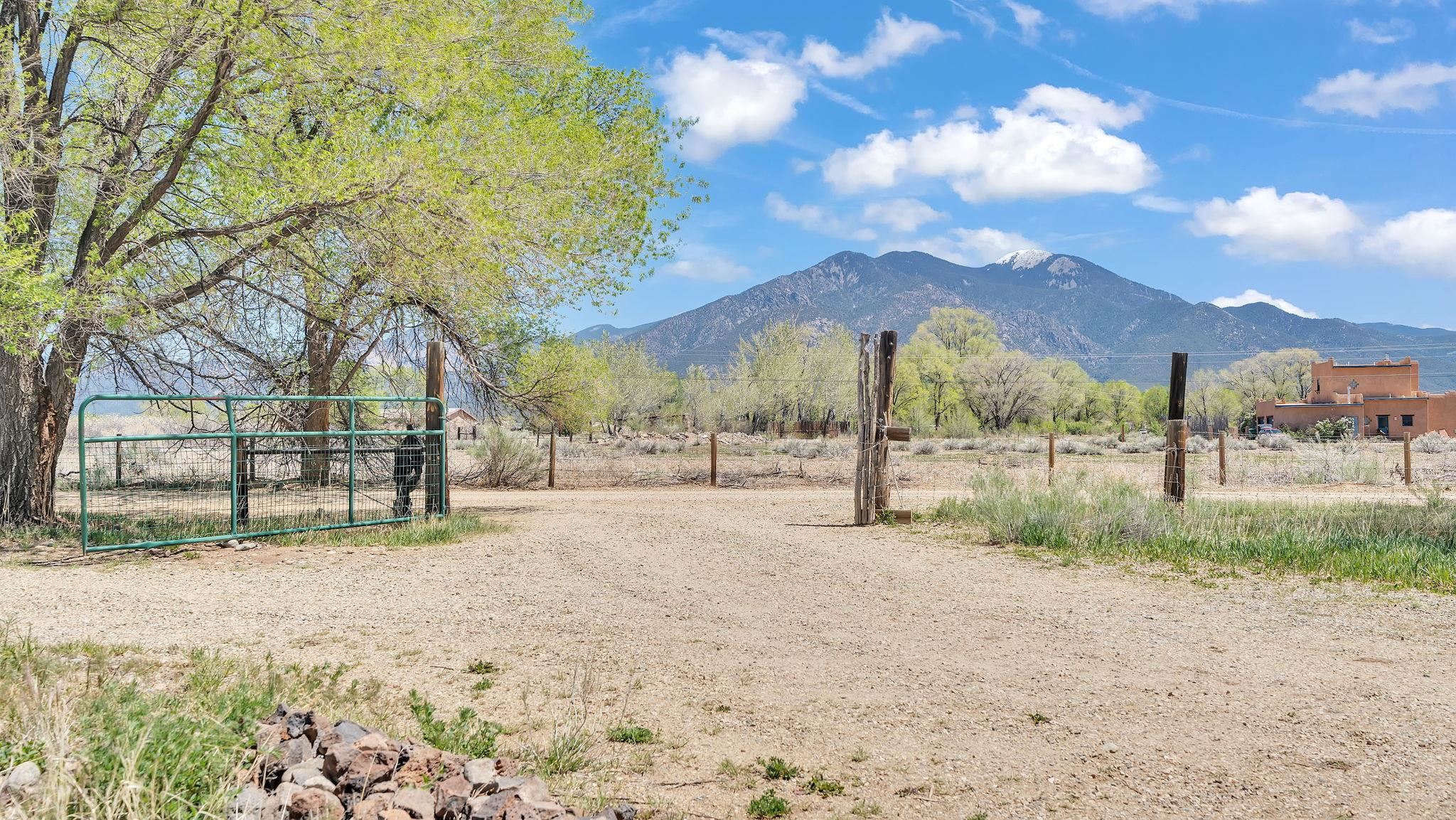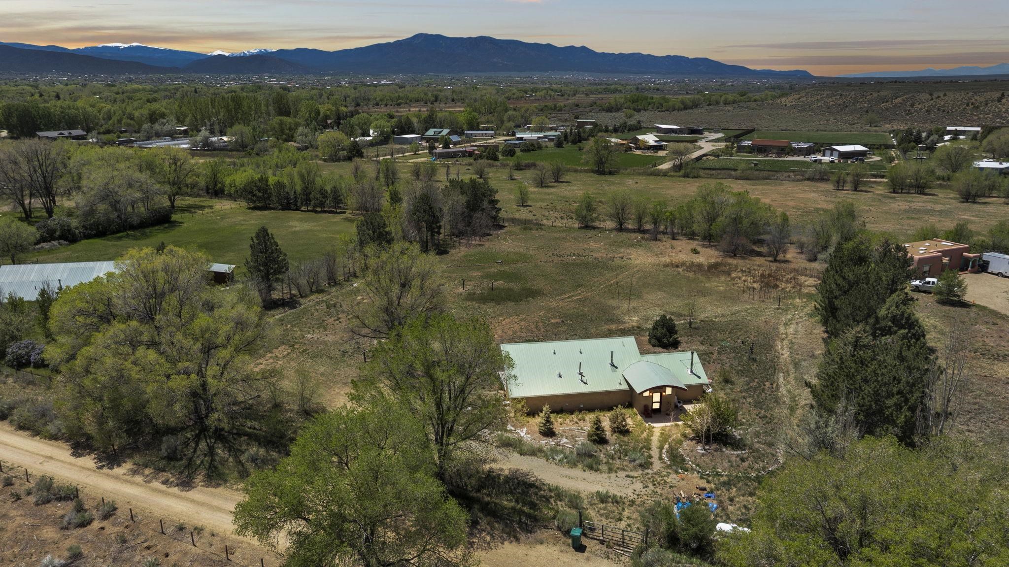 A Perfect Sanctuary in the El Prado Valley with Acequia Water Rights ~ Nestled within the tranquil El Prado valley you will find this remarkable contemporary Southwest-style home sitting on nearly 2 irrigated acres with invaluable acequia surface water rights. Surrounded by mature trees and completely enclosed by a private fence, this secure haven offers some of the most breathtaking sunset views to be enjoyed from the backyard deck. The home itself is an architectural gem that is filled with natural light that ensures efficient warmth during the colder months, accompanied by an efficient wood burning stove in the corner of the living room which keeps the whole home cozy. Additionally, the home has hot water radiant heated floors for maximum comfort and efficiency. The fully loaded kitchen is a culinary dream, equipped with stainless steel appliances, ready for you to create and share delicious memories. The unique design features a sturdy metal roof with an appropriate pitch and overhang to deter rain and snow. Outside, the expansive yard is a rare find in El Prado, offering endless possibilities for expansion, gardening, and farming. Imagine cultivating your own bountiful garden or simply enjoying the vast open space for children to play freely, and pets to roam. This property presents the perfect blend of thoughtfully designed square footage and expansive land in the heart of coveted El Prado with easy access to both Downtown Taos, and the Taos Ski Valley or Rio Grande River for fun. Don't miss this extraordinary chance to make this unique residence your own. Don't miss the opportunity to own the perfect blend of comfortable living space and expansive land in the highly coveted El Prado neighborhood.