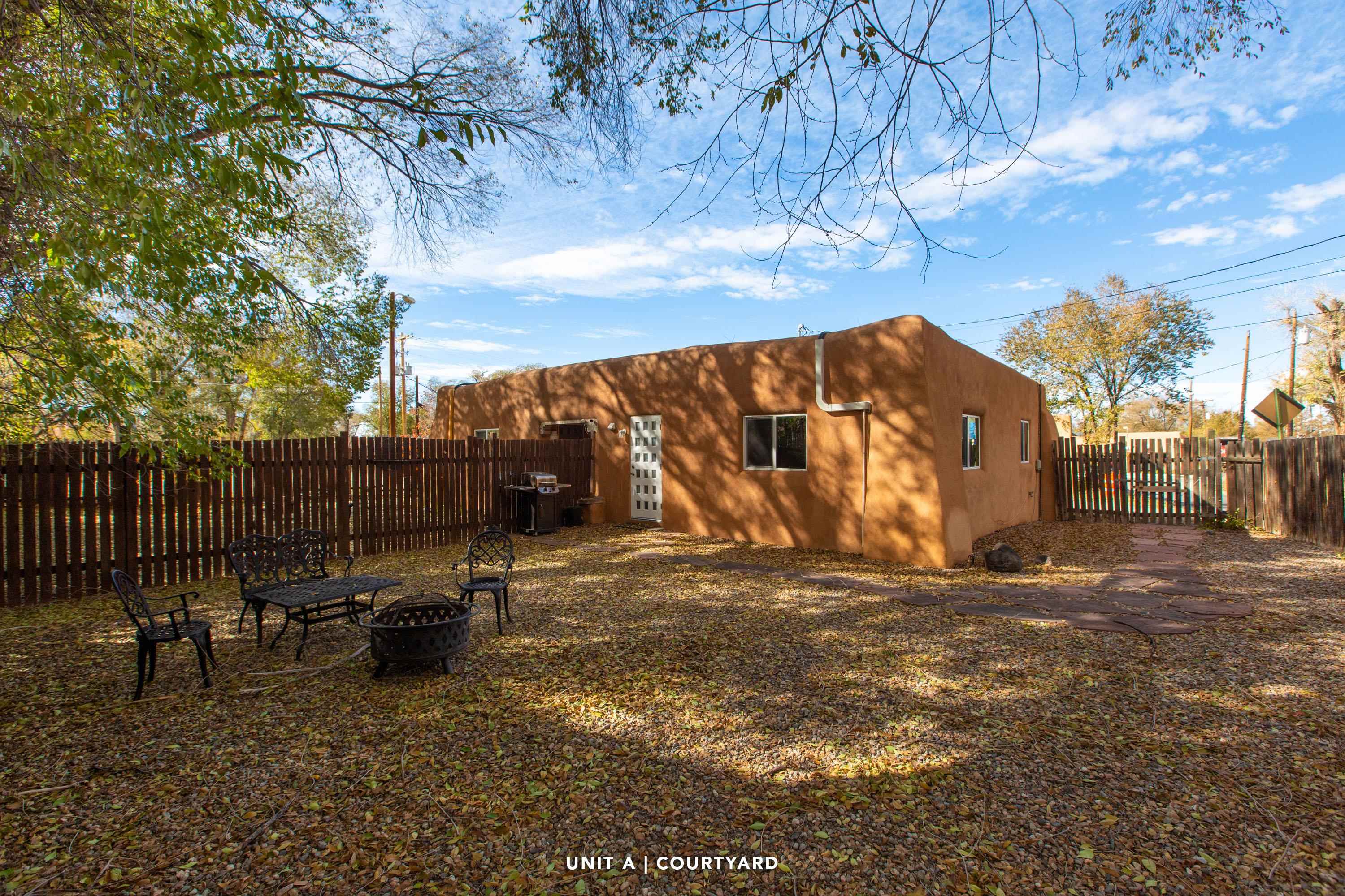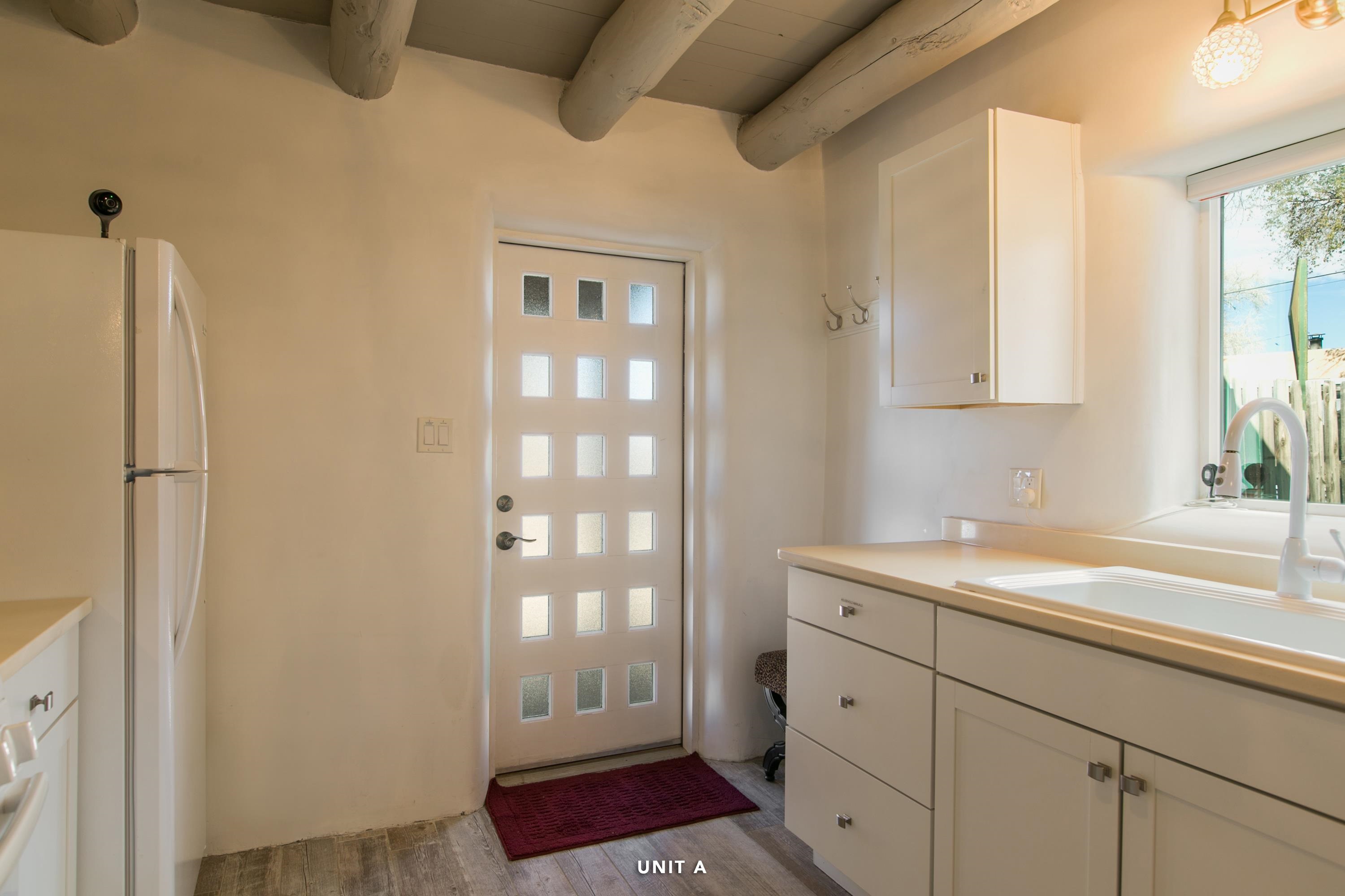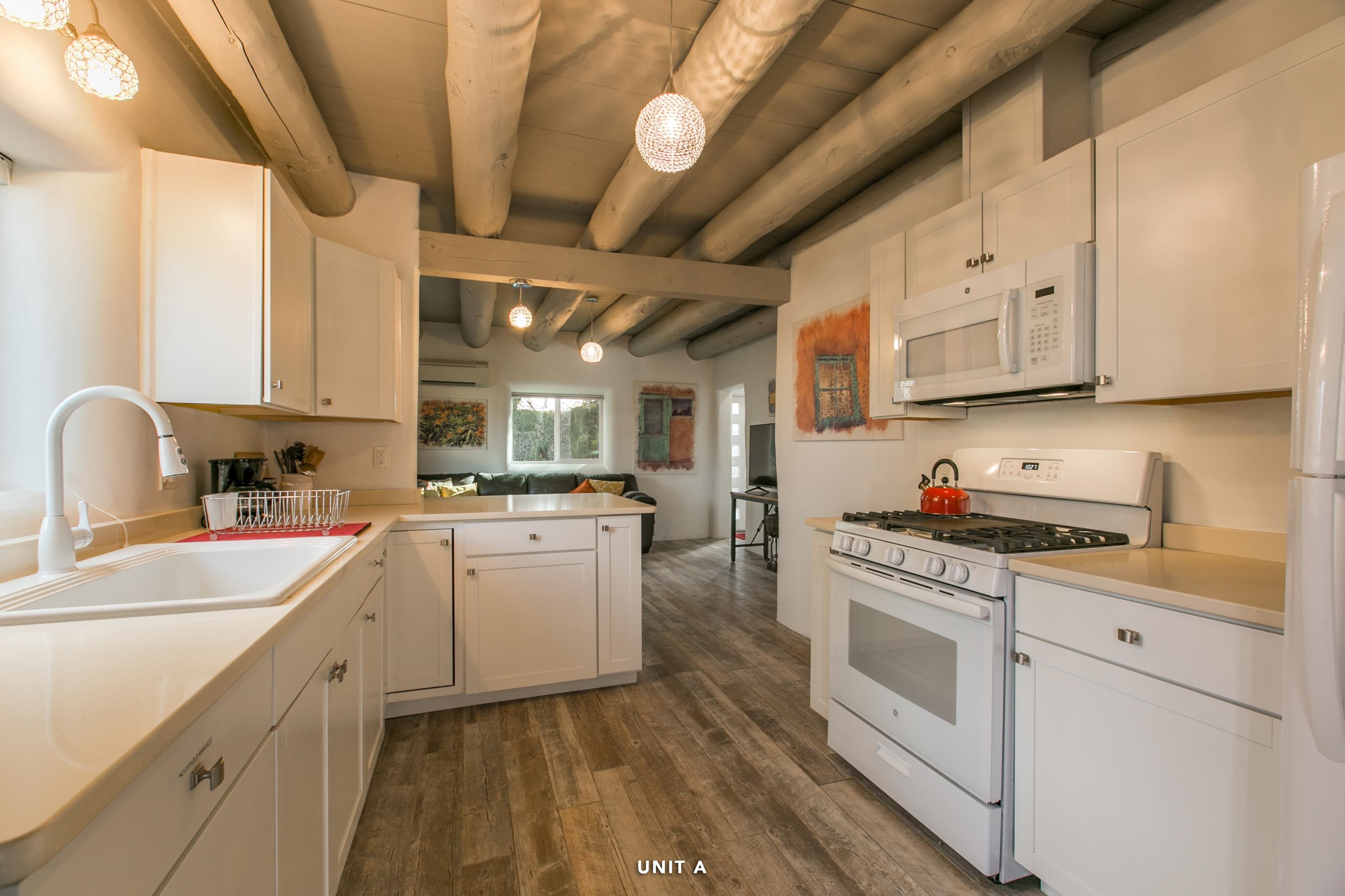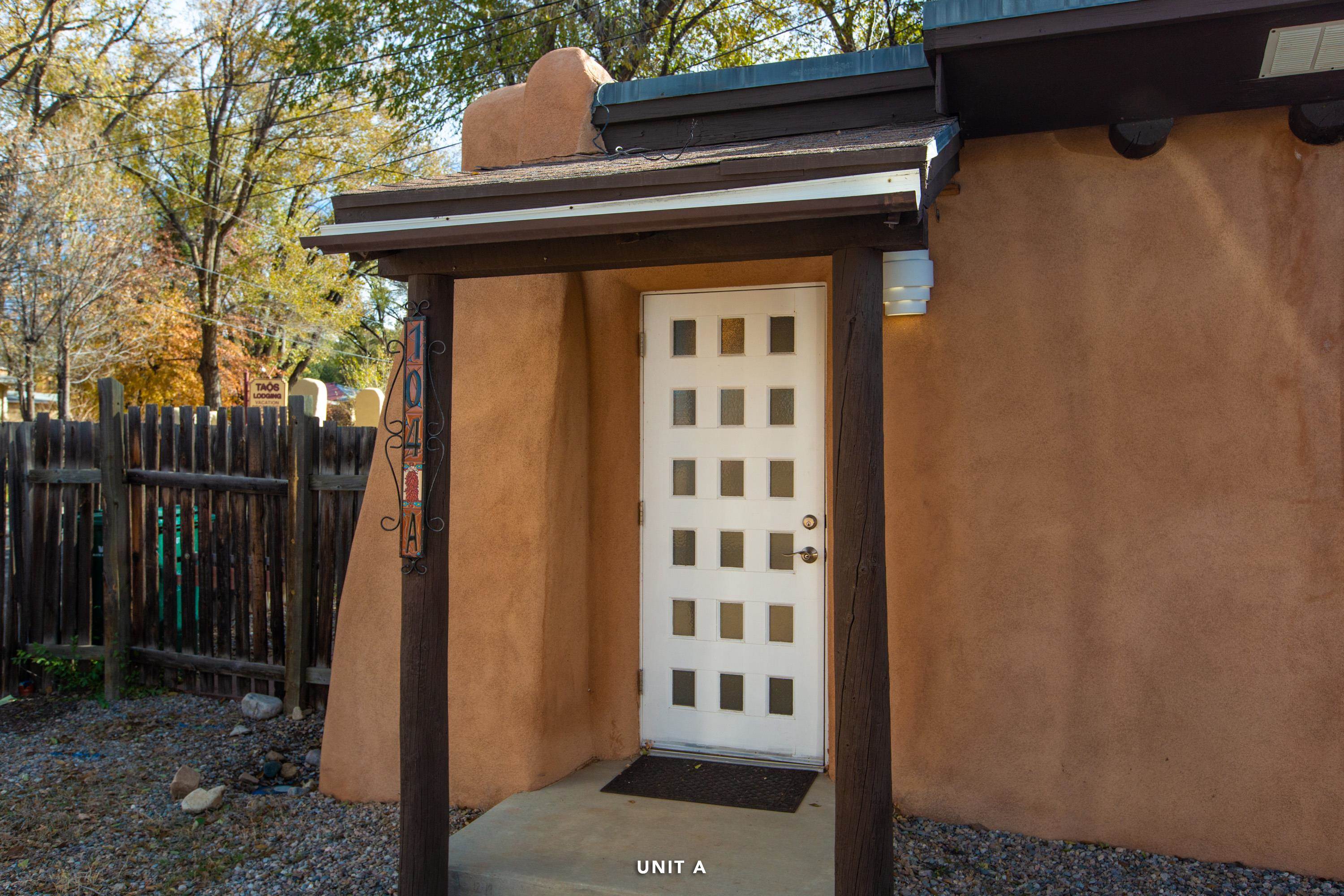 In-town, fully remodeled, fully furnished adobe duplex. Just a few short blocks from Kit Carson Park, Taos Plaza and the many galleries and restaurants that Taos is known for. This duplex has two separate 1 bedroom/1bath units, both with their own washer/dryer, and mini split units to keep you cool in the summer and warm in the winter. Live in one and rent out the other. The two units are on separate meters. Town water, town sewer, natural gas and fiber optic. Enjoy lounging and cooking out in the separately fenced-in yards for both units. Dedicated car port provides parking for each unit. Recent total remodel includes kitchen cabinets, counters, appliances, new roof, stucco, windows, doors, flooring, and updated electric and plumbing. Don't miss this great opportunity!