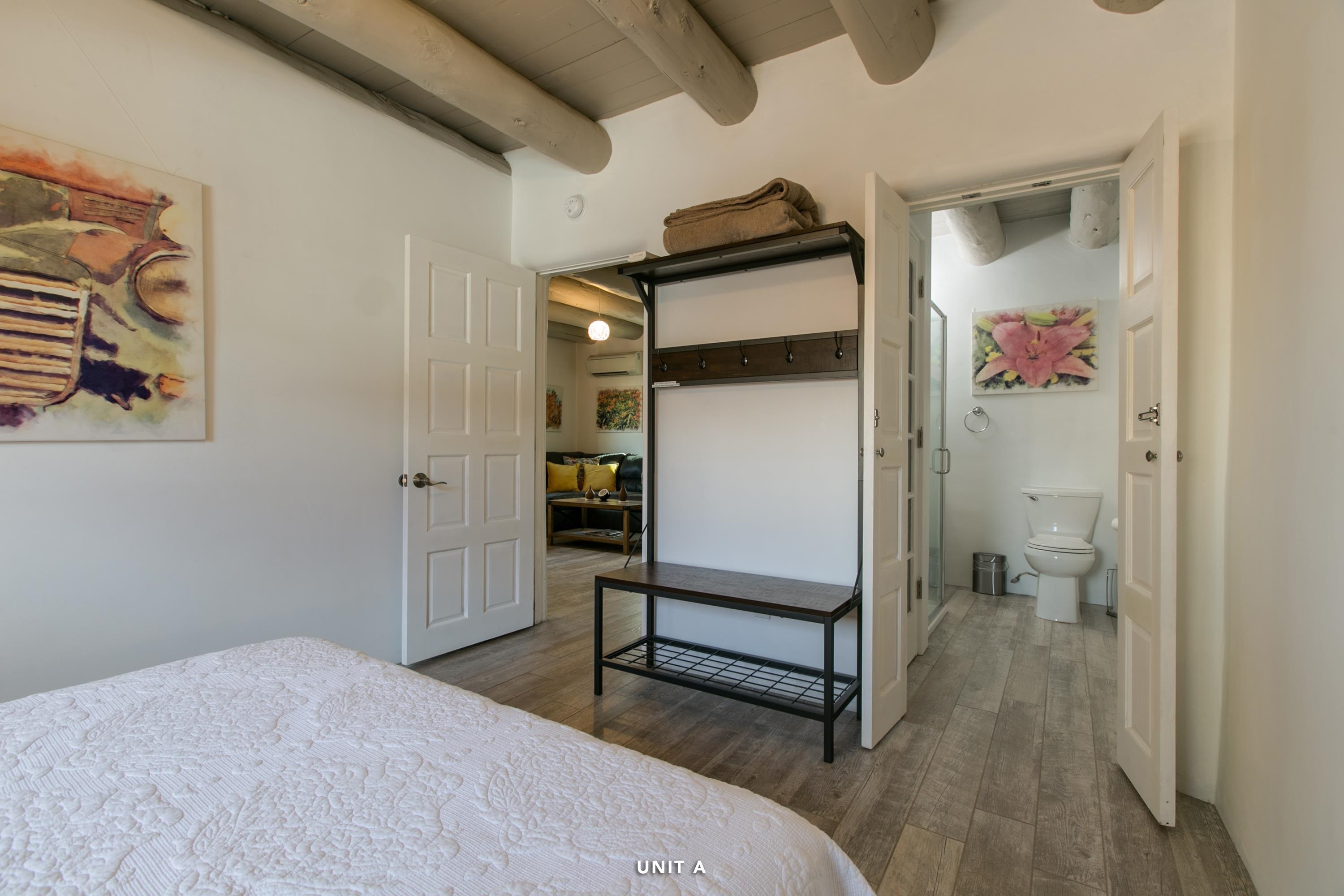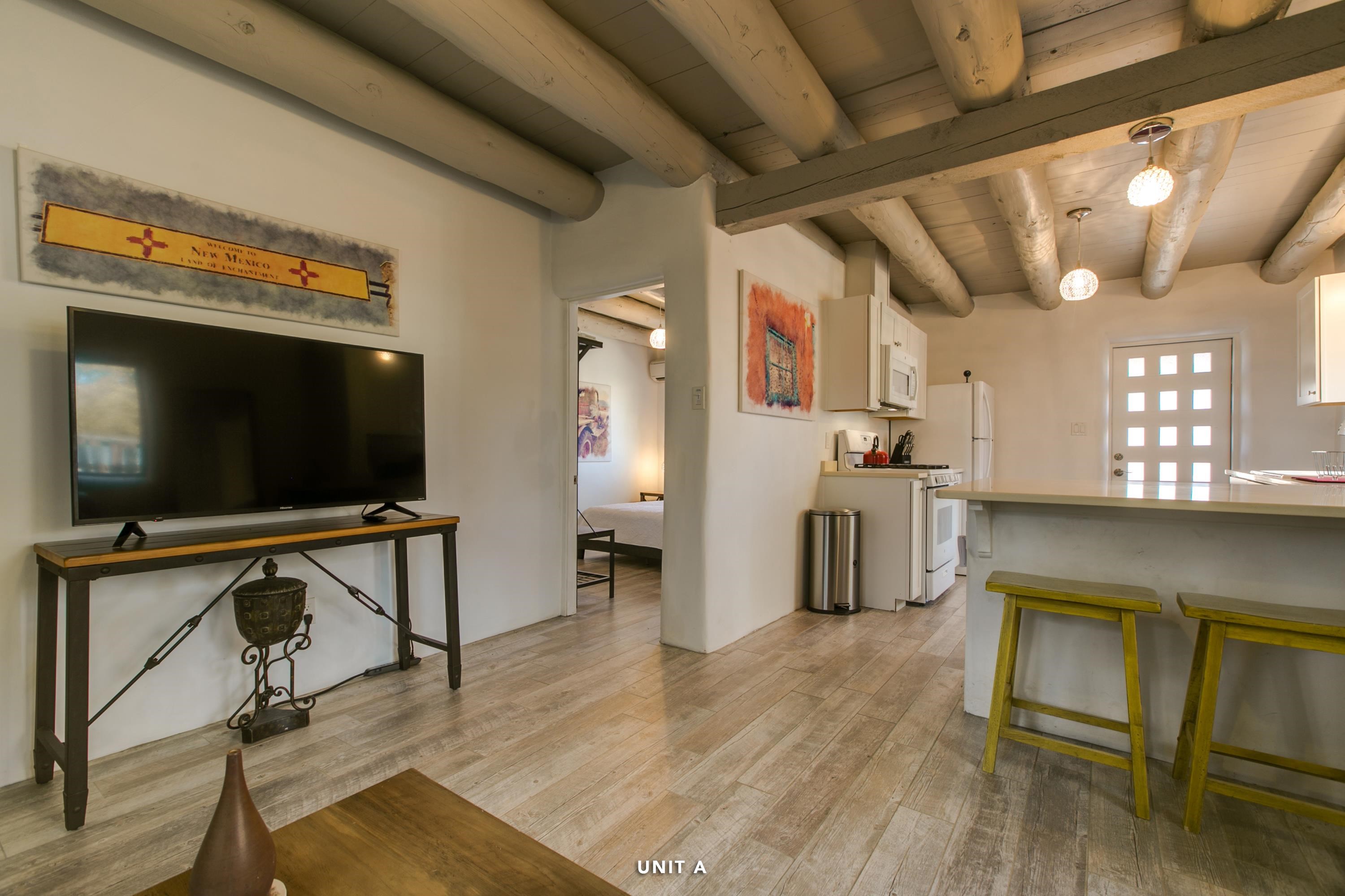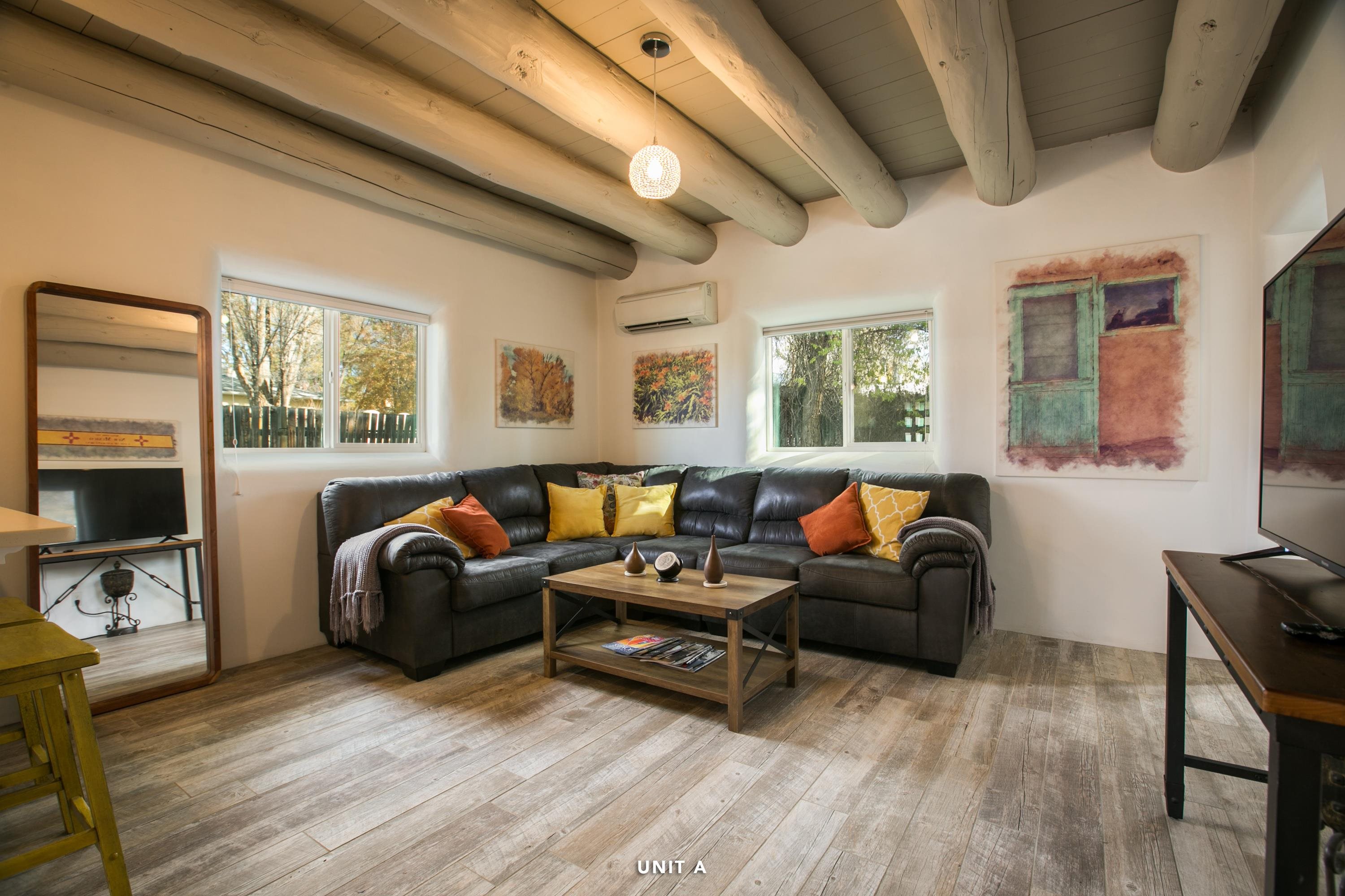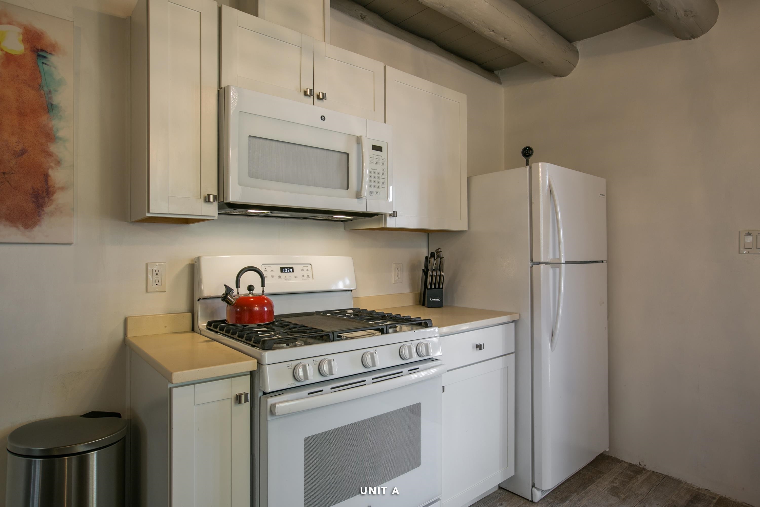 In-town, fully remodeled, fully furnished adobe duplex. Just a few short blocks from Kit Carson Park, Taos Plaza and the many galleries and restaurants that Taos is known for. This duplex has two separate 1 bedroom/1bath units, both with their own washer/dryer, and mini split units to keep you cool in the summer and warm in the winter. Live in one and rent out the other. The two units are on separate meters. Town water, town sewer, natural gas and fiber optic. Enjoy lounging and cooking out in the separately fenced-in yards for both units. Dedicated car port provides parking for each unit. Recent total remodel includes kitchen cabinets, counters, appliances, new roof, stucco, windows, doors, flooring, and updated electric and plumbing. Don't miss this great opportunity!
