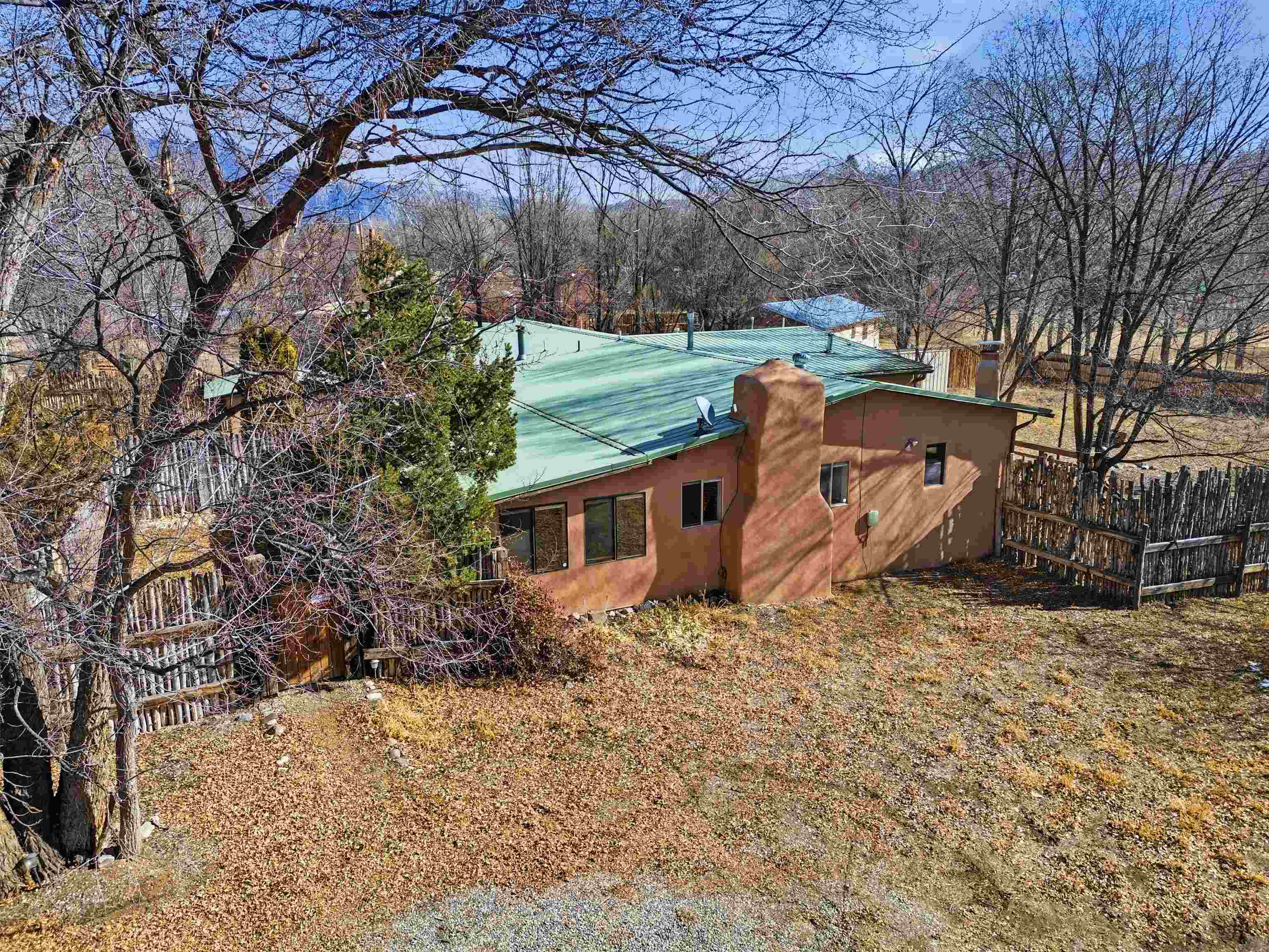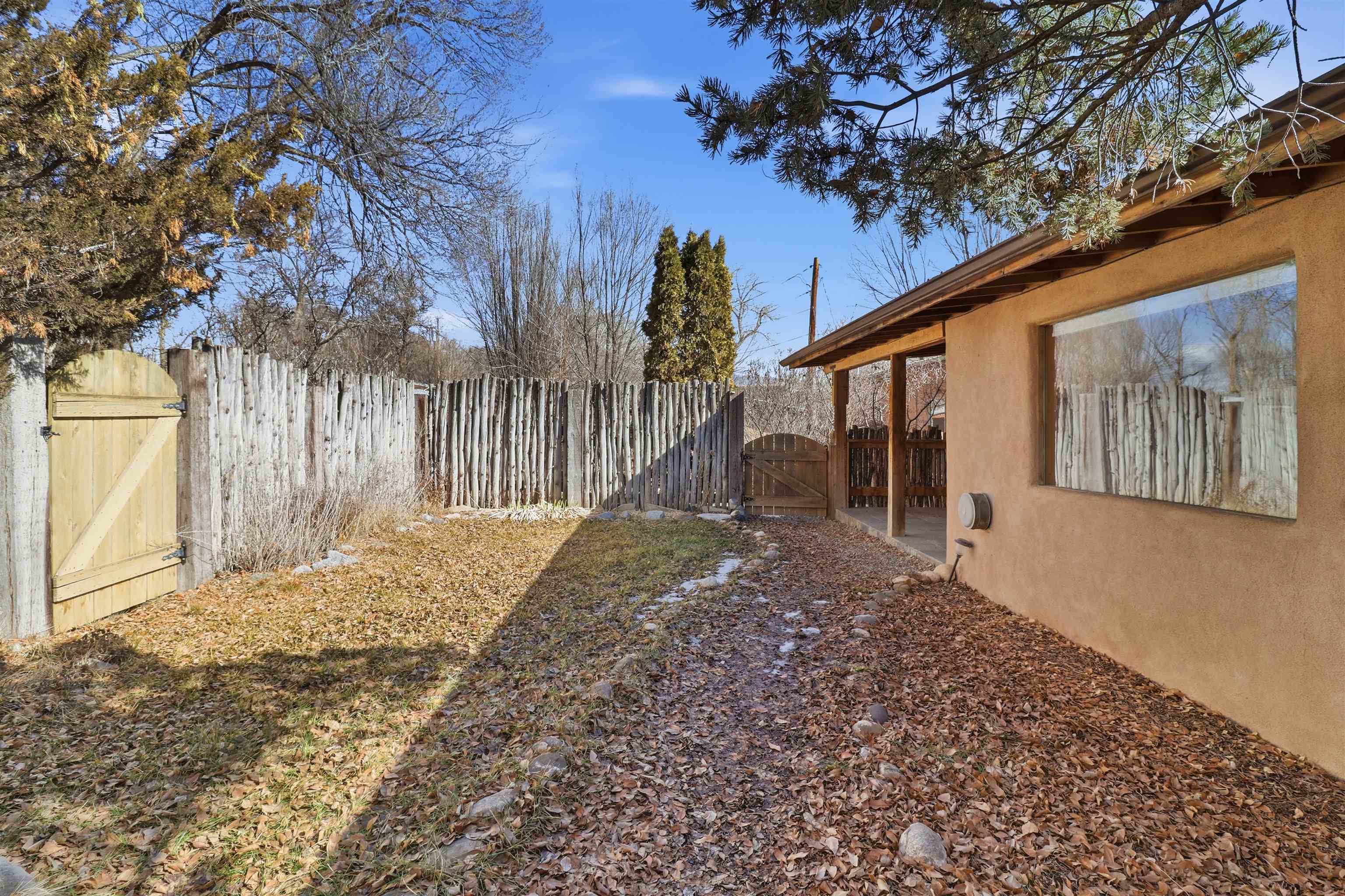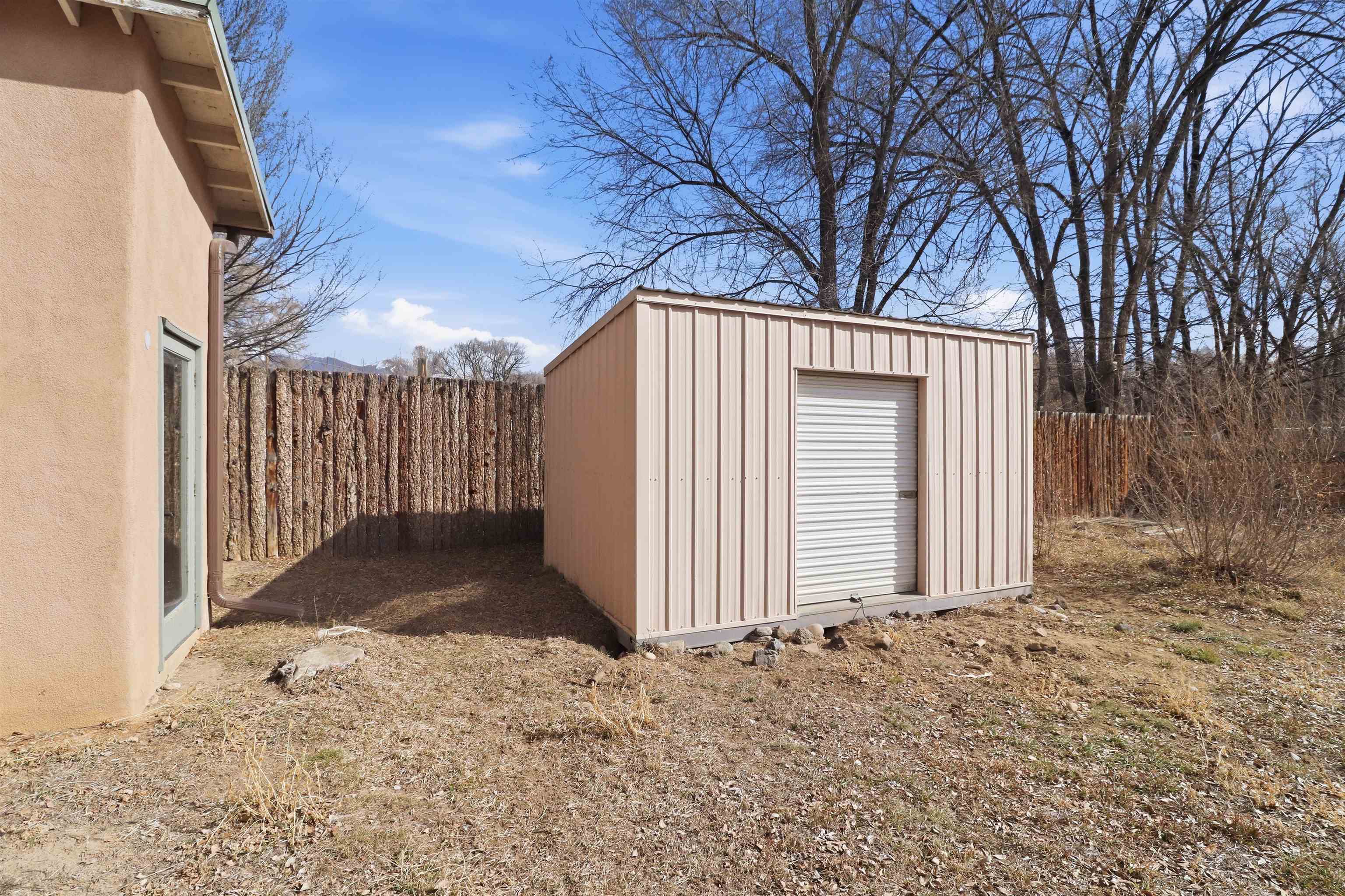 This charming DUPLEX at 104 Guthrie Lane #A & B, Taos, NM 87571 offers an exceptional opportunity for comfortable living with strong income-producing potential in a prime location just minutes from the center of Taos. The main house (#B) features a spacious eat-in kitchen with a separate pantry, lovely tile countertops, and serene garden views. The primary bedroom features cork flooring and an ensuite bathroom with beautiful tile accents. A second bedroom provides easy backyard access via a sliding glass door, a generous closet, and shares a full hall bath. The expansive living room showcases gorgeous wood floors and a cozy kiva fireplace, opening directly onto a large back deck perfect for relaxing or entertaining. An additional flexible living/multi-purpose room includes the washer/dryer and abundant space for a home office or studio. The attached guest house (#A) has proven itself as a reliable rental unit for years, delivering steady income. It features beautiful natural light, tile flooring, a fireplace, 2 bedrooms, a delightful 4-season sunroom, a fenced private courtyard, and its own storage shed—ideal for guests, long-term tenants, or vacation rentals. Outside, enjoy a large, fully fenced backyard—a gardener's dream with ample space for planting, outdoor activities, or pets. A large detached oversized 2-car garage provides plenty of room for vehicles, workshops, projects, or extra storage. Sited on a generous corner lot (approximately half a acre) in a peaceful cul-de-sac, this property offers tranquility while being conveniently close to Taos' shops, restaurants, galleries, and cultural attractions. Whether you're seeking a primary residence with guest/income suite, a multi-generational setup, or an investment property with built-in rental history, this property has it covered. Don't miss this rare combination of space, charm, and location!