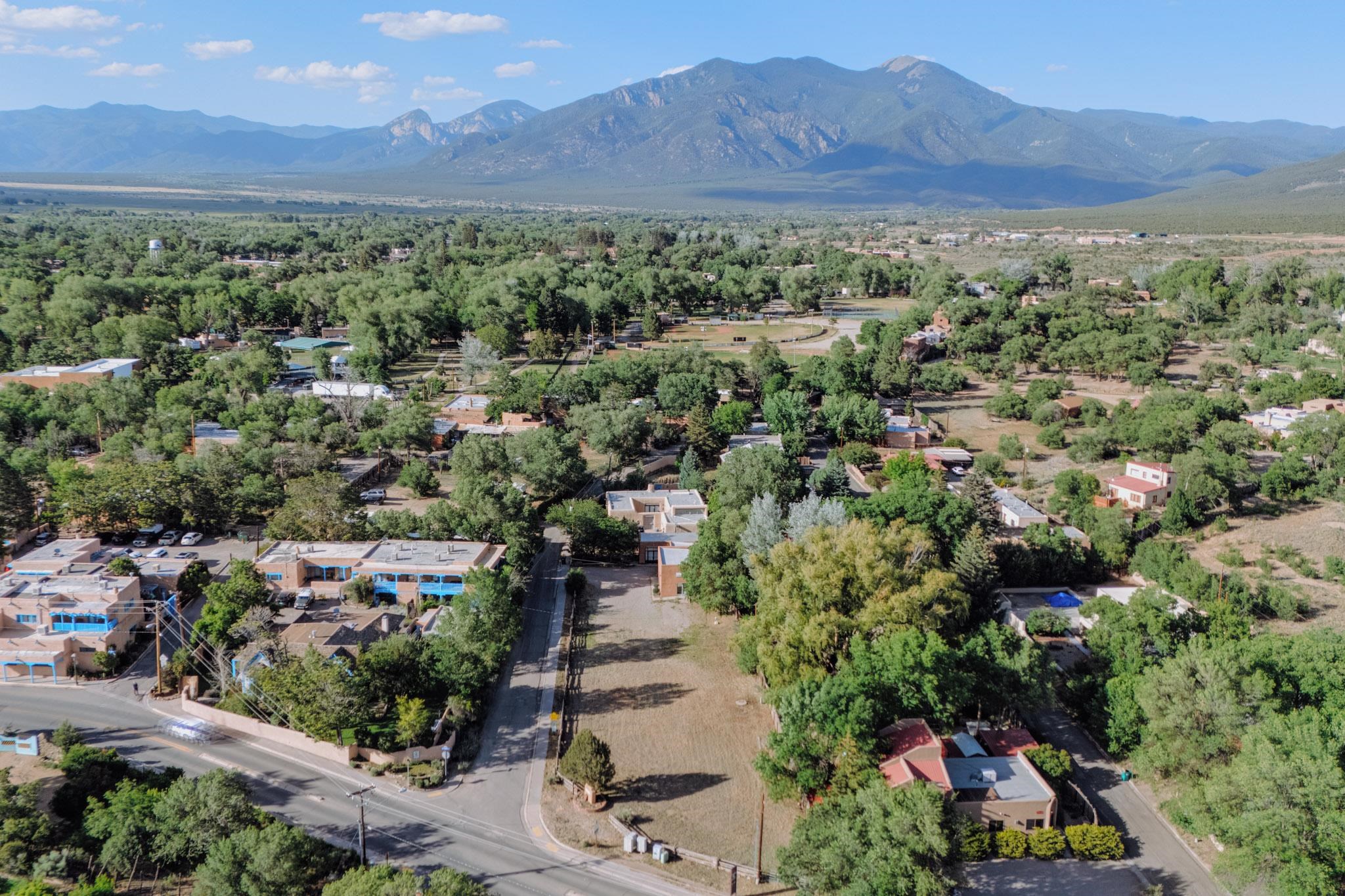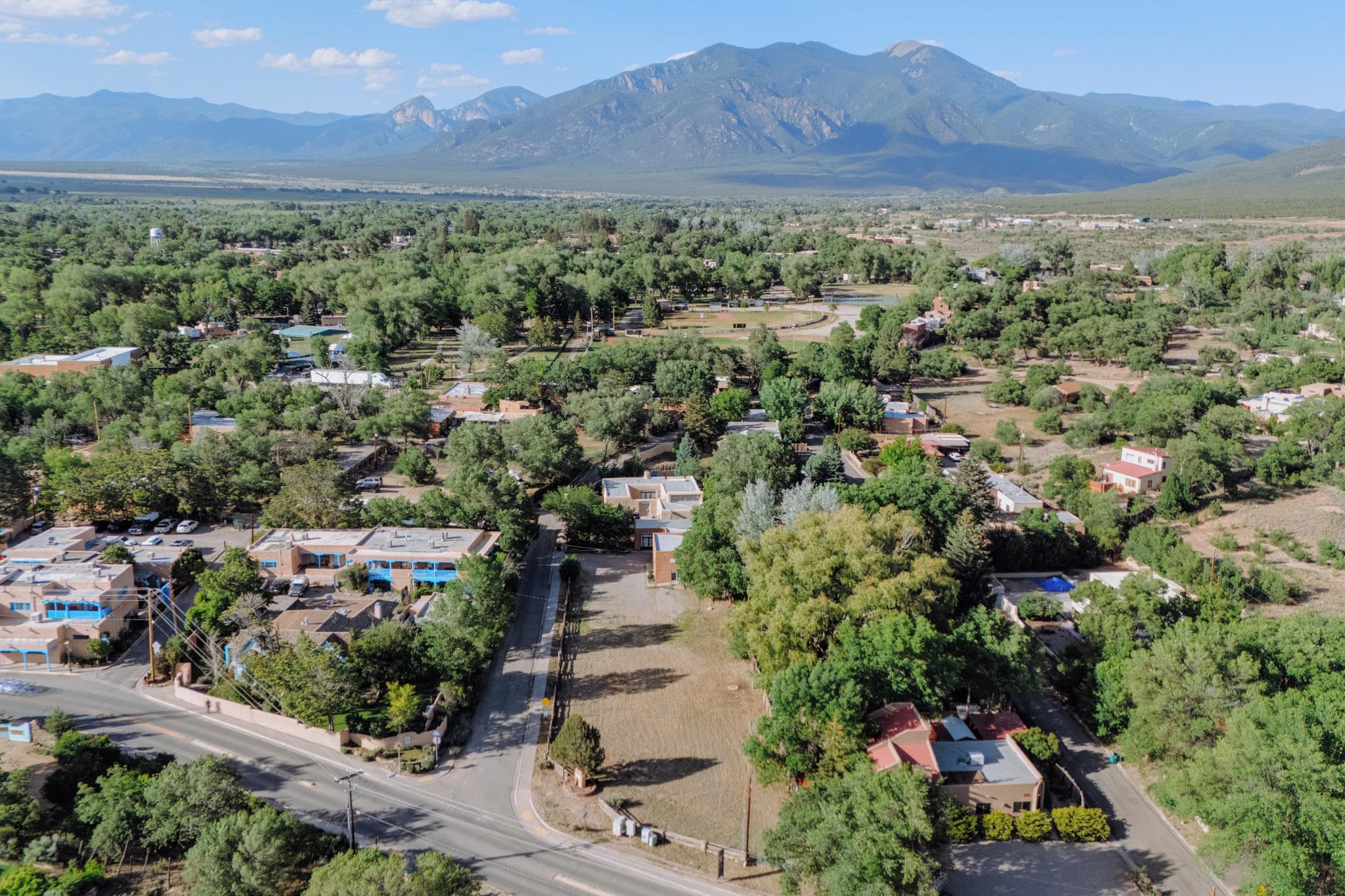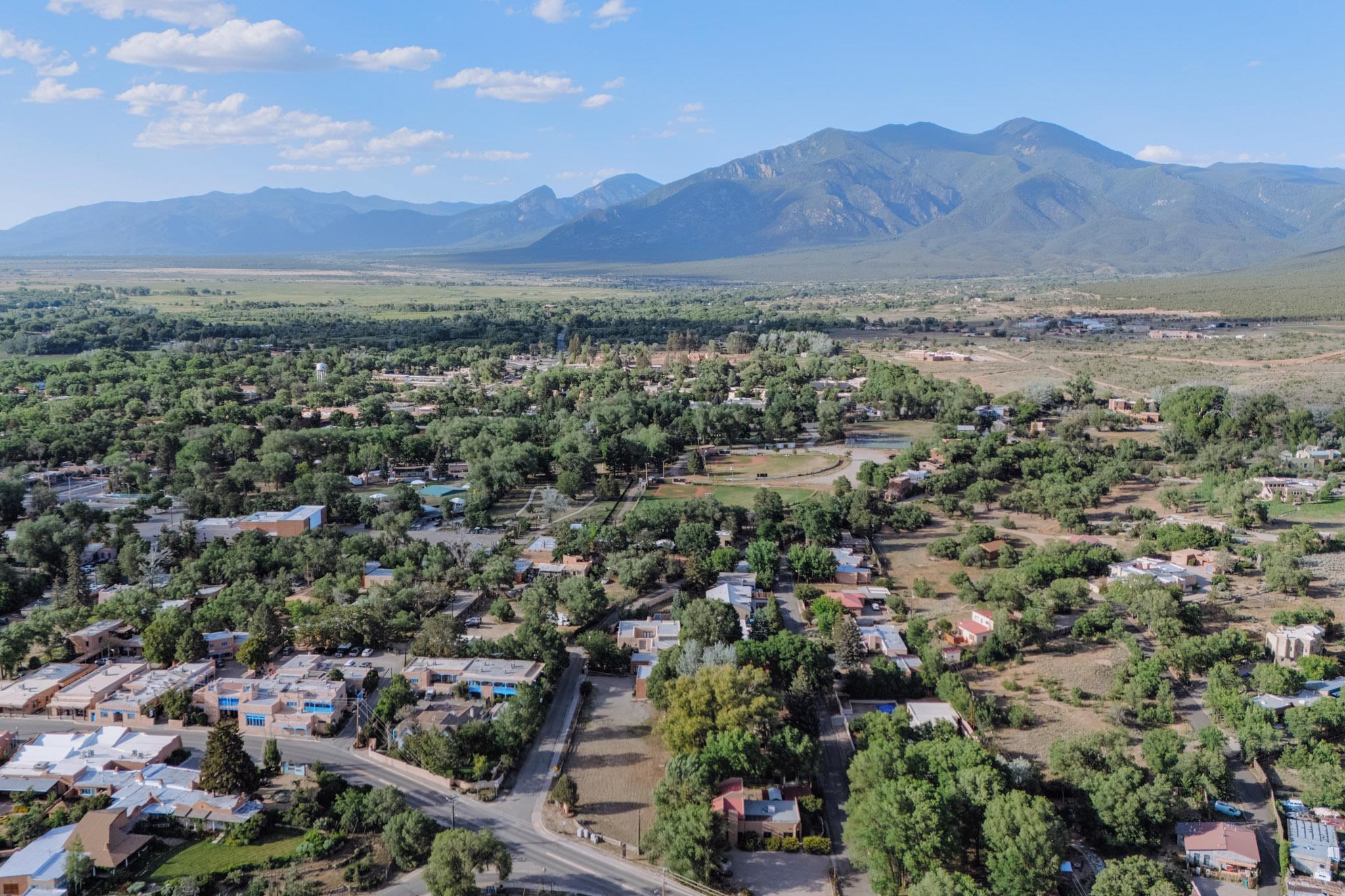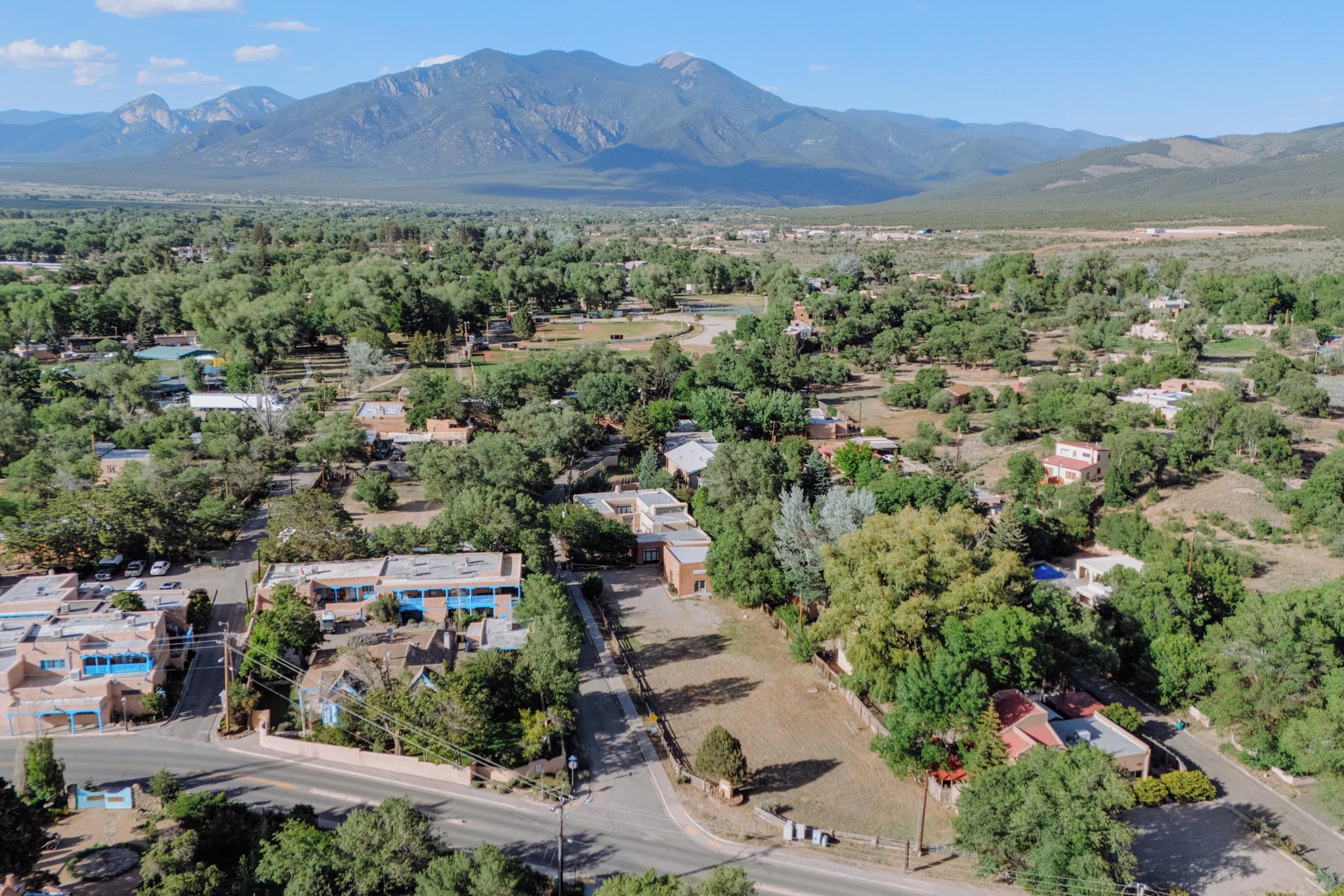 ULTIMATE LOCATION, ENDLESS POSSIBILITIES. Whether commercial, residential or both, this property boasts a short walk to Taos plaza and yet an almost rural feel when on the property. The buildings feature a Studio area and a Gallery which total about 2000 square ft. They were built and designed by iconic artist, sculptor and print maker Veloy Vigil and his family. Many of Taos's renowned artists of the 80s and 90s would utililize the print shop, in particular. These 2 areas feature high ceilings, large glass double doors and adjustable track lighting to accent and showcase paintings, sculpture and work areas. To fully appreciate the property please click on Virtual Tour link to see a ariel view of the property and the spaces inside. The property consists .59 acres containing 3 lots, the one the building is on and the other 2 have connections to water, sewer and natural gas in place on the property. The property is offered as one piece and will not be split. Morada Lane which runs along the western edge is the borderline of the Historic District of Taos. This piece is not included in that designation which makes the C1, R-14 zoning incredibly versatile. Please allow me to answer any questions you might have. What's your Dream?