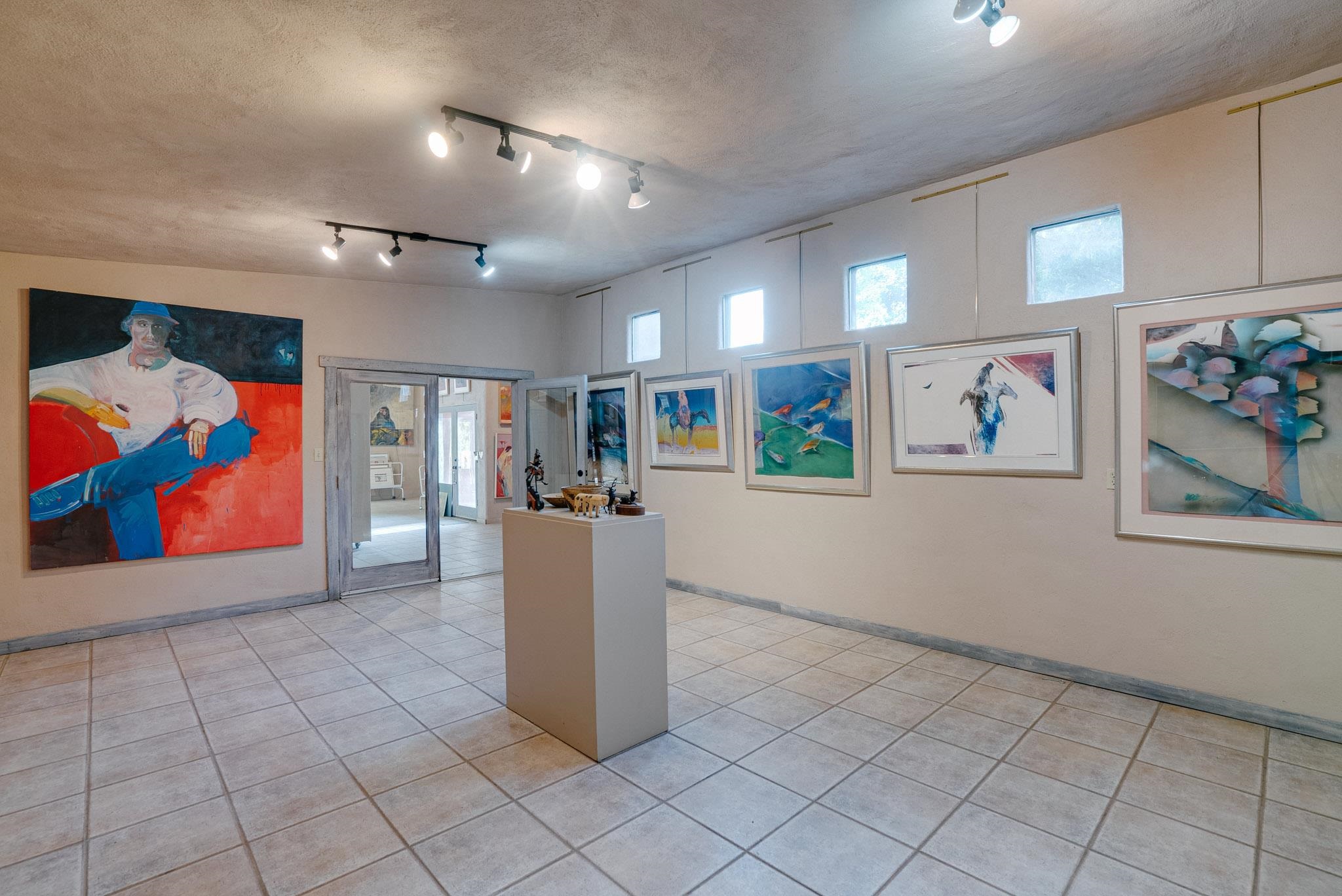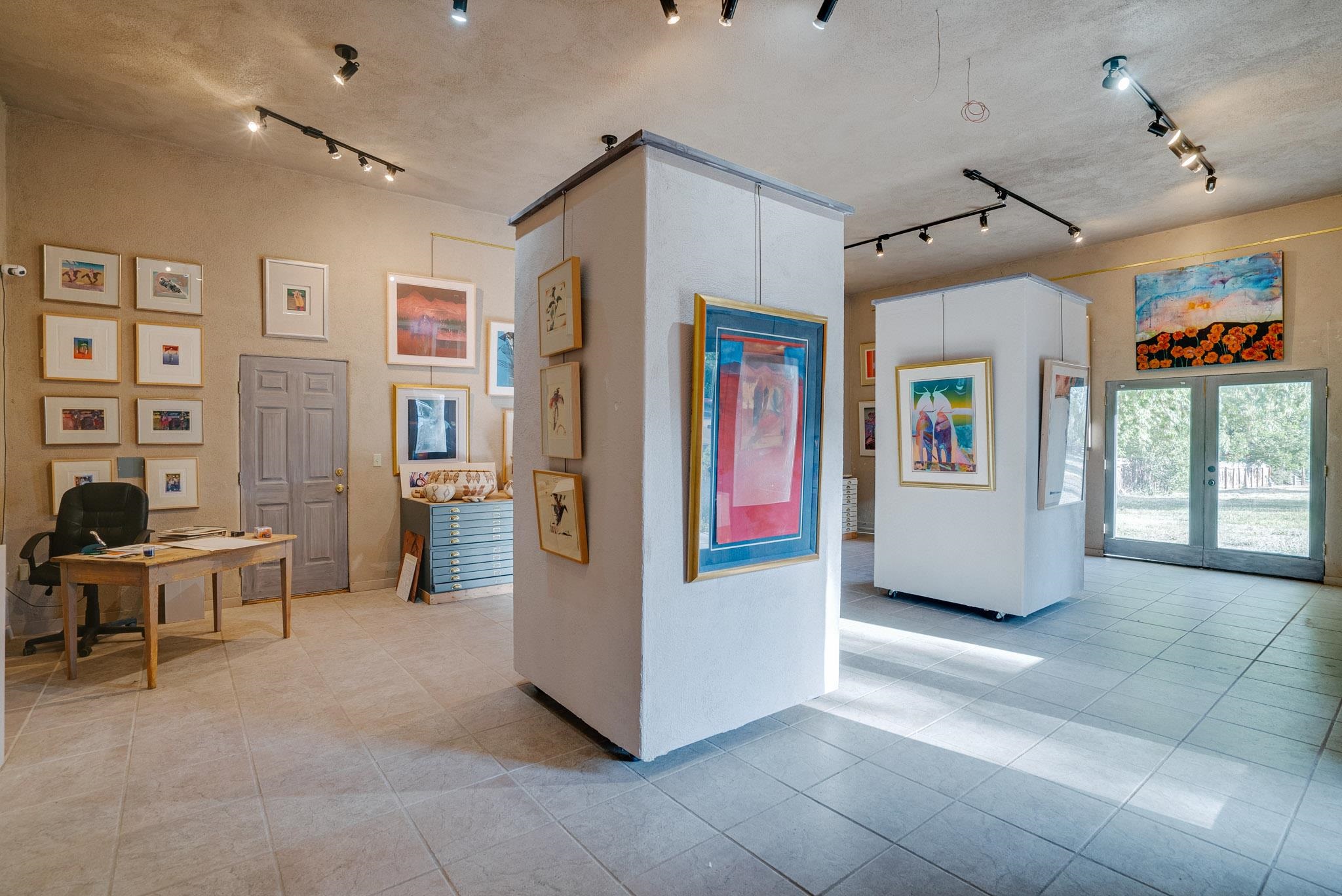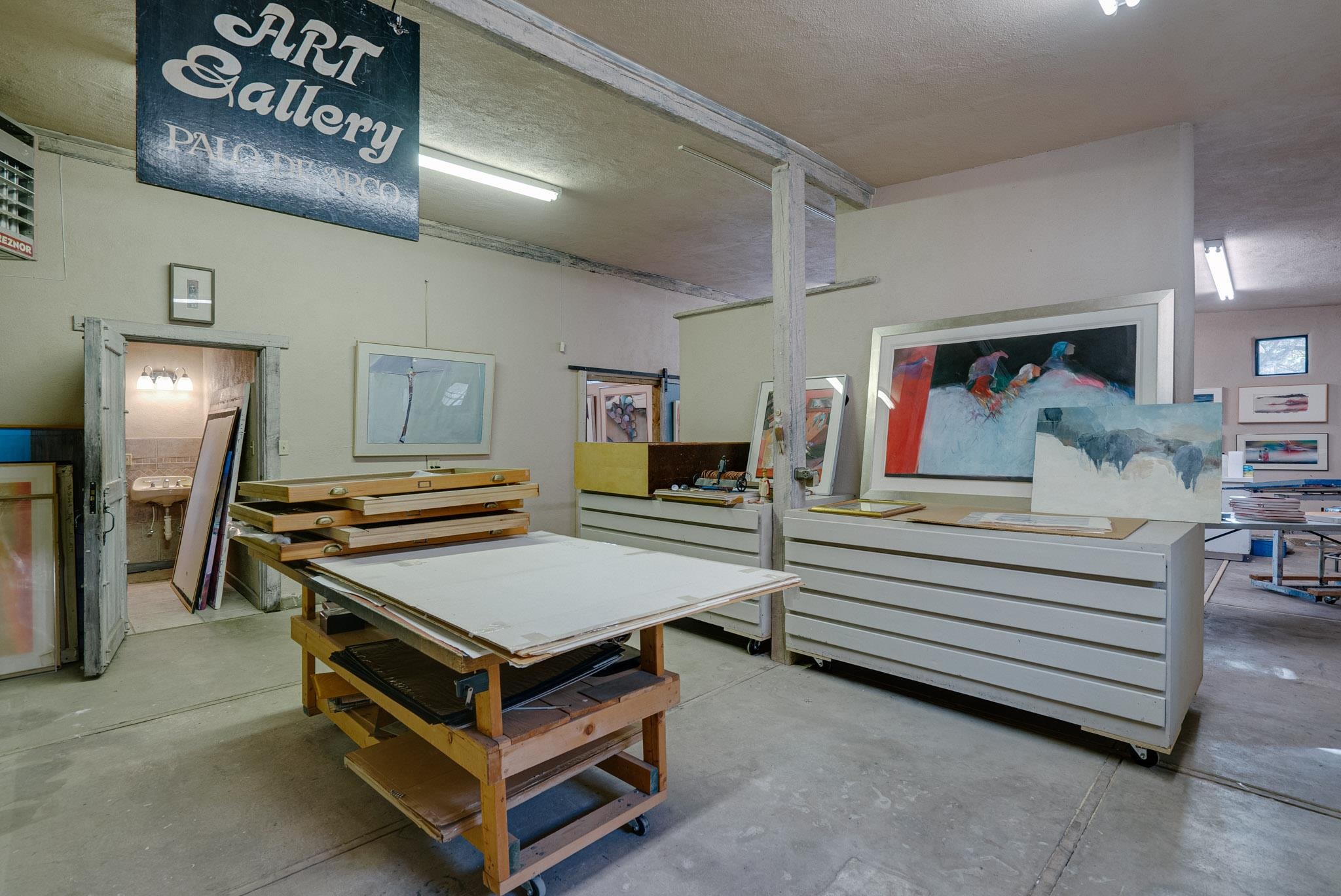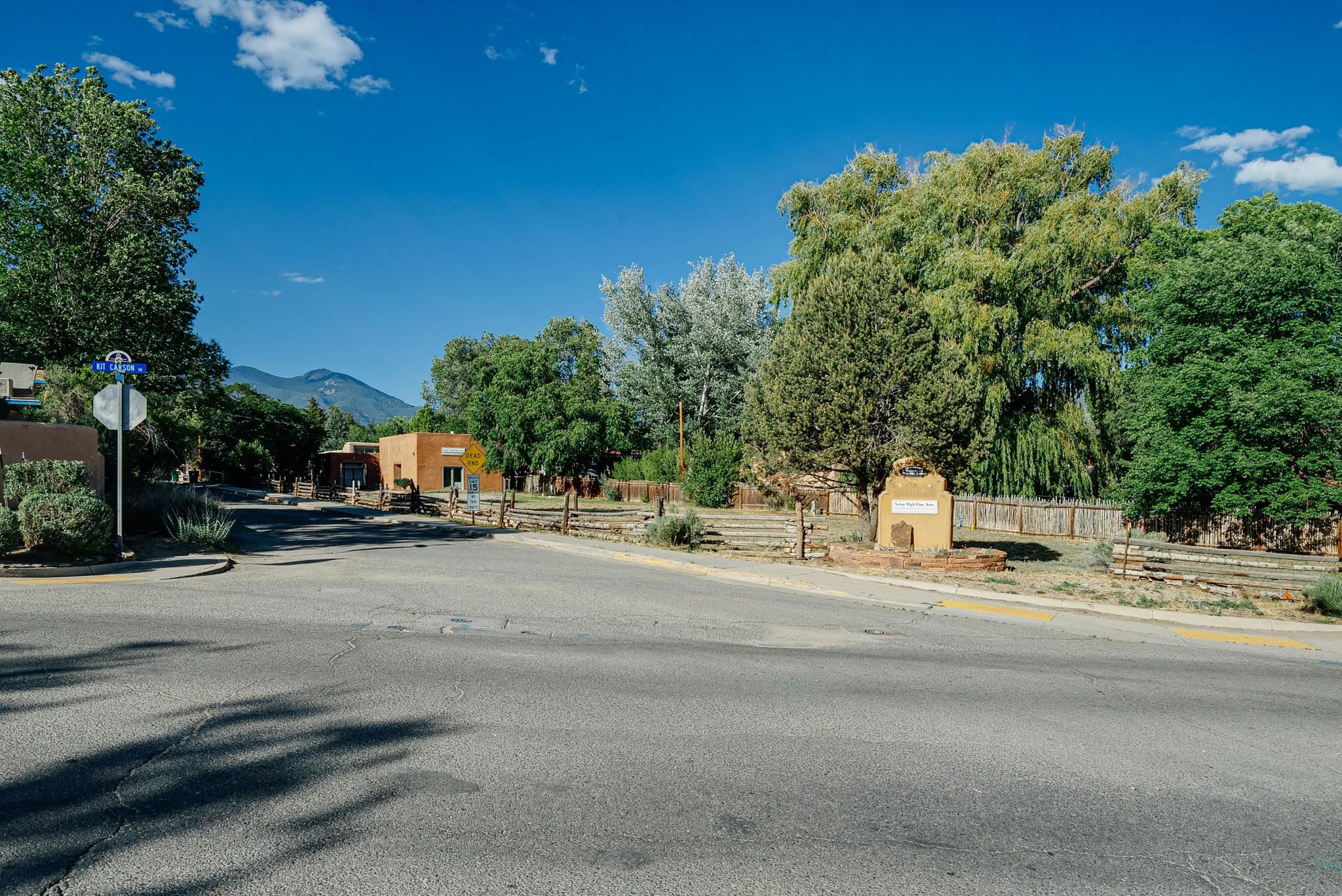 ULTIMATE LOCATION, ENDLESS POSSIBILITIES. Whether commercial, residential or both, this property boasts a short walk to Taos plaza and yet an almost rural feel when on the property. The buildings feature a Studio area and a Gallery which total about 2000 square ft. They were built and designed by iconic artist, sculptor and print maker Veloy Vigil and his family. Many of Taos's renowned artists of the 80s and 90s would utililize the print shop, in particular. These 2 areas feature high ceilings, large glass double doors and adjustable track lighting to accent and showcase paintings, sculpture and work areas. To fully appreciate the property please click on Virtual Tour link to see a ariel view of the property and the spaces inside. The property consists .59 acres containing 3 lots, the one the building is on and the other 2 have connections to water, sewer and natural gas in place on the property. The property is offered as one piece and will not be split. Morada Lane which runs along the western edge is the borderline of the Historic District of Taos. This piece is not included in that designation which makes the C1, R-14 zoning incredibly versatile. Please allow me to answer any questions you might have. What's your Dream?