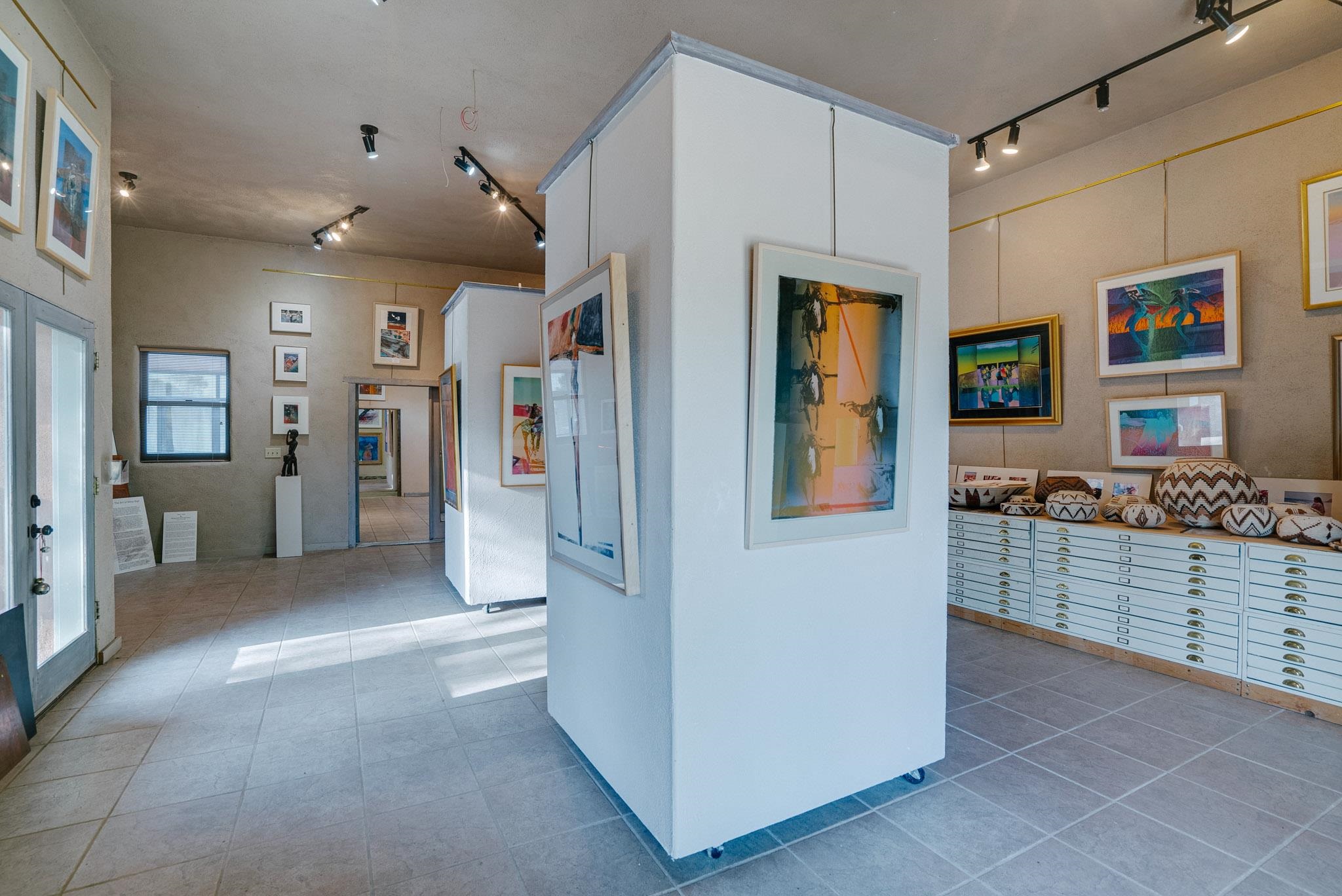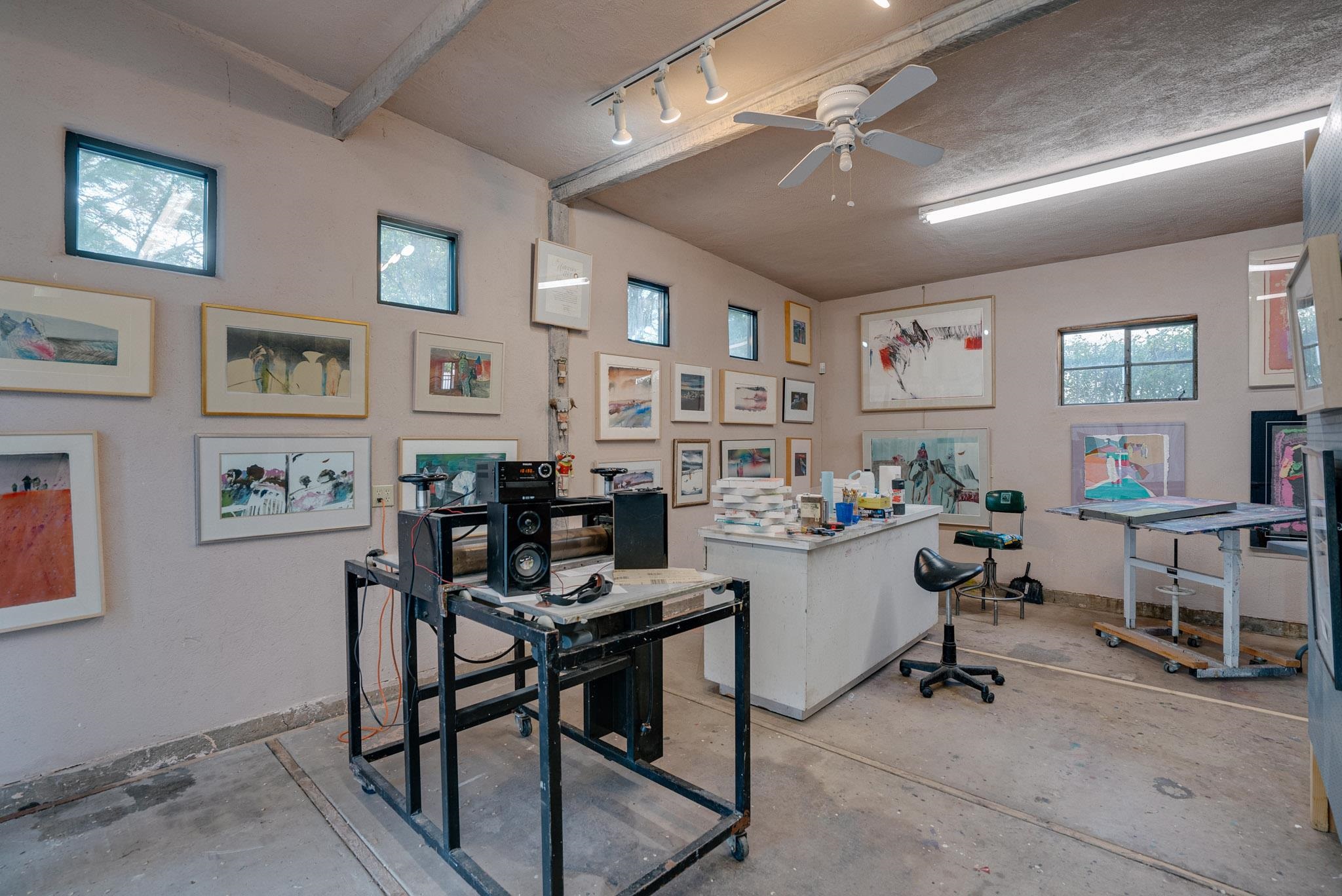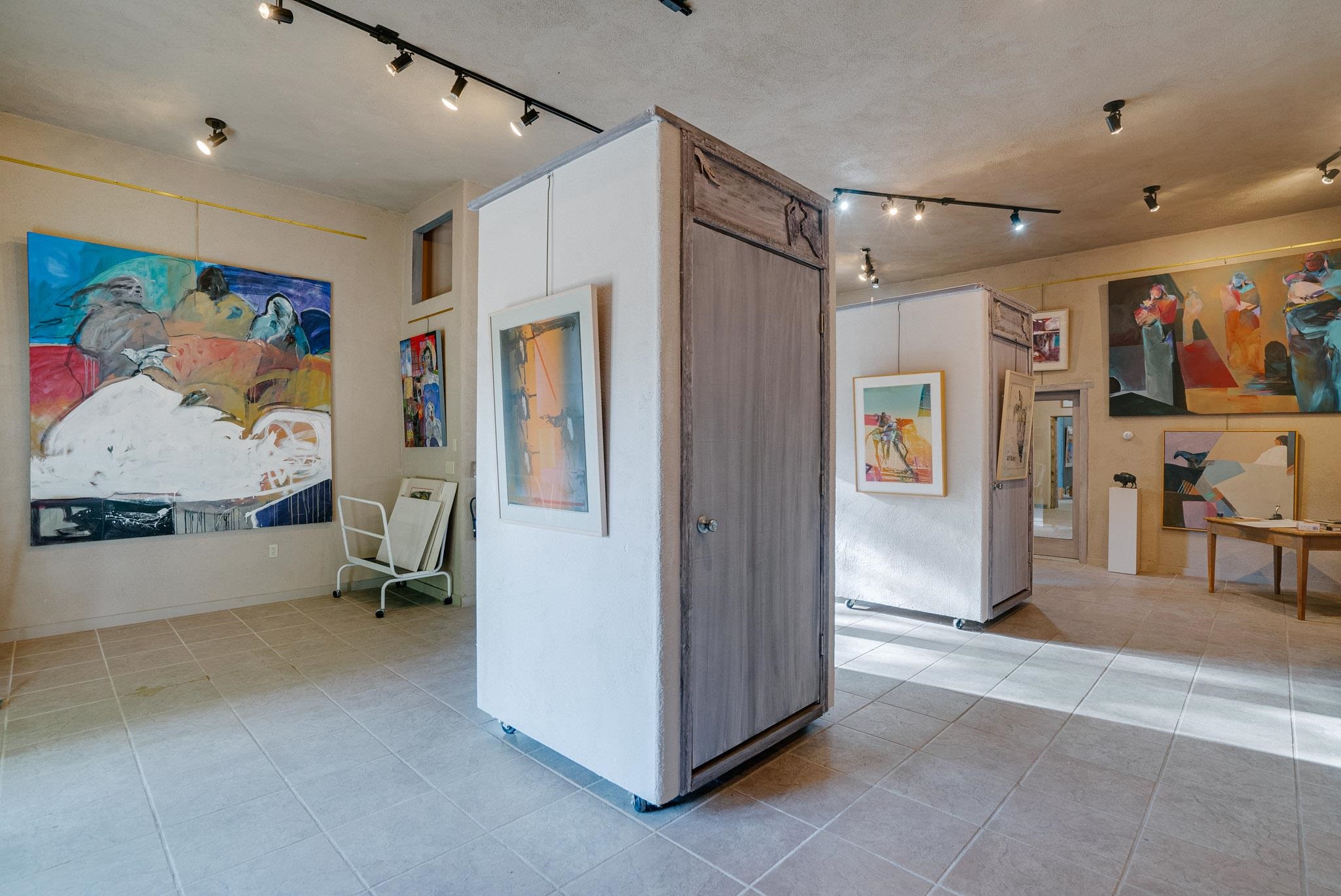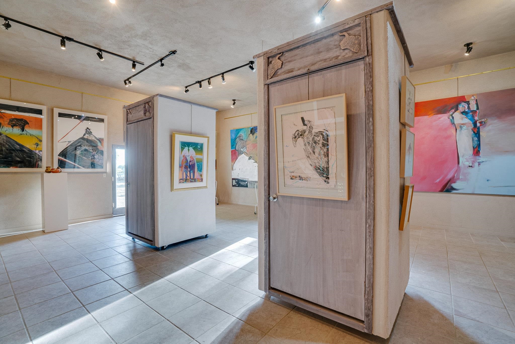 ULTIMATE LOCATION, ENDLESS POSSIBILITIES. Whether commercial, residential or both, this property boasts a short walk to Taos plaza and yet an almost rural feel when on the property. The buildings feature a Studio area and a Gallery which total about 2000 square ft. They were built and designed by iconic artist, sculptor and print maker Veloy Vigil and his family. Many of Taos's renowned artists of the 80s and 90s would utililize the print shop, in particular. These 2 areas feature high ceilings, large glass double doors and adjustable track lighting to accent and showcase paintings, sculpture and work areas. To fully appreciate the property please click on Virtual Tour link to see a ariel view of the property and the spaces inside. The property consists .59 acres containing 3 lots, the one the building is on and the other 2 have connections to water, sewer and natural gas in place on the property. The property is offered as one piece and will not be split. Morada Lane which runs along the western edge is the borderline of the Historic District of Taos. This piece is not included in that designation which makes the C1, R-14 zoning incredibly versatile. Please allow me to answer any questions you might have. What's your Dream?