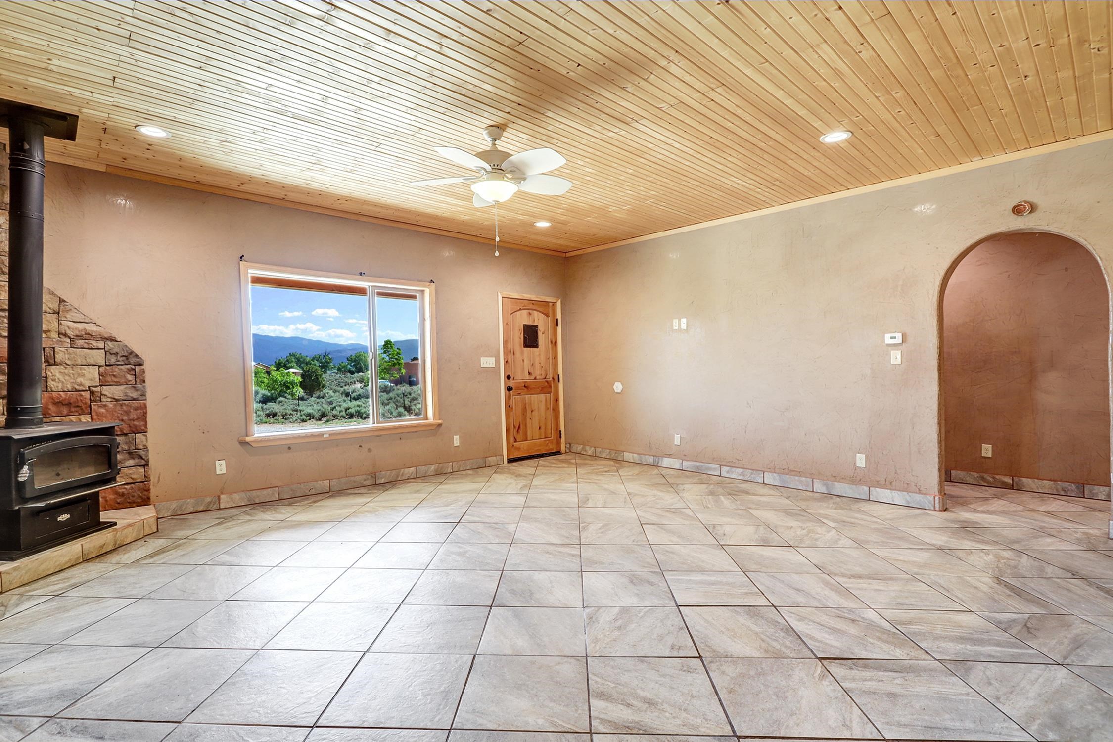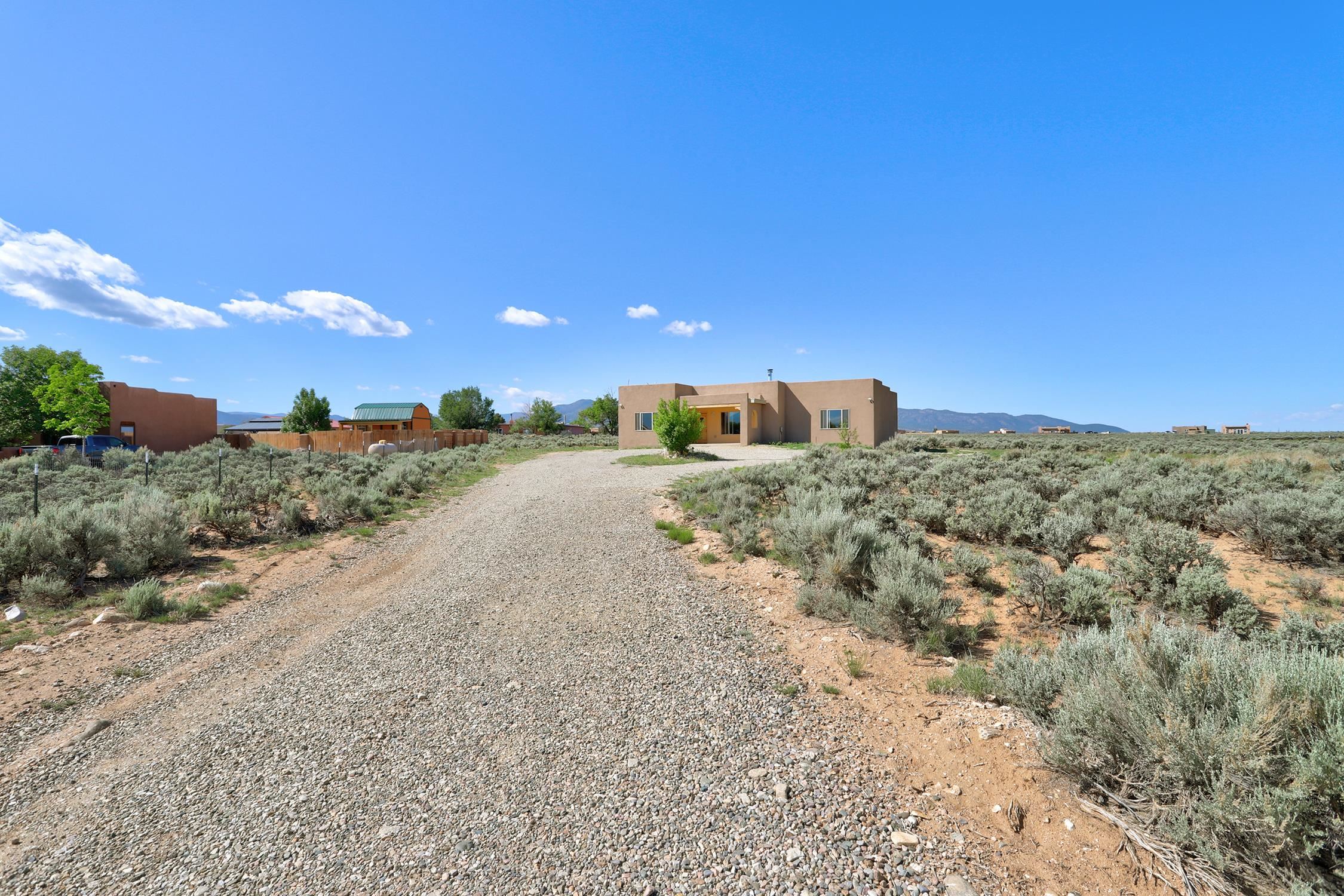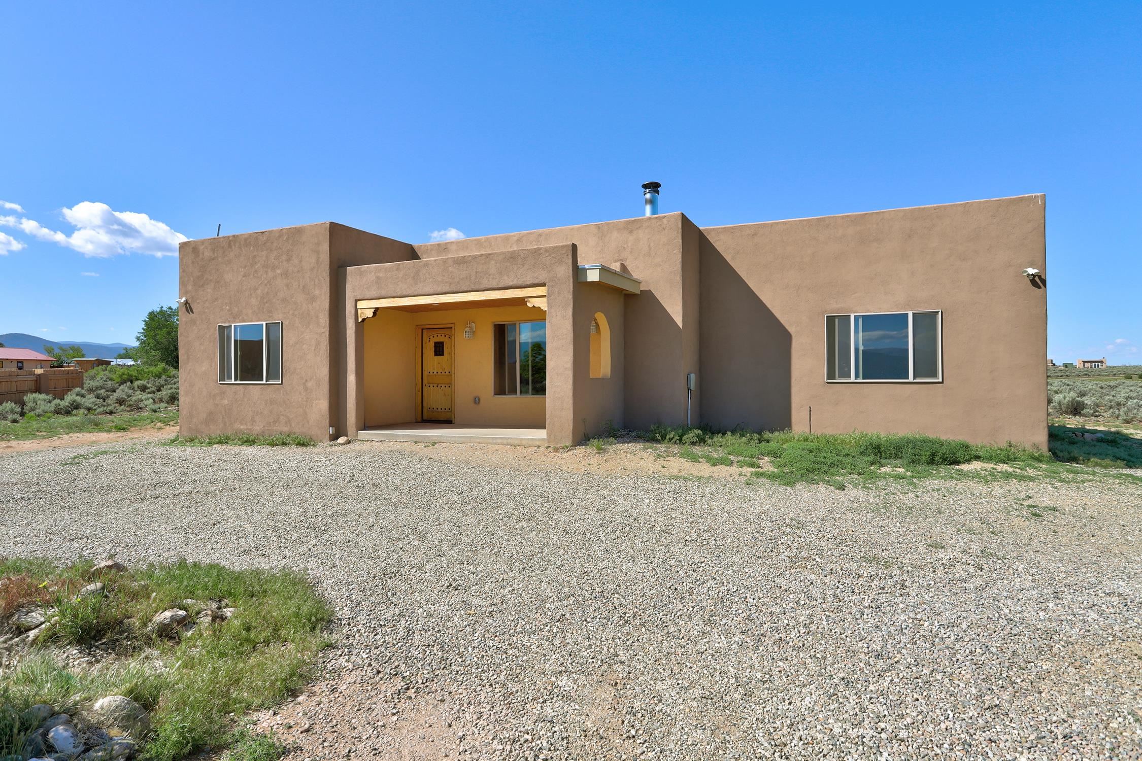 Welcome to this inviting 2-bedroom, 2-bathroom home located on a 1-acre lot in Ranchos de Taos. This property offers breathtaking mountain views and a peaceful setting, perfect for those seeking a quiet retreat. Inside, you'll find a cozy living space featuring tongue-and-groove ceilings and tile floors throughout. The wood stove provides warmth and character, while radiant floor heating ensures comfort during the cooler months. The well-appointed kitchen offers functionality and style, making meal prep a breeze. Step outside to enjoy the expansive outdoor space, ideal for gardening, entertaining, or simply soaking in the surrounding beauty. With ample room to relax and explore, this property is a true gem. This home combines rural charm with modern amenities. Don’t miss the opportunity to make this peaceful retreat your own. Schedule a showing today!