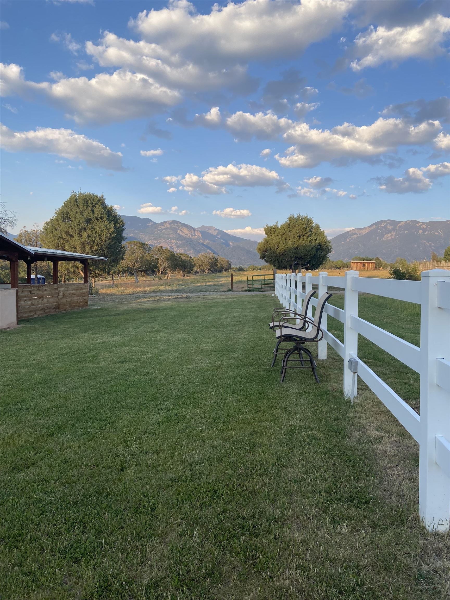 Magic Exists at Los Pino’s Park in Northern New Mexico ~ If you're from Northern New Mexico, you likely know ALL about this remarkable, and truly one-of-a-kind property. If you don't know about the magic of Los Pino's, you certainly will when you lay first eyes and step foot on the Land. Nestled in the shadow of Taos Mountains in Northern New Mexico near Taos Ski Valley, minutes from iconic Downtown Taos, near the Rio Grande river, you will discover this lush irrigated 9.4 acre parcel with a Water Well, acequia Surface Water Rights, a run-off pond, and an impeccable outdoor event space infrastructure. Comes with it, an astounding reputation, and lots of potential. Los Pino’s Park is special, and for decades has served as a natural, lively, and vibrant event space for guests to celebrate all of life's important moments under bright stars and well lit gazebos, around the custom bar, that sit atop solid concrete pads all powered by buried electric and water lines surrounded by five (5) hydrants. All of this may be left as is while continuing to host Special Events, such as, weddings, family reunions, anniversaries, graduations, birthdays, and so on... Perhaps you take it up a notch to entertain clients and host corporate functions with plenty of space for parking, or building multiple units for retreats. Better yet, you make this your own private sanctuary in the NM High desert, design your dream home to incorporate the already developed infrastructure in place, with a giant yard for pet’s to roam freely, and the children to play on nearly 10 acres. Los Pino's is adjacent to, and complimented by a lush Cedar, Pinon and Juniper canyon flooded with mule deer who hang around a seasonal filled pond in the canyon where you will also find clear flat areas suitable for the construction of single dwelling units or cabins, with ample wood supply and privacy in your own little forest. This land evokes everything about our High Desert amongst majestic mountains.