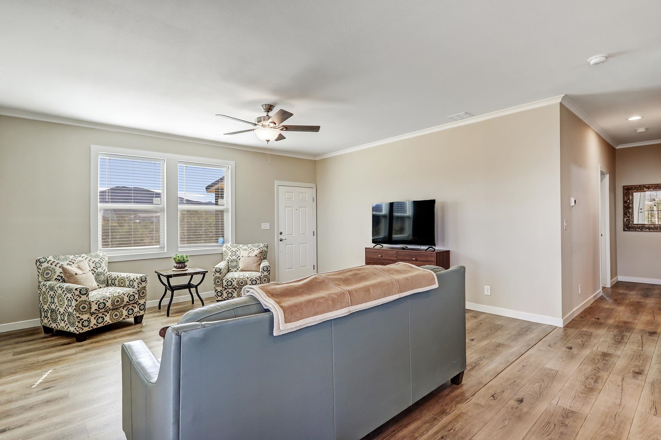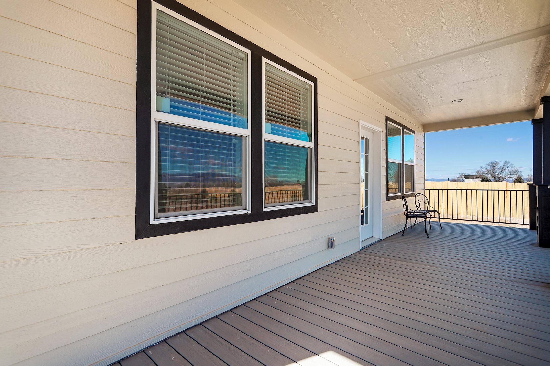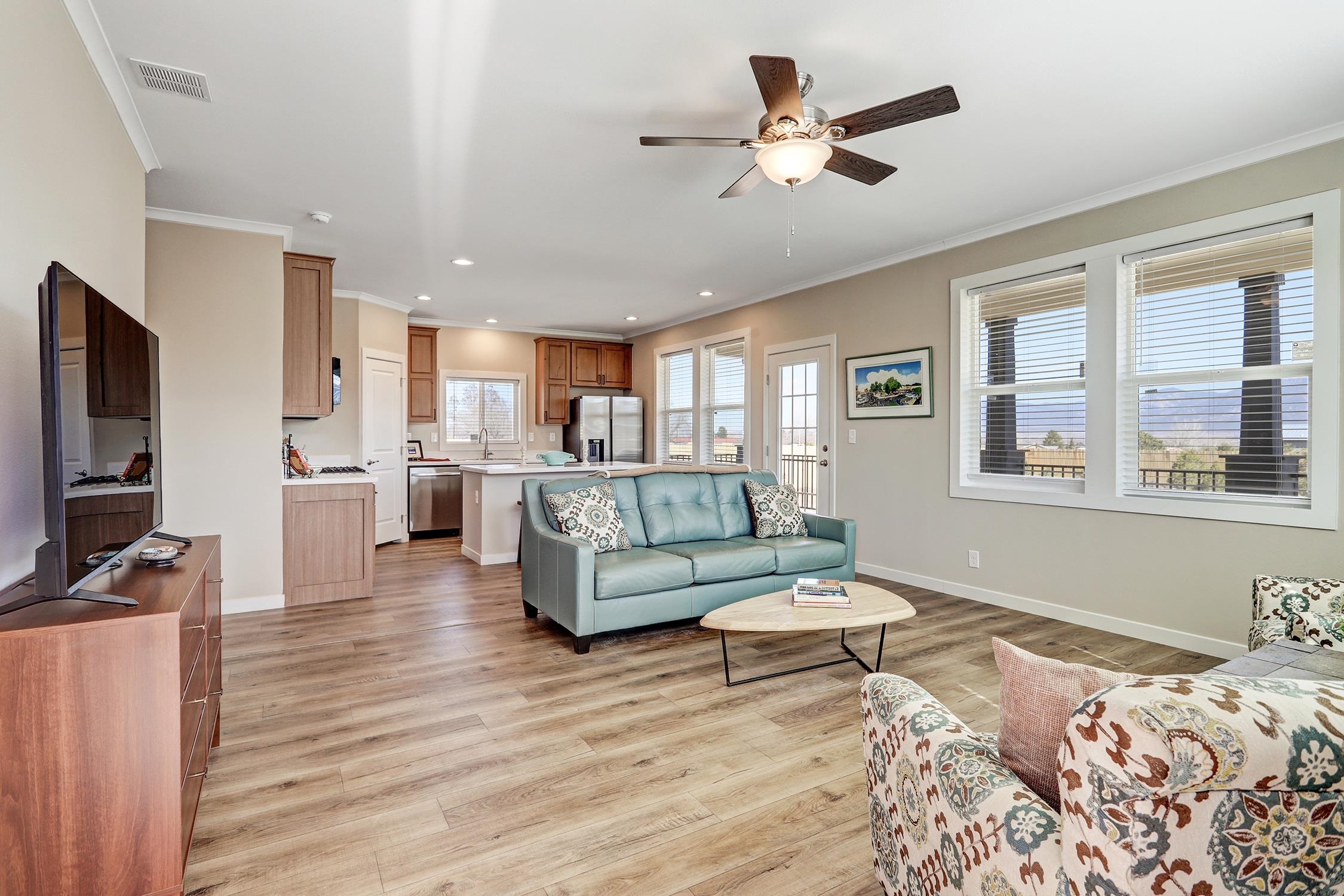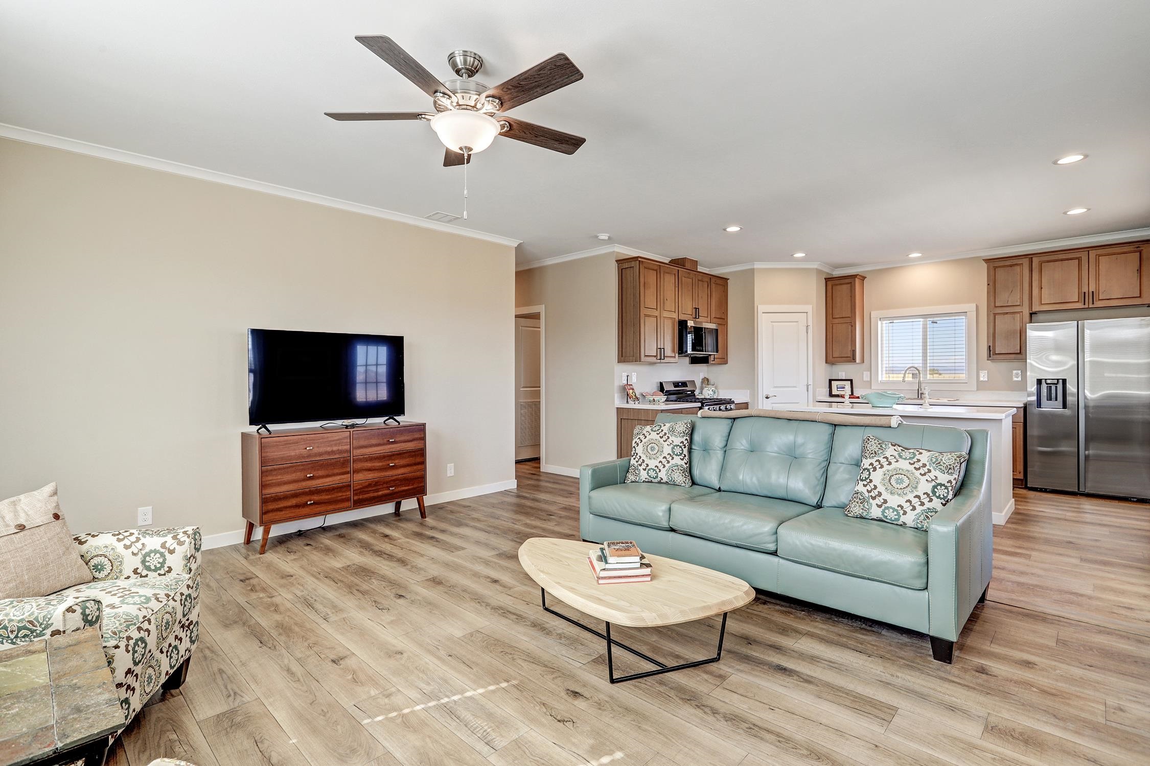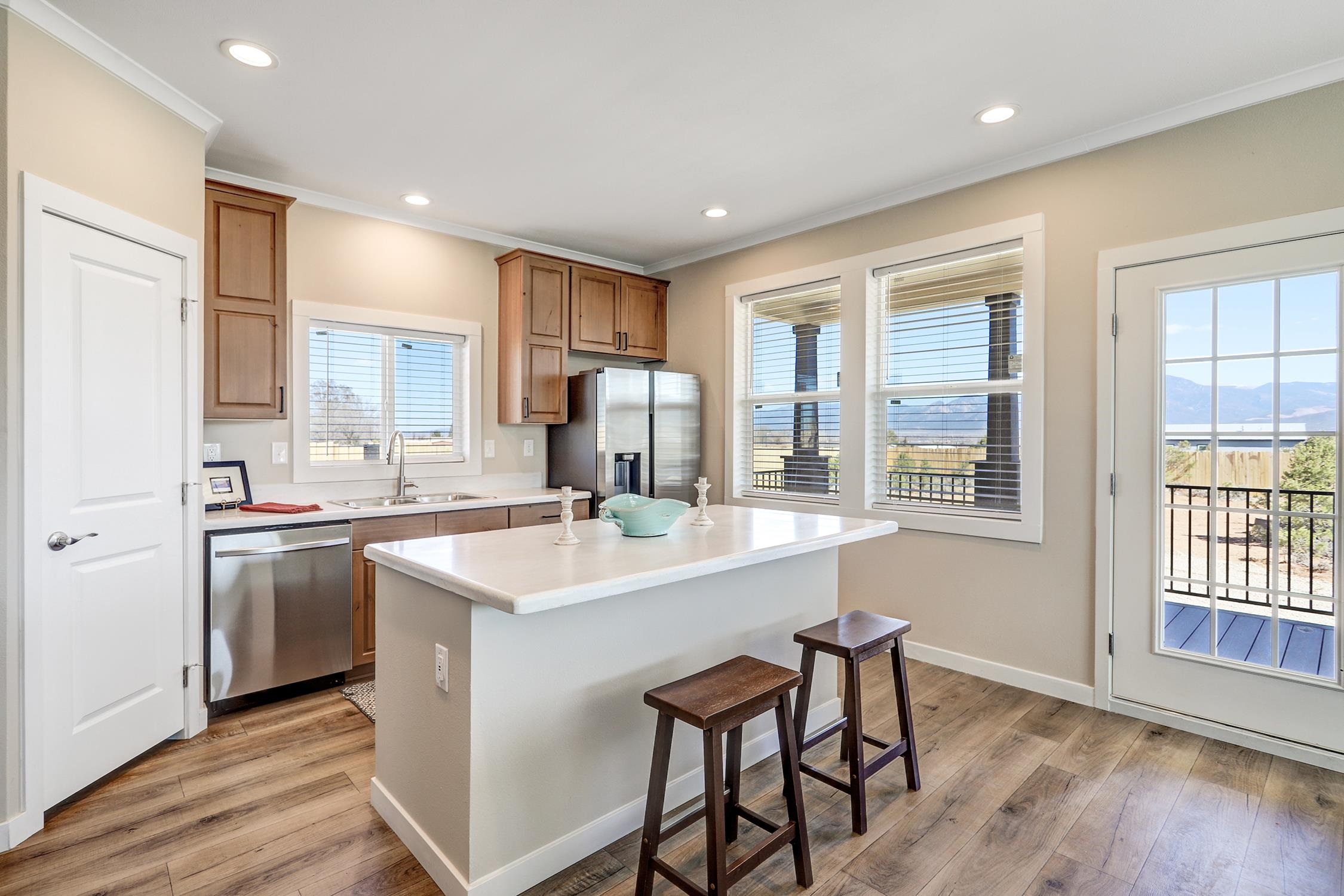 Brand new Karsten home in Ranchos de Taos with beautiful Taos Mountain views! This 1,110 sq ft, 2-bedroom, 2-bath home sits on 1.17 acres and features 9-foot ceilings throughout, taller upgraded cabinets, solid surface countertops, stainless steel appliances, and a walk-in pantry. Both bedrooms include walk-in closets, and 2-inch blinds are installed throughout. Enjoy the covered front porch, perfect for taking in the mountain views and big New Mexico skies. The home sits on an engineered foundation with block skirting and offers forced air heat with central A/C, plus an Energy Star furnace and hot water heater. The property includes two water meters and two water memberships, and the septic is permitted for three bedrooms, offering potential for a studio, casita, or additional mobile home. Three sides of the lot are fenced, and the location provides easy access to hiking and biking while still being a short drive to Taos amenities.