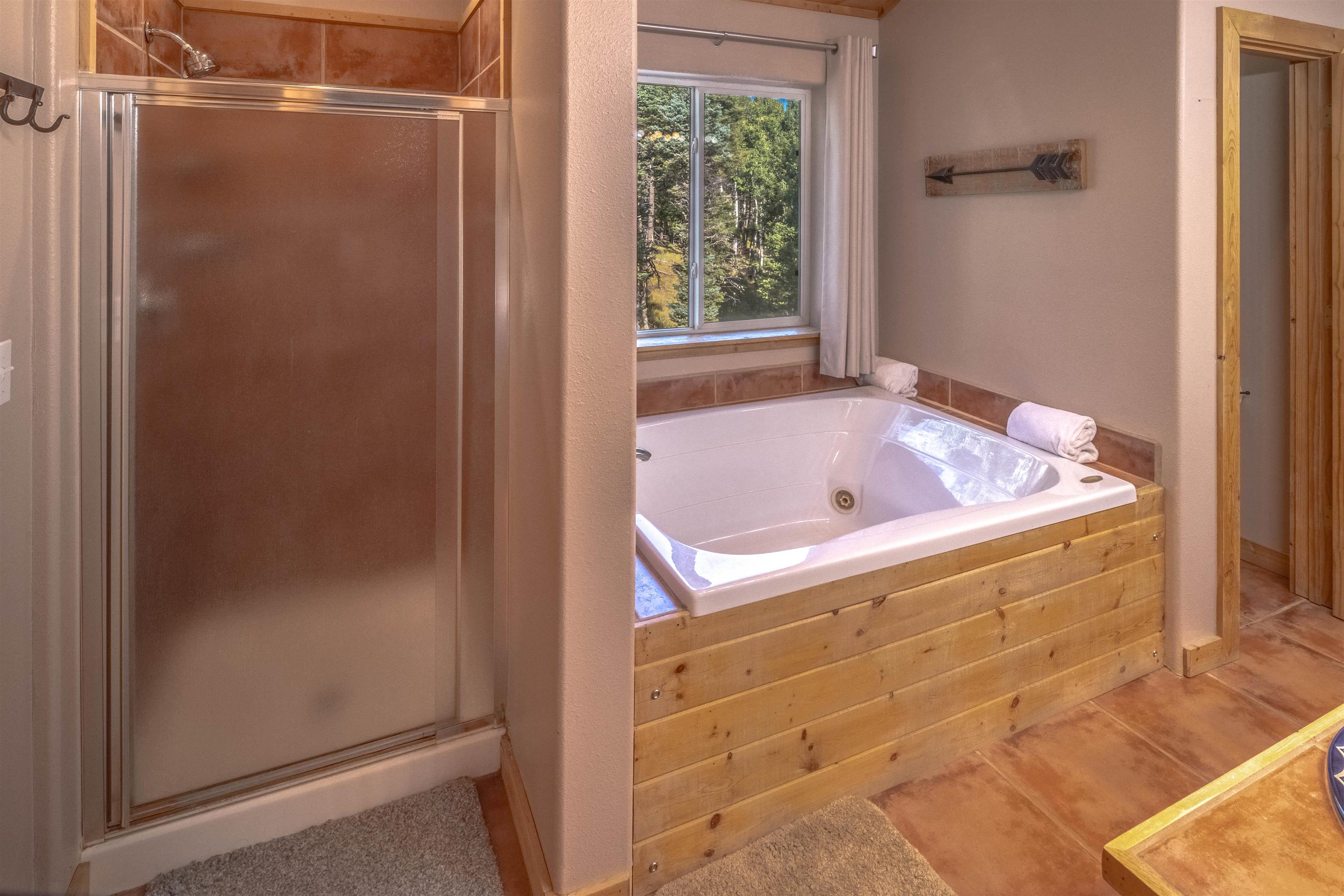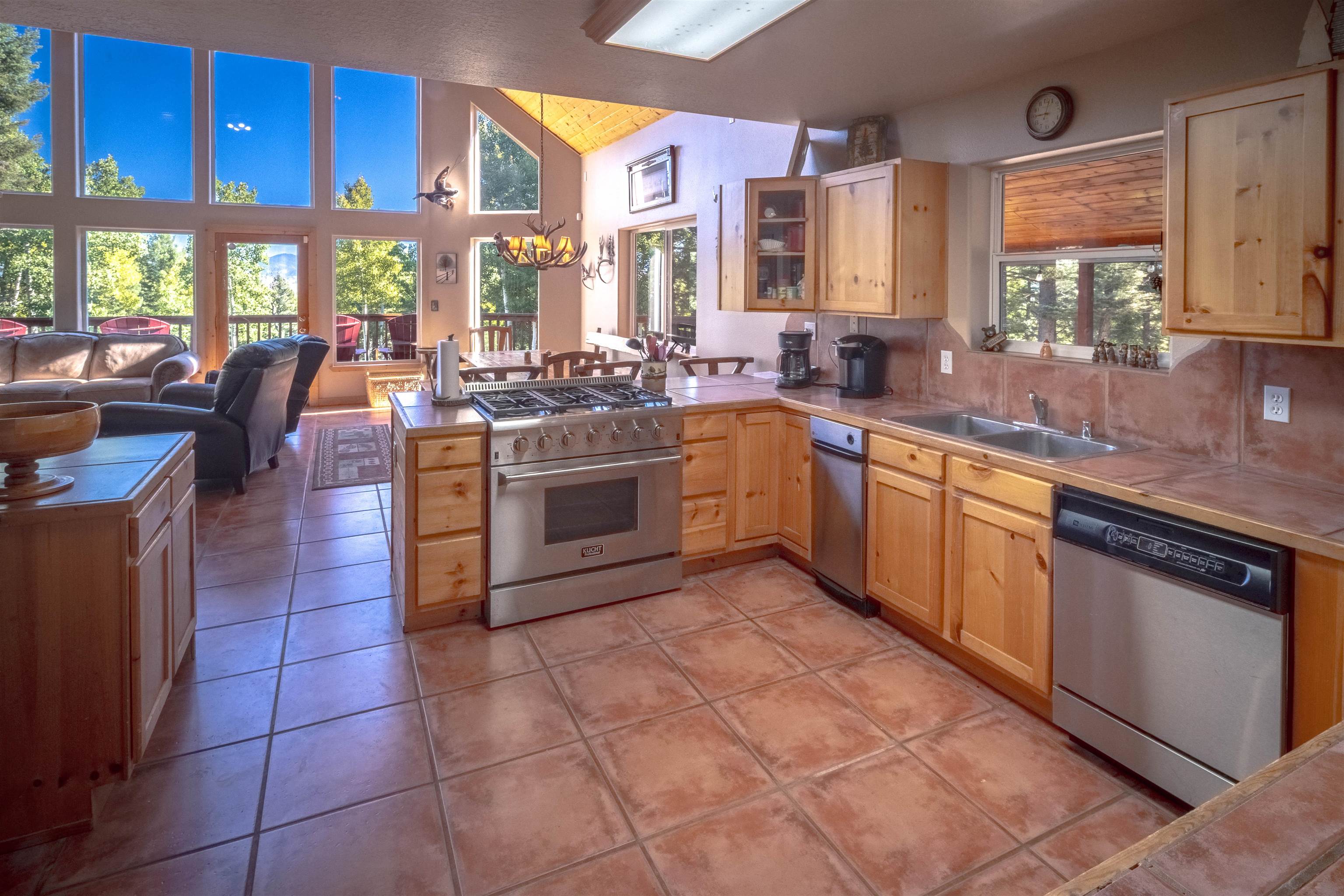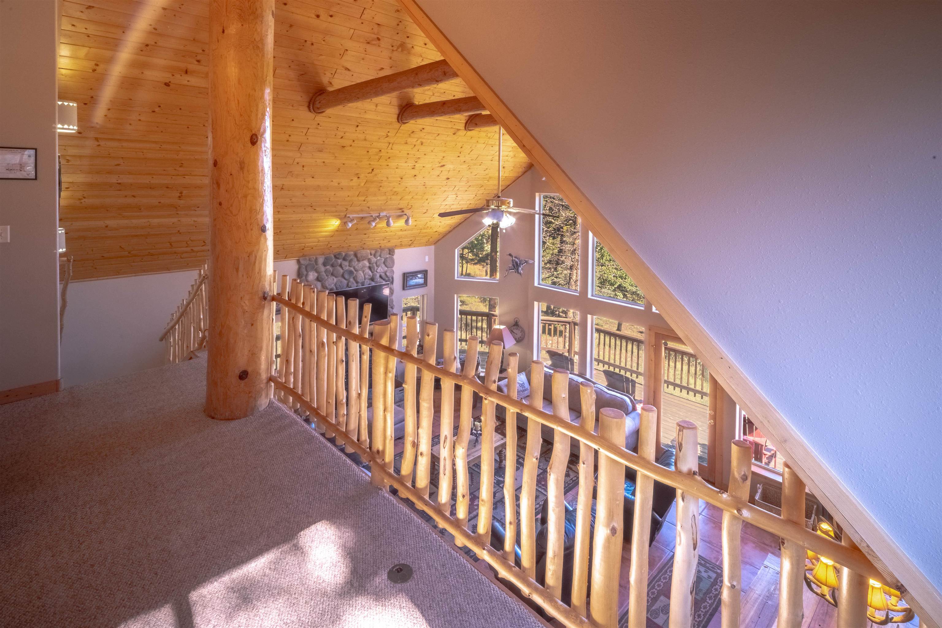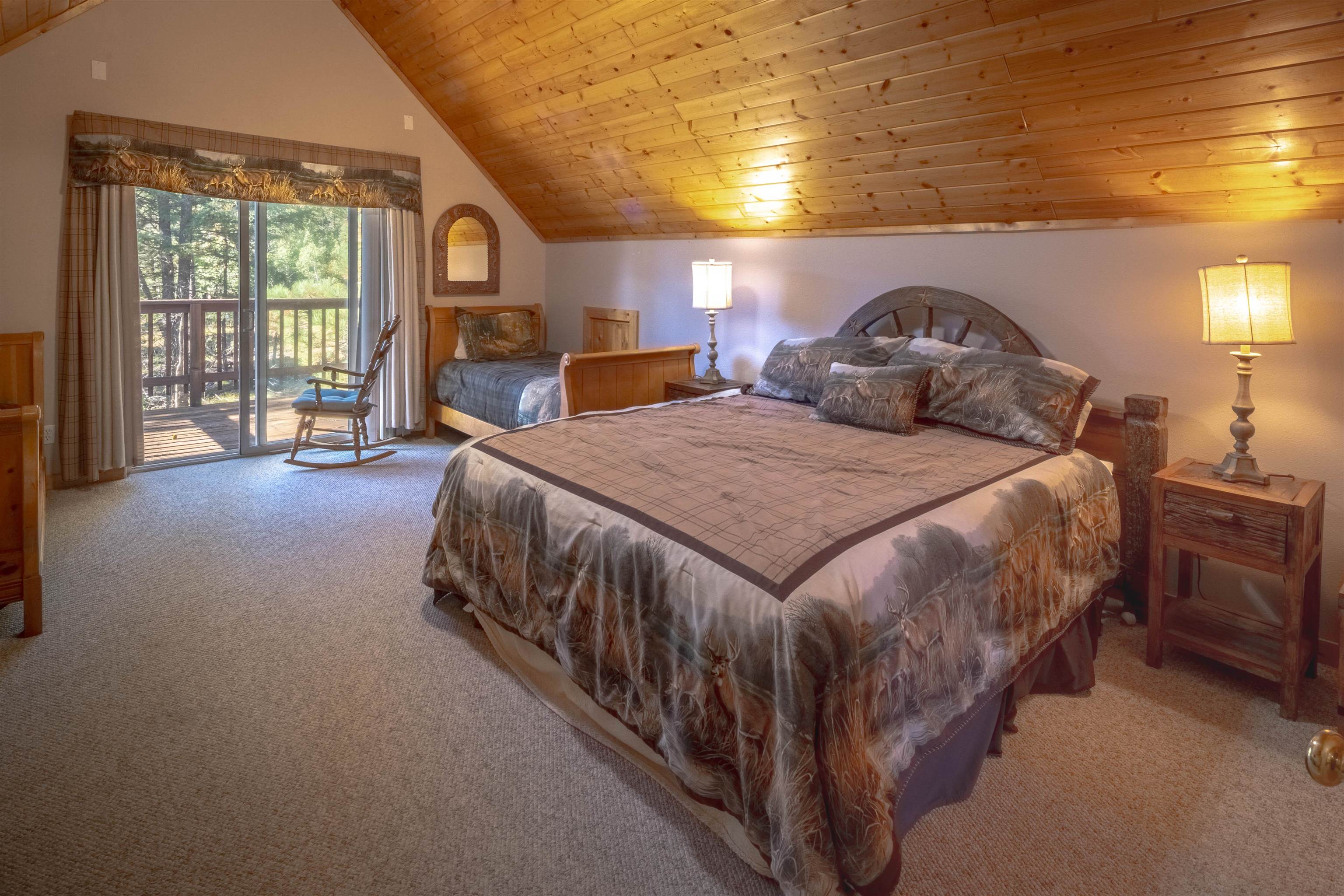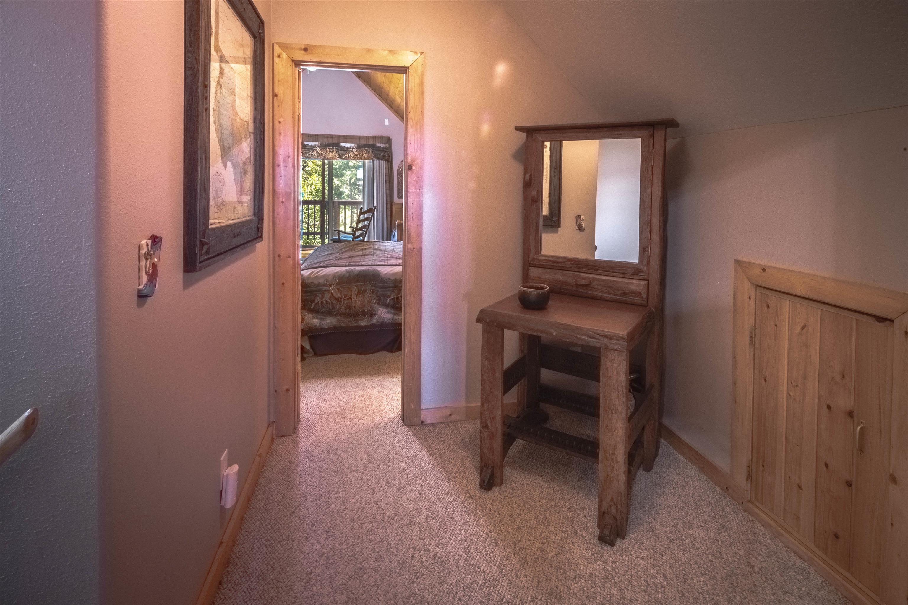Welcome to your dream mountain getaway! Nestled on 2 private acres with breathtaking mountain views, this 5 bed 4 bath, 3-level chalet is the epitome of Rocky Mountain charm, comfort, and functionality. Featuring an open-concept kitchen, a living & dining area with soaring tongue & groove ceilings, massive logs and a striking rock fireplace. Also a chalet-style wall of windows that floods the interior with natural light and mountain vistas. The upper level contains 2 master suites, a private deck with panoramic views and a loft area ideal for a home office or cozy reading nook. The main-level includes an expansive kitchen with commercial-grade range and ample counter space, a guest bedroom and full bath, a utility room & mudroom for convenience after outdoor adventures. The lower level offers 2 bedrooms, a full bath, and a large family room with a wet bar plus walk-out access to a flagstone patio with fire pit and mountain views. There is a finished oversized 2-car garage with a second-story storage area that could be converted into an additional bonus room. Quiet and easily accessible year-round location. About 5 minutes to Angel Fire Village, Championship Golf Course, Country Club, Fitness Center, and Ski-Resort.