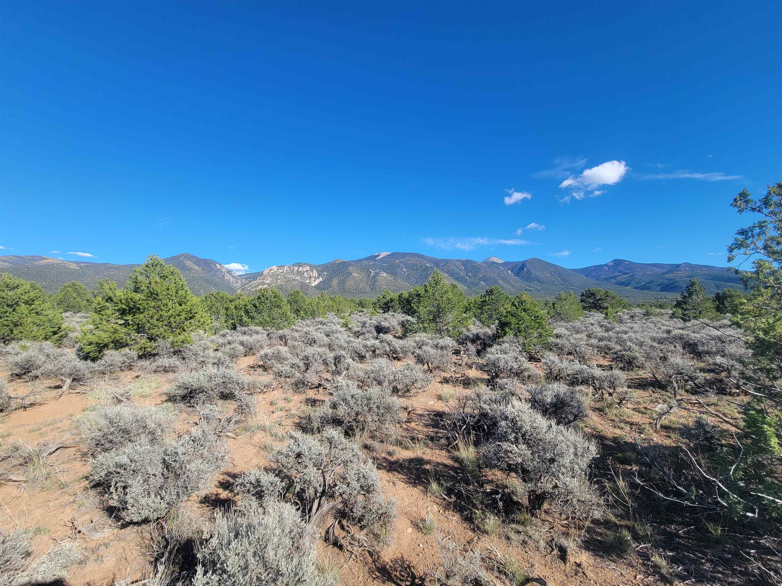 This is a place which needs to be seen in person as pictures won't do it justice. Nestled in between the pinon and juniper trees at the base of the Latirs, this peaceful and serene 5-acre improved lot has so much to offer. Three separate structures are already present. Each one is plumbed. Two of them can be turned into whatever your imagination brings. The current owner was going to house artists. The third structure houses the well, which is powered by solar cells. Electric is right by the lot however, should you want to tap into the grid. The lot has been cleared, and gravel driveways are already there. This is a must see for anyone looking for a special place.
