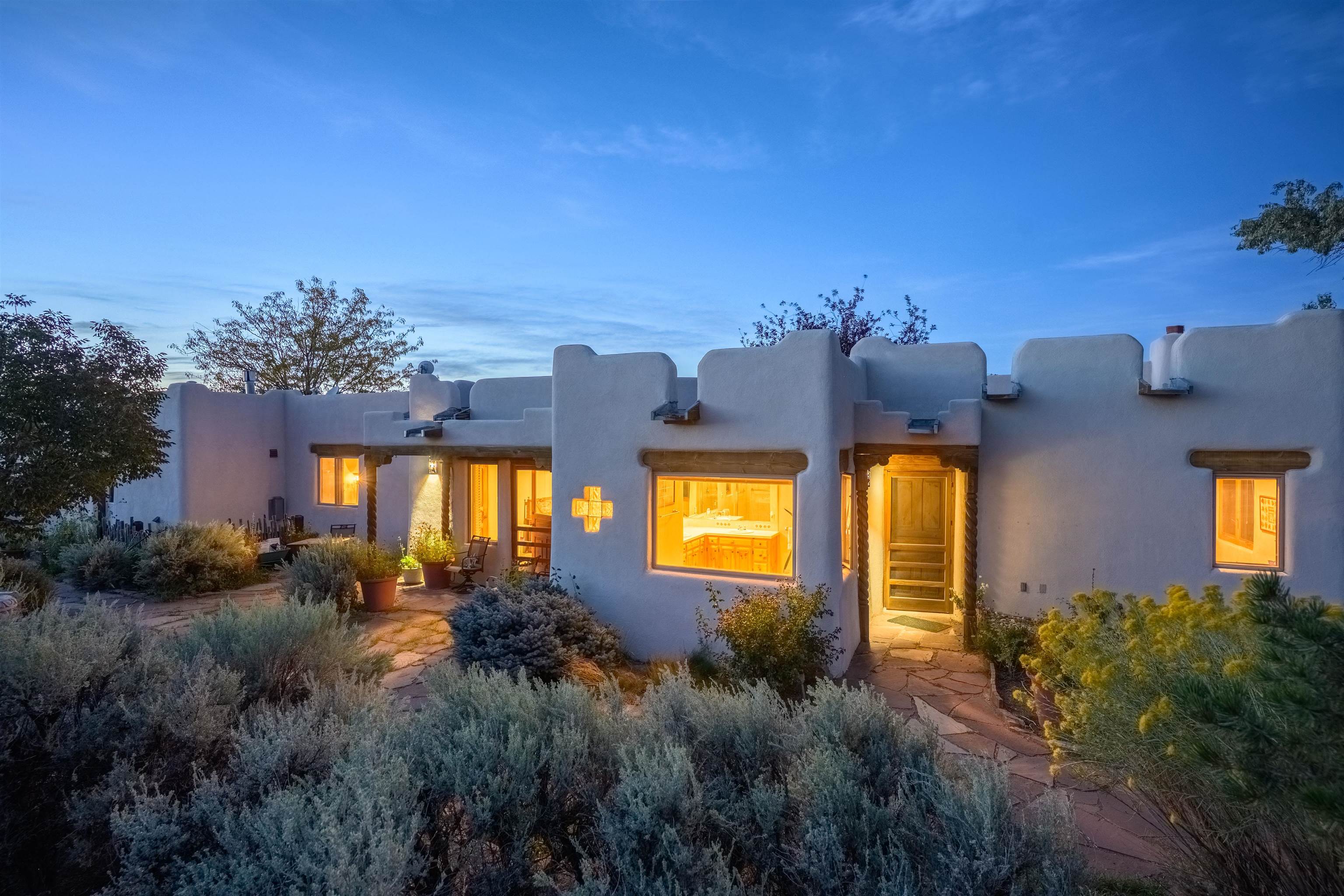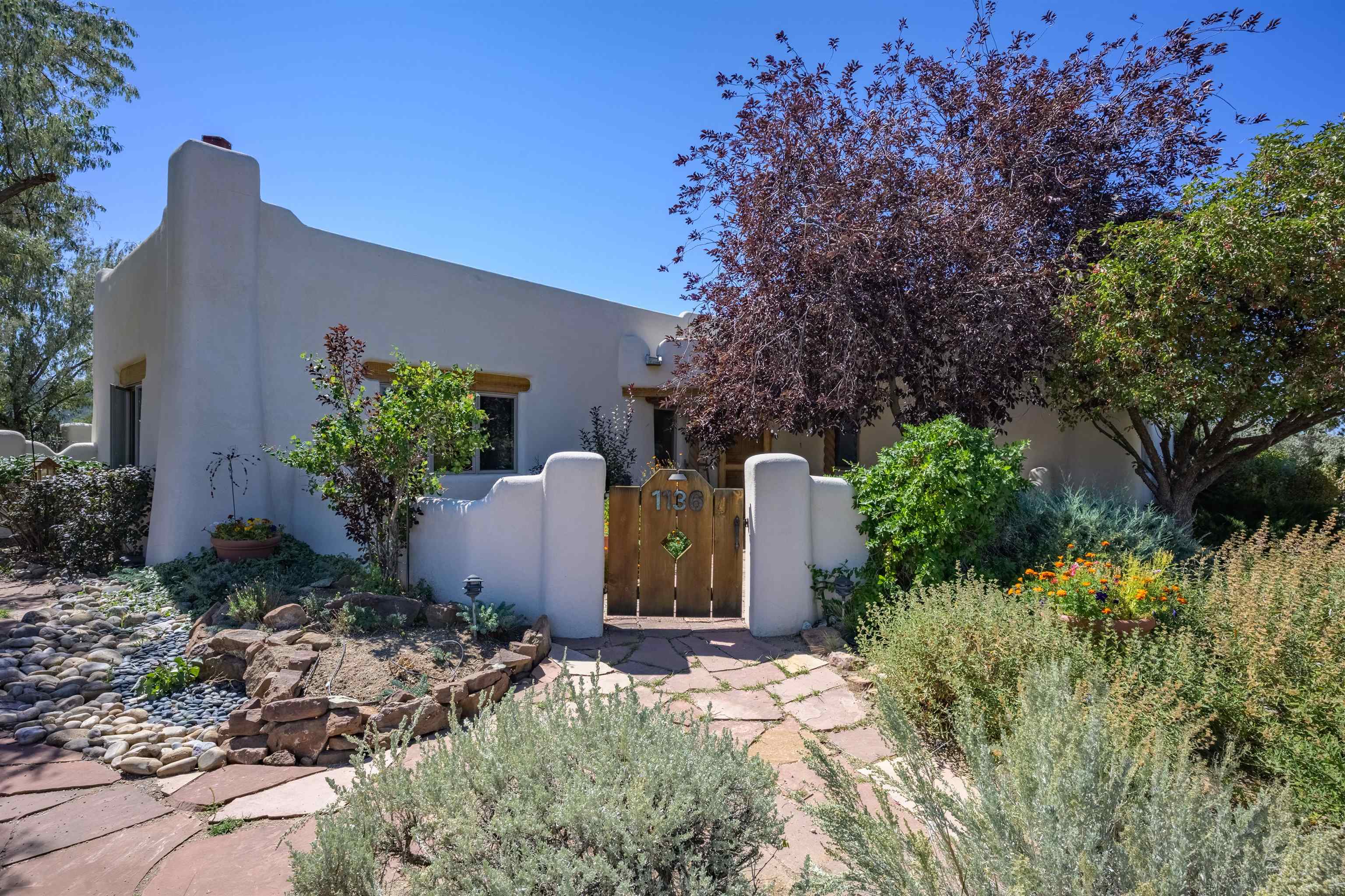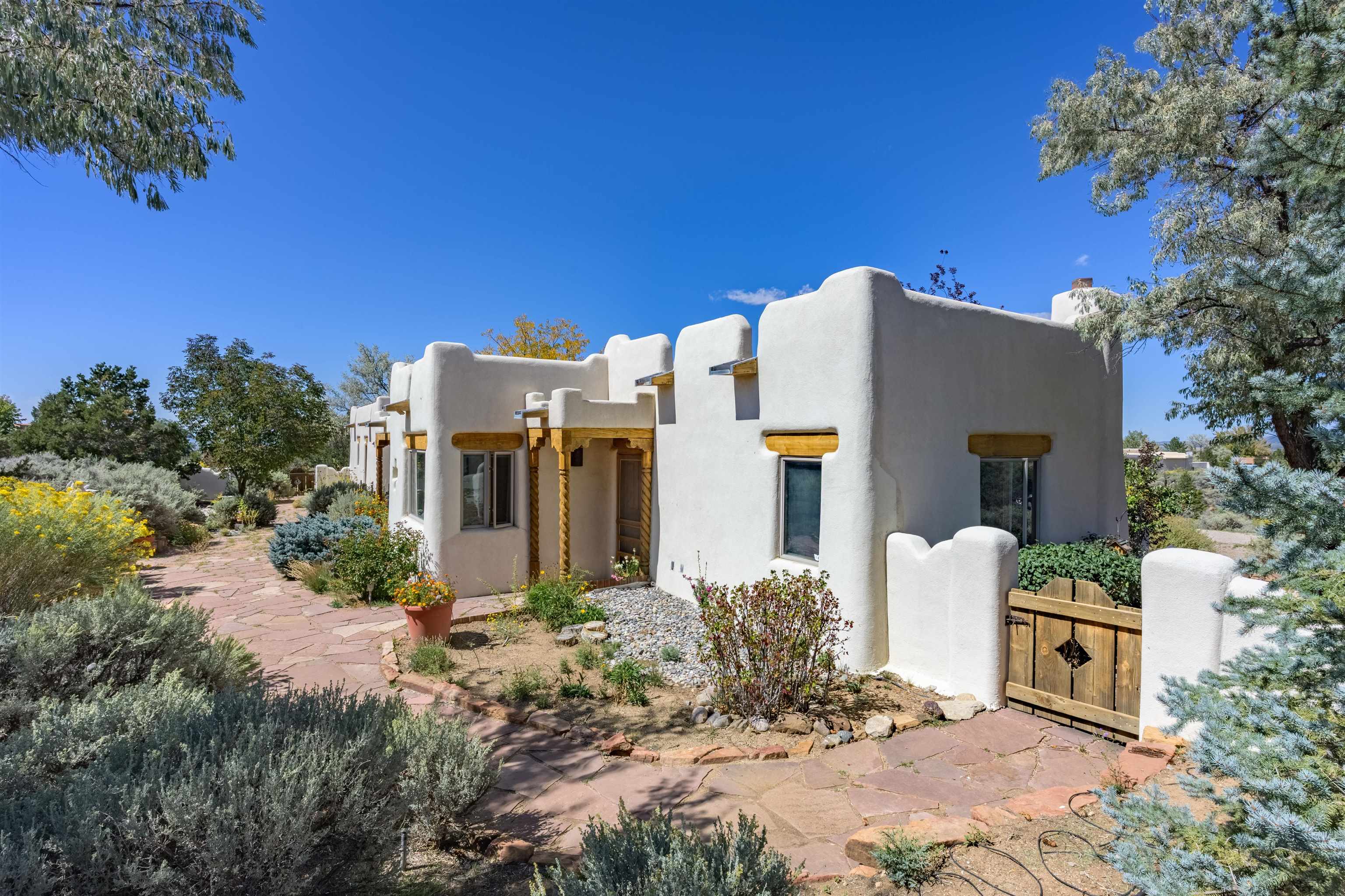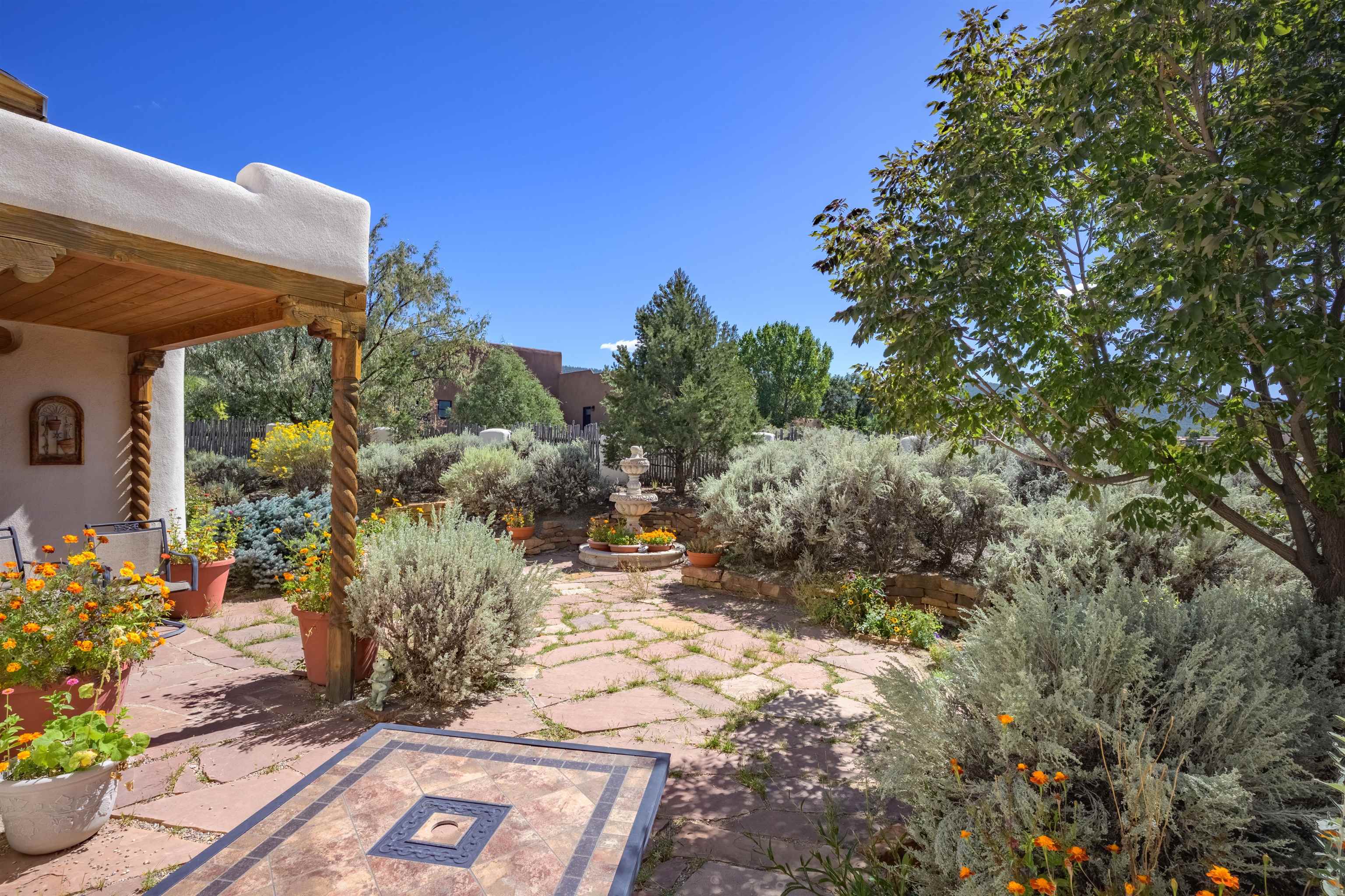 This home has been lovingly cared for by one owner. There is a new boiler for the radiant floor heat, new stucco and a recently coated brai roof. There are wonderful gardens all around the one acre lot and a jacuzzi to enjoy the night sky and sunset. Rooms are spacious with high ceilings, southwest style fireplaces in livingroom and primary bedroom with beautiful vigas and latillas. There is plenty of storage in the 2 car garage for all your activities!