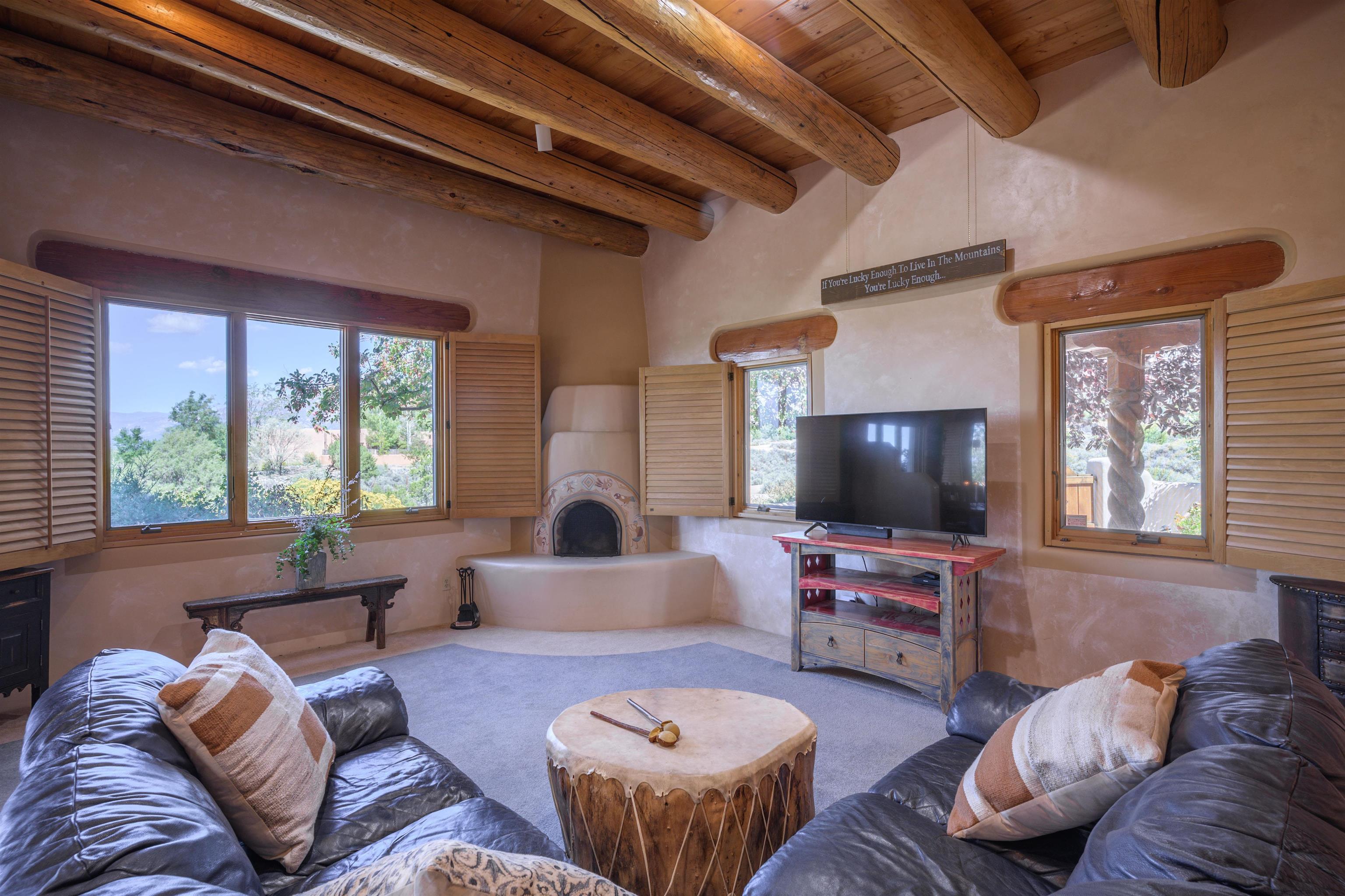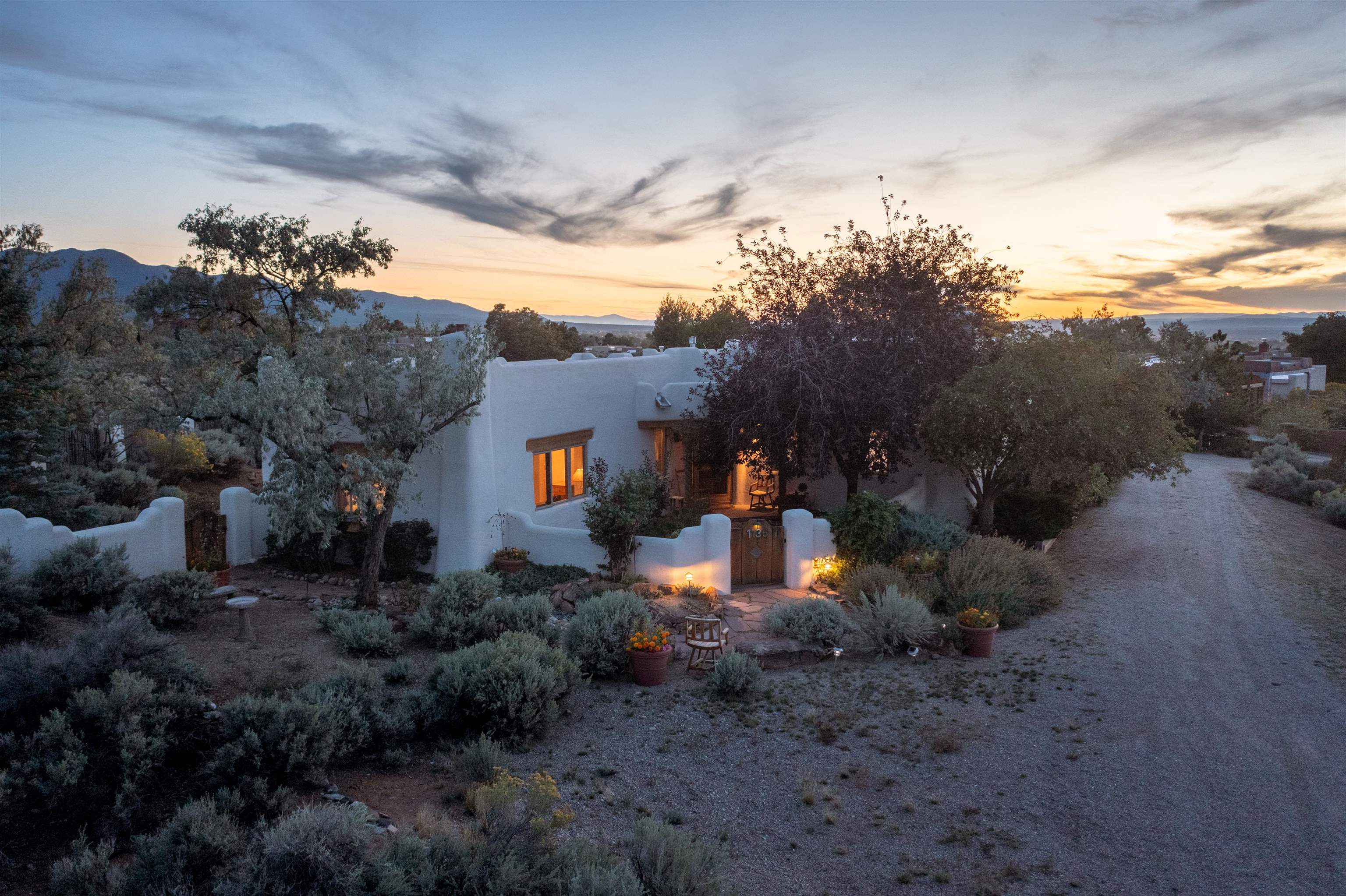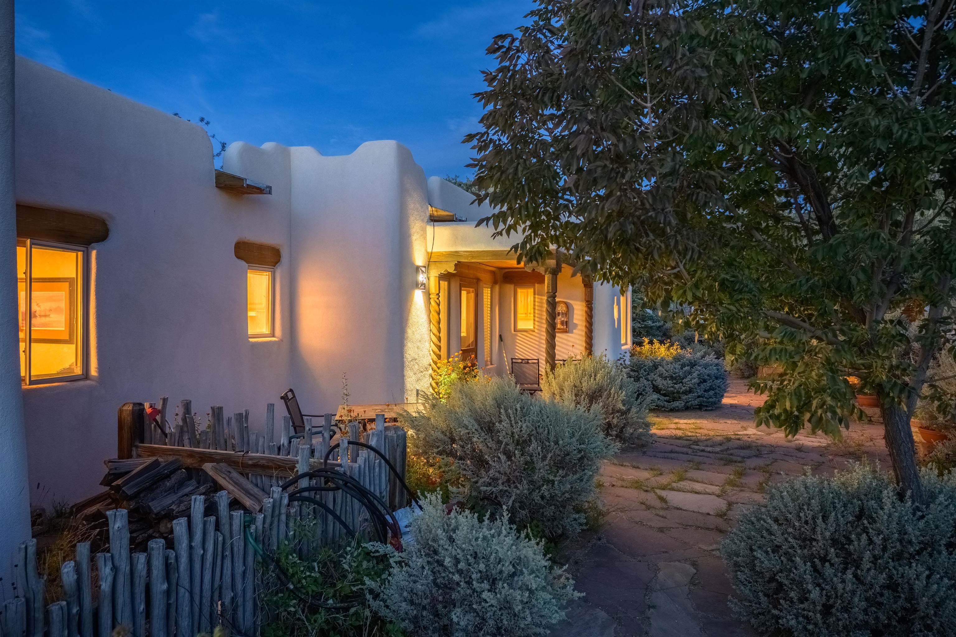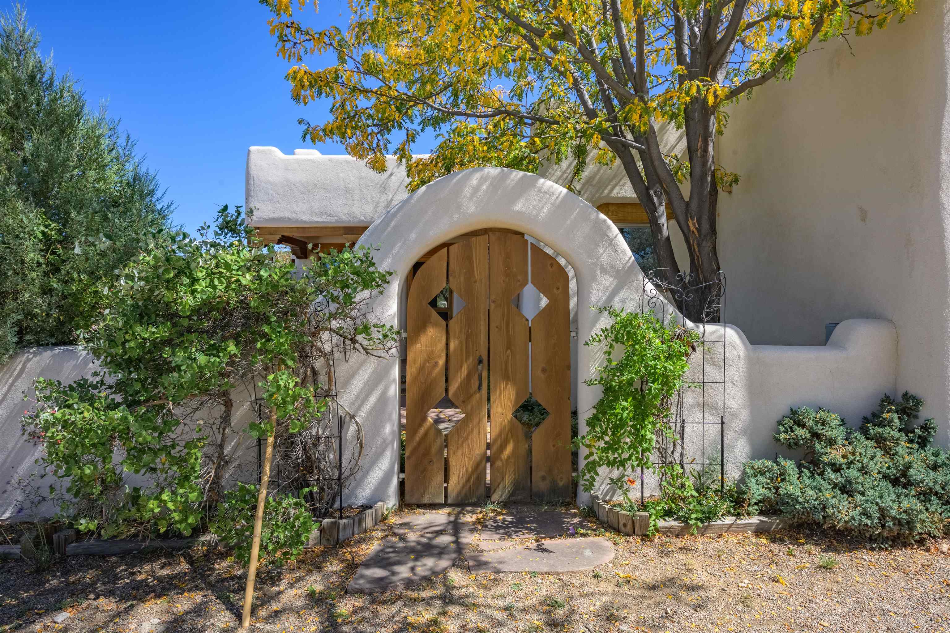 This home has been lovingly cared for by one owner. There is a new boiler for the radiant floor heat, new stucco and a recently coated brai roof. There are wonderful gardens all around the one acre lot and a jacuzzi to enjoy the night sky and sunset. Rooms are spacious with high ceilings, southwest style fireplaces in livingroom and primary bedroom with beautiful vigas and latillas. There is plenty of storage in the 2 car garage for all your activities!