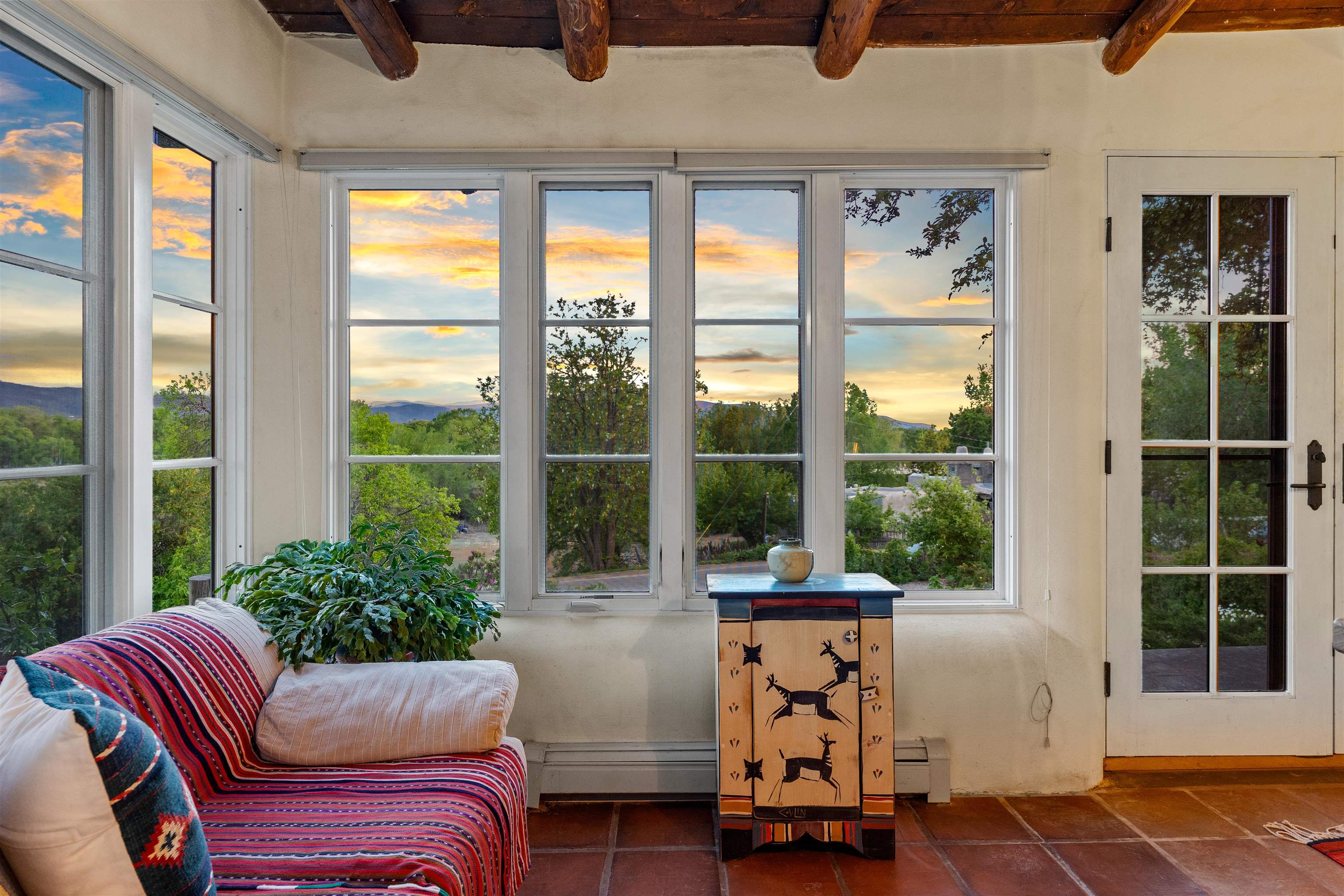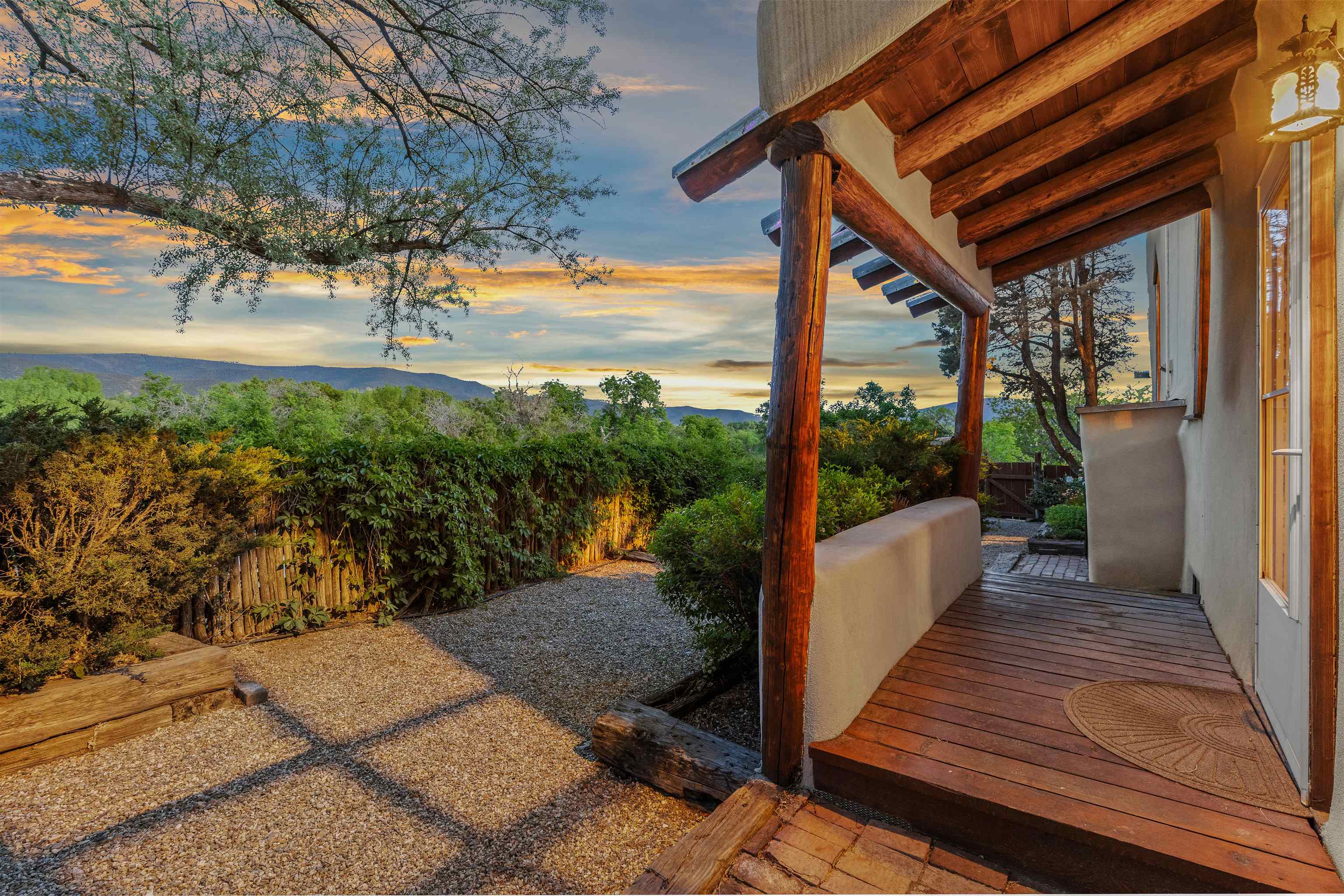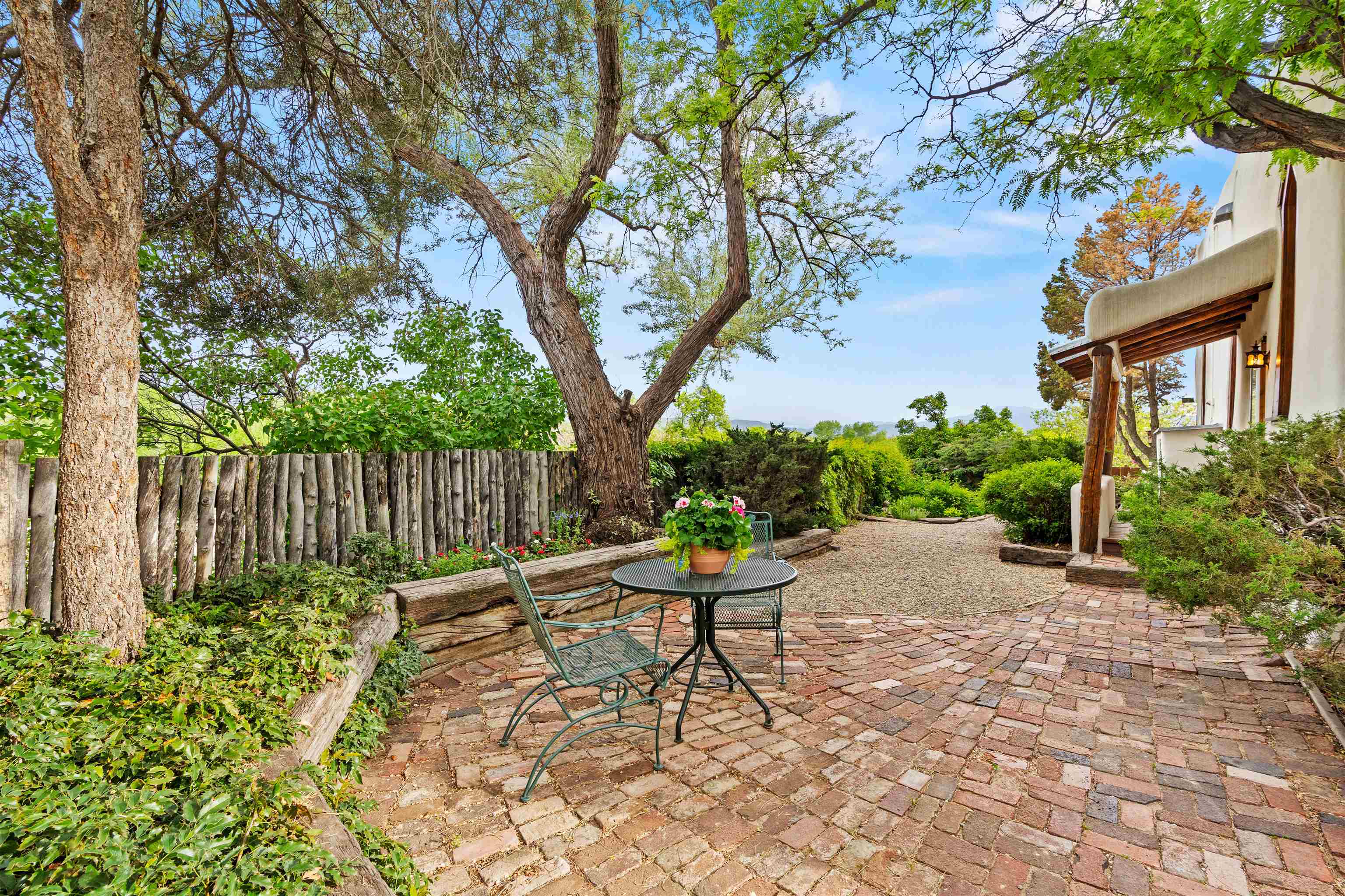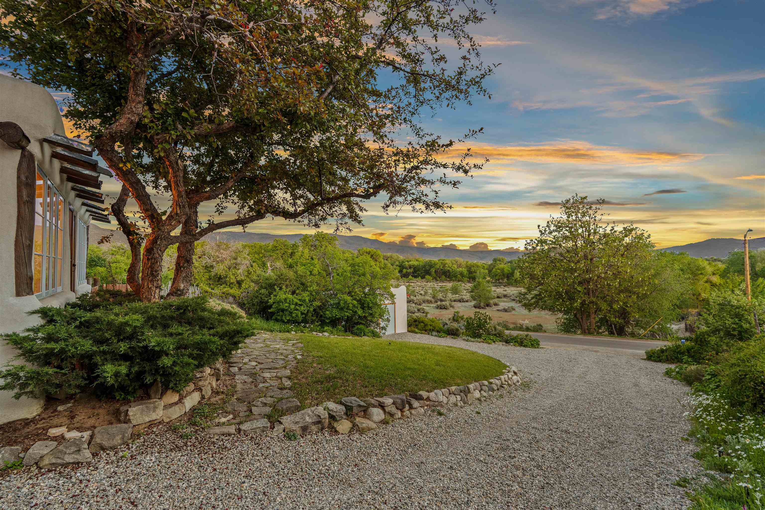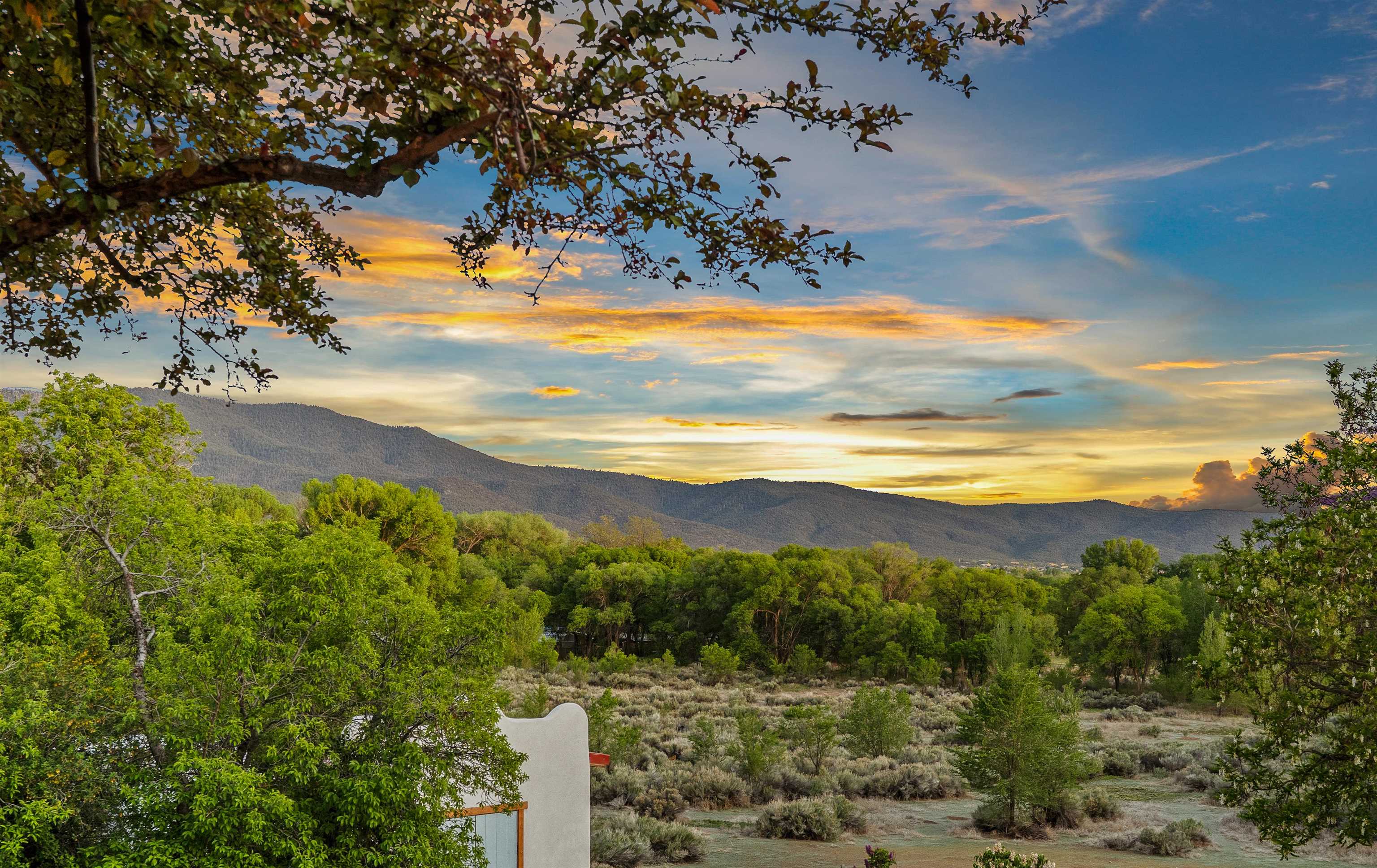 The Little White Church on Quesnel....... A historic home with spectacular views one block from Taos Plaza Once a modest adobe church, now a soulful architectural gem—this historic Taos residence is a rare blend of artistic heritage, thoughtful restoration, and New Mexican charm. Located on quiet Quesnel Lane and adjacent to the Couse-Sharp Historic Site, the property offers a peaceful retreat in the heart of town with roots in Taos’ creative and cultural legacy. The building itself dates back to the 1880s and was the Spanish Methodist church before being thoughtfully adapted into a private residence in the 1970s. Ask your Realtor for the “Church on Quesnel” history document, available in associated documents, to learn more about the home’s cultural lineage and transformation. The surrounding area is listed on the National Register of Historic Places and is part of a federally recognized Historic District, helping preserve the integrity and architectural fabric of this remarkable neighborhood. The light-filled entry/sunroom welcomes you with Saltillo tile, exposed vigas, and wraparound windows framing mountain views across the Couse meadow to the Truchas peaks. The former sanctuary now serves as an expansive open-concept living space with towering Gothic windows, multiple seating areas, a kiva fireplace, a wood-burning stove, and a warm plaster finish that invites comfort and conversation. The kitchen is a charming blend of style and function with gas range, custom cabinetry, open shelving, and a central island. Through an arched opening, a hallway leads to the first of three and a half bathrooms, featuring Talavera tile accents, built-in storage, and an art-glass window. Beyond this, the enclosed greenhouse breezeway—lined with windows and showcasing a red brick floor, herringbone latilla and viga ceilings, and hand-carved posts—guides you to four bedrooms, two with French doors, vaulted ceilings, creative loft nooks, and rustic textures that balance charm with comfort. At the end of the breezeway, the third bedroom (or media room, office, or art studio) offers versatility with built-in bookshelves, a large walk-in closet, and a private ¾ bath. The primary suite lies beyond a final arched doorway, offering Saltillo floors, a custom wood sunburst ceiling, and a sliding window wall that opens to the courtyard and an expansive view of the Truchas peaks, blurring indoor and outdoor living. The en-suite ¾ bath includes a walk-in shower and colorful tile details, and a spacious walk-in closet offers ample storage. The private courtyard is a highlight of the property, with a red brick patio and walkways, a grassy lawn, garden beds, mature trees, and a secluded hot tub with a view of the moonrise and distant mountains. Multiple outdoor seating areas enjoy sun or shade at any time of day. A side yard with lush greenery offers another peaceful outdoor space with its own door to the main living area. This property features classic adobe construction, single-level living, preservation of original historic elements, and an unbeatable location just one block from the Taos Plaza and surrounded by key landmarks. A truly one-of-a-kind opportunity to own a piece of Taos history—artful, inviting, and deeply rooted in place. This is the first time the house has been on the market in 47 years. Contact Cyndi to schedule your private showing. MATTERPORT VIDEO LINK: https://my.matterport.com/show/?m=2UQ6vUFRMEr