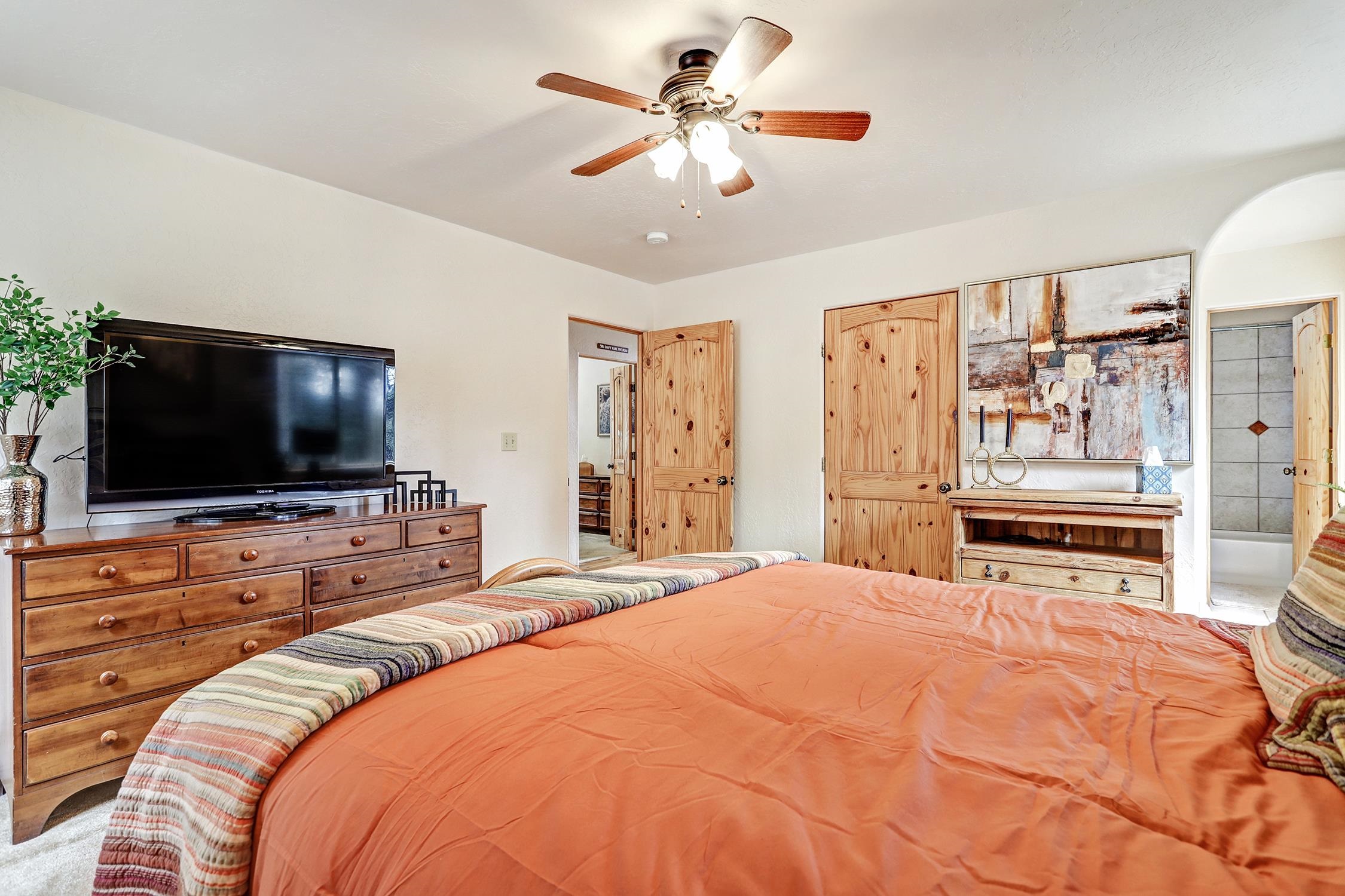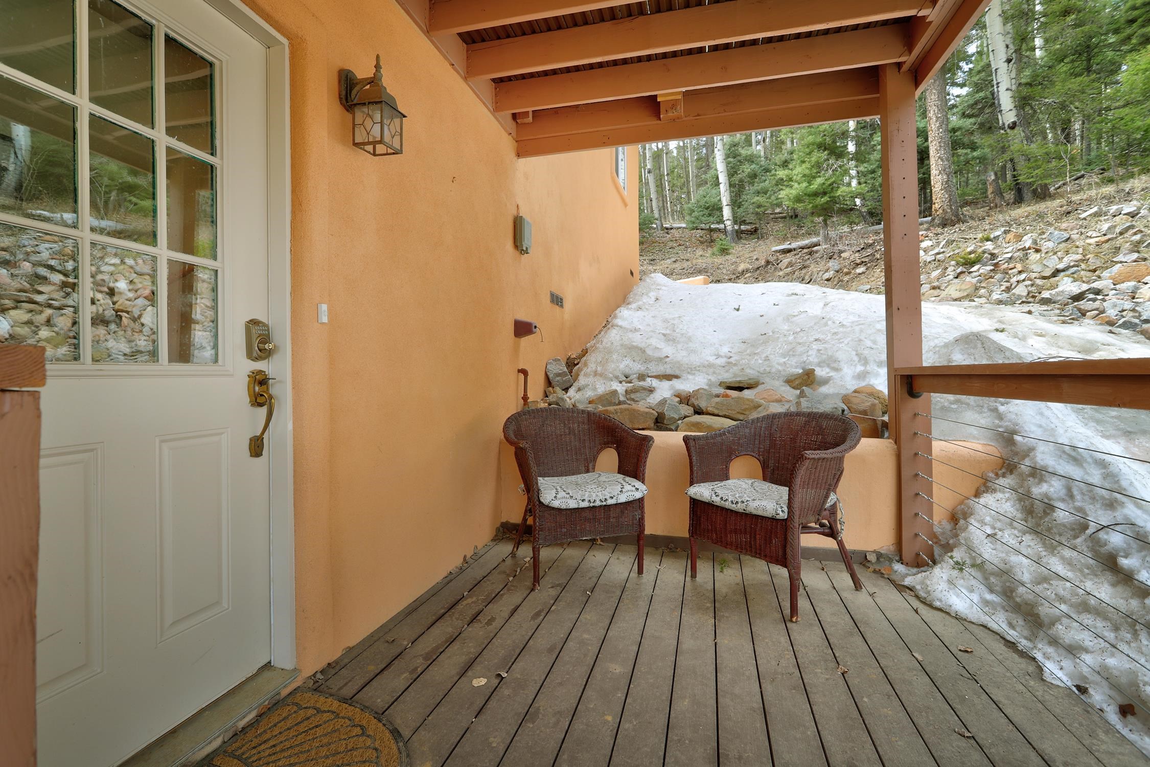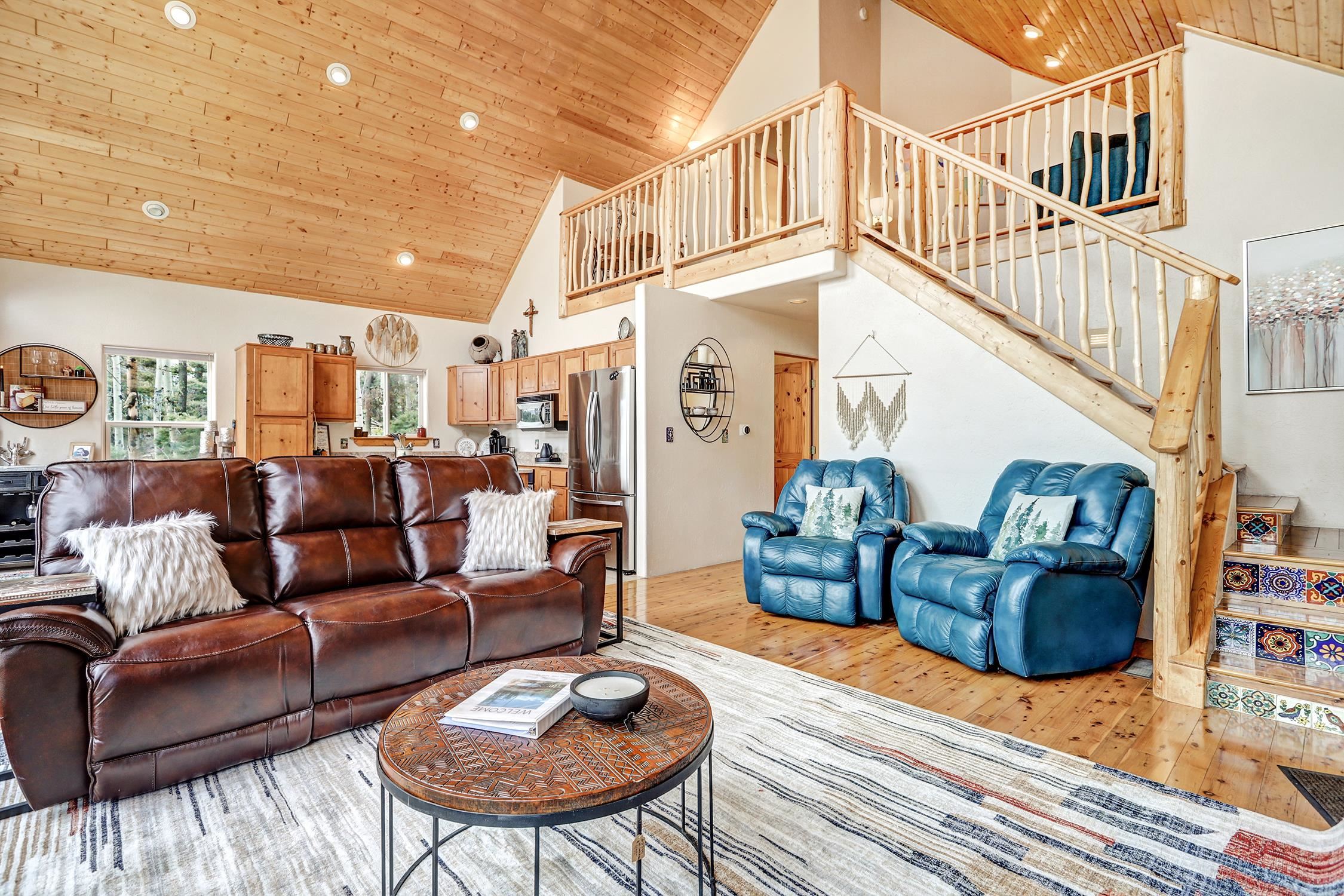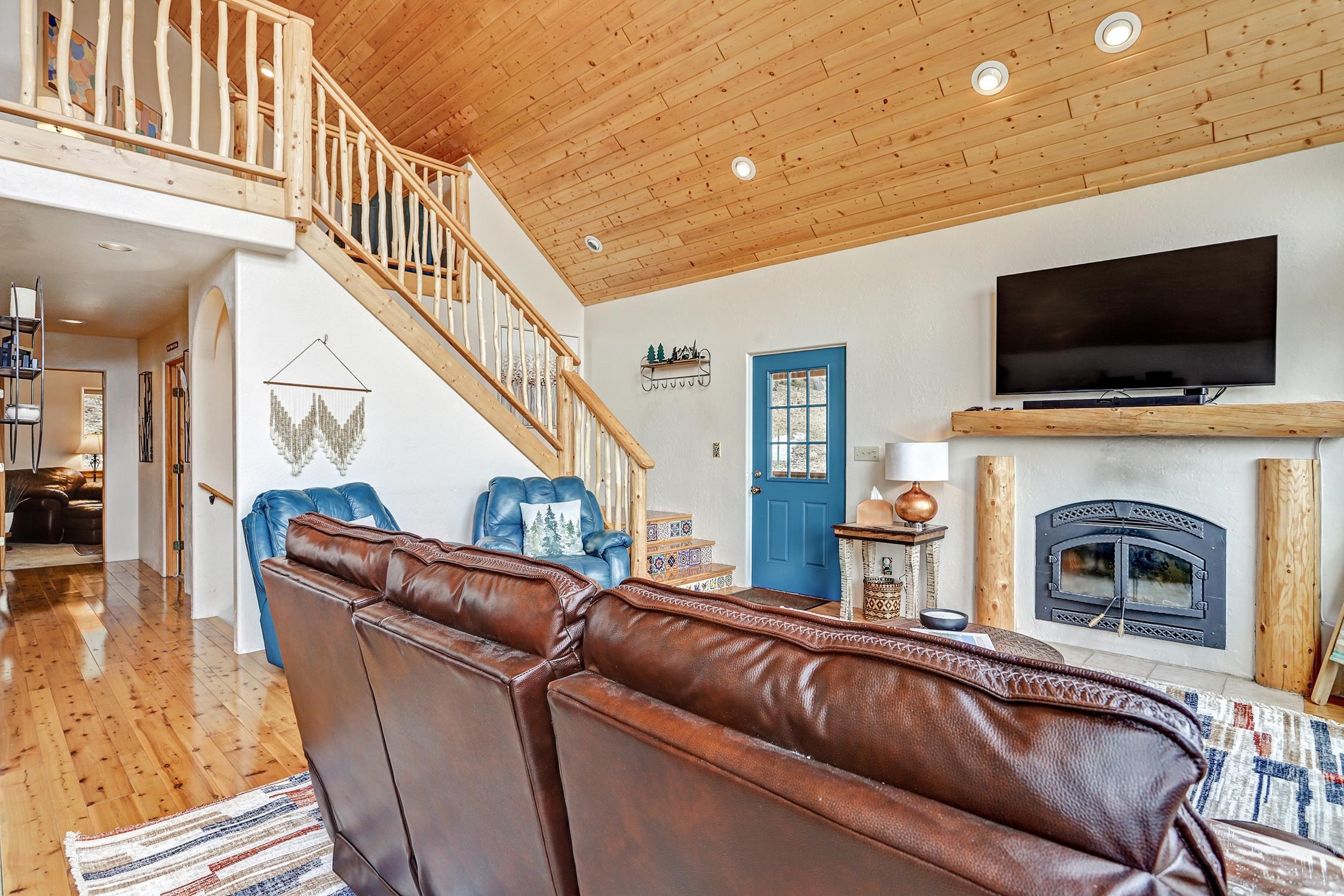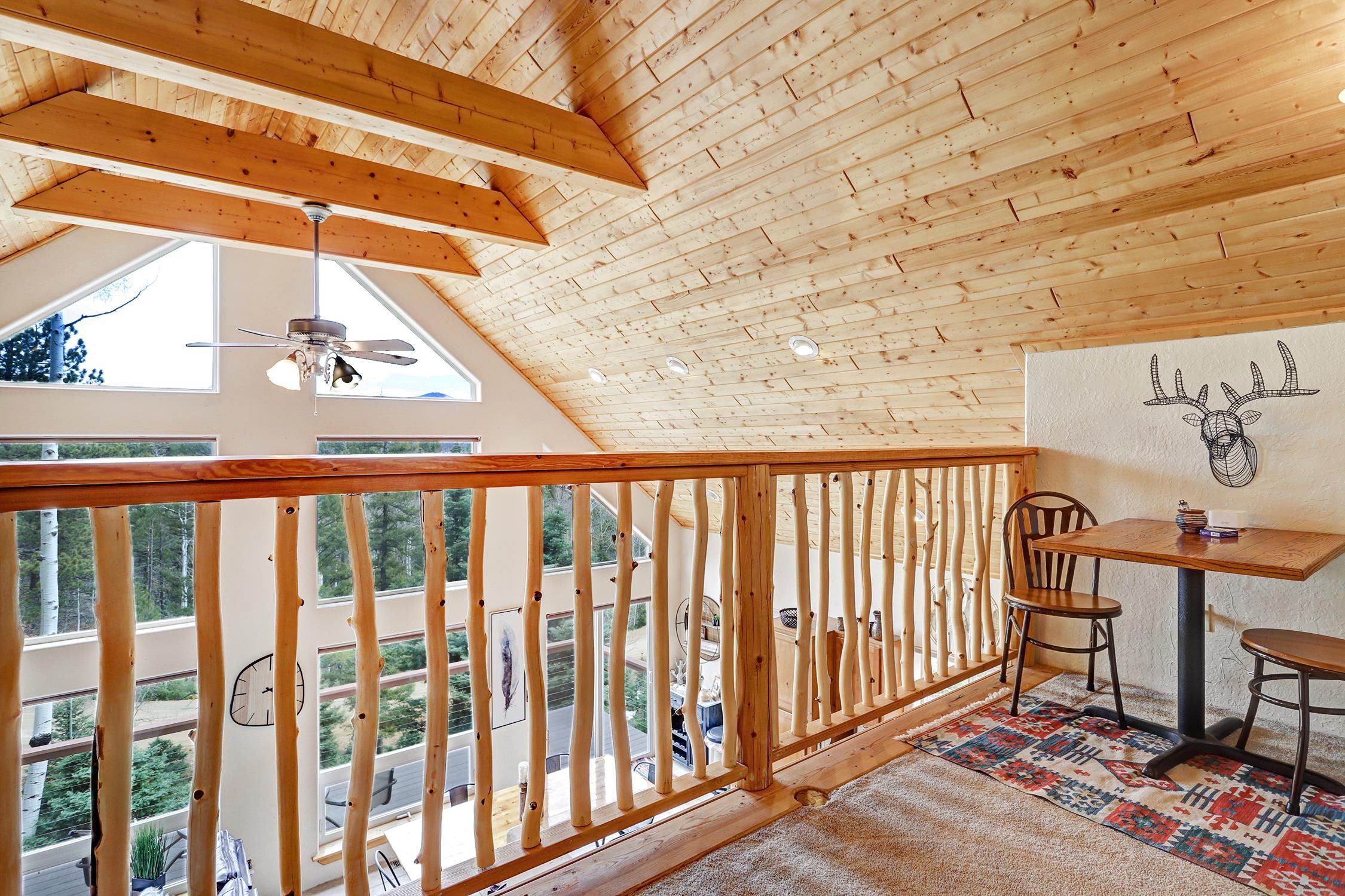 Perched in the trees of Angel Fire, NM, this 4-bedroom, 3-bathroom home is comfortable and inviting. As you step inside, you'll be greeted by a cozy living room, complete with a wood-burning stove, perfect for those chilly mountain evenings. The open-concept design seamlessly connects the living area to a kitchen featuring solid surface countertops, and a dining area with a wine bar, providing both style and functionality for all your gatherings. This home features not one, but two master suites, offering privacy and convenience. The additional loft space serves as a versatile area for extra sleeping with a sleeper sofa or an extra hangout spot. Step outside onto the expansive deck and take in the breathtaking mountain views that Angel Fire is renowned for. The large 1.64-acre lot provides ample space for outdoor activities and future landscaping dreams. The property is move-in ready, with a proven rental history, making it a home as well as an investment opportunity. For those with a passion for vehicles or outdoor gear, the 2-car garage includes an extra tall bay, accommodating larger vehicles or additional storage needs. Don’t delay, this stylish home is sure to get lots of attention!