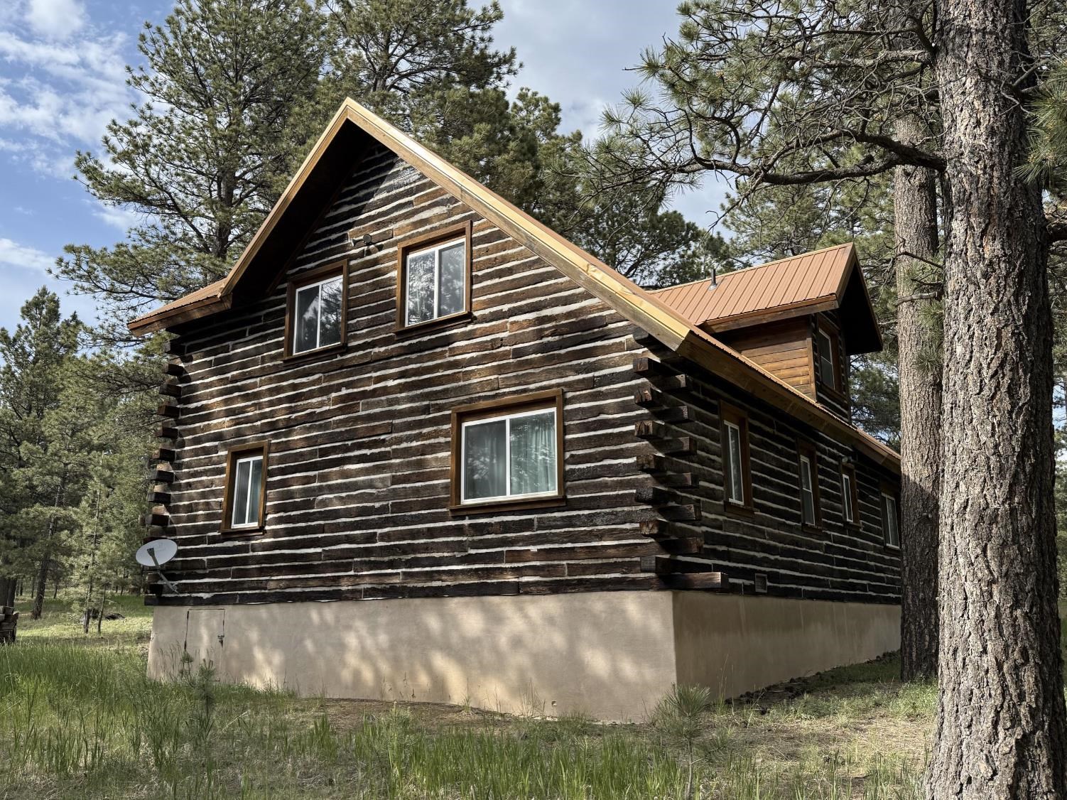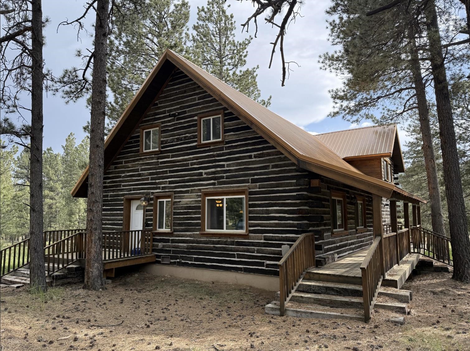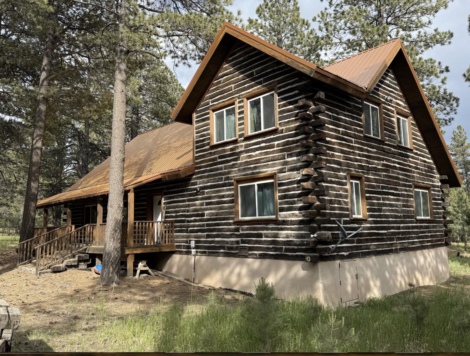 Secluded Forest Mountain Retreat! Well-maintained 3 bed 3 bath railroad tie home on over 2 acres tucked away in a serene private forest. This almost 3000 sq ft home offers the perfect blend of rustic charm and modern comfort. Crafted with timeless character, the home features rich hardwood floors throughout, large Vigas, and soaring vaulted ceilings. The spacious layout includes 3 bedrooms and 3 full bathrooms. A large bonus loft provides versatile space for a home office, studio, gameroom or guest area. At the heart of the home, a generously sized kitchen island anchors the open-concept kitchen, perfect for cooking, gathering, and entertaining. Step outside to enjoy the peaceful surroundings from your covered patio and expansive deck. Enjoy the convenience of high-speed internet to stream, work and play. Beautifully designed for comfort, this unique home offers a rare opportunity to live outside of the resort area while still enjoying resort amenities. INCLUDES a Angel Fire Resort membership lot which means amenity package is included so you and your immediate family will enjoy ski passes, country club access, golfing in the Summer and more.(rules and regs apply to membership). A mere 10 minute drive to Angel Fire ski area, the PGA rated golf course, hiking/biking trails, tennis/pickleball court, Monte Verde Lake and country club.