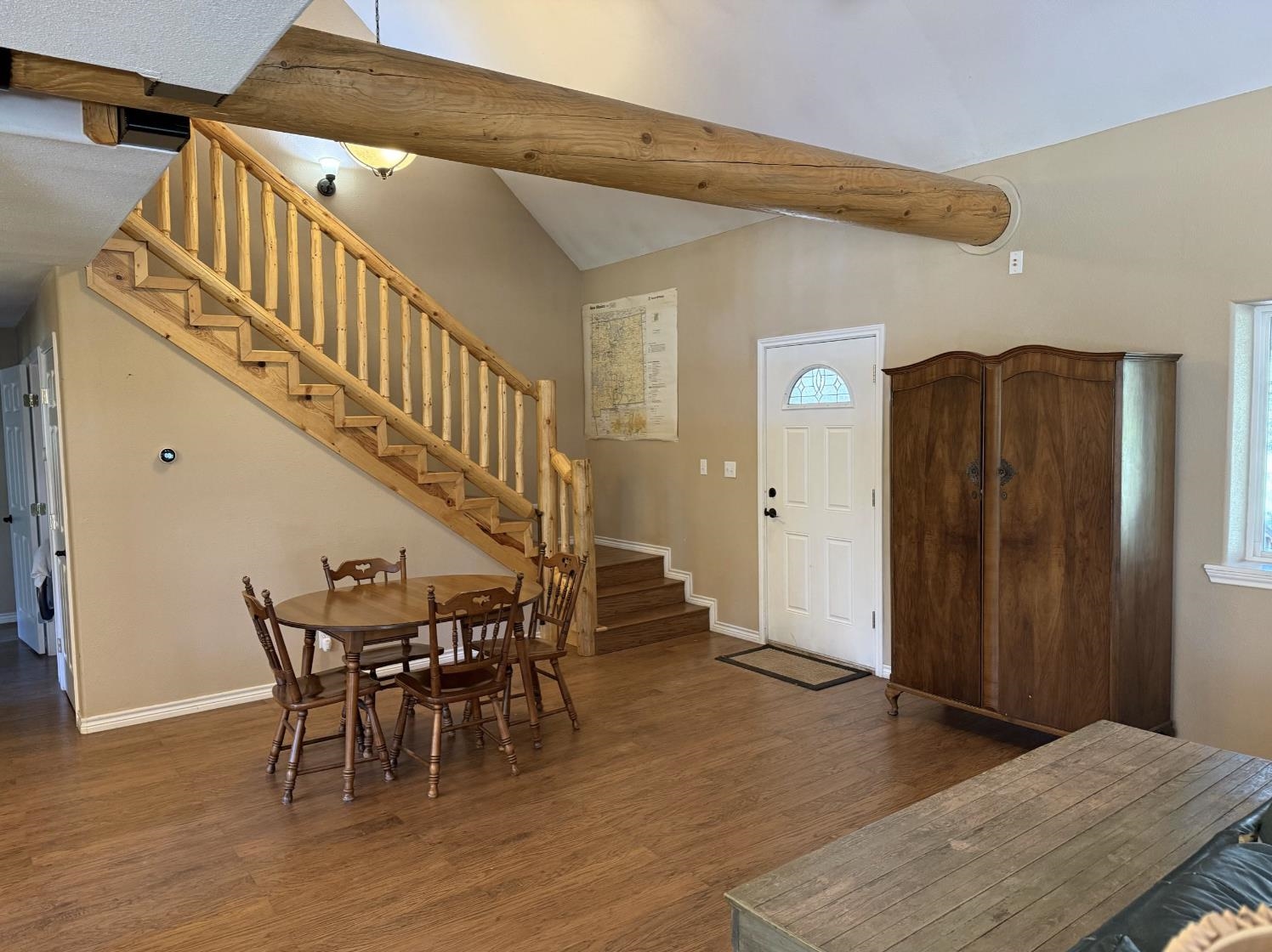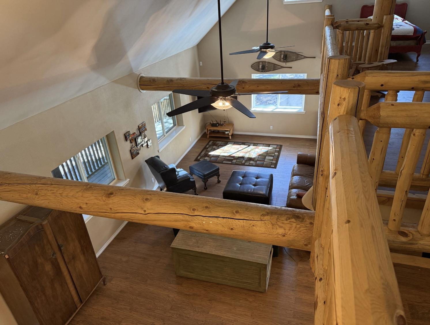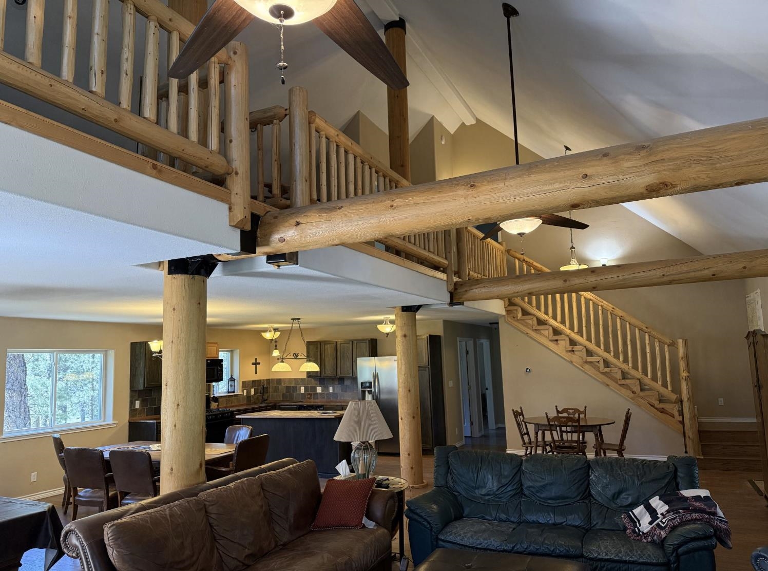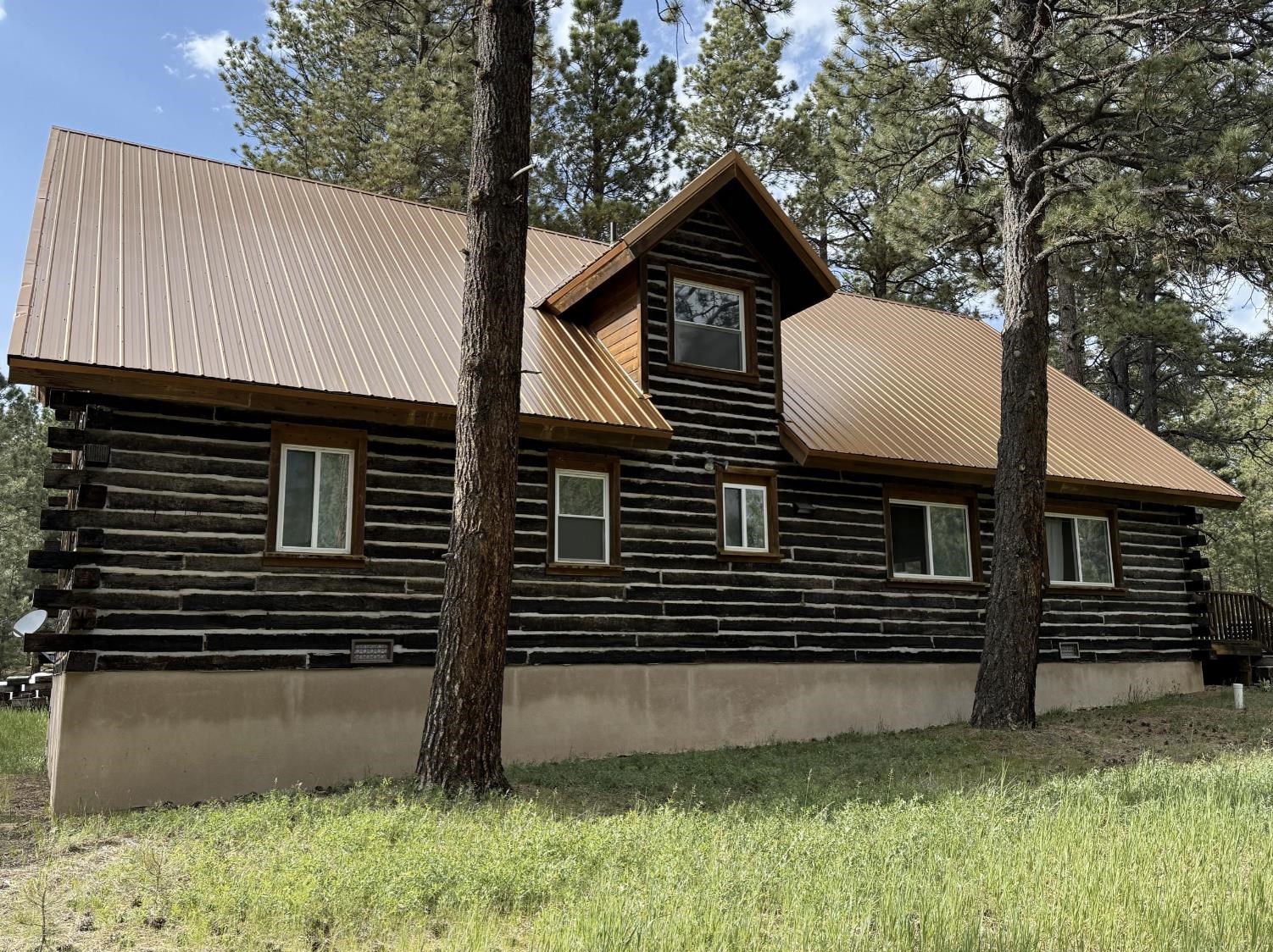 Secluded Forest Mountain Retreat! Well-maintained 3 bed 3 bath railroad tie home on over 2 acres tucked away in a serene private forest. This almost 3000 sq ft home offers the perfect blend of rustic charm and modern comfort. Crafted with timeless character, the home features rich hardwood floors throughout, large Vigas, and soaring vaulted ceilings. The spacious layout includes 3 bedrooms and 3 full bathrooms. A large bonus loft provides versatile space for a home office, studio, gameroom or guest area. At the heart of the home, a generously sized kitchen island anchors the open-concept kitchen, perfect for cooking, gathering, and entertaining. Step outside to enjoy the peaceful surroundings from your covered patio and expansive deck. Enjoy the convenience of high-speed internet to stream, work and play. Beautifully designed for comfort, this unique home offers a rare opportunity to live outside of the resort area while still enjoying resort amenities. INCLUDES a Angel Fire Resort membership lot which means amenity package is included so you and your immediate family will enjoy ski passes, country club access, golfing in the Summer and more.(rules and regs apply to membership). A mere 10 minute drive to Angel Fire ski area, the PGA rated golf course, hiking/biking trails, tennis/pickleball court, Monte Verde Lake and country club.