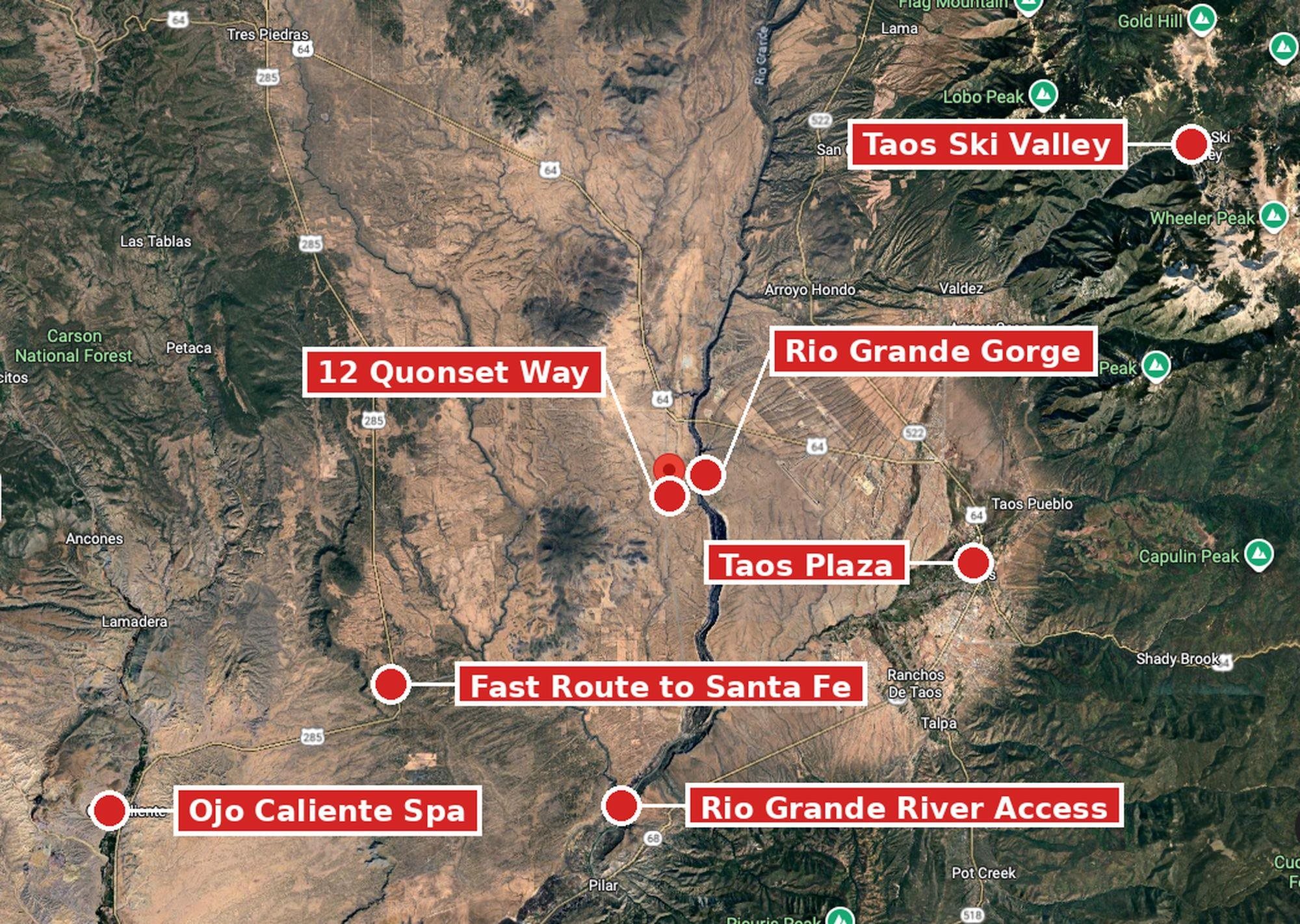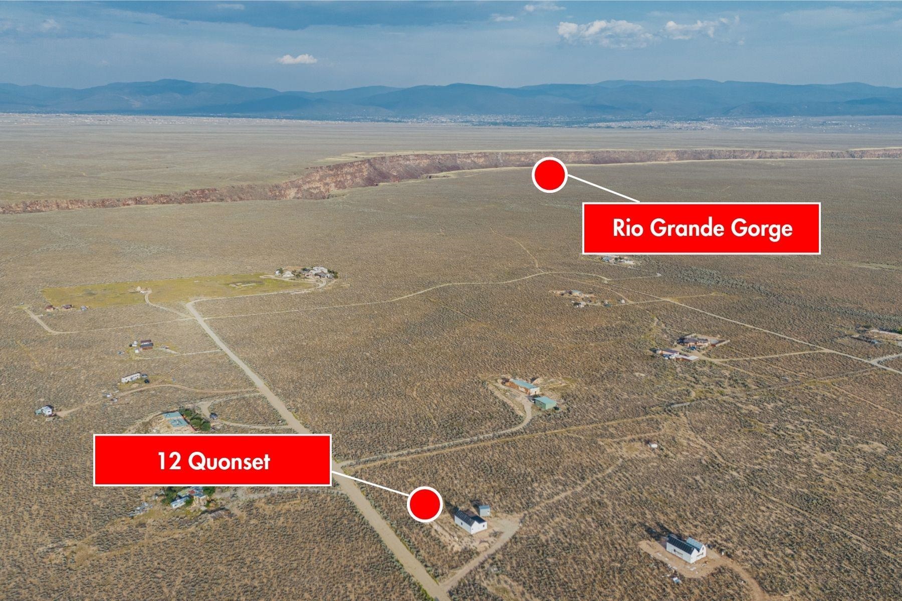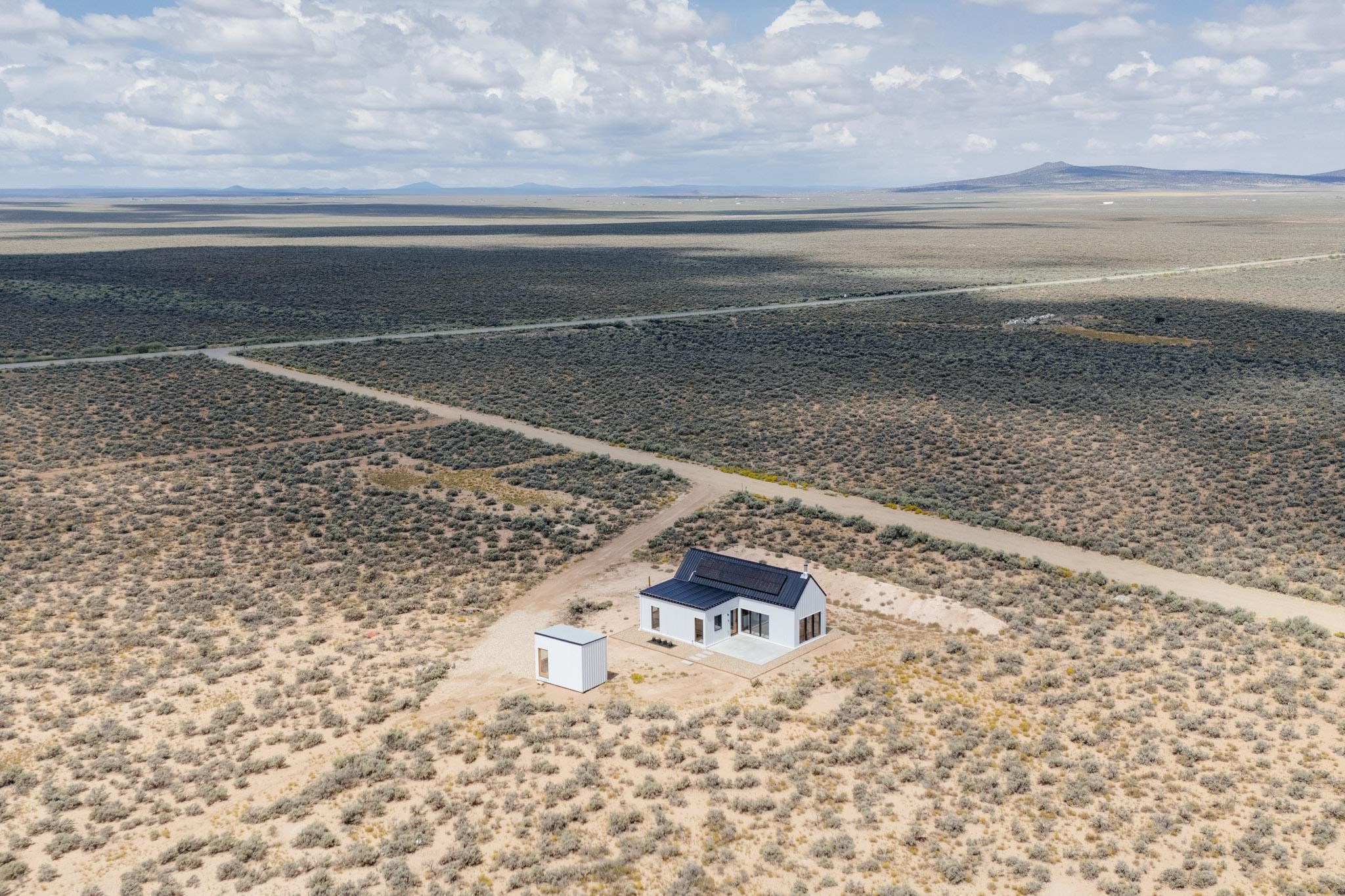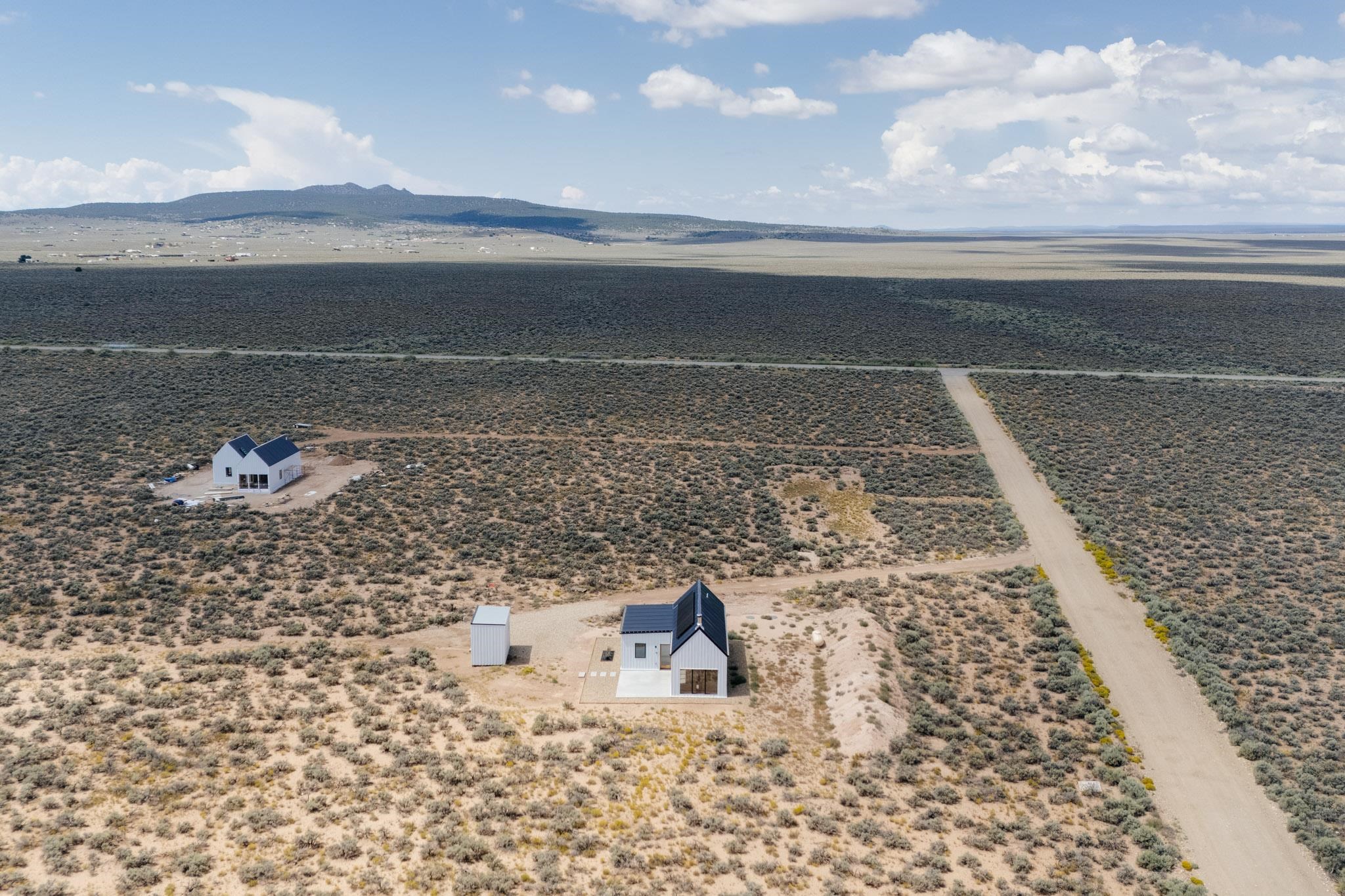 NEW CONSTRUCTION site-built house, the least expensive one in Taos County! 2-bed, 1-bath ~800 square foot single-family home just past the Gorge Bridge in a peaceful, quiet, friendly and easy-to-get-to neighborhood. Open kitchen, dining and living area with vaulted tongue-and-groove ceiling, large island for quick bites or to casually gather with friends and family, dining area for more formal meals, living room with beautiful wood-burning stove. Endless views of the Sangre de Cristos to the east and south, and a relaxing 20-minute walk to the West Rim Trail and National Monument for post-meal strolls, meditation or an intense run or bike, all with the splendor of the Gorge right beside you. The house is close to everything in the Taos area! 4 minutes to the Gorge Bridge. 15 down to the river and Taos Junction bridge, a fraction of the time it takes from the town of Taos, to relax or paddle all year long, or to swim on hot summer days. Under 20 to Cid’s and a smidge more to Taos Plaza. 35 to the Ski Valley. 25 to Ojo Caliente Spa. The exact same distance to Santa Fe as from town, down the “back way” on 285 instead of through Taos Canyon. House is 100% off-grid. Easy and sustainable living with brand-new systems in place. Windows flanking the east and south walls maximize solar gain, keeping heating costs low even during the coldest winters. Rinnai propane heater for cold winter nights. On-demand heater for lightning-fast hot water. 2.4kW solar system with battery storage for overnight usage and to provide multiple days of electricity those few times of year when the Taos area is socked in. TaosNet high-speed wireless Internet relay station is practically next door, providing reliable internet to the neighborhood and beyond. Water catchment with gutters that direct monsoonal rains and winter snow into a 2500-gallon cistern, ample water storage to get you through dry spells; new UV and sediment filters purify the water as it comes inside. Every square inch of the house is brand-new: metal roof and siding that should last 40-50 years. High quality double-paned windows, insulated slab flooring, deep 2x6 walls with R-21 insulation, and R-49 in the roof to keep it warmer in the winter and cooler in summer. Brand-new solar system, kitchen appliances, propane heater, hot water heater and septic. Brand-new wood stove should keep your propane costs low in winter. Laundry hook ups for full-size stackable washer and dryer. Storage attic with ladder to stash your seldom-used things. Large, insulated, light-filled all-season shed, built on-site for construction, included with the house. Use it for overflow storage, as an office or craft room, or wherever your bliss takes you. 3 total acres of sagebrush, all yours, awaiting your green thumb to add shade trees or other exterior landscaping. Local Taos builder with decades of experience building and living in off-grid homes, including his own primary residence and other properties in the immediate West Rim area and throughout Taos County. It may be the least expensive new construction in the area, but it was built with the same quality materials and expert tradespeople as homes many times the price. Come over and take a look! Find yourself at home!