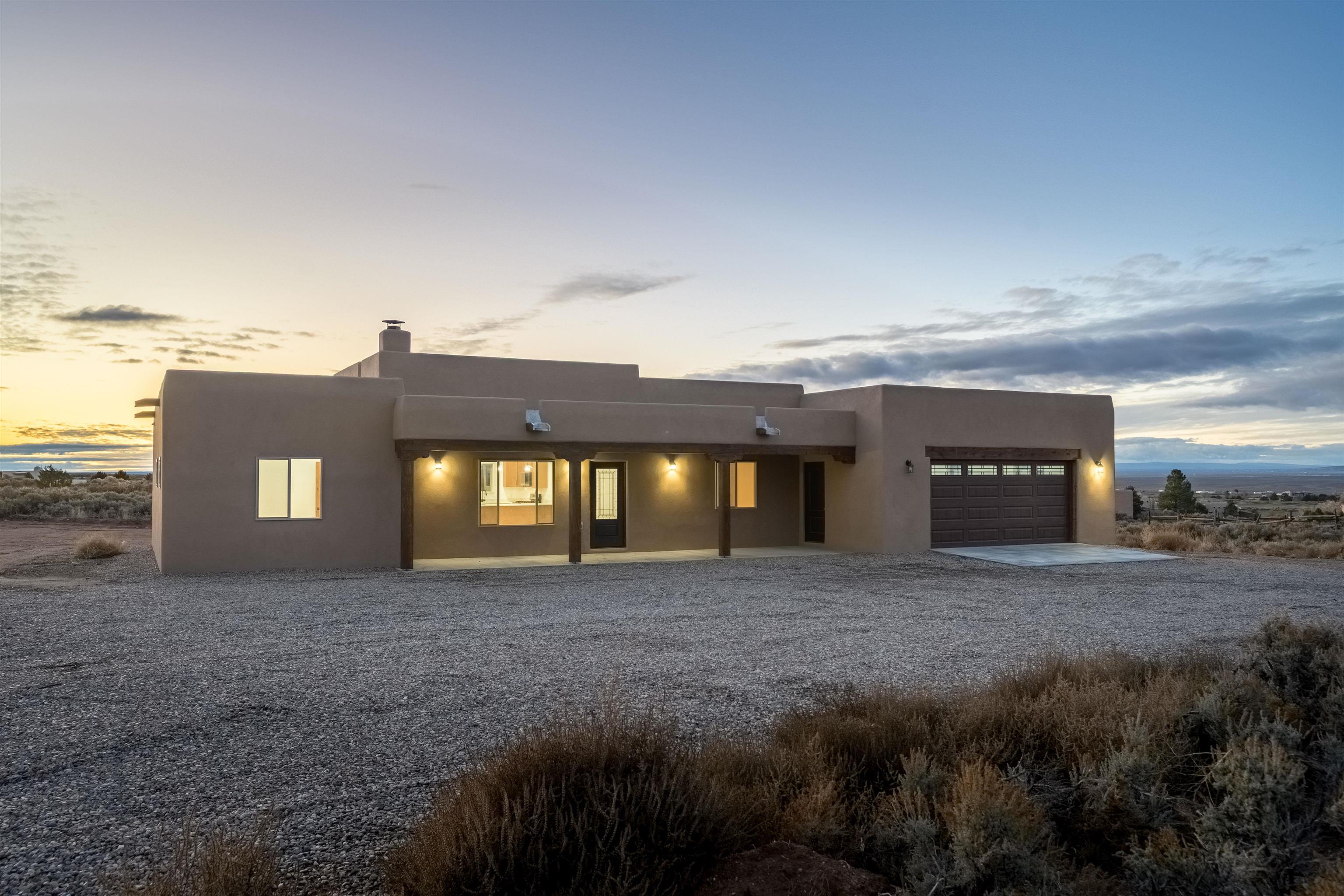 Stunning New Construction Home with Breathtaking Views! Welcome to your dream home, perfectly situated to offer amazing views and an enviable lifestyle. This exceptional new construction home is just moments away from the Taos Country Club, hiking trails, and a host of outdoor activities, as well as convenient shopping and dining options. The open-concept floorplan is designed for both family time and entertaining friends, creating a warm and inviting atmosphere. The cozy wood-burning fireplace adds charm and ambience, making chilly winter nights feel extra special. This home features three spacious bedrooms and two well-appointed baths, equipped with top-of-the-line appliances throughout. An attached heated two-car garage adds further convenience and value to this remarkable property. Set on 1.24 acres, there’s plenty of space to enhance the property with additional fencing, gardening, and landscaping, allowing you to truly make it your own. Don’t miss the opportunity to own this beautiful home, where breathtaking views and a vibrant lifestyle await!
