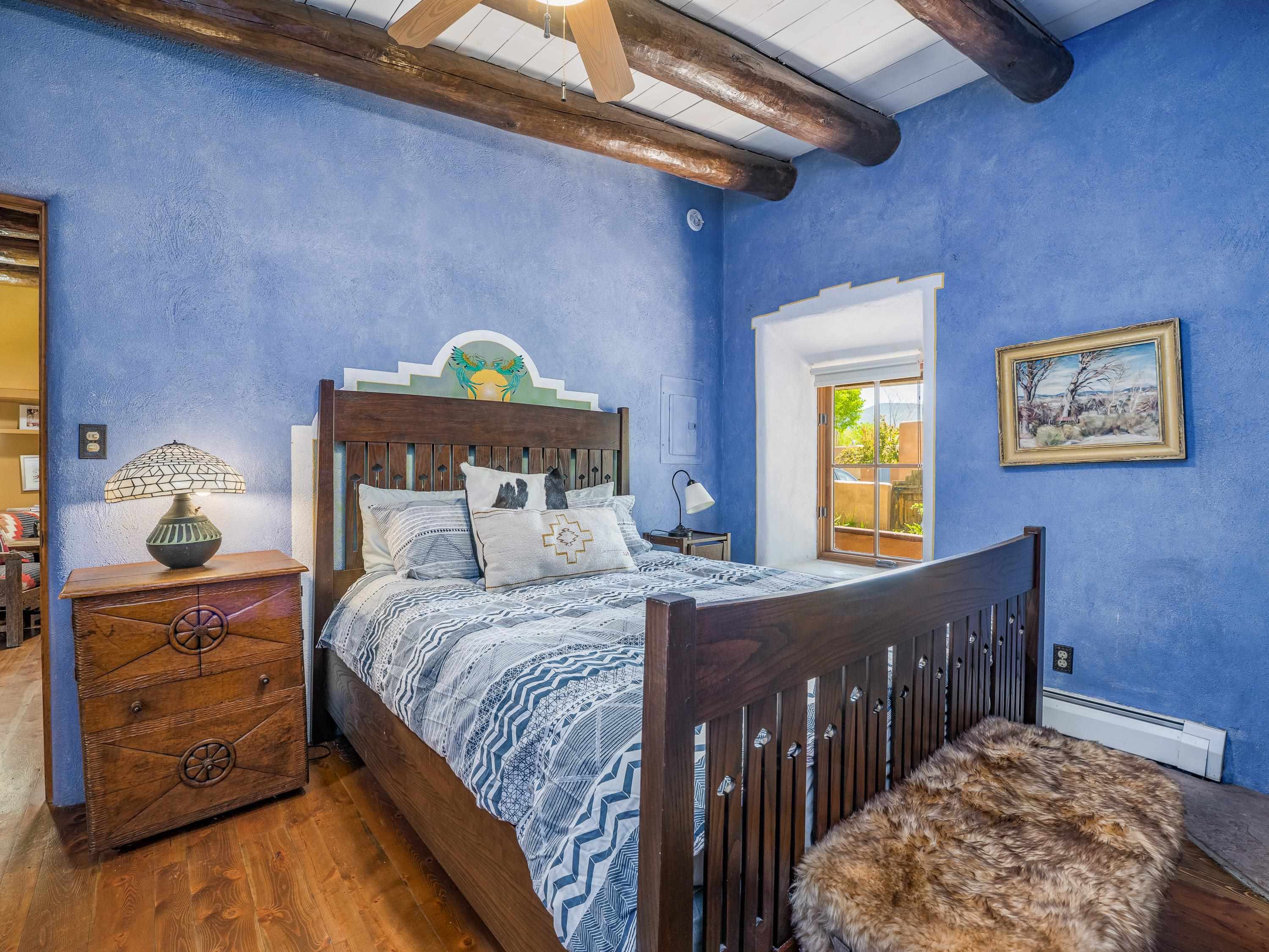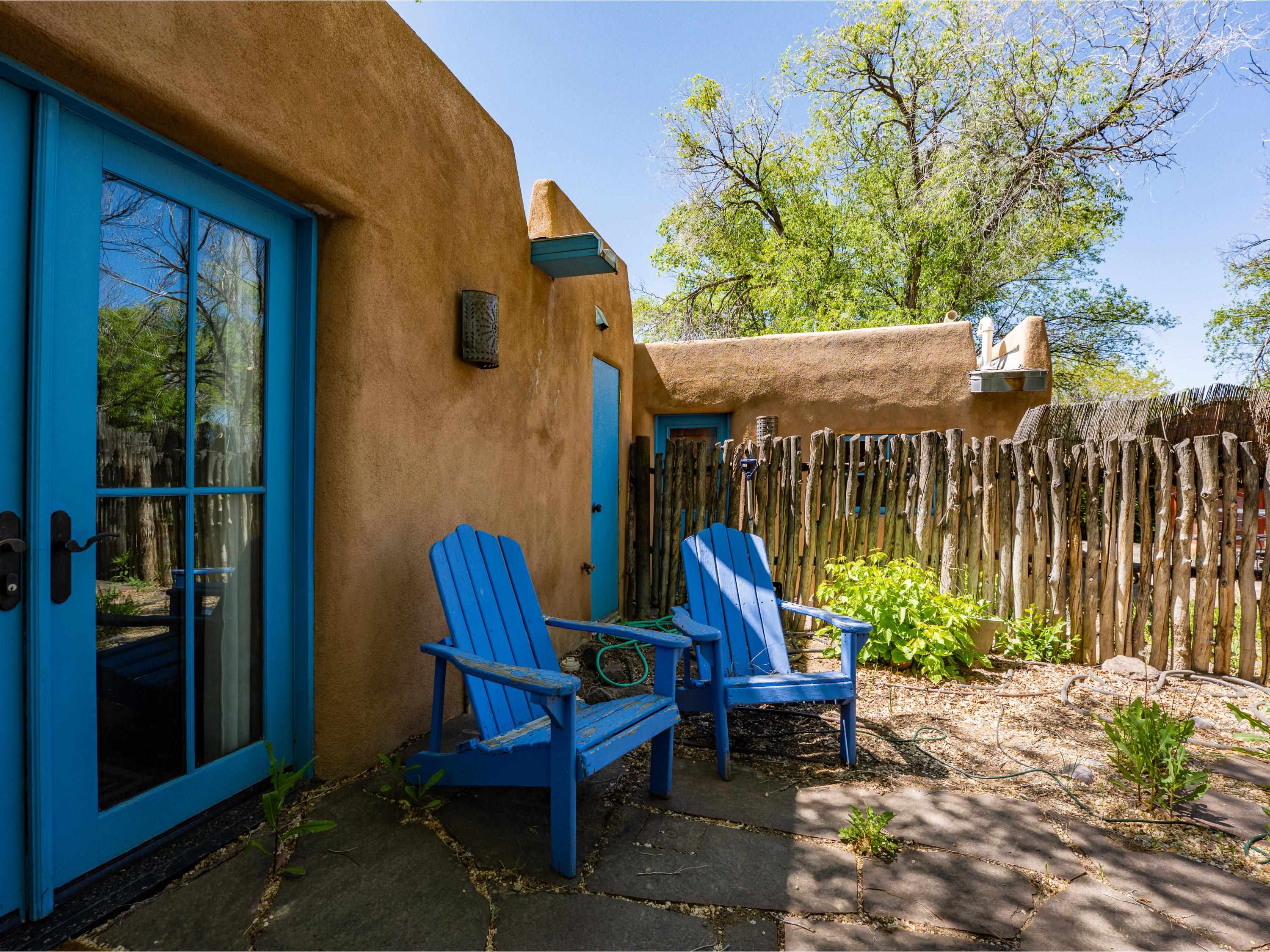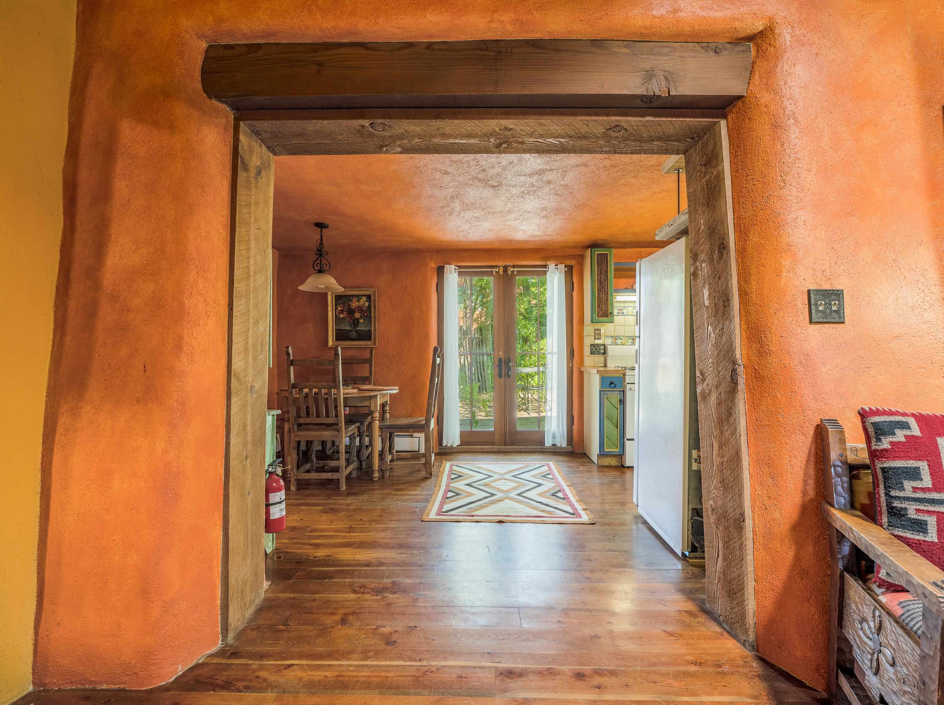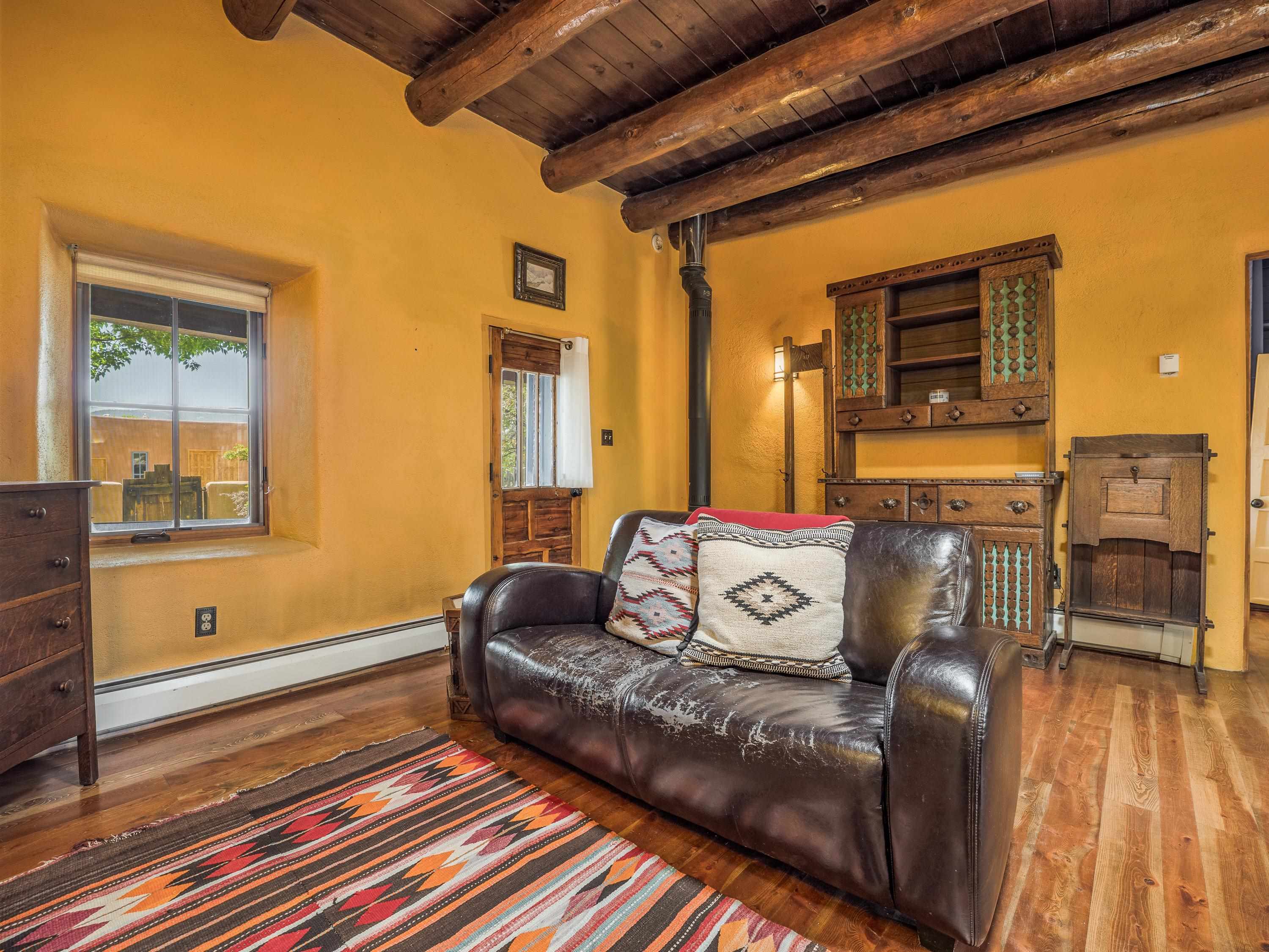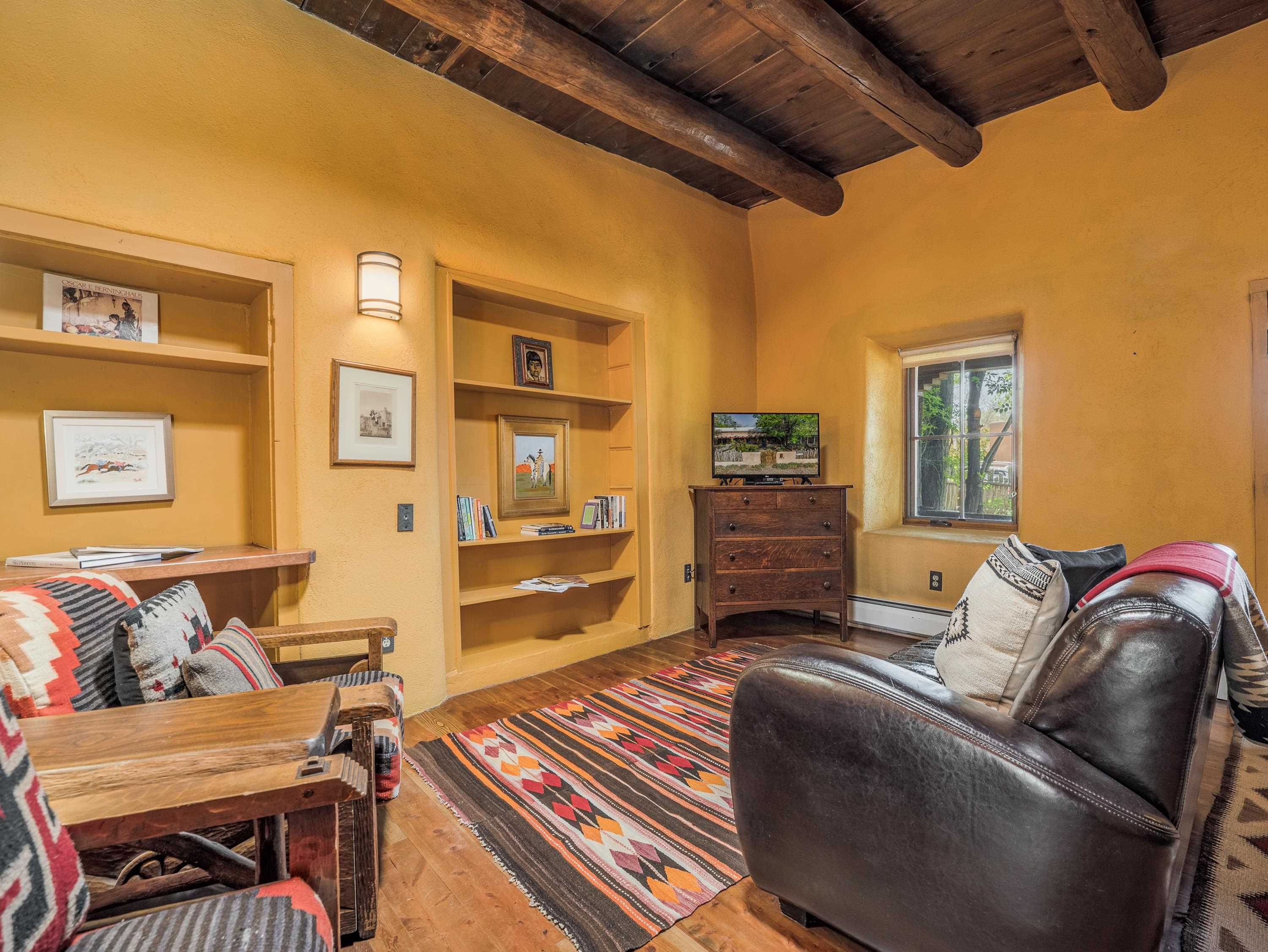 Nestled in one of Taos’ most sought-after historic neighborhoods, just a short stroll to the Plaza’s restaurants, shops, and galleries, this 1-bedroom, 1-bath abode offers timeless charm and character. Built in approx. 1796 and recognized on the State and National Historic Registry, it features adobe walls, hand-carved vigas, hardwood floors, and beautiful Southwest finishes throughout. Enjoy generous outdoor living with a front courtyard and a private backyard with hot tub. Interior comforts include a wood-burning stove, kiva fireplace, and hot water baseboard heat with a new boiler. Two dedicated parking spaces sit just outside the courtyard—an exceptional blend of history, comfort, and location.