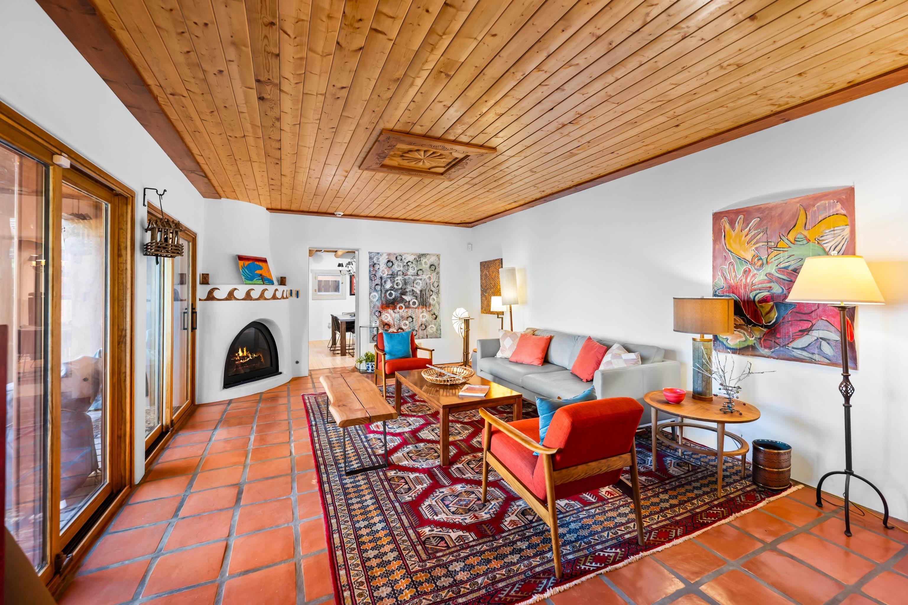 Picturesque In-Town Retreat, 3 Bedrooms | 3 Baths, 2,206 Sq Ft, 1-Car Garage, Walk to Taos Plaza Tucked behind a private walled garden just steps from historic La Loma Plaza, this distinctive pueblo-style home captures the soul of Taos—where old-world charm meets modern comfort. Nestled on a corner lot shaded by mature trees, this in-town sanctuary offers both serenity and convenience, only a short stroll from Taos Plaza, Bent Street’s galleries, local shops, and some of the area’s best dining. From the moment you enter, you’ll feel the warmth and personality that define this special property. The spacious living room, anchored by a classic kiva fireplace, invites cozy evenings and lively gatherings. French doors open to a covered portal and expansive flagstone patio, creating a seamless flow between indoor and outdoor living—perfect for morning coffee, al fresco dinners, or stargazing under the clear Taos sky. The kitchen is playful yet refined, with handcrafted details and cheerful color accents that make it a joyful space to cook and entertain. An intimate dining room just off the kitchen sets the stage for everything from casual family meals to elegant dinners with friends. Downstairs, a guest suite with French doors opens to a private patio enveloped by greenery—an ideal spot for quiet reflection or reading in the shade. Upstairs, the primary suite is a true retreat, complete with a sitting area and a cozy office nook—perfect for writing, dreaming, or simply watching the light change over the mountains. A third spacious bedroom offers room for guests, children, or creative pursuits. The rooms of this home are filled with natural light that highlights the warmth and texture of classic Taos architecture. Windows offer glimpses of private courtyards, adobe walls, and intimate garden spaces, creating a quiet connection to the outdoors. Mature trees cast soft, dappled shade across the property, enhancing the sense of privacy and calm. Though just steps from the energy of town, the home feels like a world apart—a peaceful refuge in the heart of Taos. Enjoy the convenience of an attached garage for your car and skis, and when adventure calls, you’re just 19 miles from world-class Taos Ski Valley and only minutes from hiking trails and outdoor exploration. Whether you’re looking for a sophisticated full-time residence, a luxe weekend getaway, or an investment in one of Taos’s most desirable neighborhoods, this home delivers a lifestyle that’s both inspiring and effortless. Experience the magic of in-town Taos living—private, peaceful, and perfectly placed.