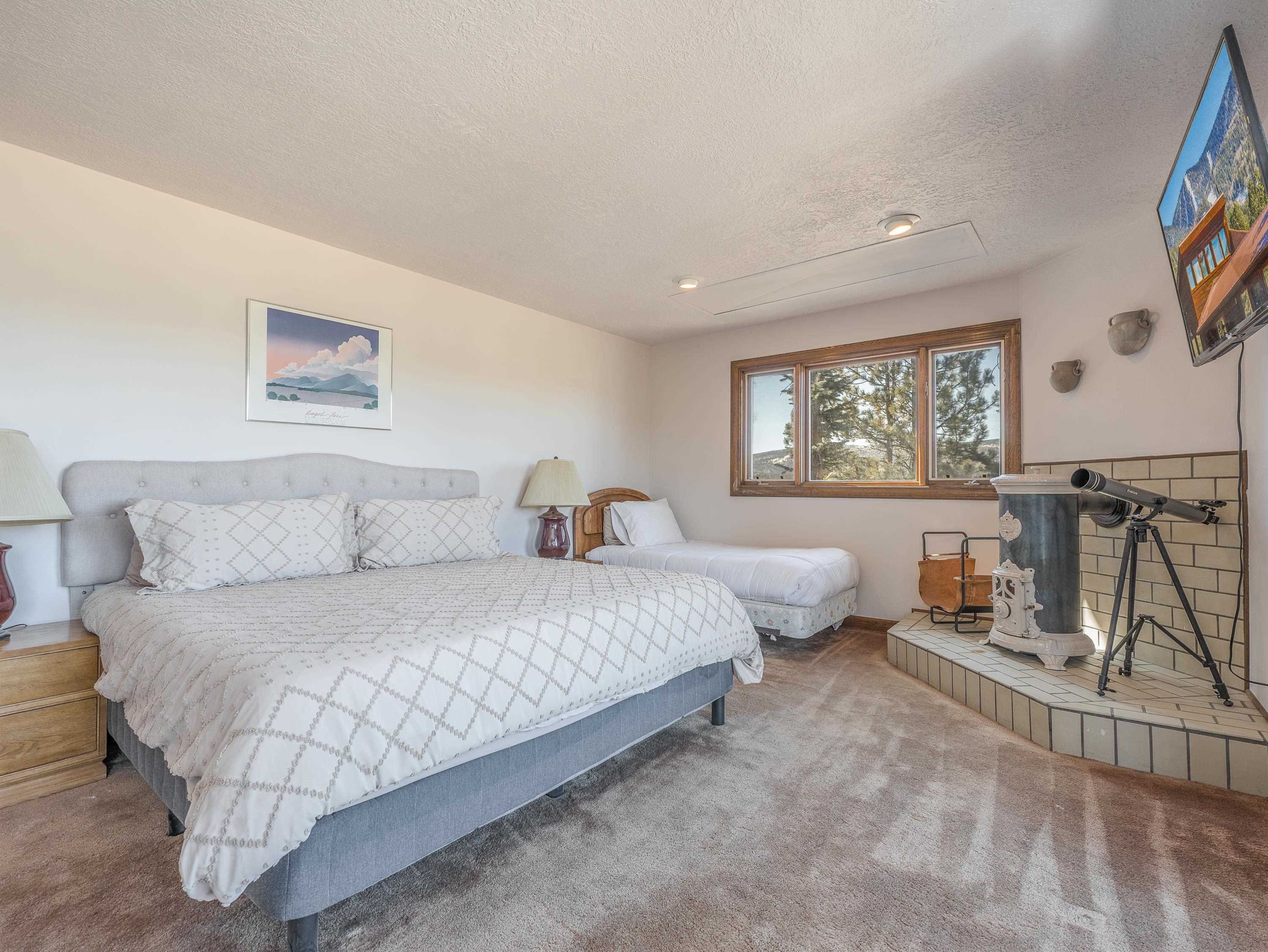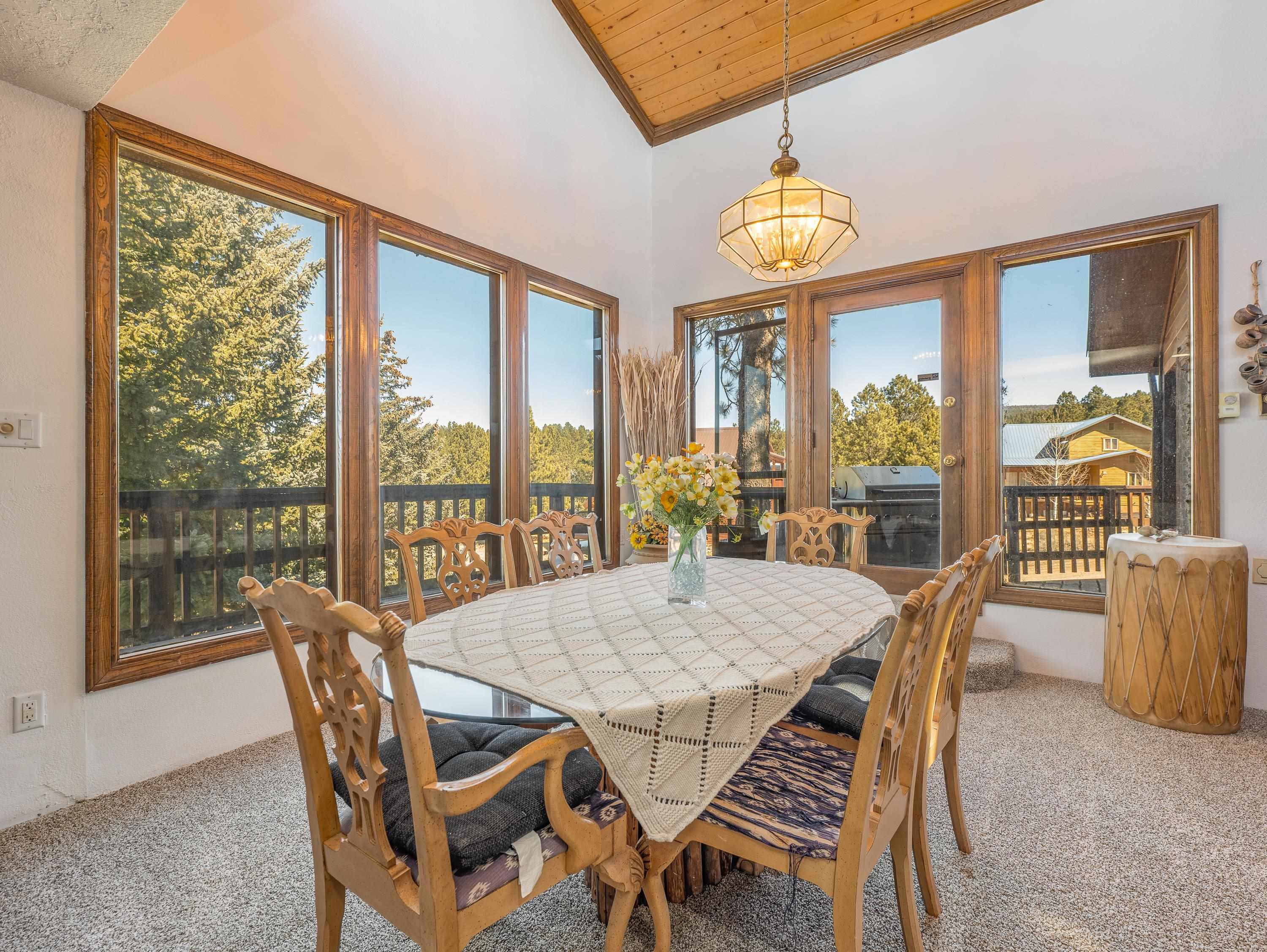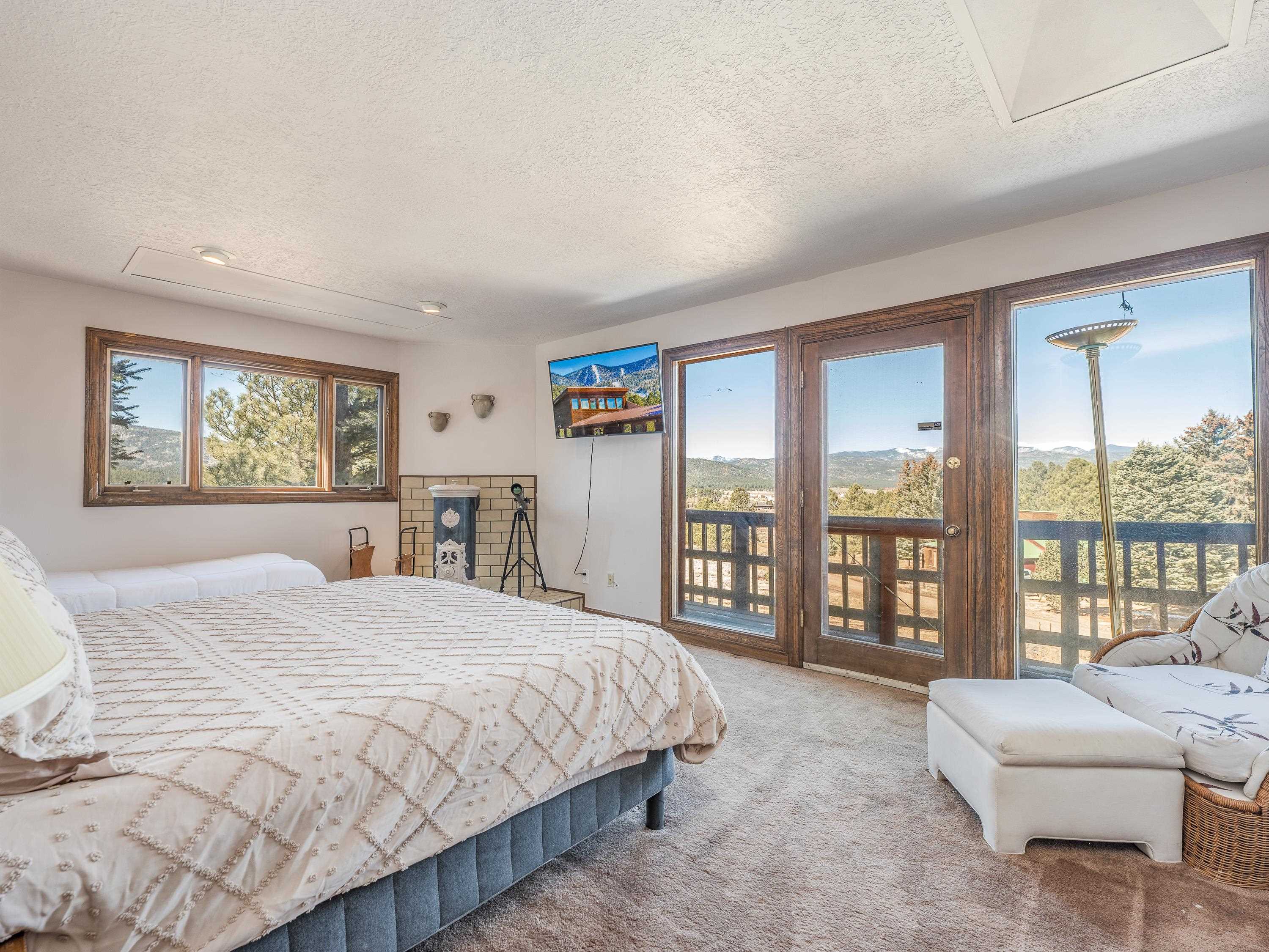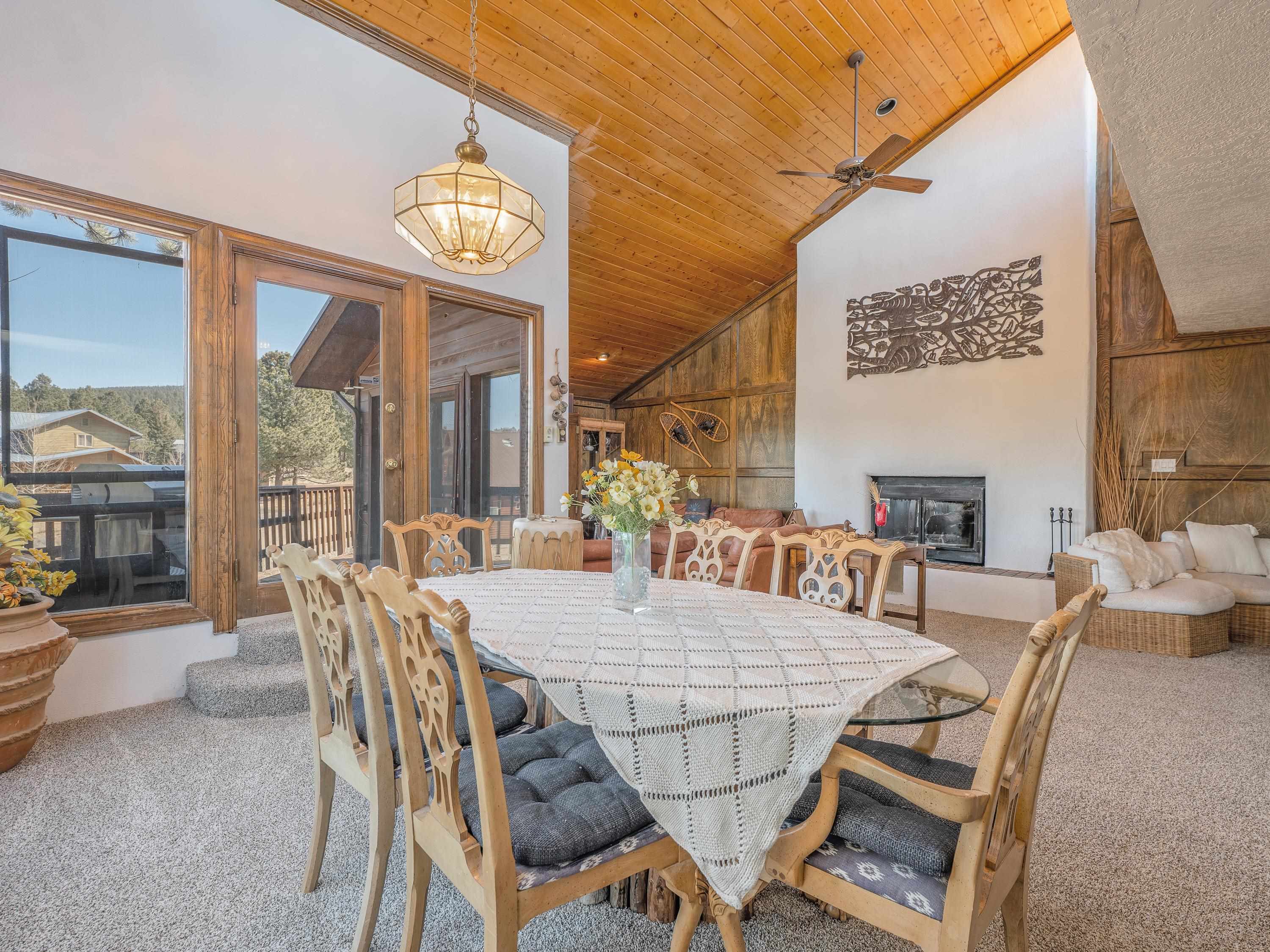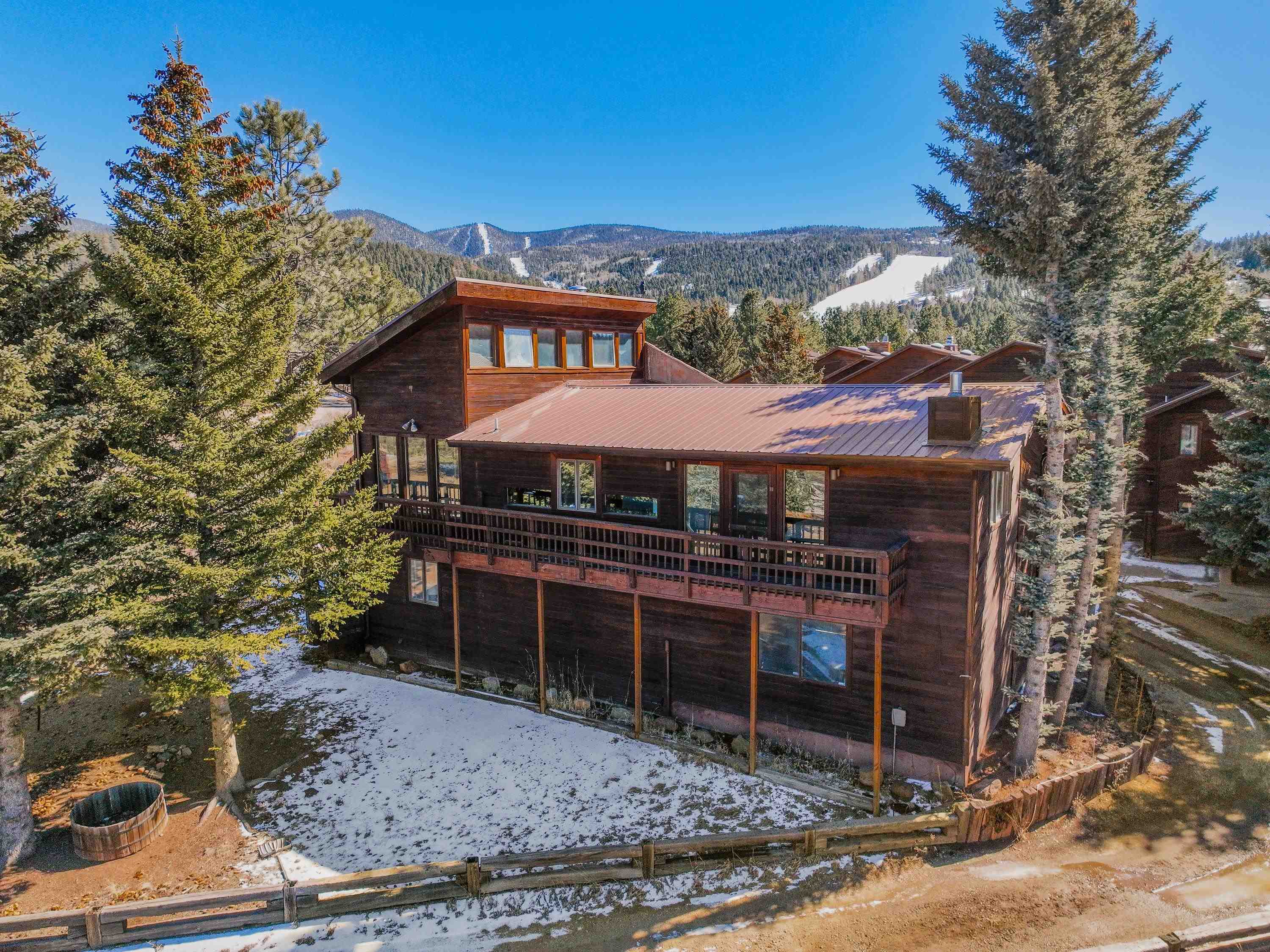 Embrace the ultimate mountain lifestyle in this exceptional home, ideally located for recreation and relaxation in the heart of Angel Fire. Just off North Angel Fire Road and minutes from the family-friendly slopes of Angel Fire Resort, this property offers easy access to year-round adventure. Inside, a spacious and thoughtfully designed two-level layout provides comfort and privacy for family and guests. The open kitchen flows seamlessly into the inviting living area, where large windows and access to a sunny deck showcase picturesque views of the ski area and surrounding mountains. The generously sized primary suite features an ensuite bath with a soaking tub, walk-in shower, and separate water closet with bidet. Downstairs, three guest bedrooms and two additional full bathrooms offer excellent flexibility for sleeping arrangements. An attached two-car garage provides protected parking plus room for storing gear after a day on the slopes or trails. Whether you’re seeking a winter escape, a summer retreat, or a versatile investment property, this well-appointed property offers the best of mountain living in every season.