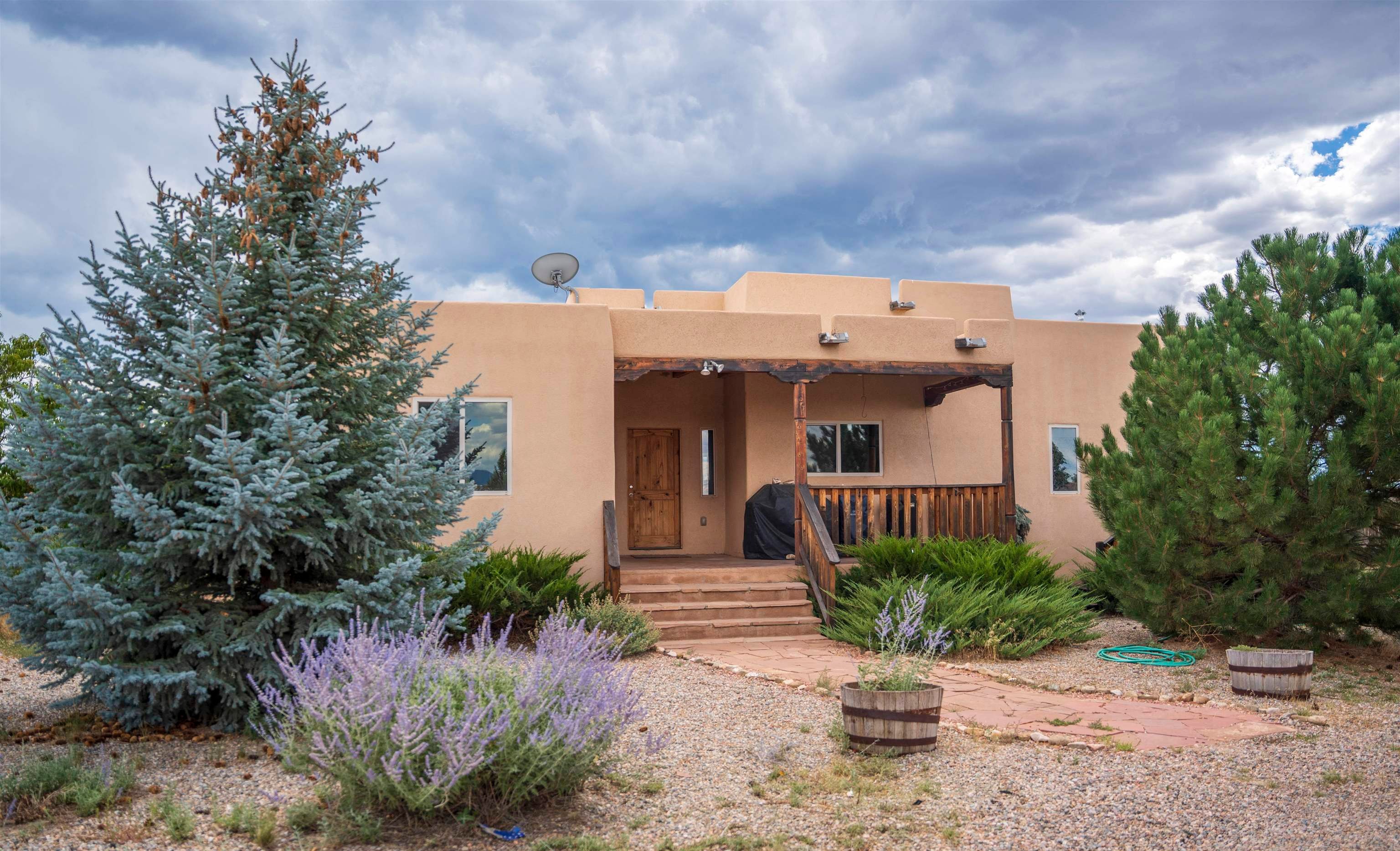 Whether you’re looking for a peaceful family haven, a work-from-home escape, or a Southwest-inspired retreat, this property delivers space, privacy, and timeless style just minutes from the heart of Taos. Pueblo Style home tucked away in a cul-de-sac just 15 minutes south of Taos Plaza. A circular drive and landscaping, this fully fenced property is thoughtfully designed with a separate dog run, raised garden beds, vibrant perennials, and fruit trees—cherry, apricot, plum, pear, and peach—perfect for green thumbs and nature lovers alike. Mature lilacs line the back portal, offering beauty and privacy year-round. Built in 2007, this 1,650 square foot 3 bedroom, 2 full bath home highlights the artistry of the Southwest: soaring 12' viga ceilings with tongue-and-groove finishes, Saltillo tile floors, hand-troweled diamond plaster walls, and carved spiral columns with corbels and rich wooden beams that exude warmth and character. The bright, open-concept great room is made for gathering, with a porcelain wood stove adding cozy ambiance. The spacious cook’s kitchen features abundant storage, a generous prep island with bar seating, stainless steel appliances. Step outside into the expansive covered portal, where you will discover a private oasis surrounded by breathtaking mountain vistas. Enjoy the tranquility of the landscape and views as you sip your morning coffee. The primary bedroom retreat is a true haven, offering a peaceful sanctuary to unwind and recharge. The ensuite bathroom provides both functionality and style. Two additional bedrooms provide ample space for family members, guests, or can be transformed into a home office or hobby room to suit your needs. The second bathroom, tastefully designed, offers convenience and comfort for all occupants. The allure of this property extends beyond the interior. Additional Highlights: In-floor radiant heating passive solar design for efficient year-round comfort, new water heater (2024) and roof recoating (2023). Well share with water softener system. Utility room with washer and dryer. High-speed CenturyLink internet. Separate mechanical room. No restrictive covenants—offering flexibility for your creative vision. Call and schedule a showing today!