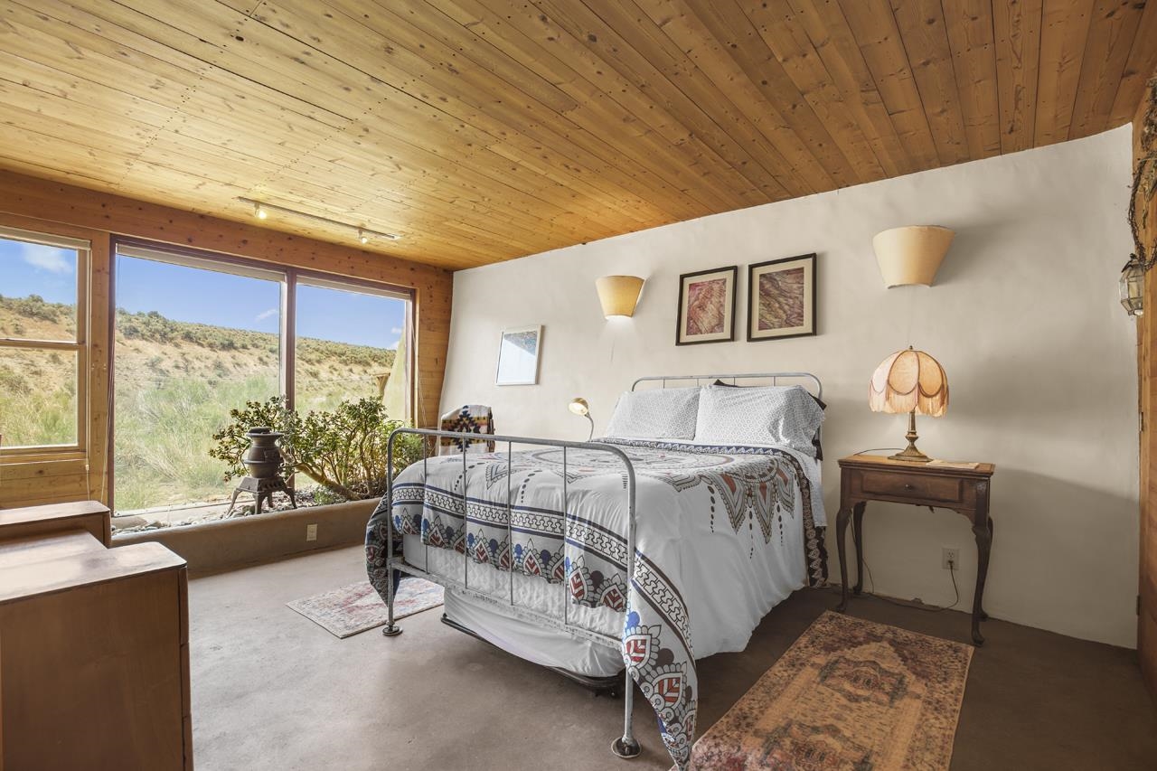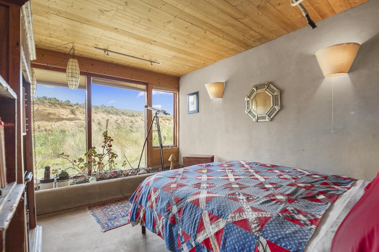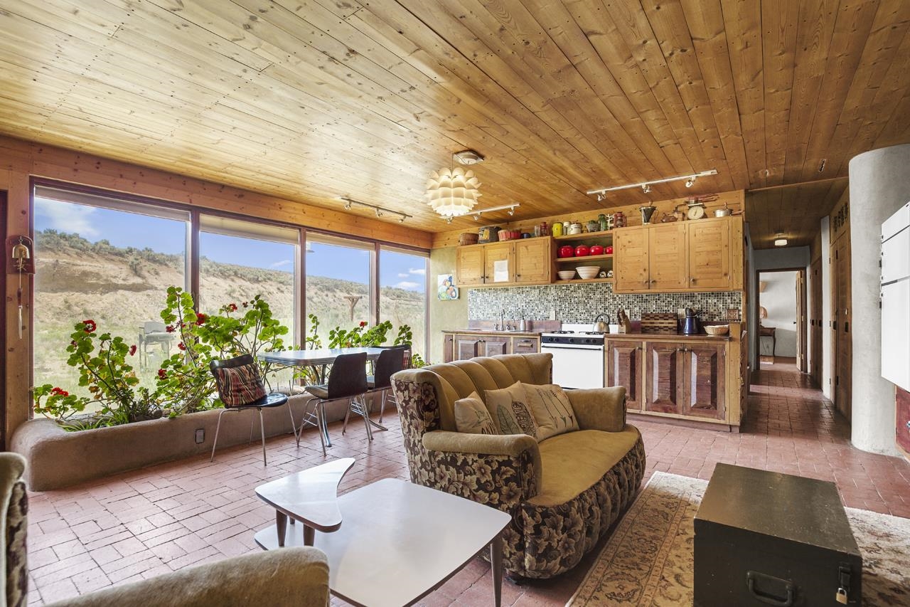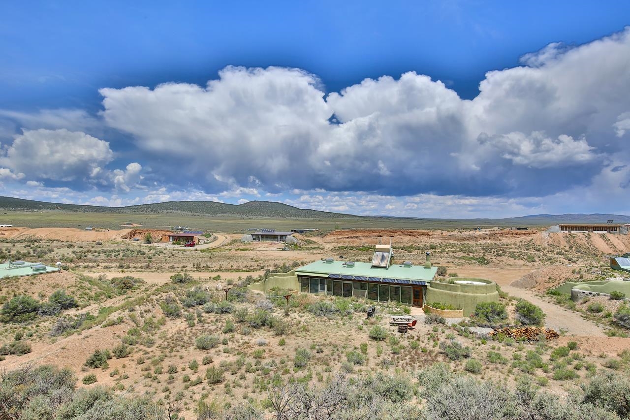 Be a part of the Greater World Community – Affordable Earthship Living! Live in the only mesa located Earthship subdivision in Taos County – the iconic Greater World Community, where sustainable living meets stunning high-desert landscapes. This charming 2-bedroom, 1-bath Earthship is ready for its next eco-conscious owner who will step inside to find a light-filled open floor plan with red brick floors, tongue-and-groove wood ceilings, and a cozy kiva fireplace that provides warmth and ambiance on a cold Winter evening. This sunny off-grid Earthship offers energy independence, eliminating those high utility bills while providing year-round comfort and solitude in the midst of high desert beauty where the Milky Way is sprayed across the night sky. Enjoy access to 340 acres of shared community land plus direct BLM access to the Rio Grande Gorge—ideal for hiking, biking, or simply soaking in the rugged natural beauty of Northwest New Mexico. Whether you're looking for a serene retreat, a full-time sustainable lifestyle, an income producing short term rental property, or an affordable entry into the Greater World Community, this is the opportunity you've been waiting for. NOTE: The Owner recently removed most furniture. All items in the property will stay or be removed at Buyer request. The skylights have all been replaced, and the gray water cell has been completely rebuilt. This Earthship is ready and waiting for its new owner.