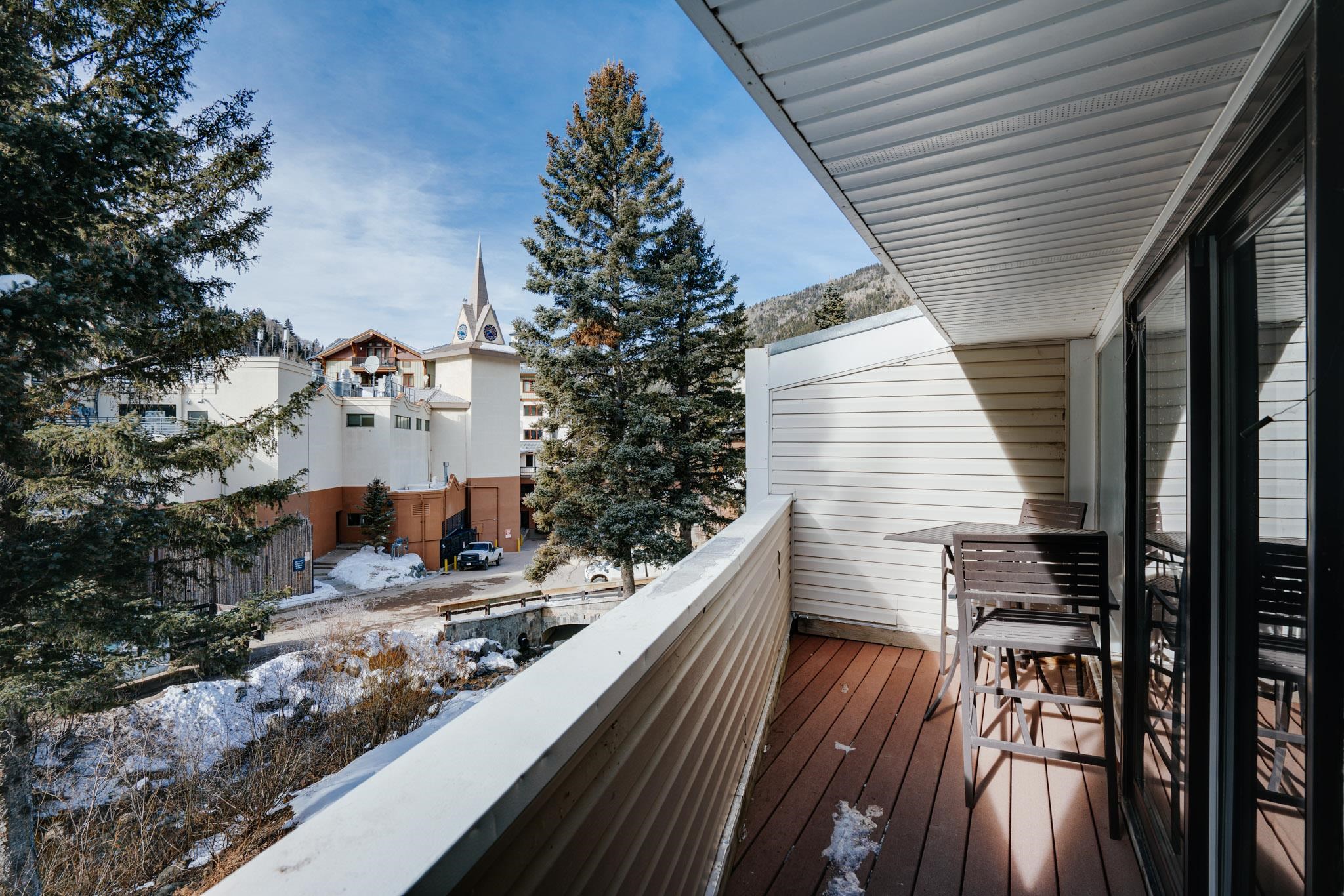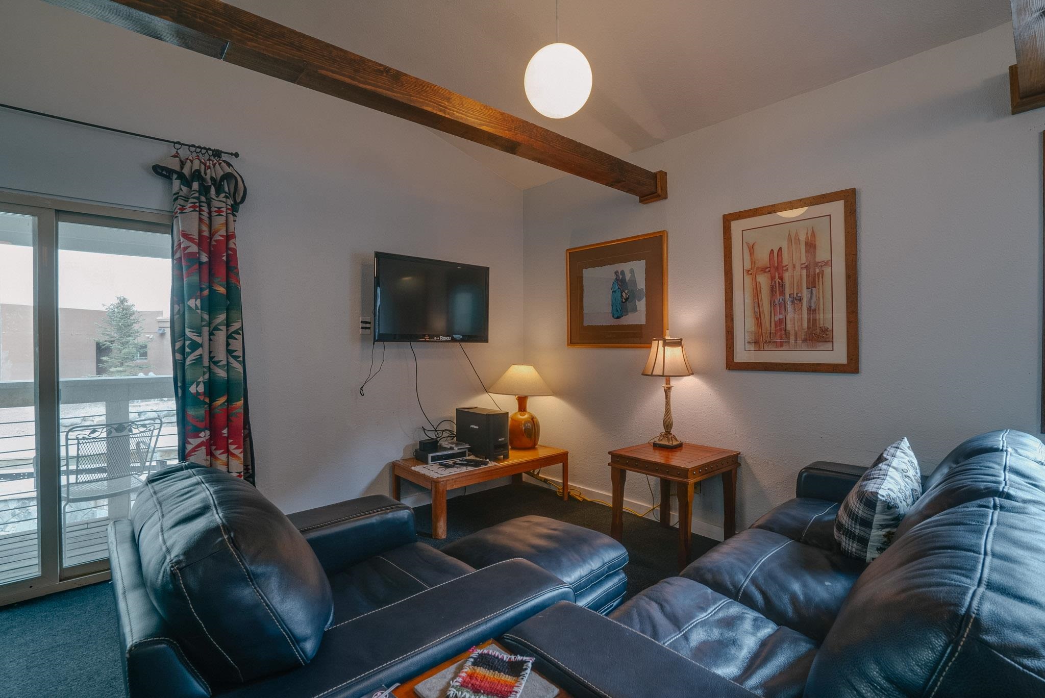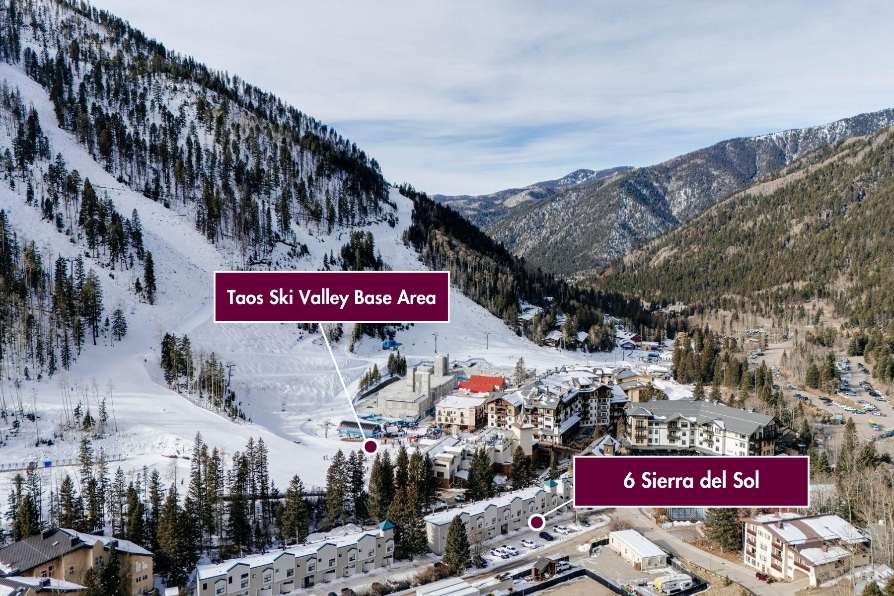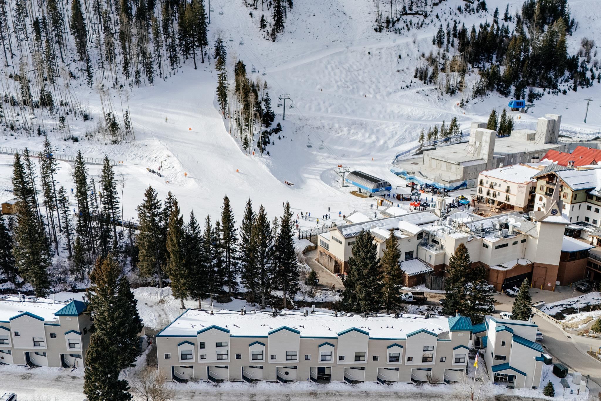 The perfect location and view of the iconic Taos Ski Valley slopes. The balcony over looks the the Lake Fork stream, which is an arm of the Rio Hondo river. Literally just a few minutes walk to Chair 1 and the Pioneers lift, shops, restaurants and the main Plaza. Fully furnished and move in ready. Be sure to click on and watch the "Virtual Tour" for a full appreciation of the location, beauty and amenities of this unique property. Previously rented on some years through Vacasa. The complex amenities include a recreation room with, ping pong, Foosball and games. HOA dues include almost everything including, water, sewer, internet, all exterior maintenance and insurance, management, snow removal and some firewood for the wood burning fireplace. There is a large sauna and hot tub room, free laundry for owners and their guests. .