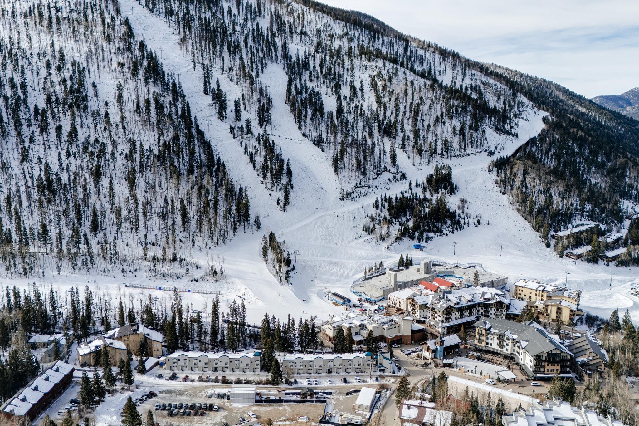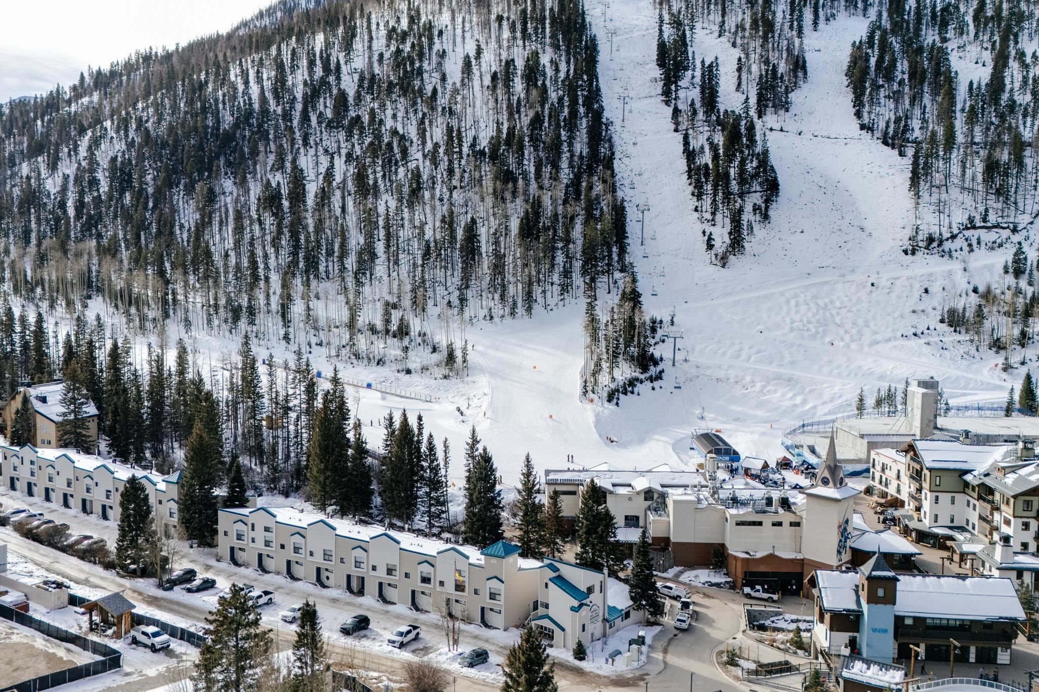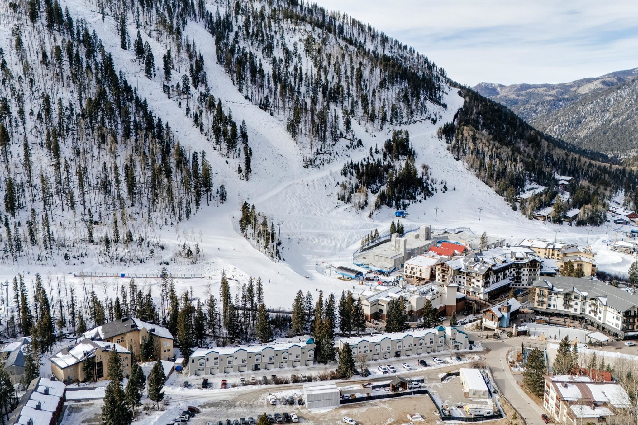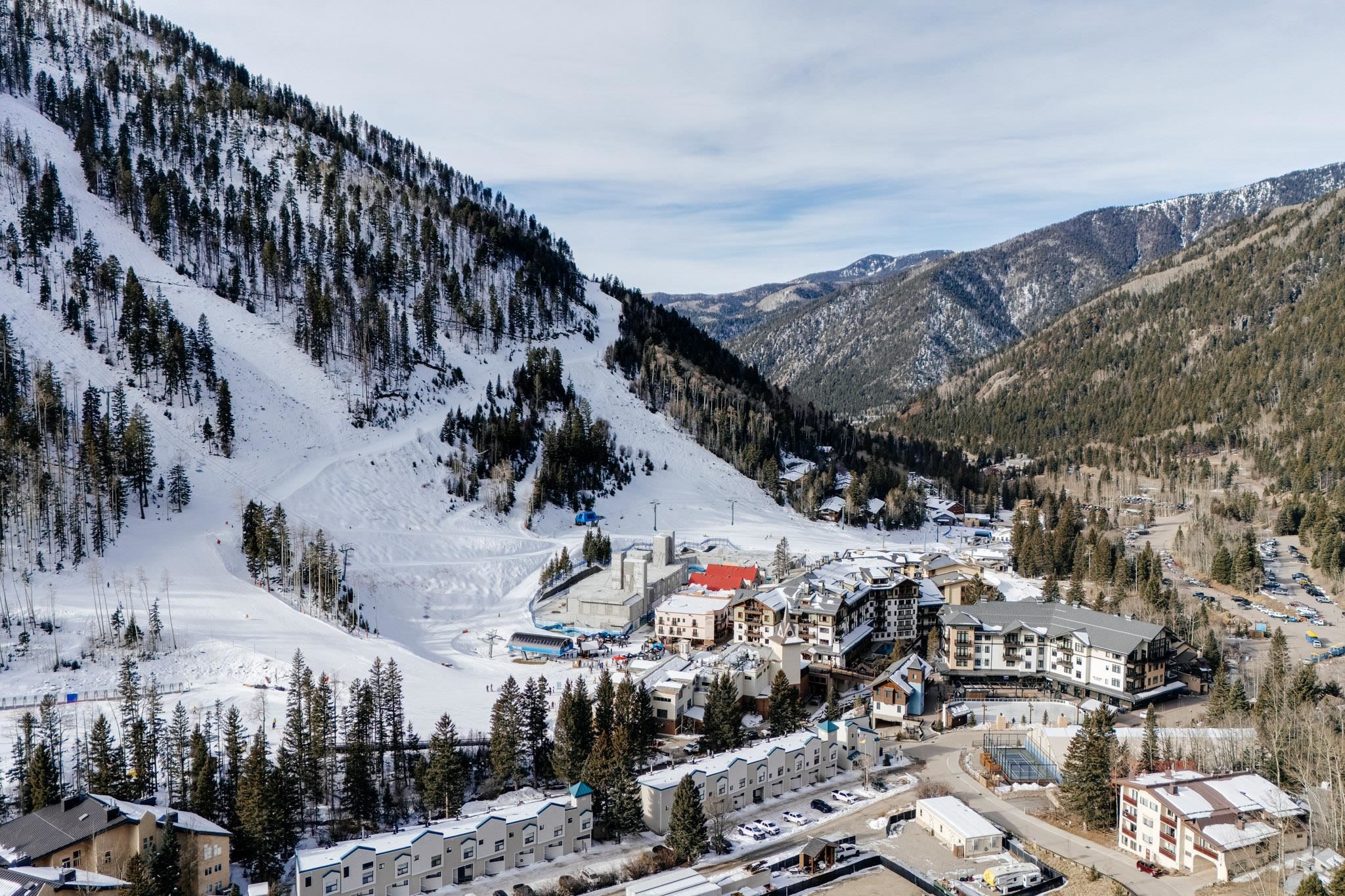 The perfect location and view of the iconic Taos Ski Valley slopes. The balcony over looks the the Lake Fork stream, which is an arm of the Rio Hondo river. Literally just a few minutes walk to Chair 1 and the Pioneers lift, shops, restaurants and the main Plaza. Fully furnished and move in ready. Be sure to click on and watch the "Virtual Tour" for a full appreciation of the location, beauty and amenities of this unique property. Previously rented on some years through Vacasa. The complex amenities include a recreation room with, ping pong, Foosball and games. HOA dues include almost everything including, water, sewer, internet, all exterior maintenance and insurance, management, snow removal and some firewood for the wood burning fireplace. There is a large sauna and hot tub room, free laundry for owners and their guests. .