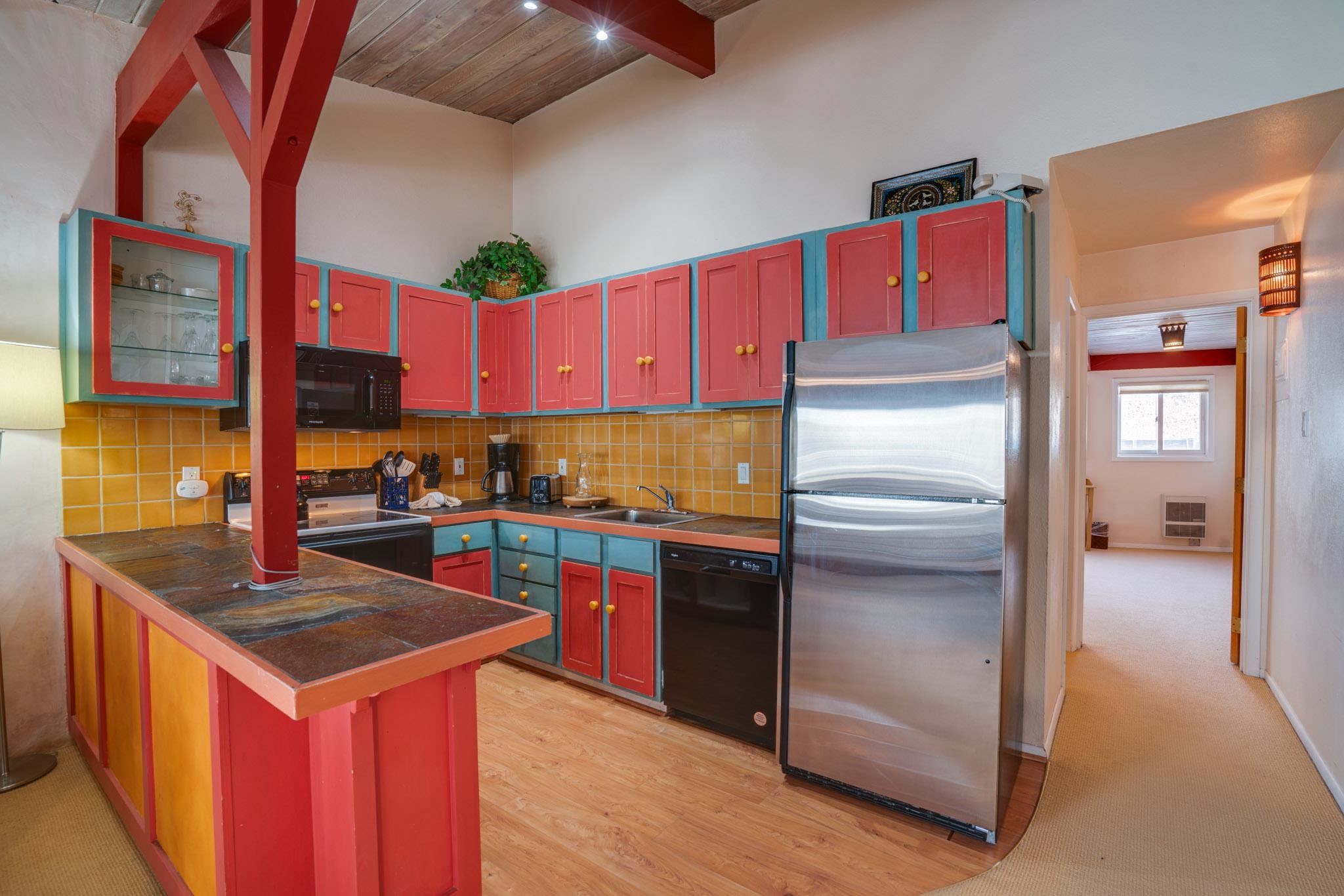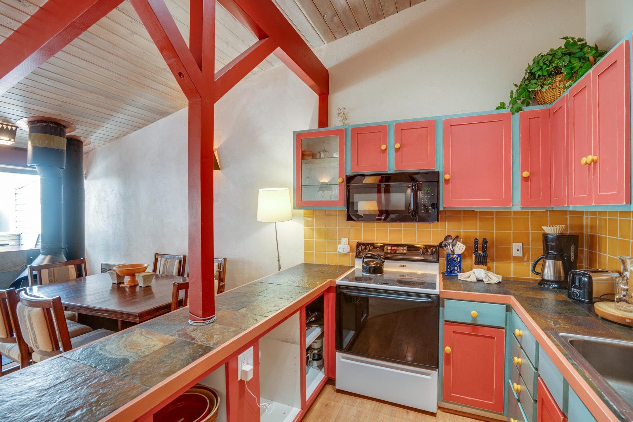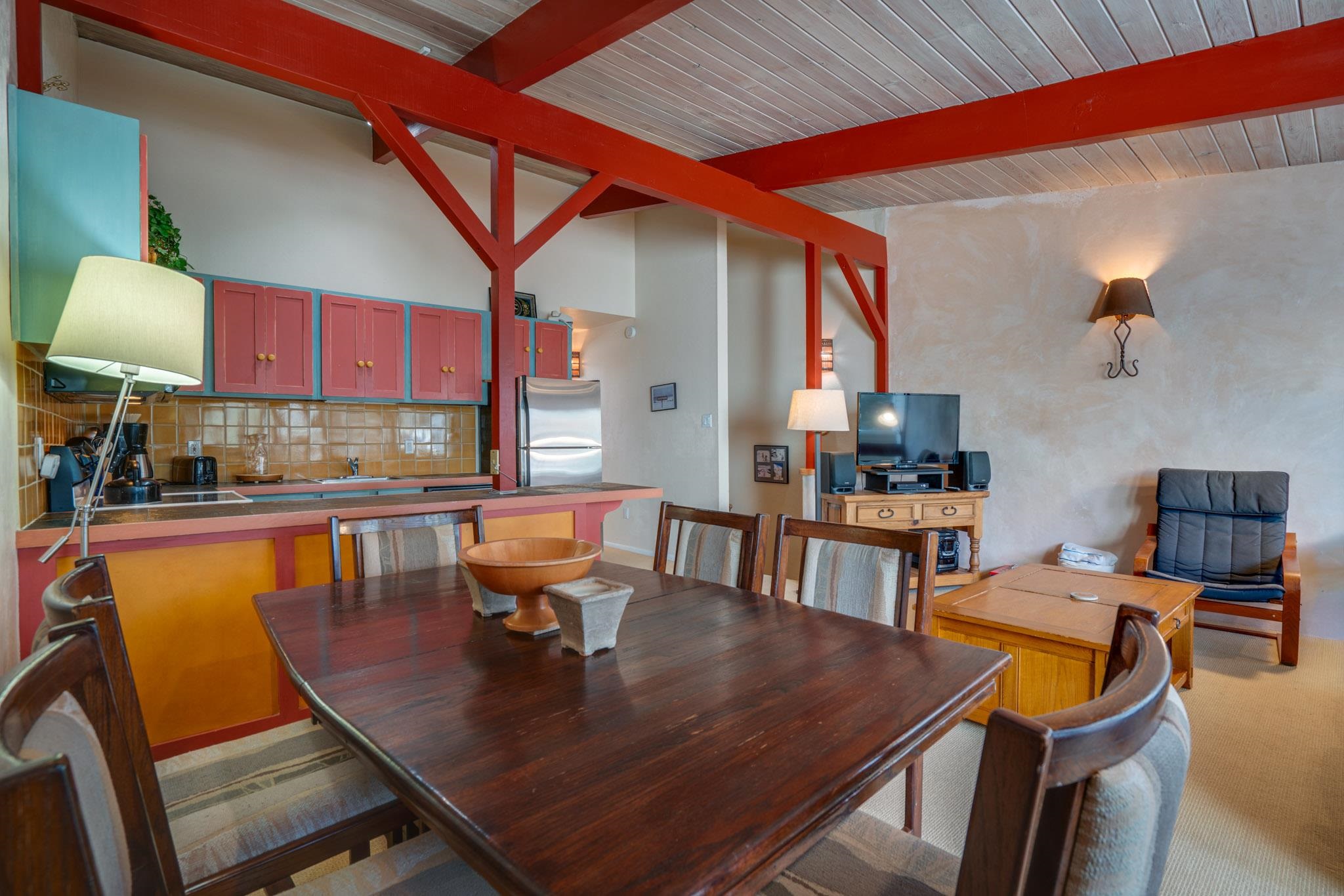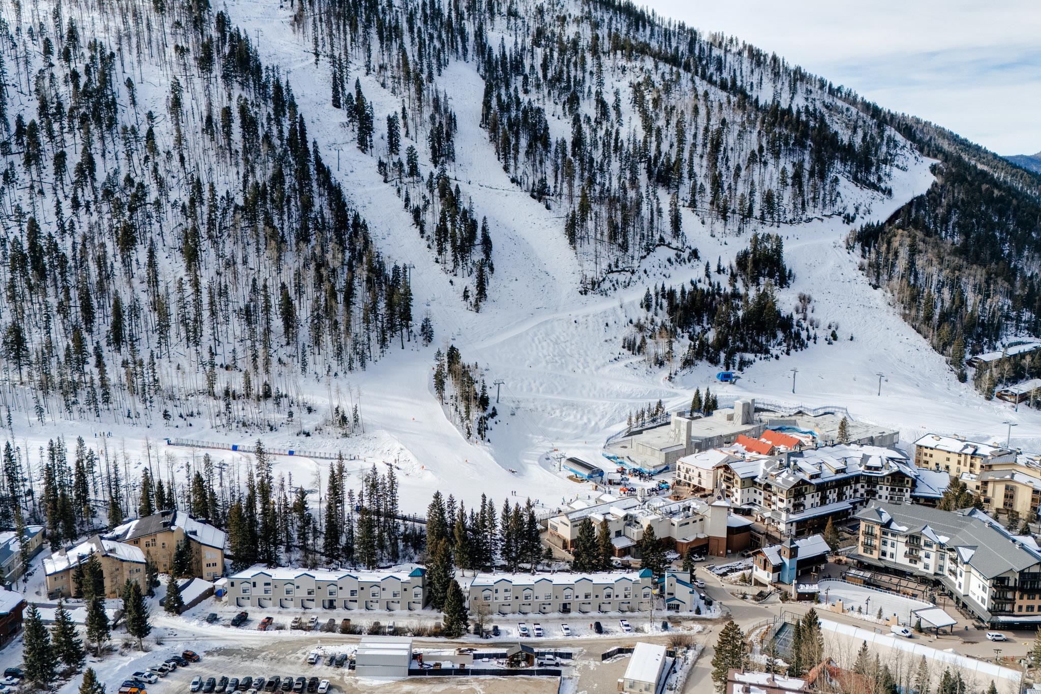 The perfect location and view of the iconic Taos Ski Valley slopes. The balcony over looks the the Lake Fork stream, which is an arm of the Rio Hondo river. Literally just a few minutes walk to Chair 1 and the Pioneers lift, shops, restaurants and the main Plaza. Fully furnished and move in ready. Be sure to click on and watch the "Virtual Tour" for a full appreciation of the location, beauty and amenities of this unique property. Previously rented on some years through Vacasa. The complex amenities include a recreation room with, ping pong, Foosball and games. HOA dues include almost everything including, water, sewer, internet, all exterior maintenance and insurance, management, snow removal and some firewood for the wood burning fireplace. There is a large sauna and hot tub room, free laundry for owners and their guests. .