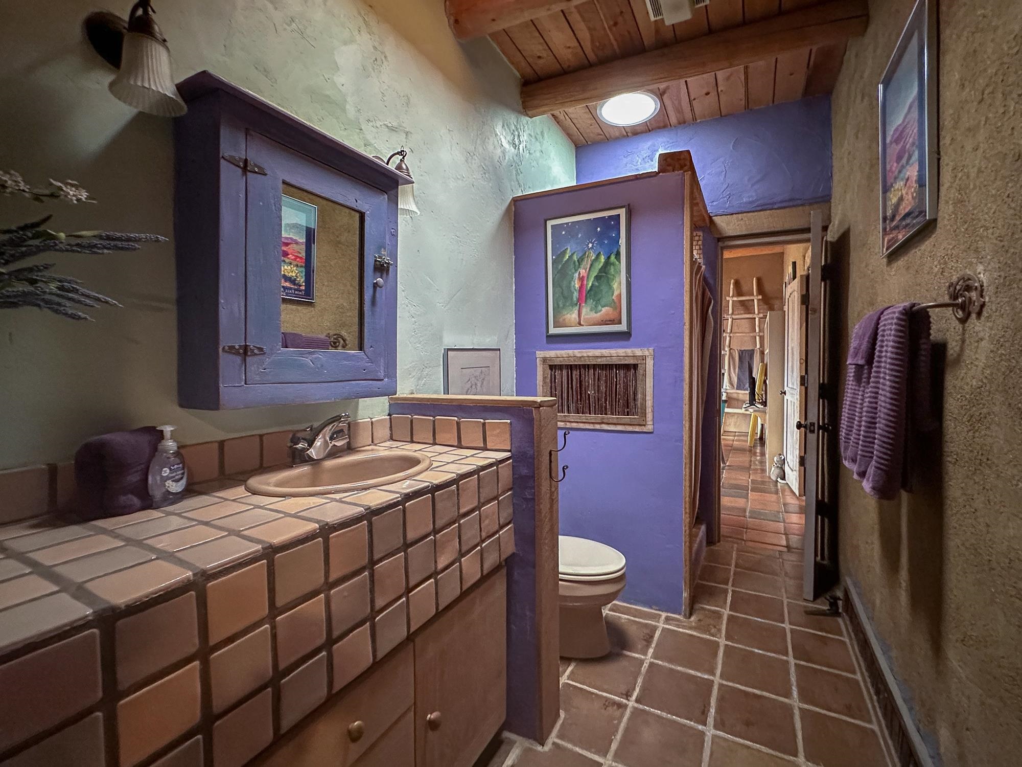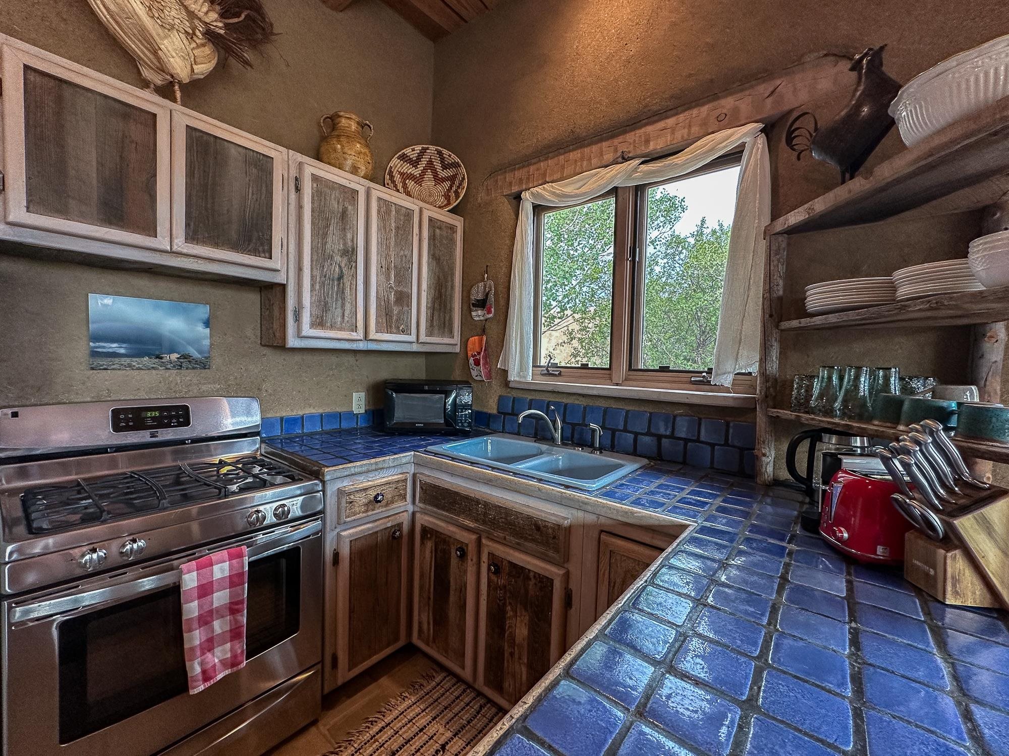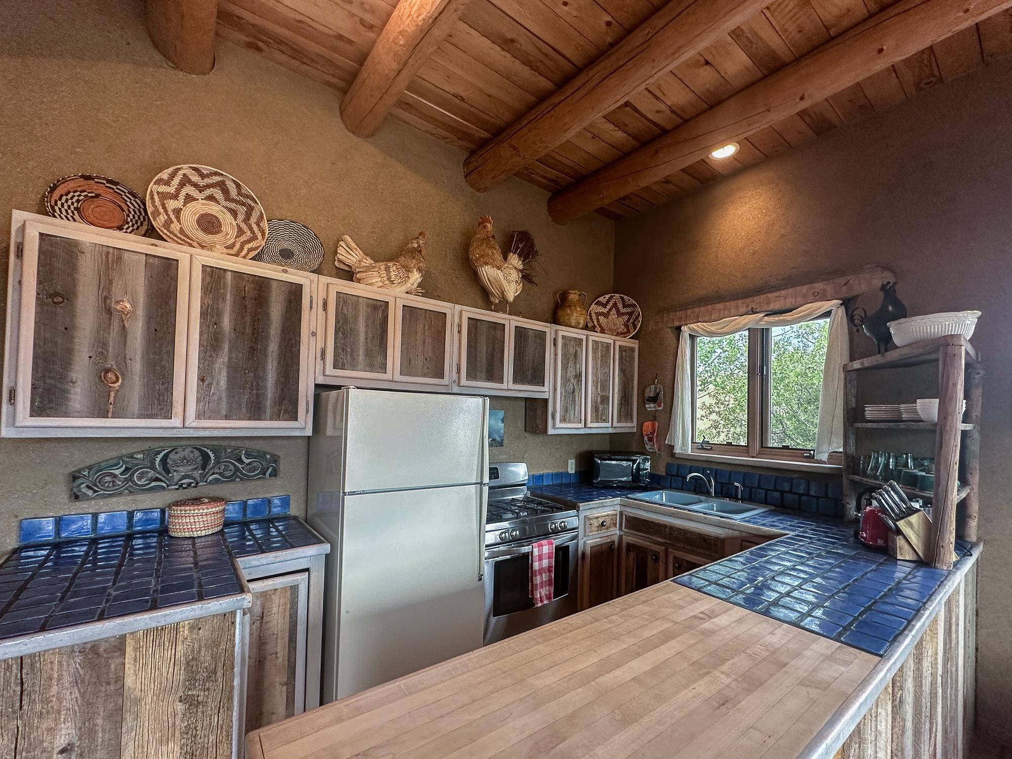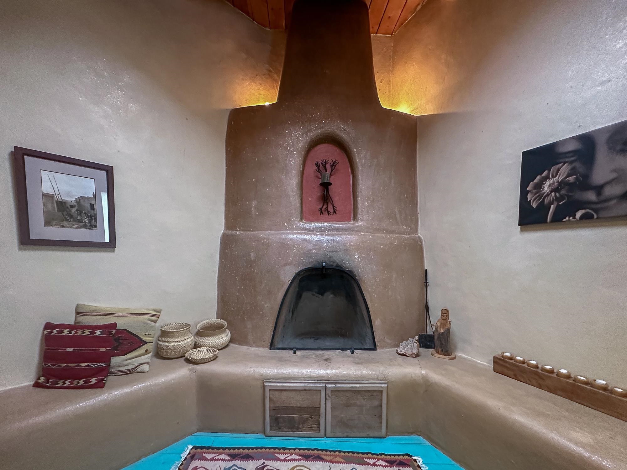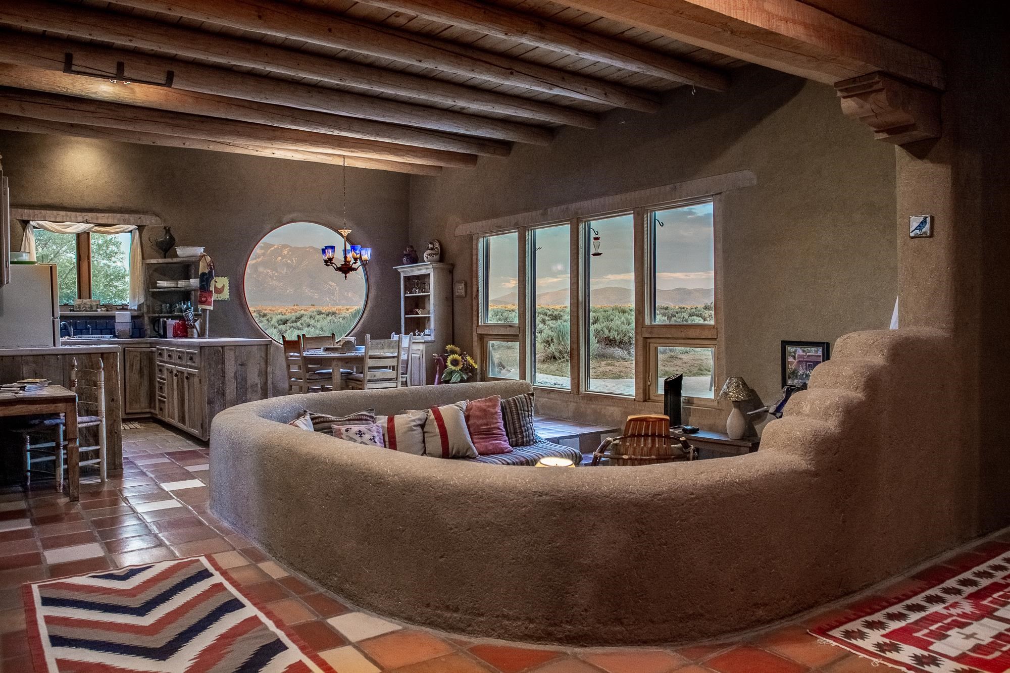 WELCOME TO ADOBE DE ARTISTA -- Where art, charm, and investment potential converge under the big Taos sky. Looking for a turn-key property with serious short-term rental mojo? This one’s got it! A guest favorite for years, Adobe de Artista boasts a loyal following of return visitors who just can’t get enough. Already in compliance with the new Taos County STR ordinance (though the permit isn’t transferable), the groundwork has been laid for smooth re-permitting. Furnishings? Let’s talk—available via separate bill of sale. High-speed fiber optic internet to keep remote life humming. This one-of-a-kind adobe is over 2,000 square feet of handcrafted soul. Designed and built by iconic Taos painter Ed Sandoval, the home is a sculptural blend of adobe, mica, straw, stone, and wood—an earthy, radiant, living work of art. Set on 1.25 acres and bordering Pueblo land, you’ll never lose sight of the mountains or the peace. Step inside and you’re wrapped in the soft curves and textures of classic Taos style: plaster walls, vigas, hand-troweled tile, and light-filled spaces. One of two living rooms features a sunken lounge, banco seating, and a traditional southwest style fireplace perfect for cozy nights in. The open-concept main living space flows into a kitchen with custom cabinets and a dining area where a massive round window perfectly frames the Sangre de Cristos. The primary bedroom is generous, serene, and romantic—featuring painted plank floors, a walk-in closet, and a second stunning fireplace with mica shimmer. The en suite bath? Think river rock shower + tiny fireplace = spa-like bliss. The second bedroom is sunny and opens to a private patio, with its own en suite bath for guests or renters. A third full bath and laundry closet complete the layout. Outside, you’ll find multiple patios, shady spots, and stargazing nooks—plus a hot tub made for soaking under the Milky Way. There’s also a carport and gear storage for your skis, bikes, or fly rods. Just 20 minutes to Taos Plaza and 25 to the Ski Valley, this is more than a home—it’s a retreat, a vibe, and a smart investment all wrapped into one adobe masterpiece.