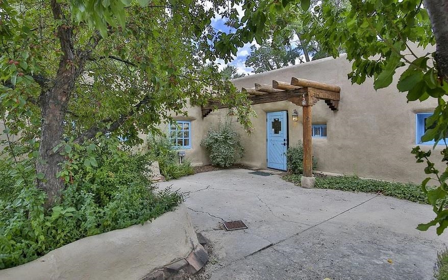 Quintessential Taos! Beautifully renovated historic 1800's adobe in the heart of town. This charming Bent Street home is on the National Register of Historic Places and is just steps away from Taos Plaza, Kit Carson Park, and Taos Inn as well as fine dining, galleries, shops, culture, and entertainment. Feel the warmth and history of this spacious 2 bedroom/1 bath property from the comfort of the ample living/dining room area, where family and friends can gather after dinner around one of two wood-burning Kiva fireplaces. The kitchen offers a gas range/oven and a dining counter, perfect for a quick breakfast before heading out to Taos Valley for a day on the slopes. If working from home is a must, this property offers two additional spacious rooms, which could serve as office space, a den, or even an extra bedroom. Fiber optic internet and alarm system, off street parking, and town utilities are included. Watch the sunset from the comfort of your covered porch or patio. If you really want to immerse yourself in the full Taos experience, then don't wait, because this beautiful home with its classic Southwest accents and ambiance will not last!