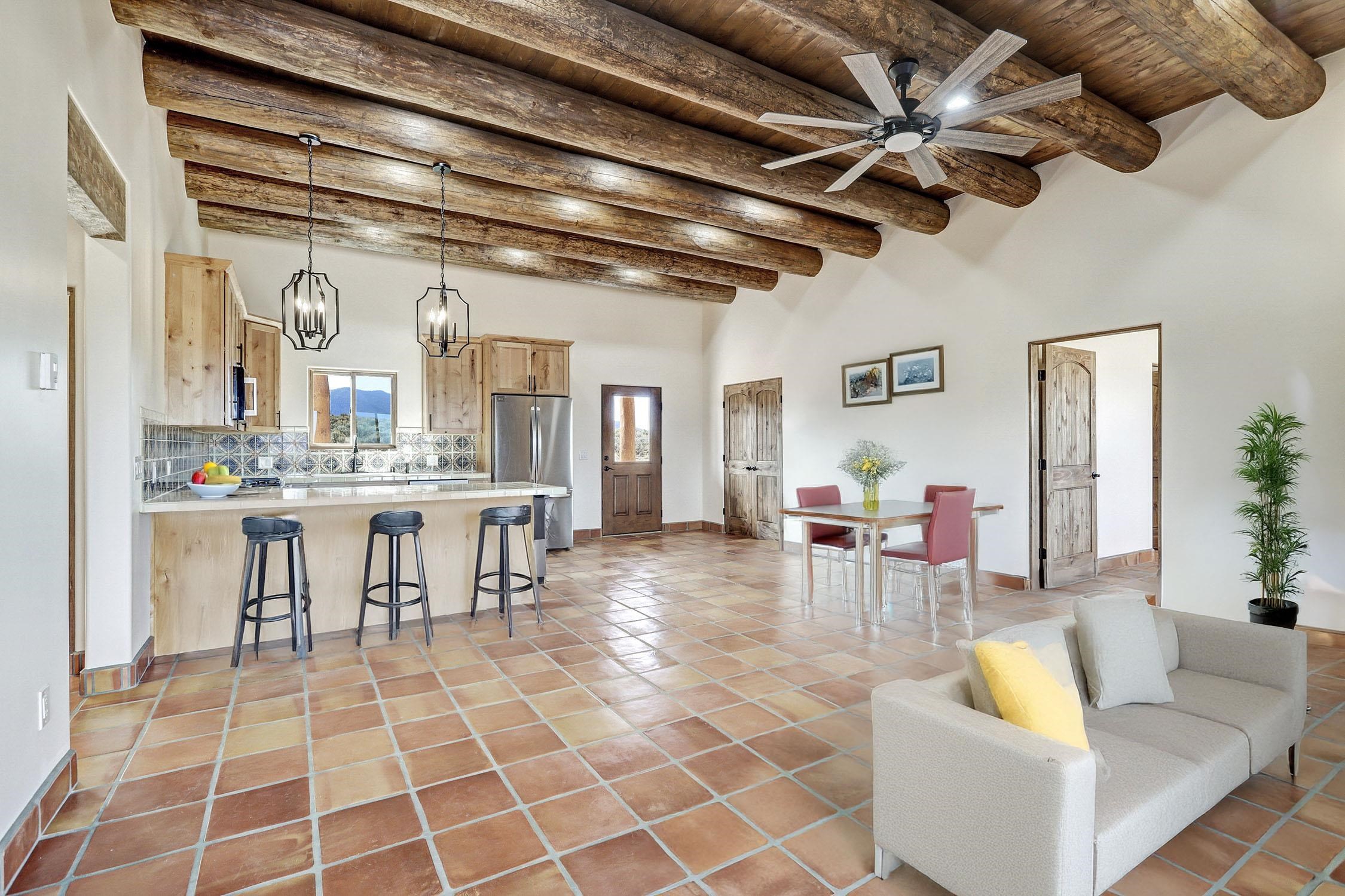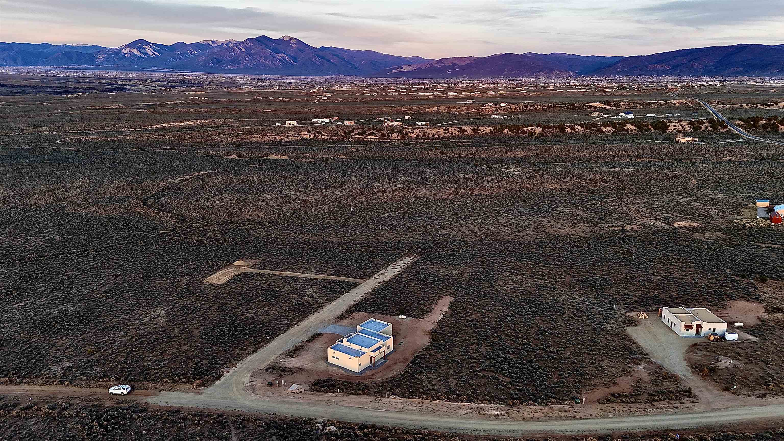 Tranquil, peaceful, and absolutely stunning 2025 Southwest Pueblo-style home for sale near the hiking trails at the end of town! Superb quality with an extra 4” of concrete footings and extra rebar to ensure a solid foundation and structural integrity of the home. The home is 1,517 square feet of heated living space with an extra 500 square feet of heated space in the garage. Can easily be converted to a studio with another garage added. Utilities include: a shared well (5 homes), septic, electric, and propane. Radiant heat throughout the home for warm floors on a snowy day. A southwest fireplace in the living room for ambiance and roasting marshmallows on those cold, blizzardy nights! Vigas in the main living space to complement the high ceilings. Custom details throughout - gorgeous handmade Talavera tiles used for the backsplash in the kitchen and bathroom, and accents in the showers and sinks. Matching mirrors above each sink for a well thought-out design flow throughout the home. Light green tiled countertops in the kitchen to forest green tiles in the bathrooms. Custom shower glass doors in each shower with no step but a gentle slope accommodating little ones, pups, elders, or those who may be easily clumsy! Handmade Saltillo tiles throughout. A well-balanced color palette with neutrals to bright reds, yellows, orange, dark blues and an overall green tone that feels refreshing and warm. RV hook-ups behind the home, an electric car plug-in added in the garage. Photos capture the elegance, while the virtual tour captures artistic touch. 3D walkthrough and floor plan are added as a bonus to the listing for you to experience the home if you’re not able to see it right away. Last but not least, the expansive views in almost all directions will always remind you that the mountains are home! A simple yet heart-wrenching reminder of what makes Taos so special and why we all love it so much! *Four Pinon trees to be added to the property* See here for 3D rendering: https://tours.dragonfly360imaging.com/299473