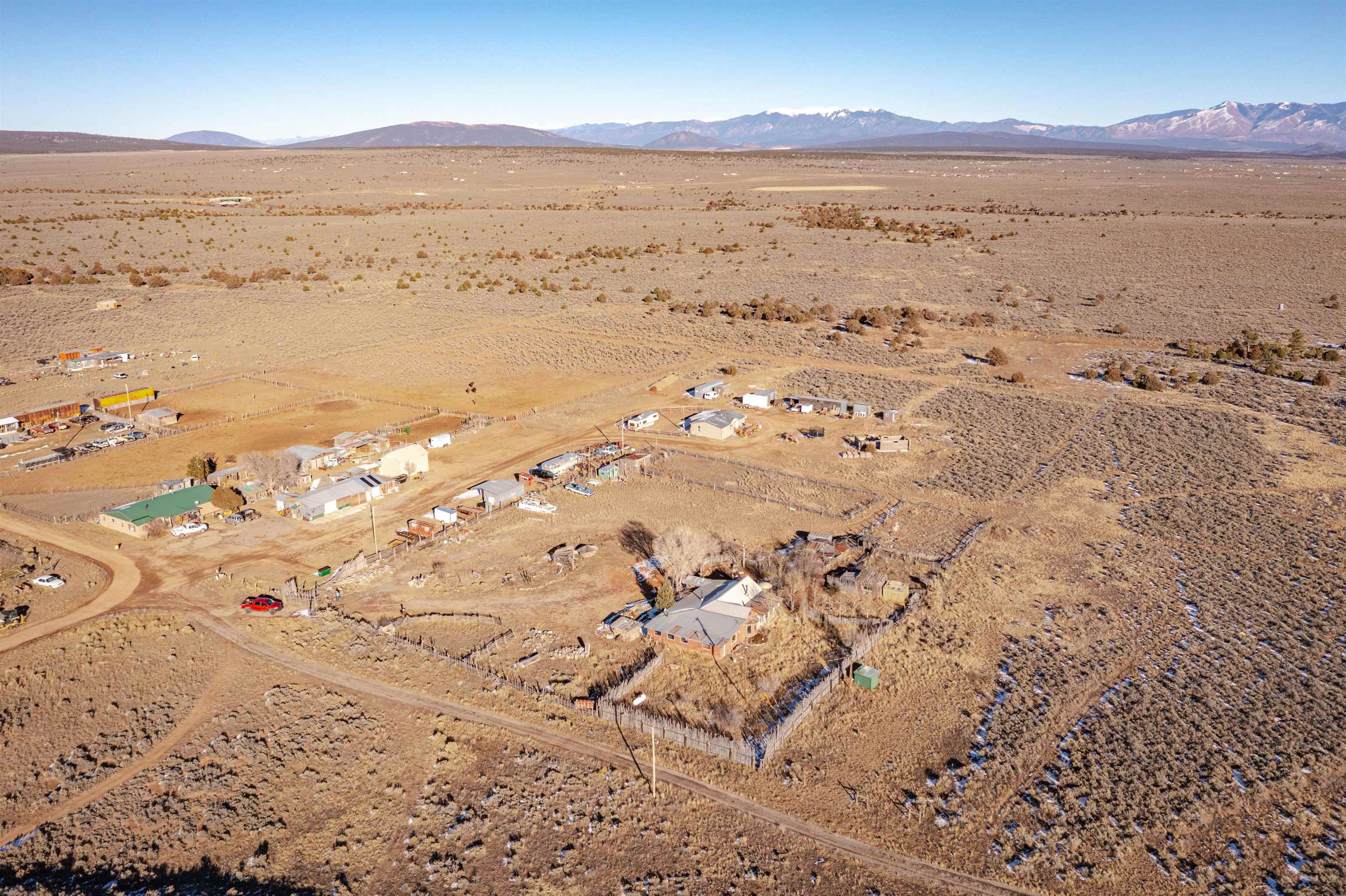 This Tres Piedras homestead has been remodeled, added onto and cared for over several decades. The original cabin is log and stone with the adjoining room additions providing a workshop, utility room, sunroom and sleeping quarters. The previous owner was an artist and his architectural stonework, sculptures and handiwork are visible throughout. The home benefits from much solar gain but relies on four woodstoves to heat the home with small gas space heaters protecting crucial mechanical areas. The rustic kitchen features a Vulcan commercial range with dual ovens eight burners. The main house, surrounding landscaping and aging animal pens will all require attention. However, the attached workshop would be the perfect place to stage materials, tools or even be used as an artist studio. Short term owner financing available with appropriate down payment if a buyer plans to eventually seek a conventional mortgage. Square footage is from County Assessor files and a qualified appraiser should be used if accurate measurements are required for lending purposes.