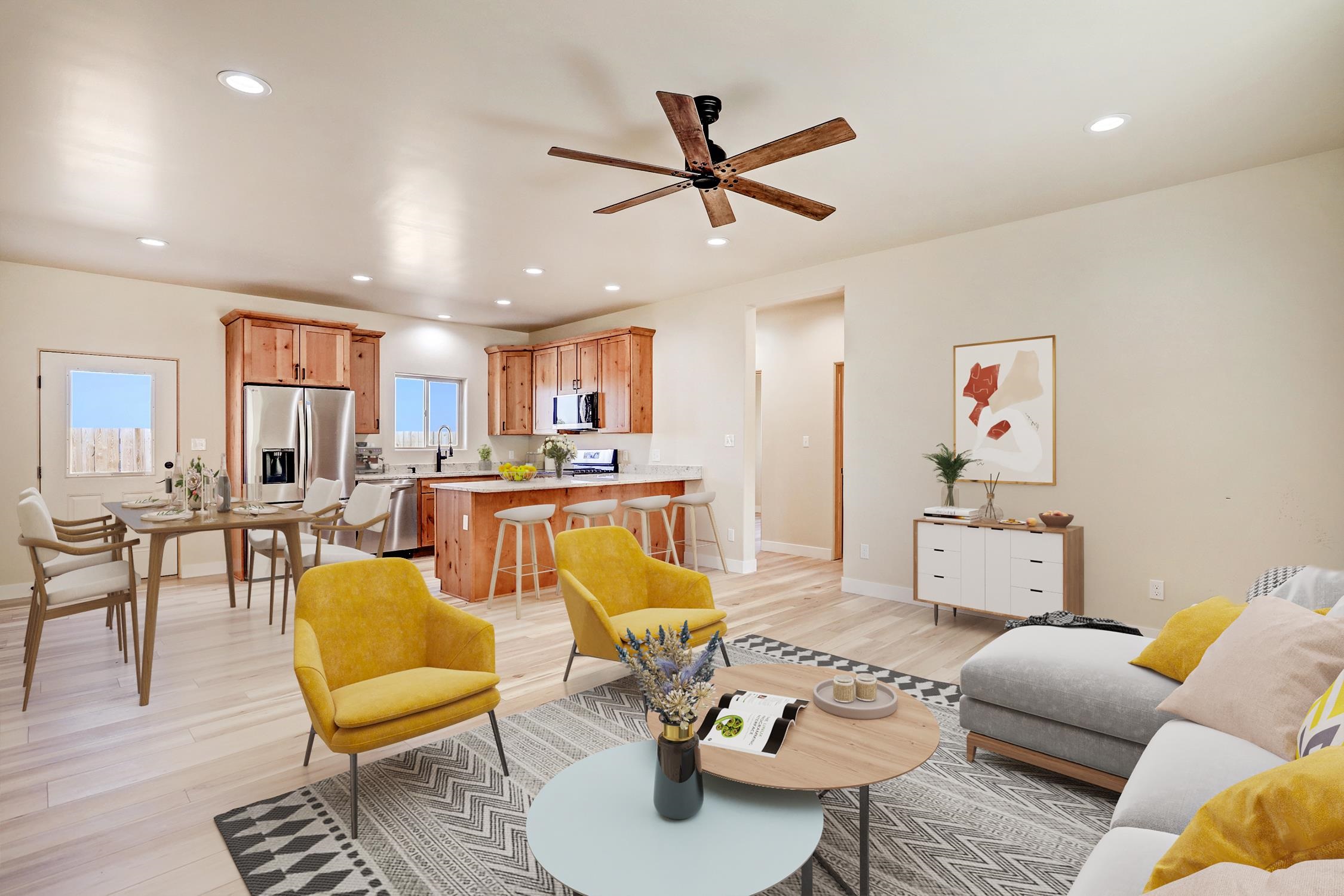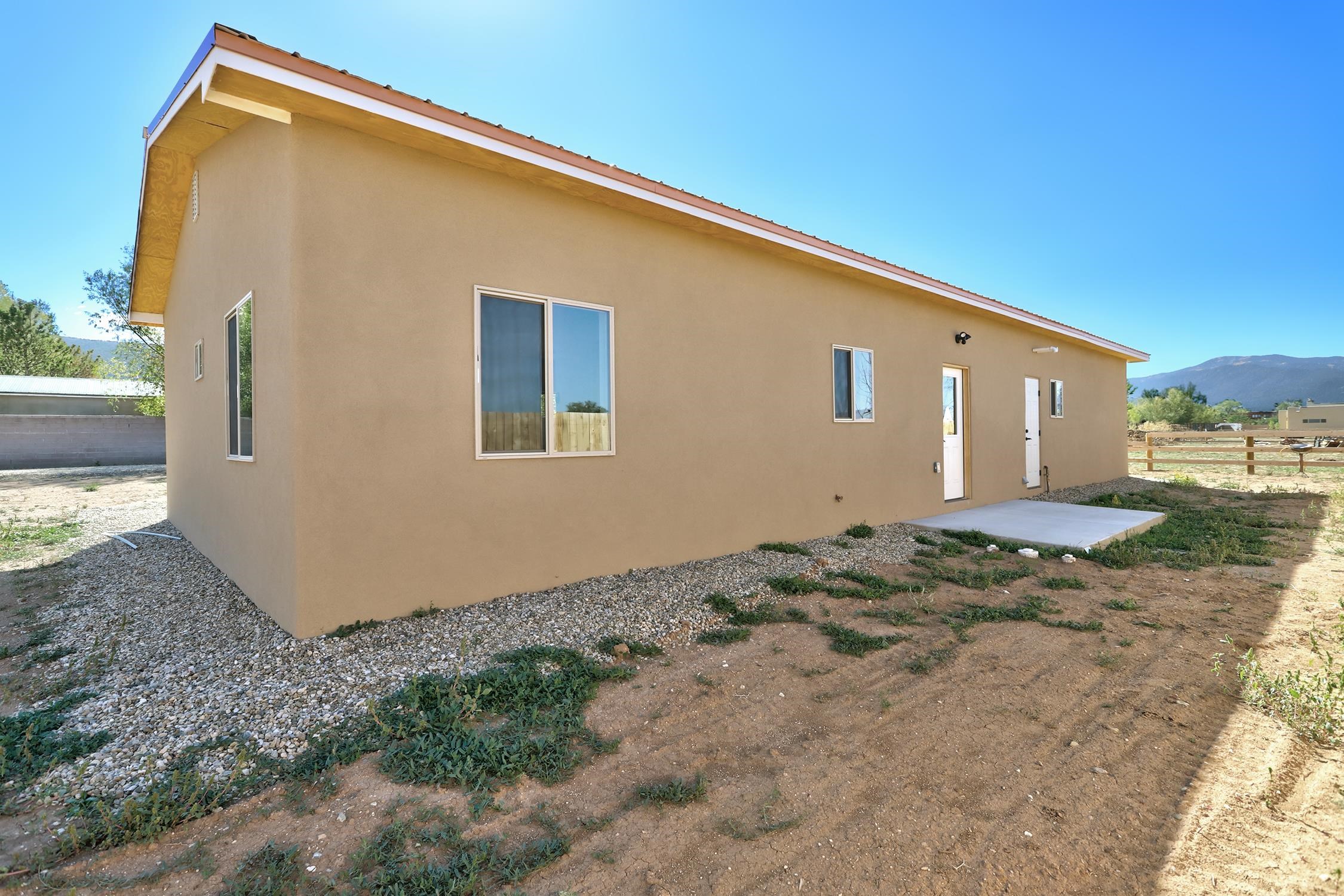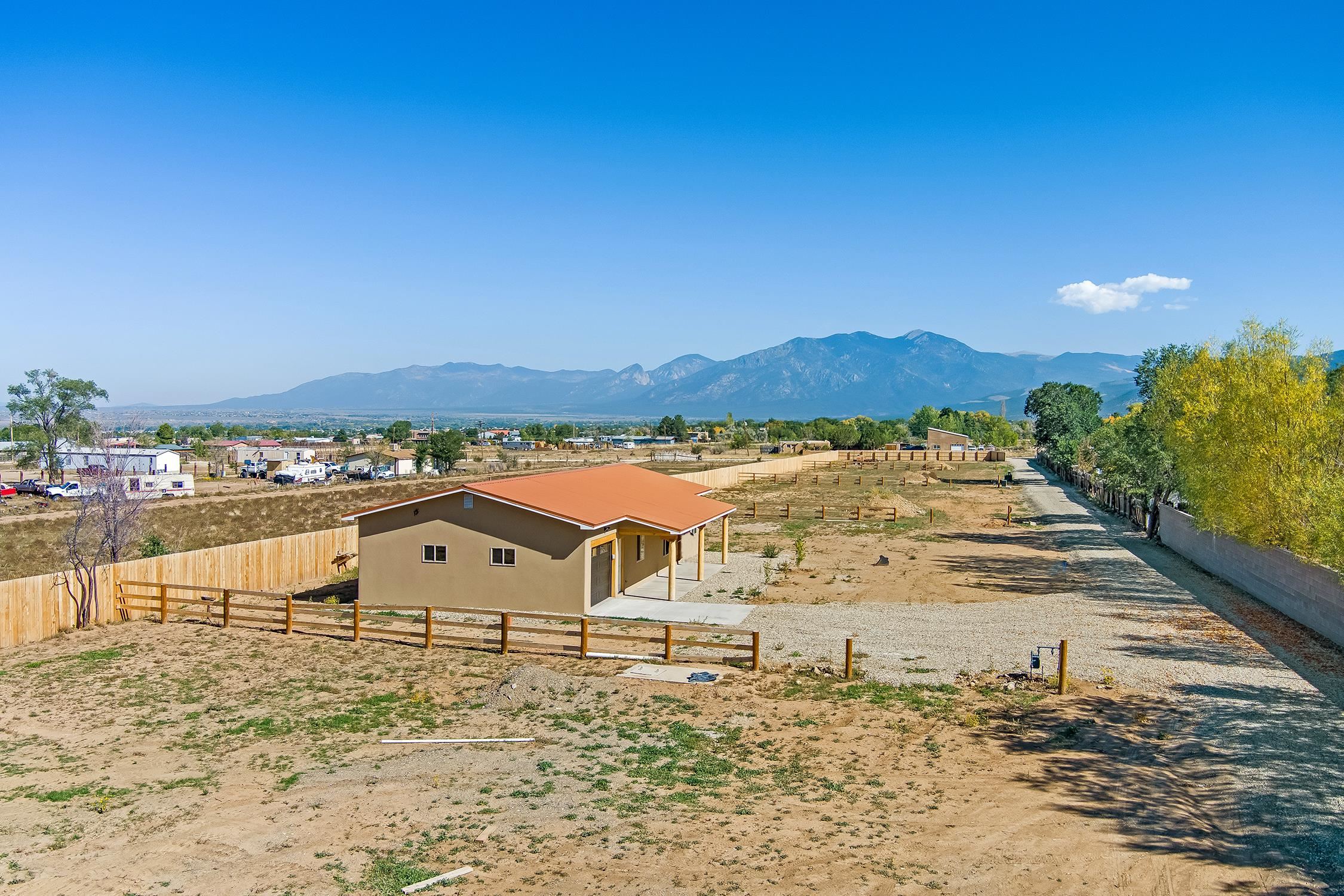 QUALITY New Build in a Newly Developed Neighborhood Priced to Sell ~ Nestled in the brand-new Straight Cat Trail neighborhood, you will find this charming new construction home which presents a fantastic opportunity to embrace the Taos lifestyle! The thoughtfully designed residence boasts 1,286 square feet of comfortable living space which contains three well-appointed bedrooms and two nicely separated bathrooms. The heart of the home features custom cabinetry which compliments the sleek granite countertops and pieces together the perfect kitchen for embarking on all your culinary adventures. This central area, along with the outdoor space surrounding the home will be ideal for entertaining guests in a contained environment. Smooth finish walls and classy tile floors heated by hot water radiant from a tankless gas water heater create a sleek and comfortable feel throughout the residence year-round. The oversized one-car garage, spanning an impressive 440 square feet, also features in-slab radiant heating – is perfect for hobbies or extra storage. The home has been virtually staged to give you an idea of the vibrant space this can become. Virtual Tour available upon request. This is a fantastic opportunity to own a shiny brand new residence, that's the perfect size, right here in the Land of Enchantment.