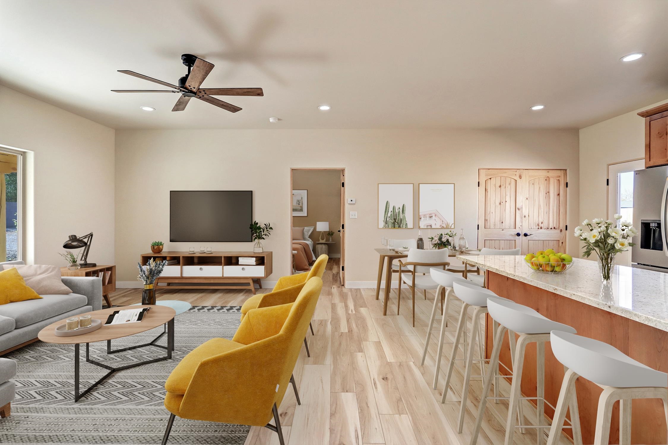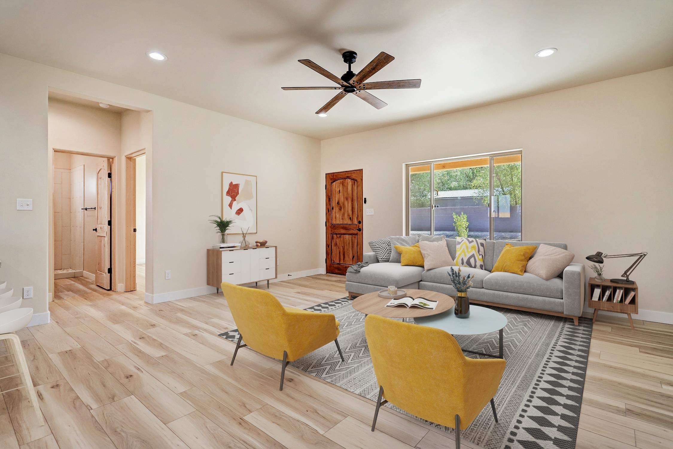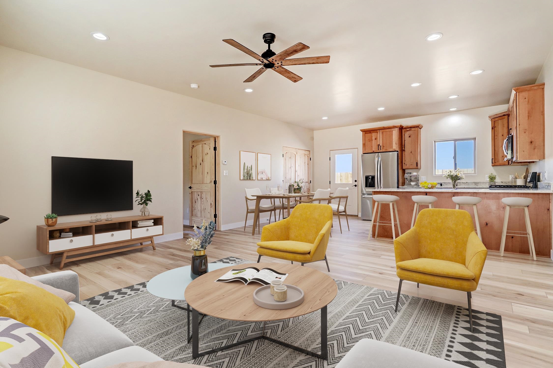 QUALITY New Build in a Newly Developed Neighborhood Priced to Sell ~ Nestled in the brand-new Straight Cat Trail neighborhood, you will find this charming new construction home which presents a fantastic opportunity to embrace the Taos lifestyle! The thoughtfully designed residence boasts 1,286 square feet of comfortable living space which contains three well-appointed bedrooms and two nicely separated bathrooms. The heart of the home features custom cabinetry which compliments the sleek granite countertops and pieces together the perfect kitchen for embarking on all your culinary adventures. This central area, along with the outdoor space surrounding the home will be ideal for entertaining guests in a contained environment. Smooth finish walls and classy tile floors heated by hot water radiant from a tankless gas water heater create a sleek and comfortable feel throughout the residence year-round. The oversized one-car garage, spanning an impressive 440 square feet, also features in-slab radiant heating – is perfect for hobbies or extra storage. The home has been virtually staged to give you an idea of the vibrant space this can become. Virtual Tour available upon request. This is a fantastic opportunity to own a shiny brand new residence, that's the perfect size, right here in the Land of Enchantment.